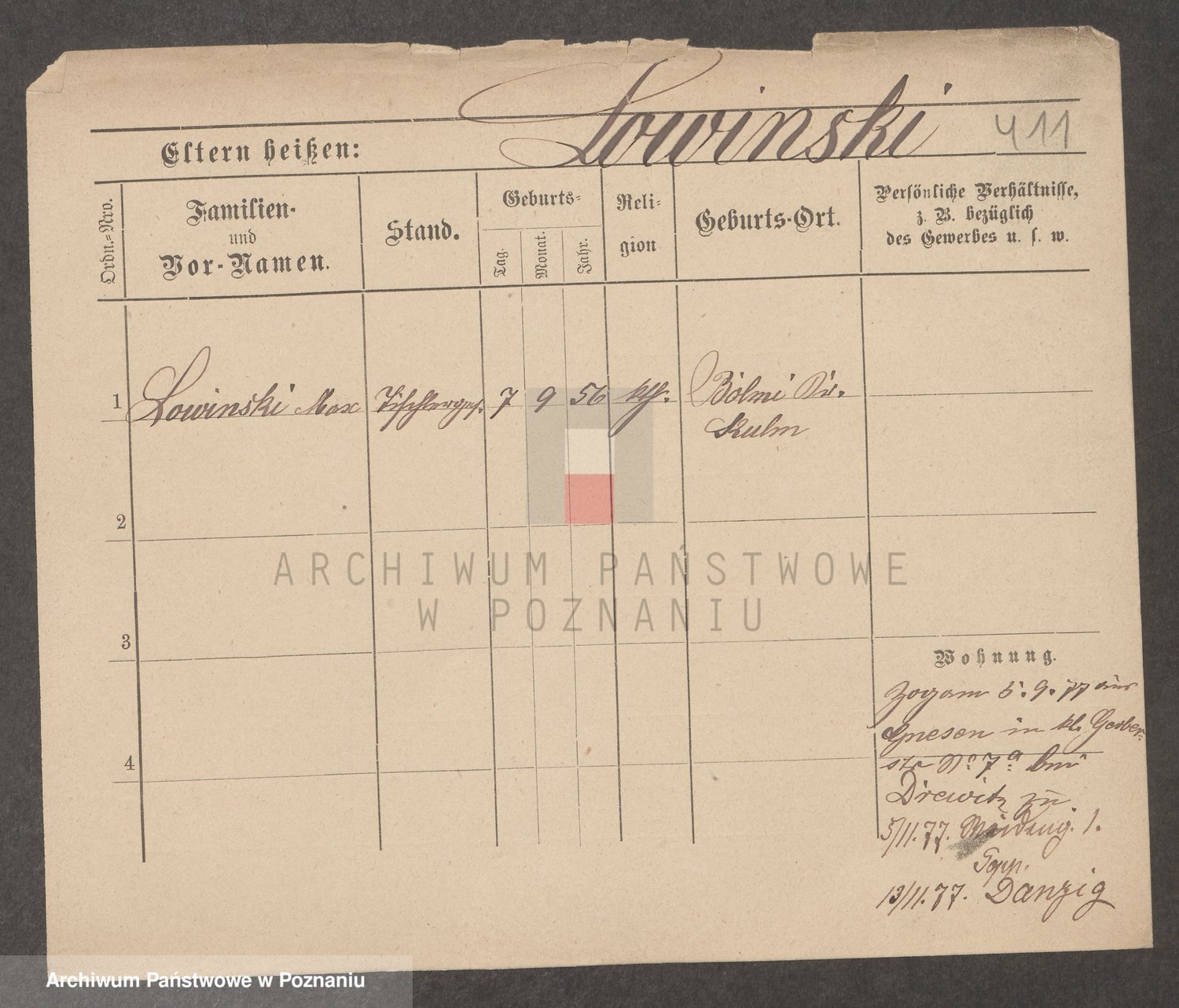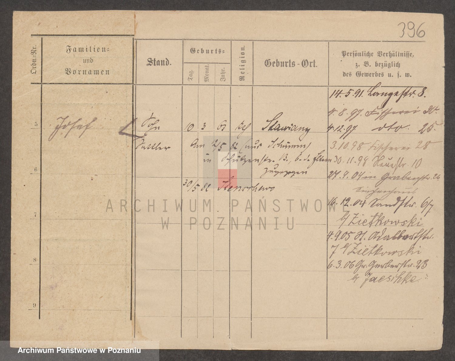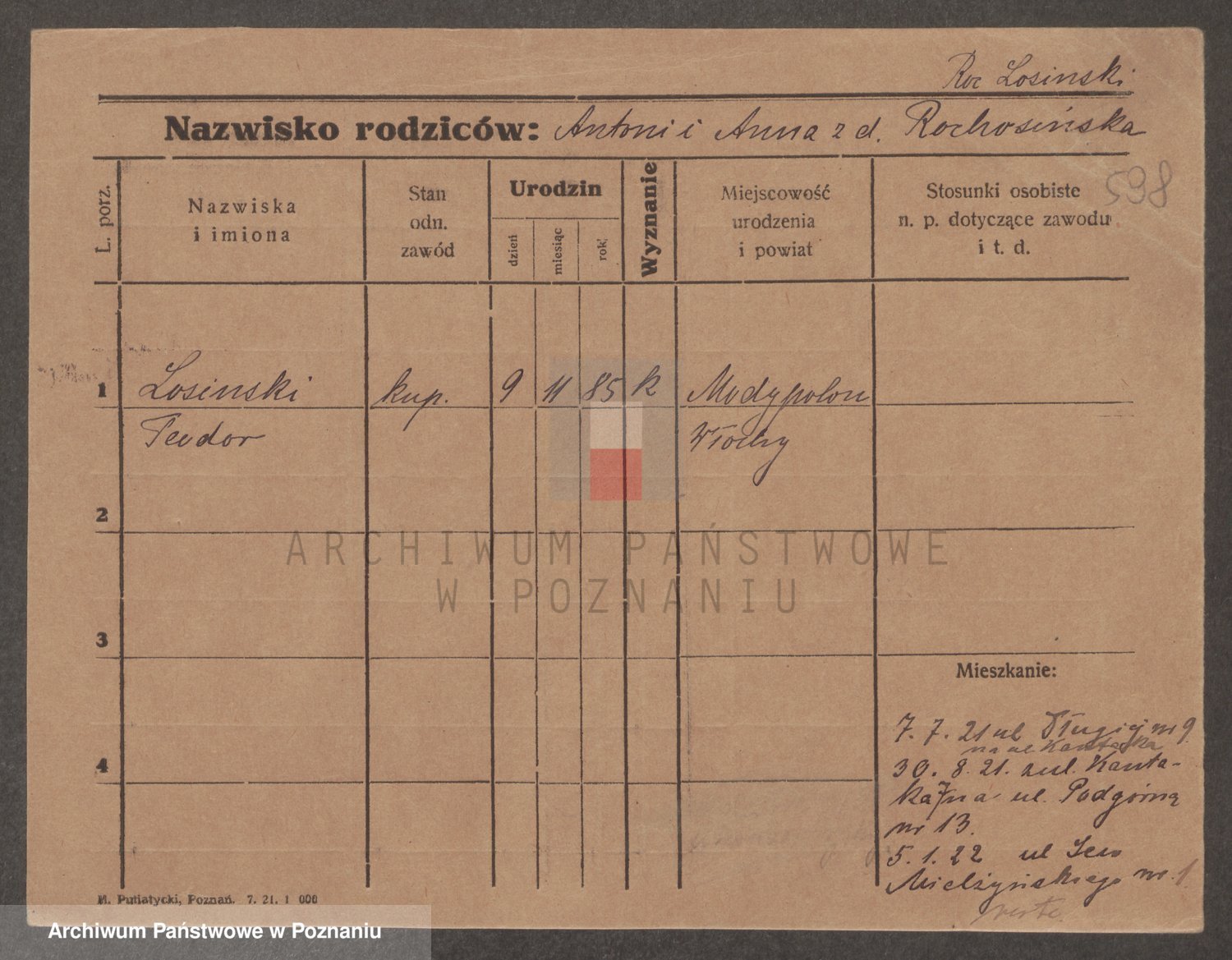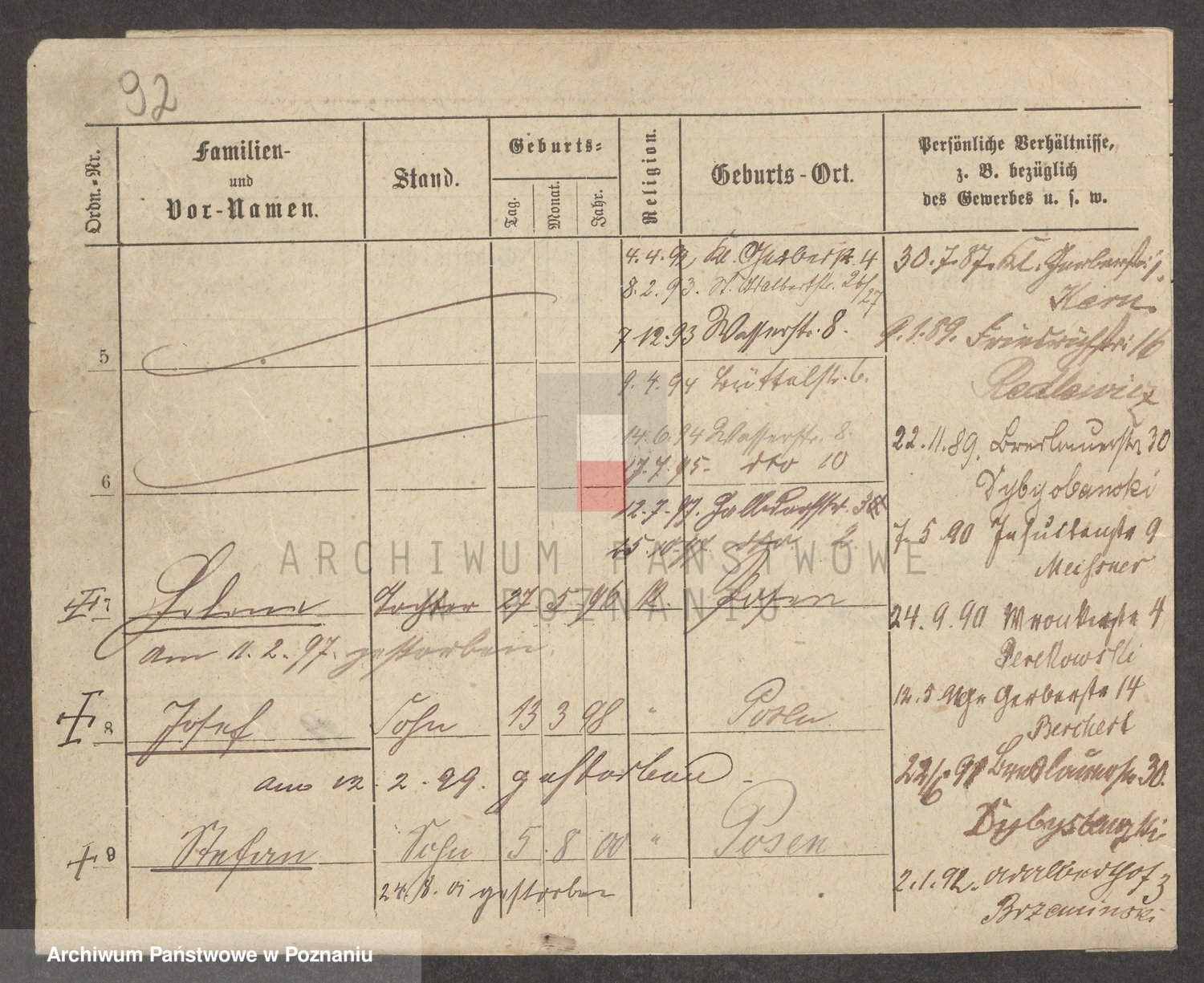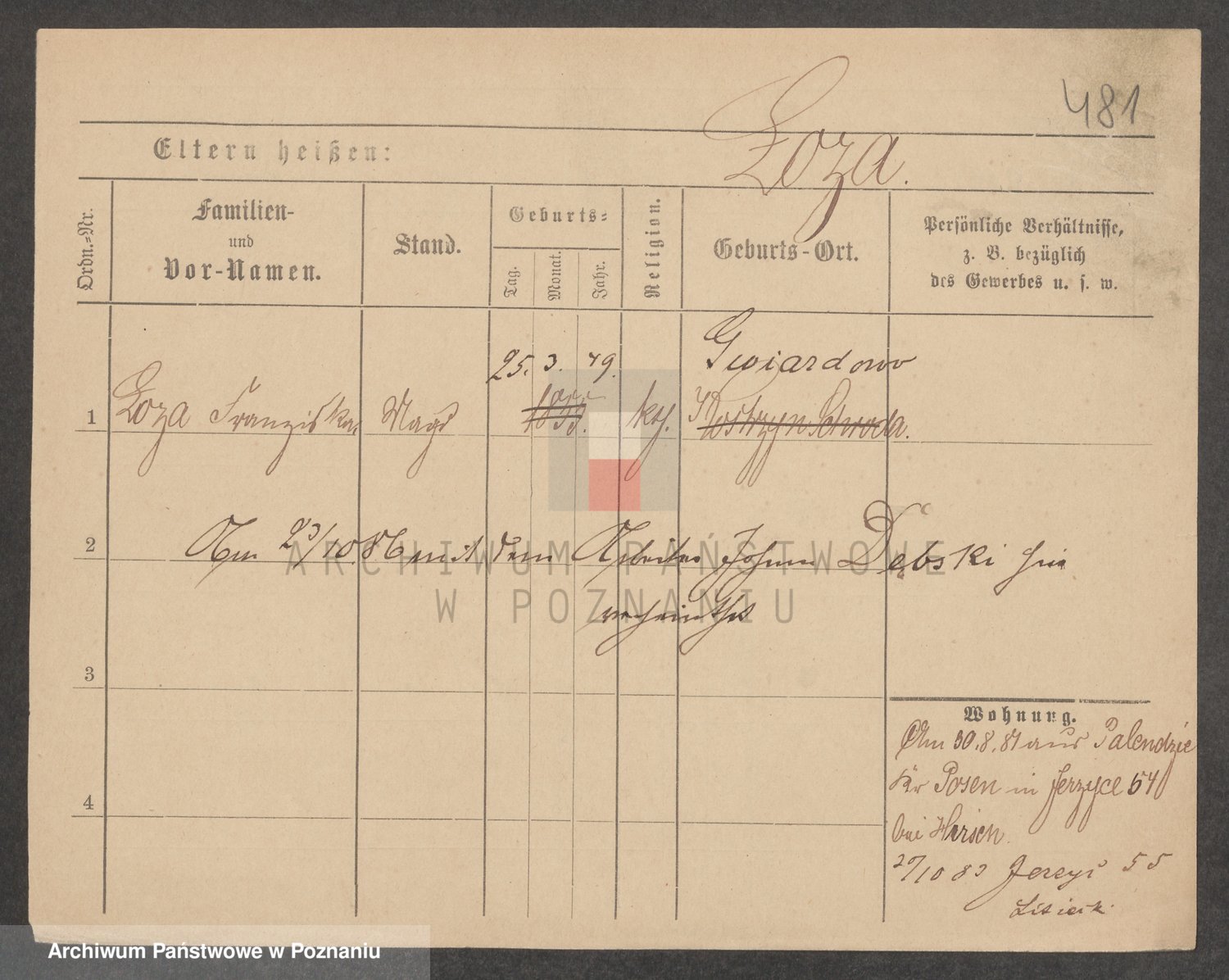 Podgląd karty osobowej dostępny jest po kliknięciu na nazwisko lub ikonkę karty. Można dokonywać powiększenia (ikony na górze) lub przechodzić między kolejnymi skanami (strzałki po bokach).