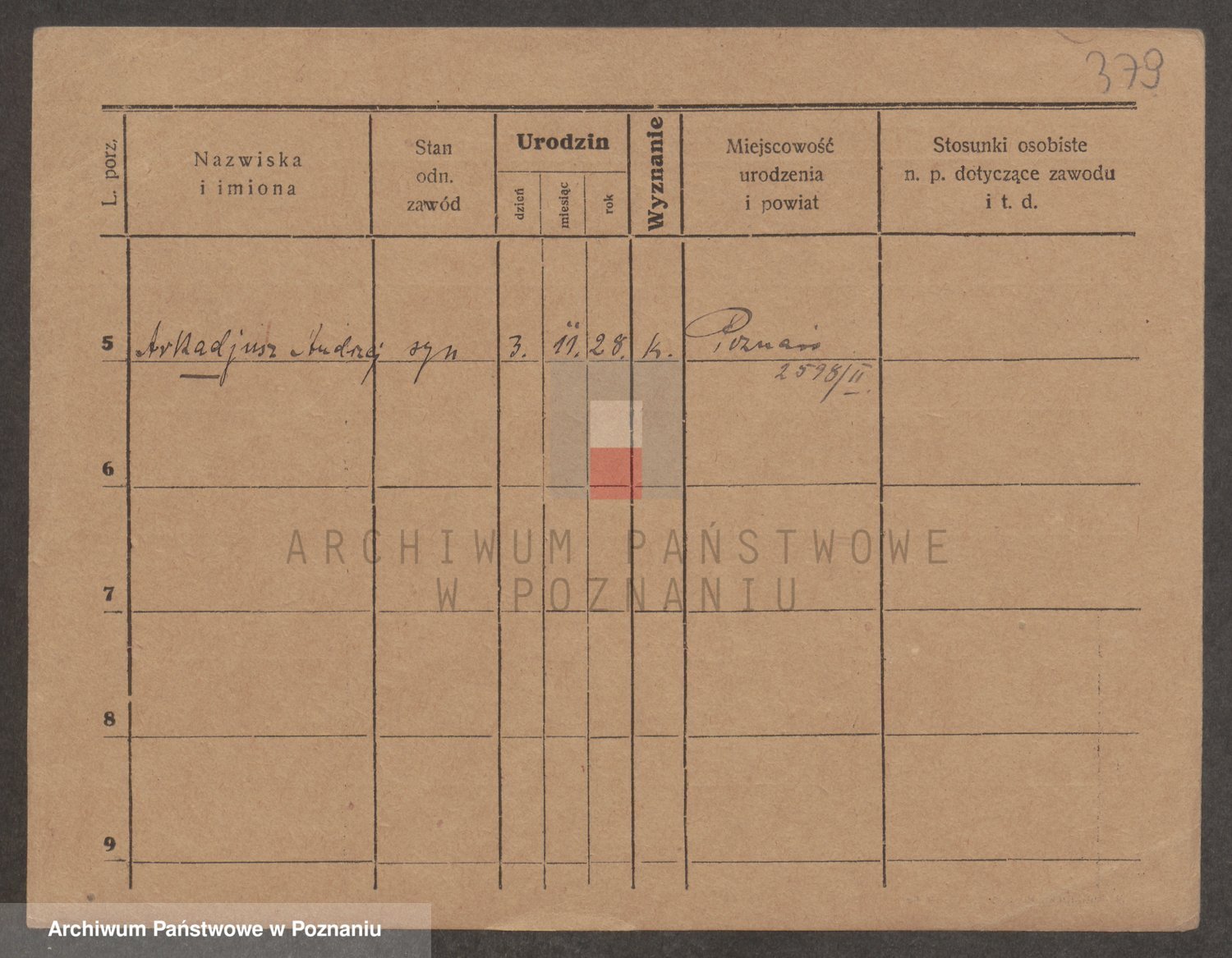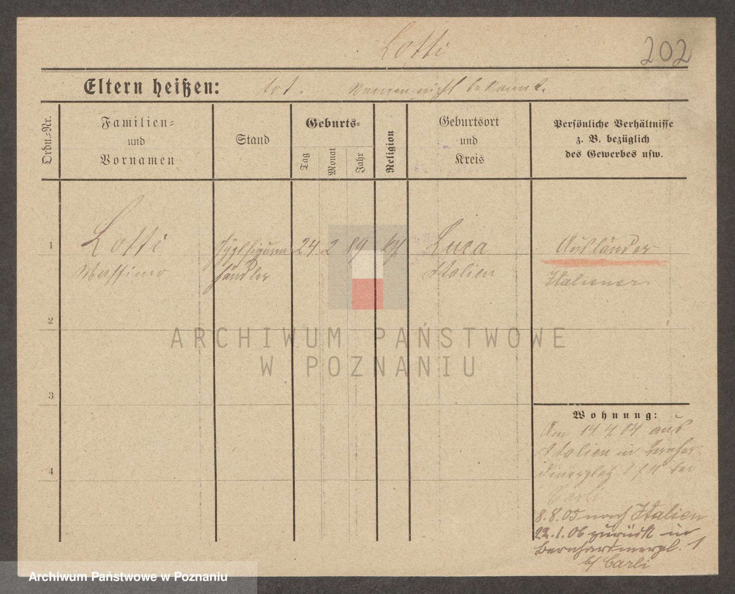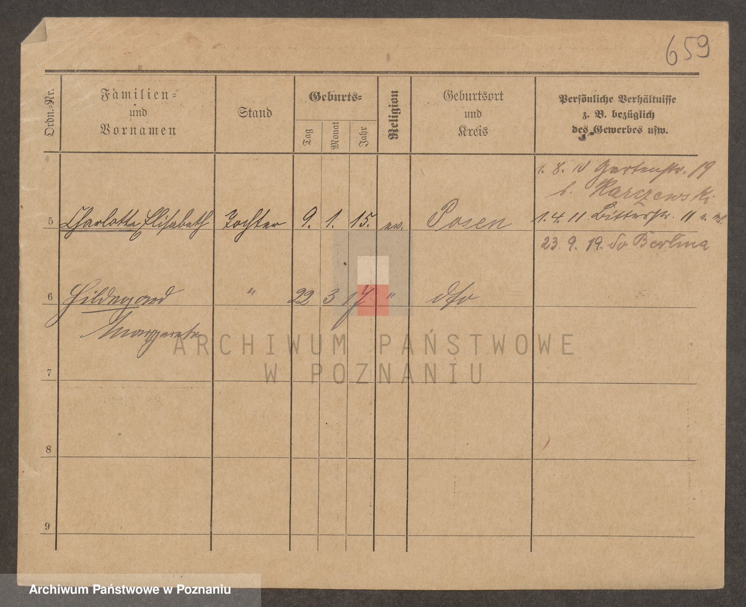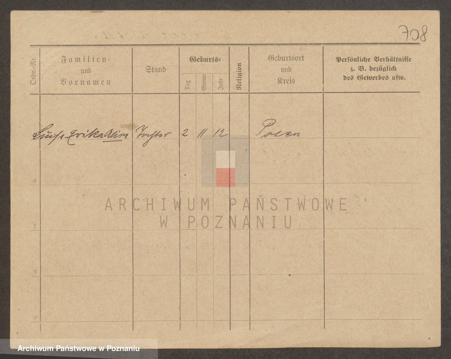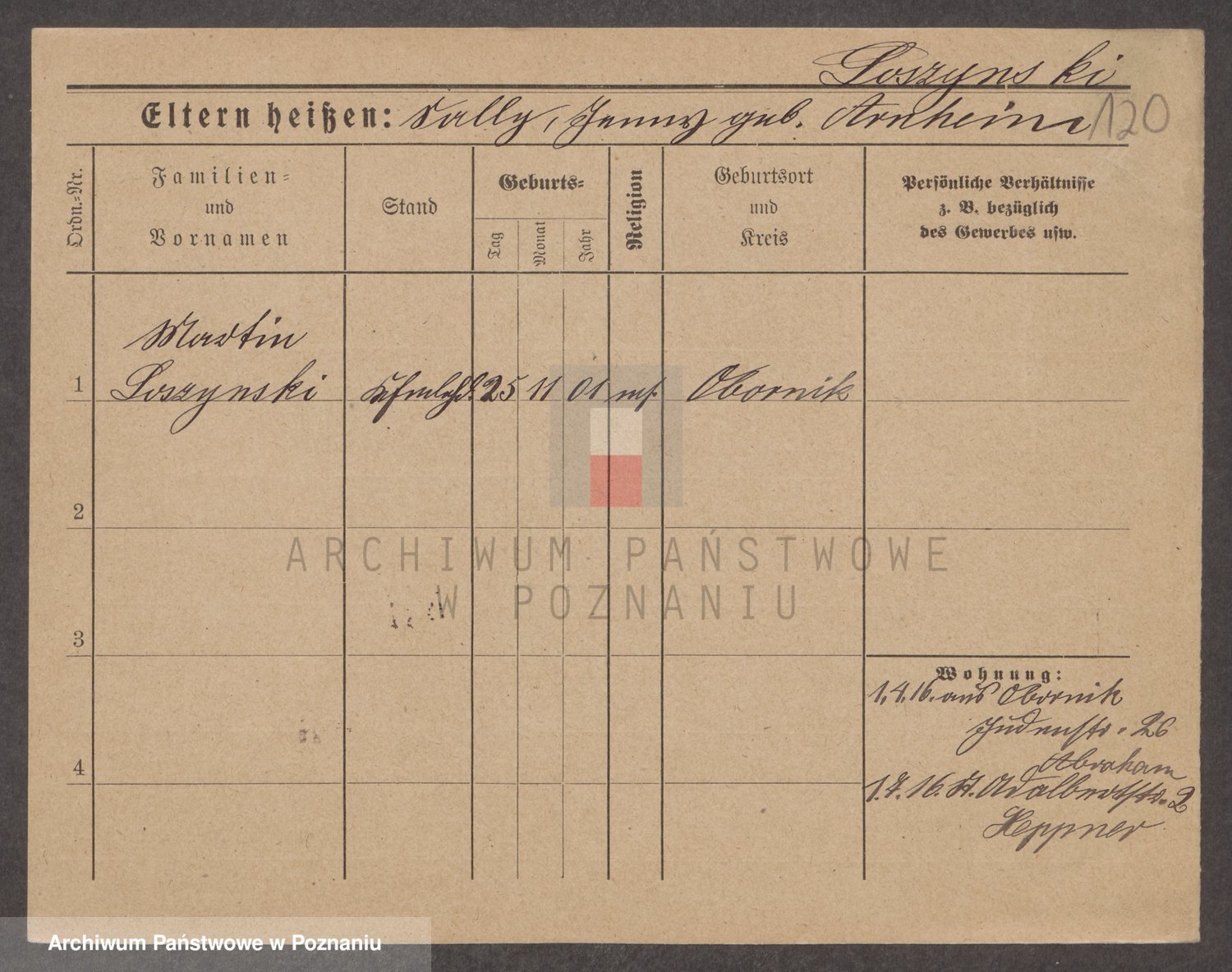 Podgląd karty osobowej dostępny jest po kliknięciu na nazwisko lub ikonkę karty. Można dokonywać powiększenia (ikony na górze) lub przechodzić między kolejnymi skanami (strzałki po bokach).