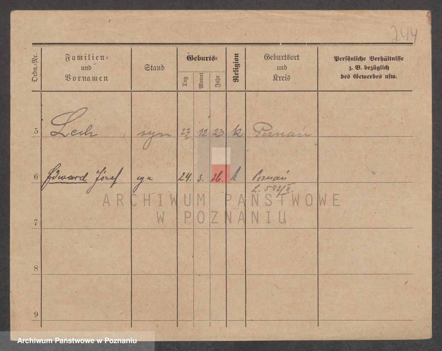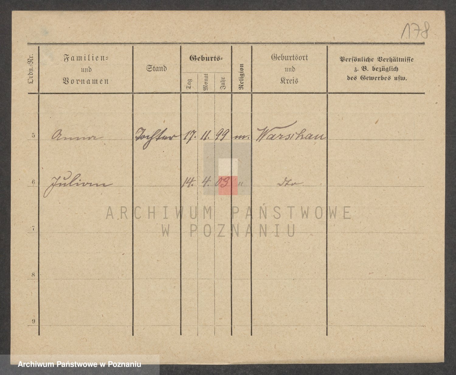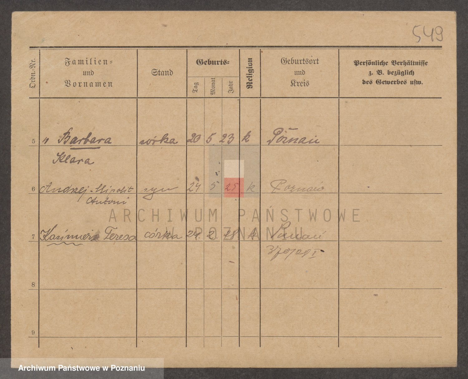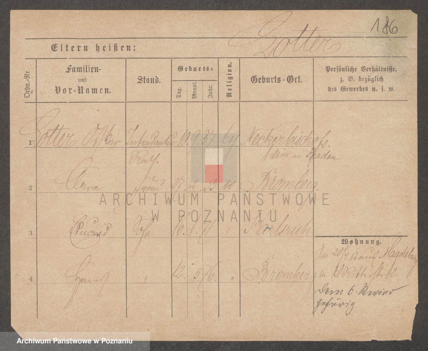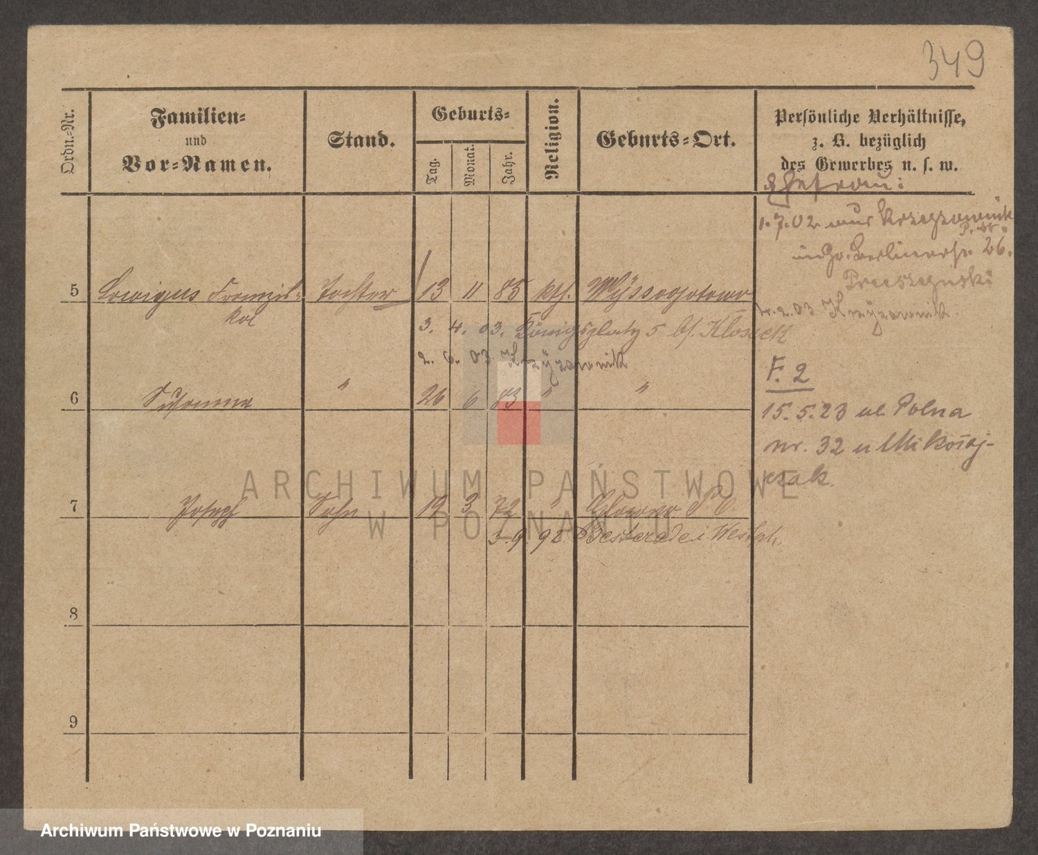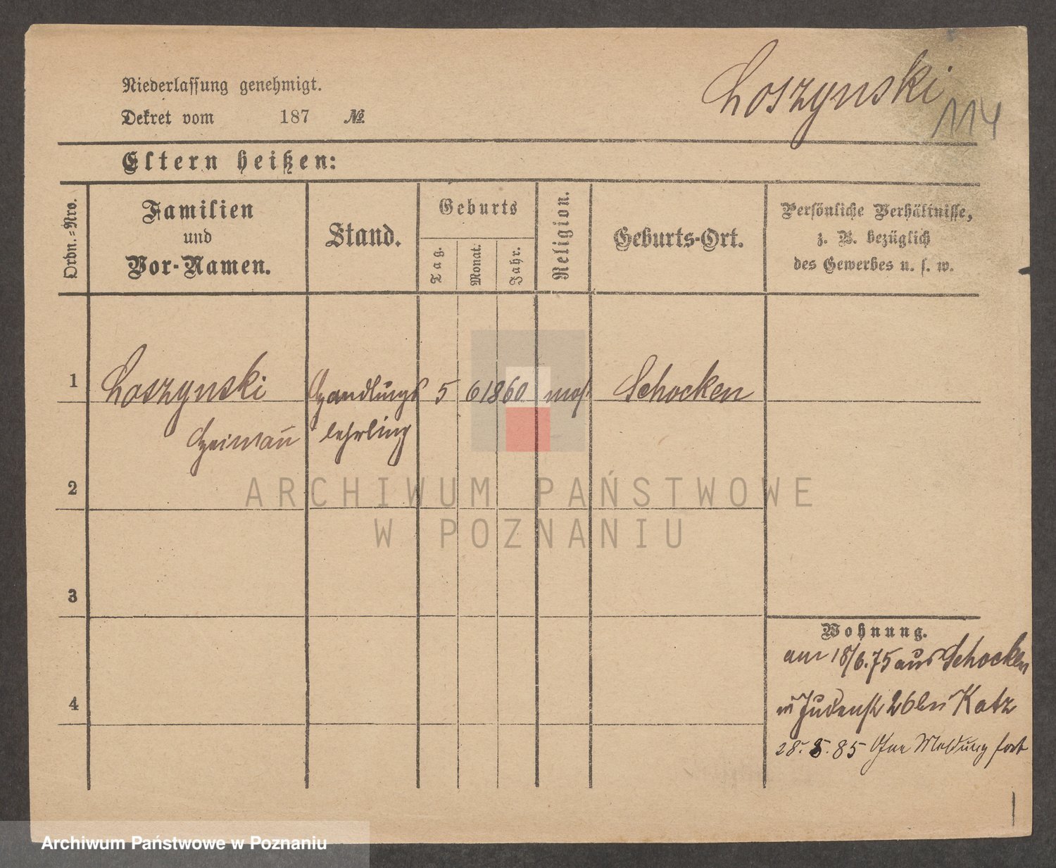 Podgląd karty osobowej dostępny jest po kliknięciu na nazwisko lub ikonkę karty. Można dokonywać powiększenia (ikony na górze) lub przechodzić między kolejnymi skanami (strzałki po bokach).