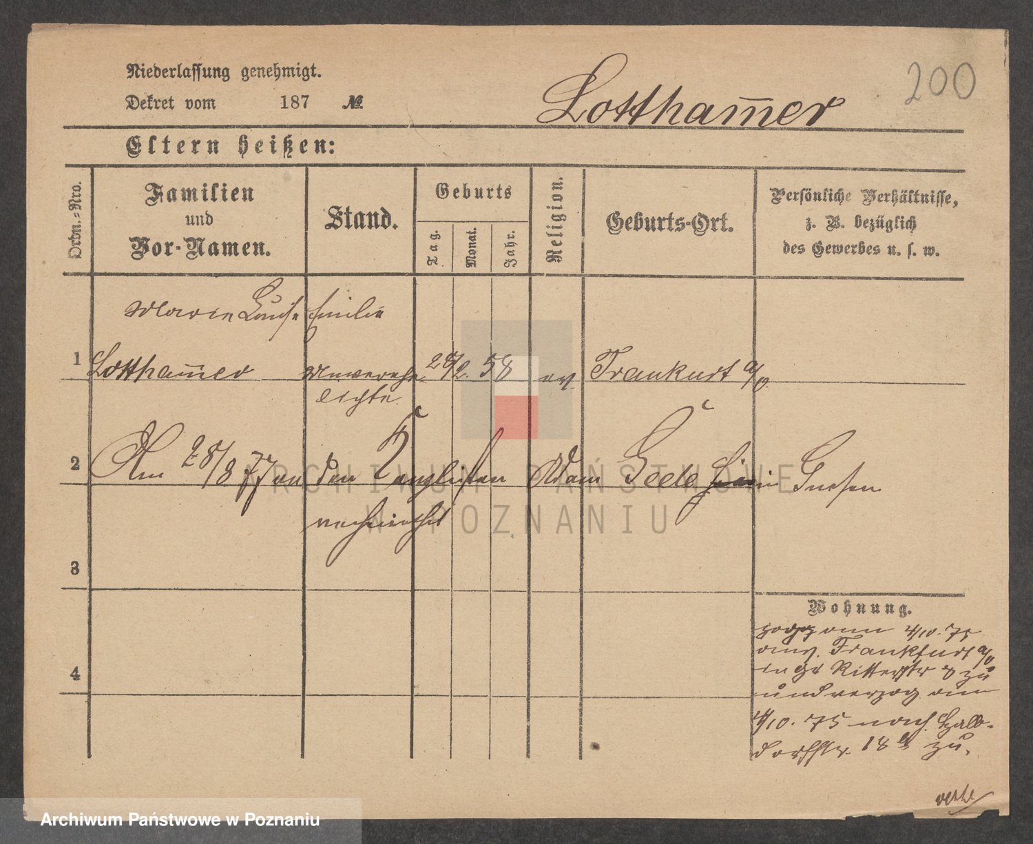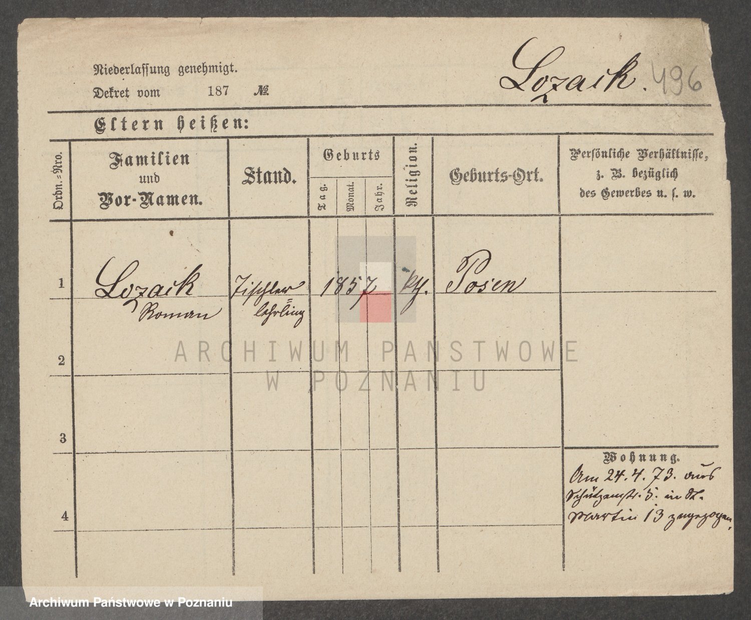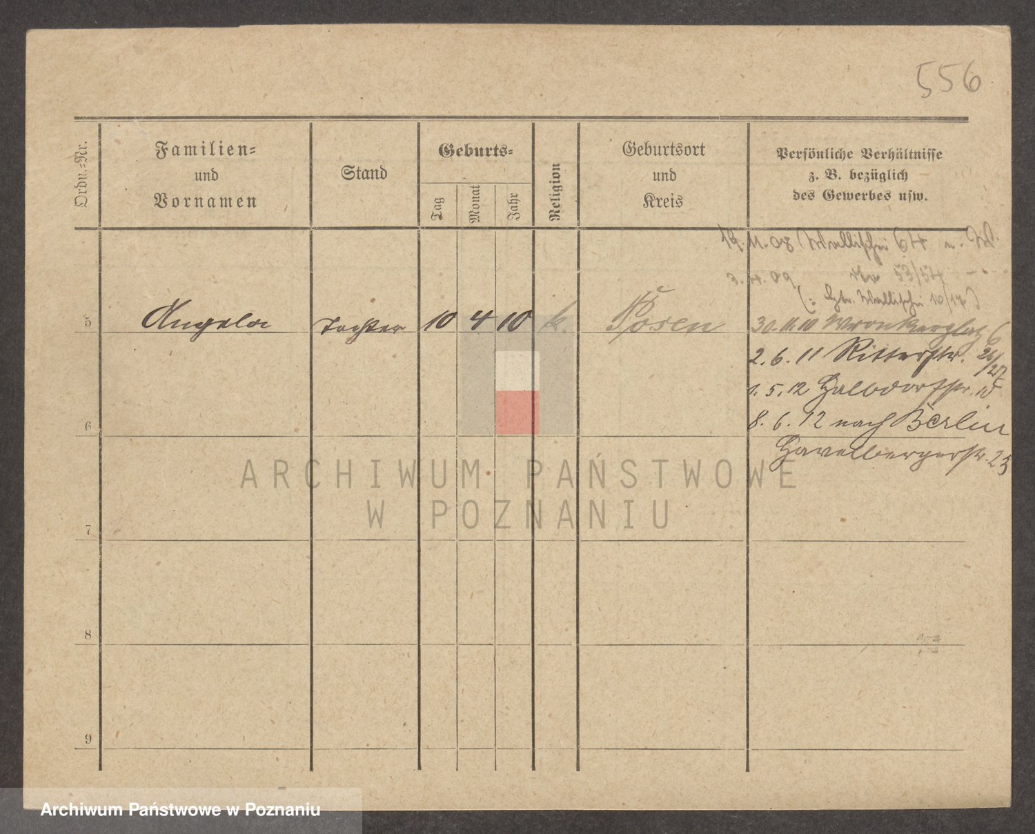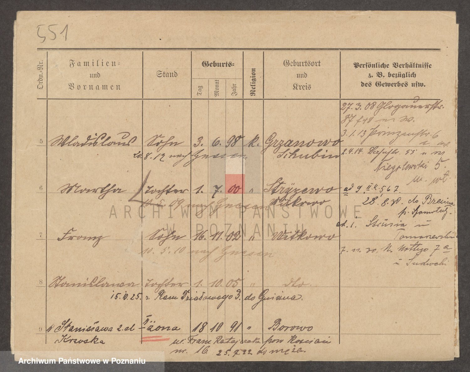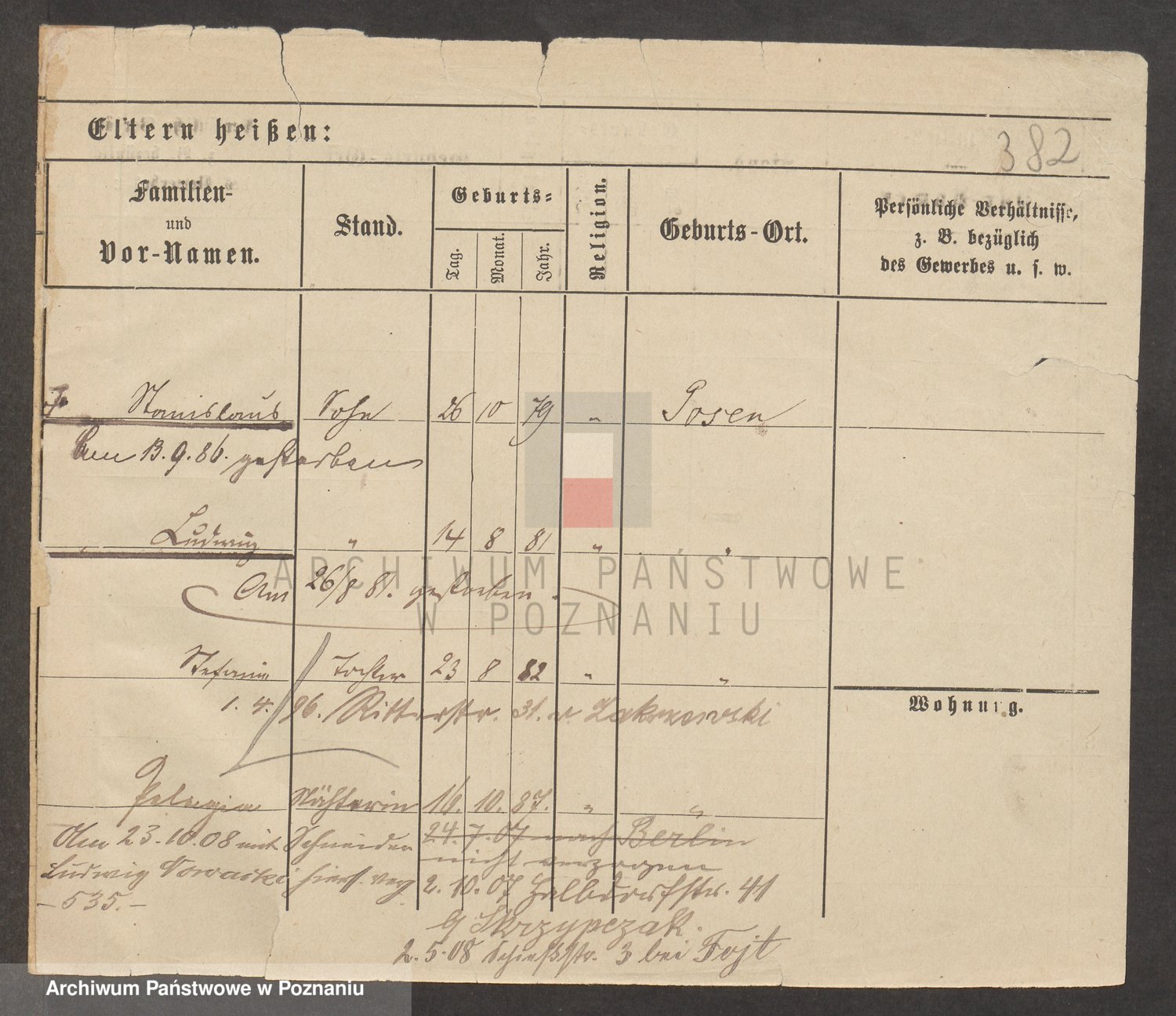 Podgląd karty osobowej dostępny jest po kliknięciu na nazwisko lub ikonkę karty. Można dokonywać powiększenia (ikony na górze) lub przechodzić między kolejnymi skanami (strzałki po bokach).