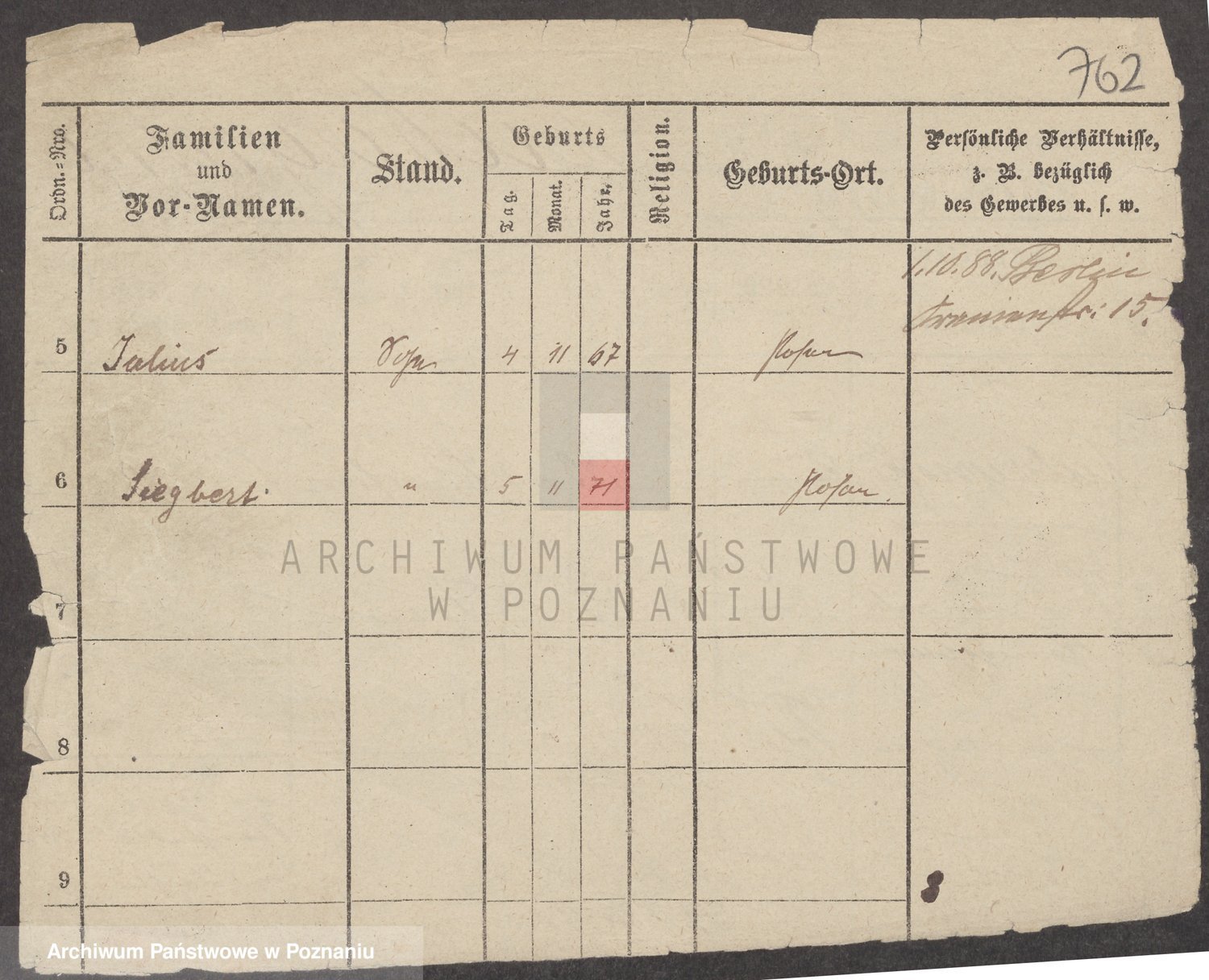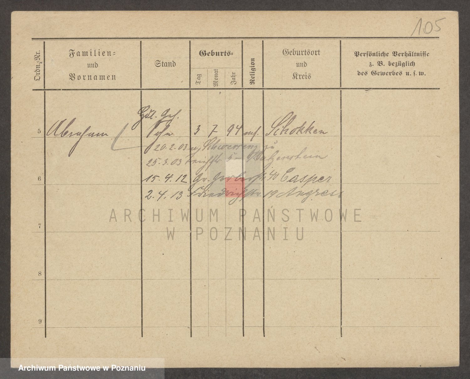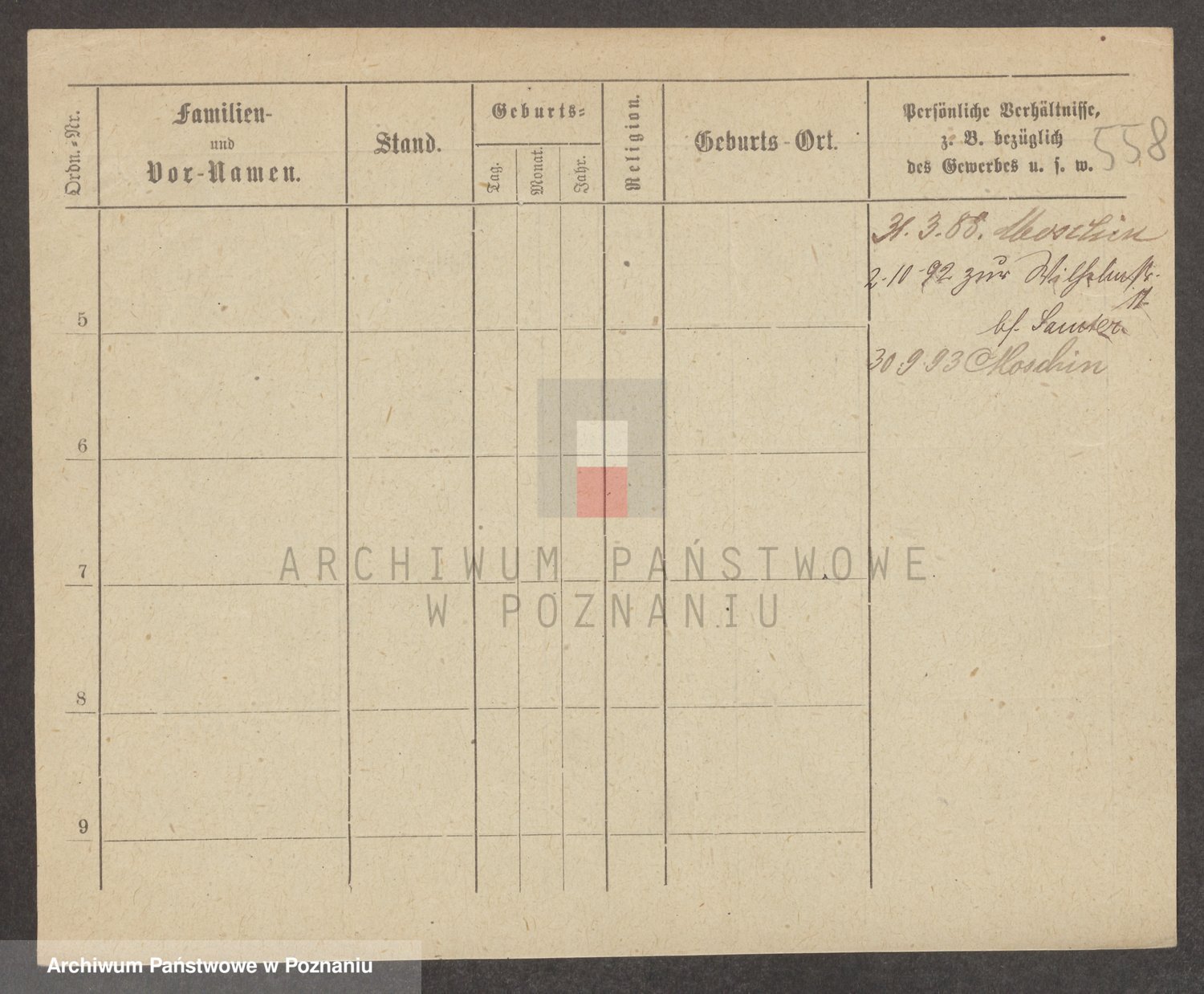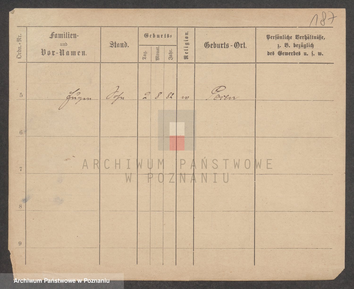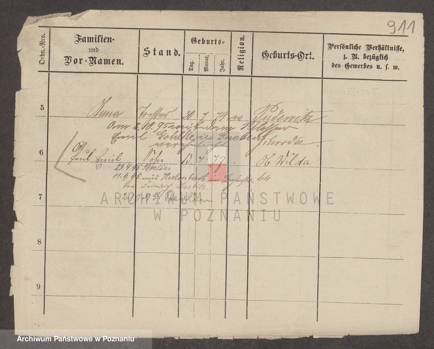 Podgląd karty osobowej dostępny jest po kliknięciu na nazwisko lub ikonkę karty. Można dokonywać powiększenia (ikony na górze) lub przechodzić między kolejnymi skanami (strzałki po bokach).