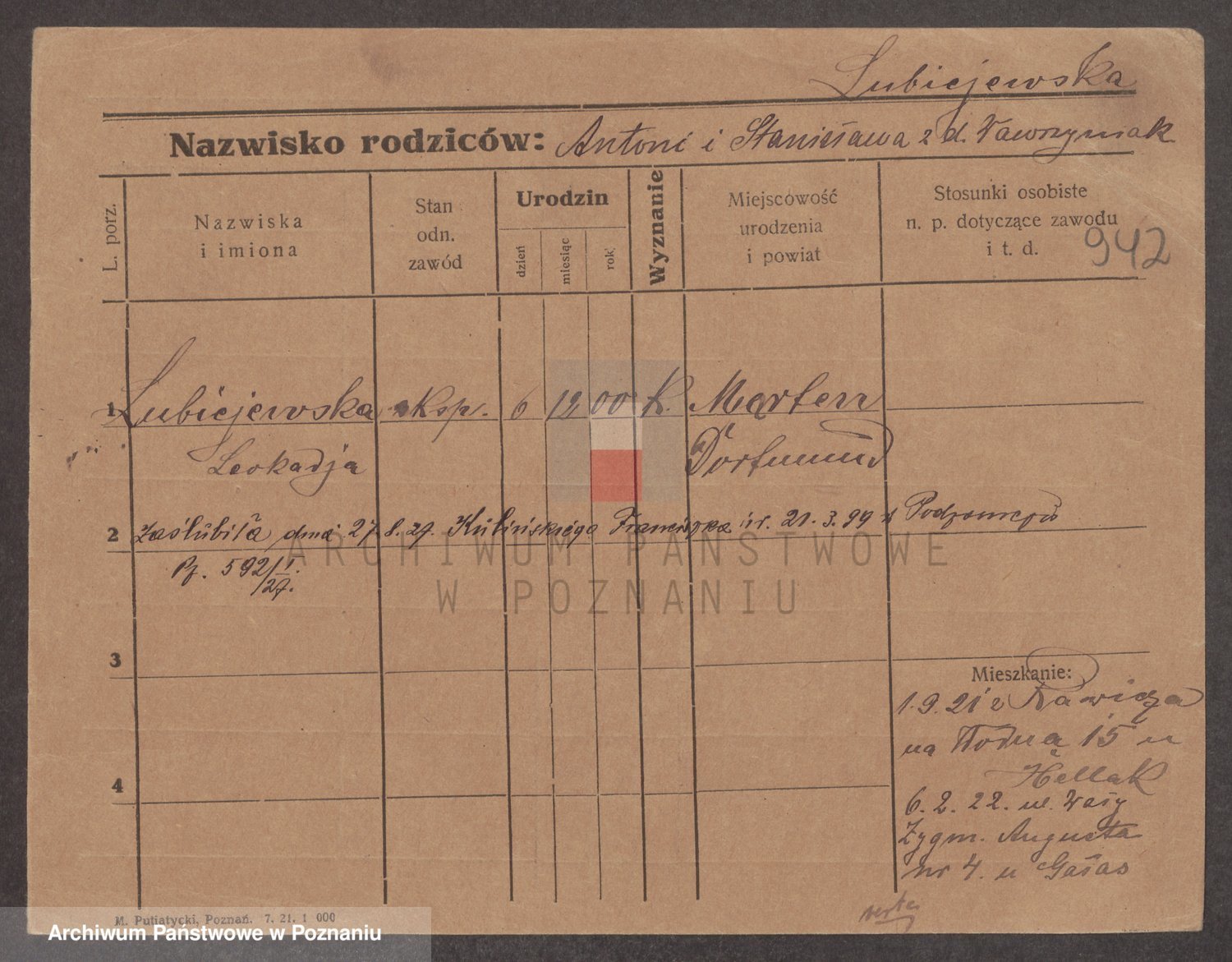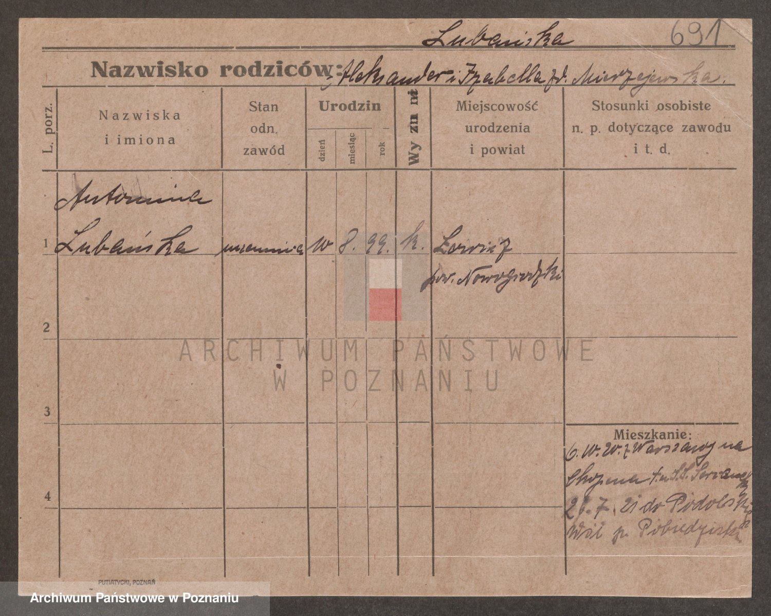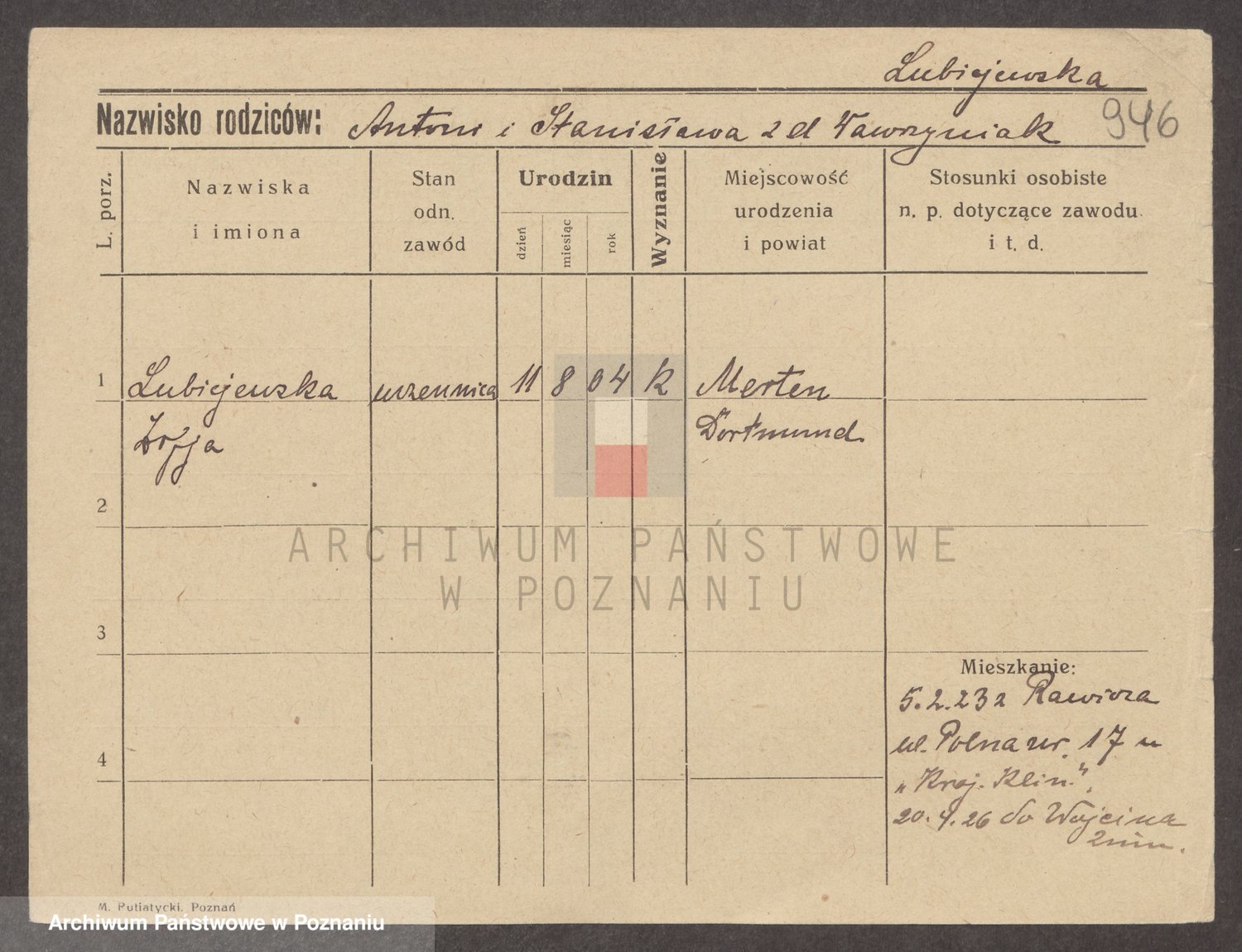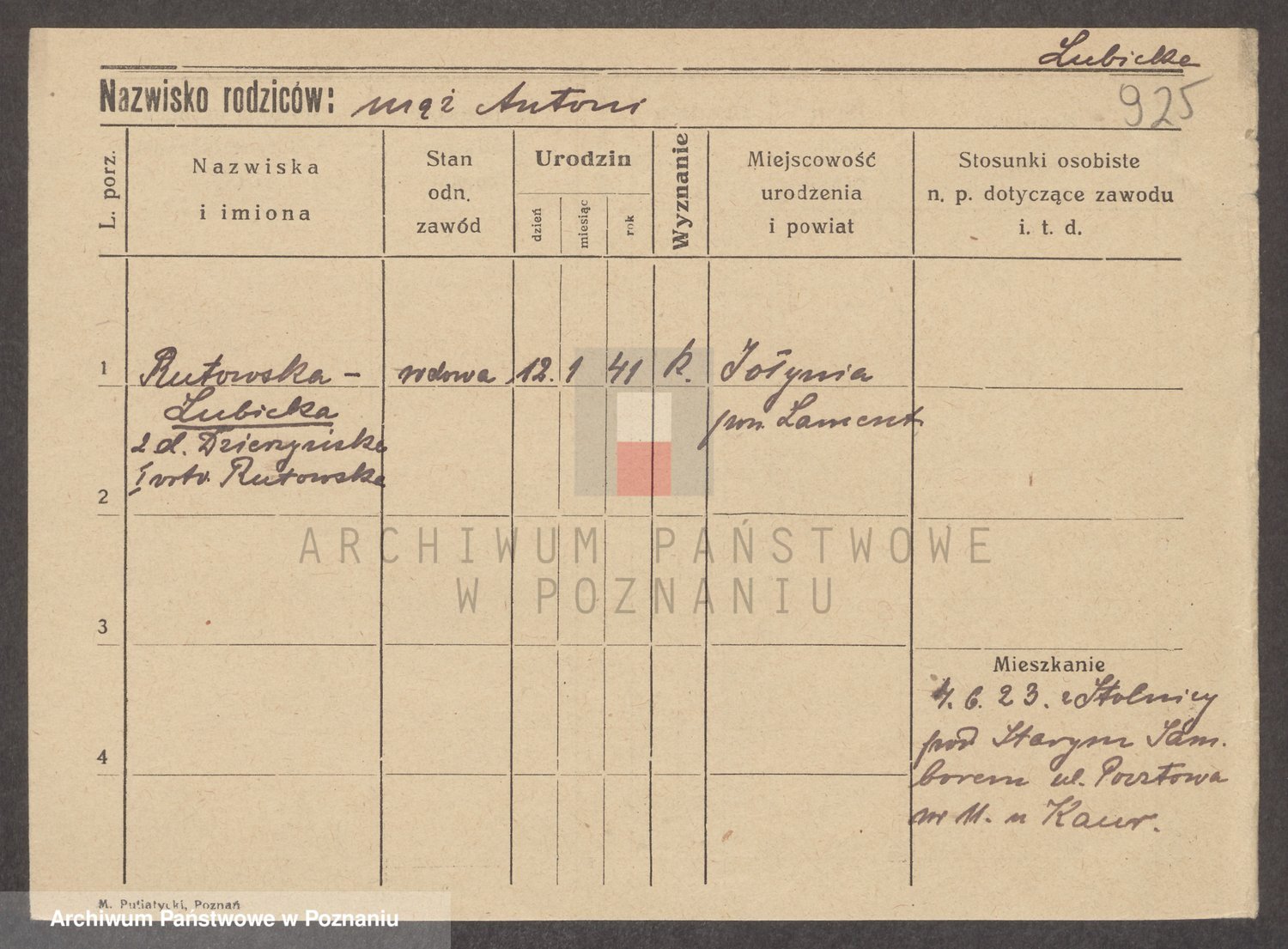 Lubierski z.d. Jakubowska, Antonie