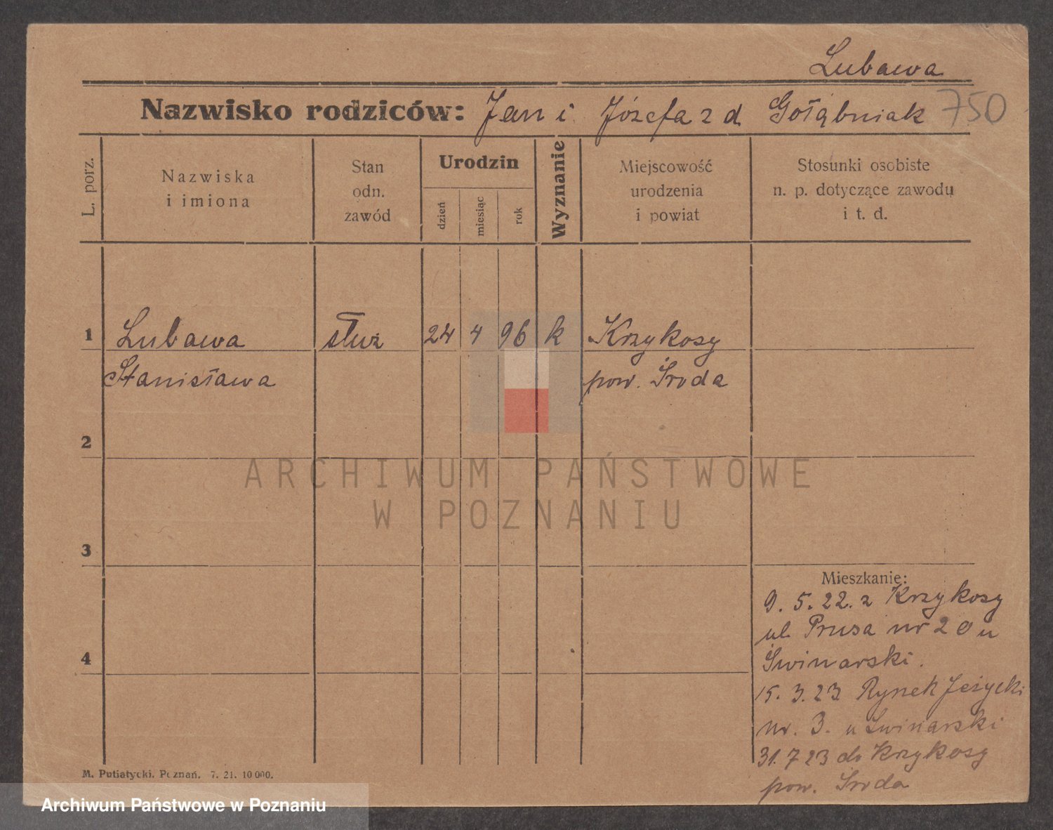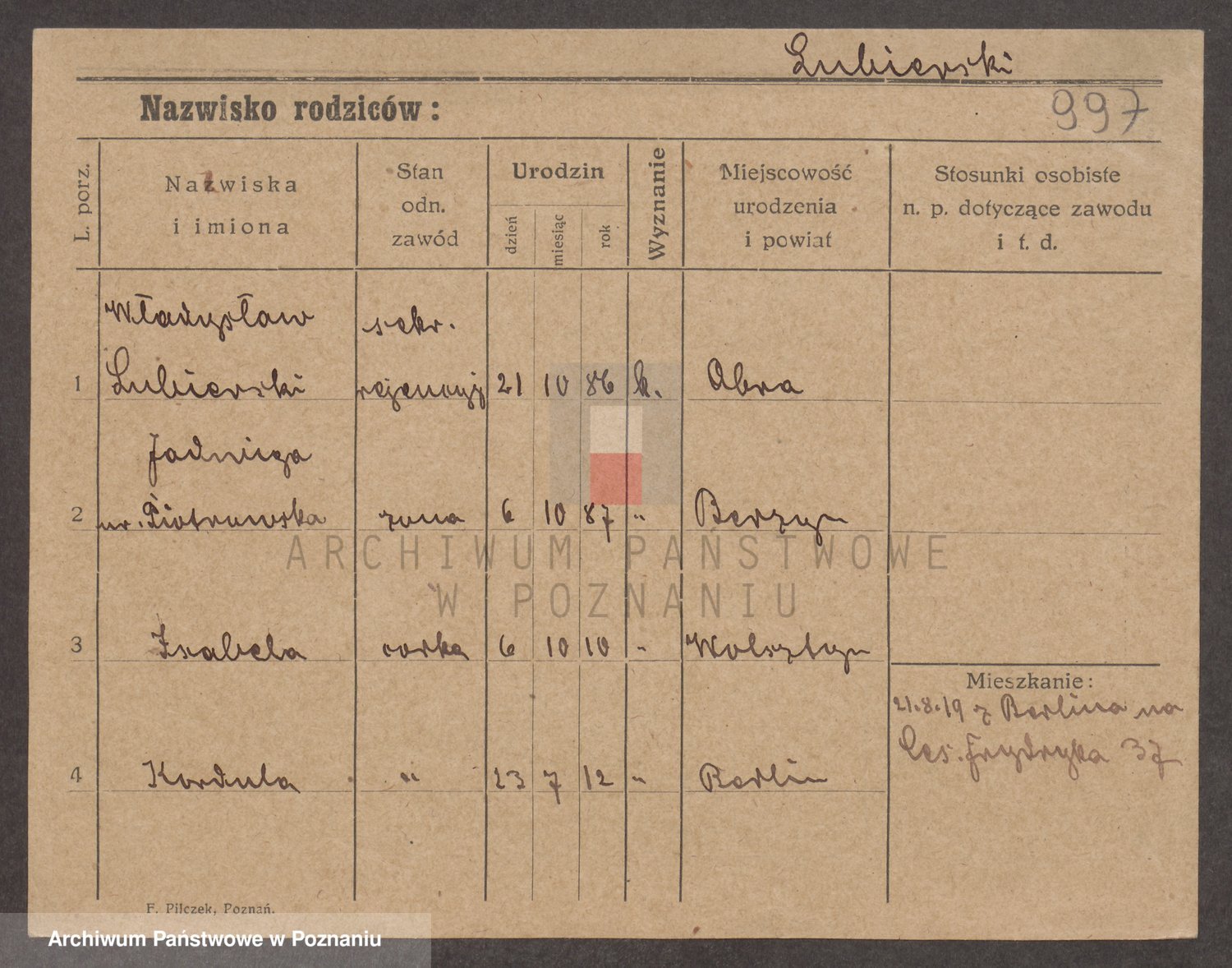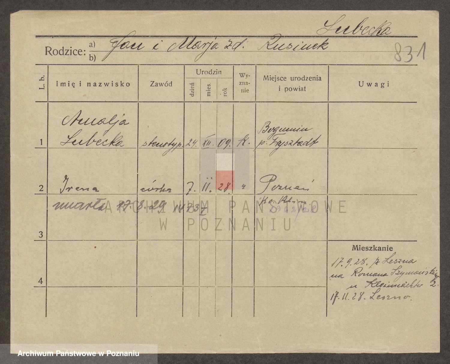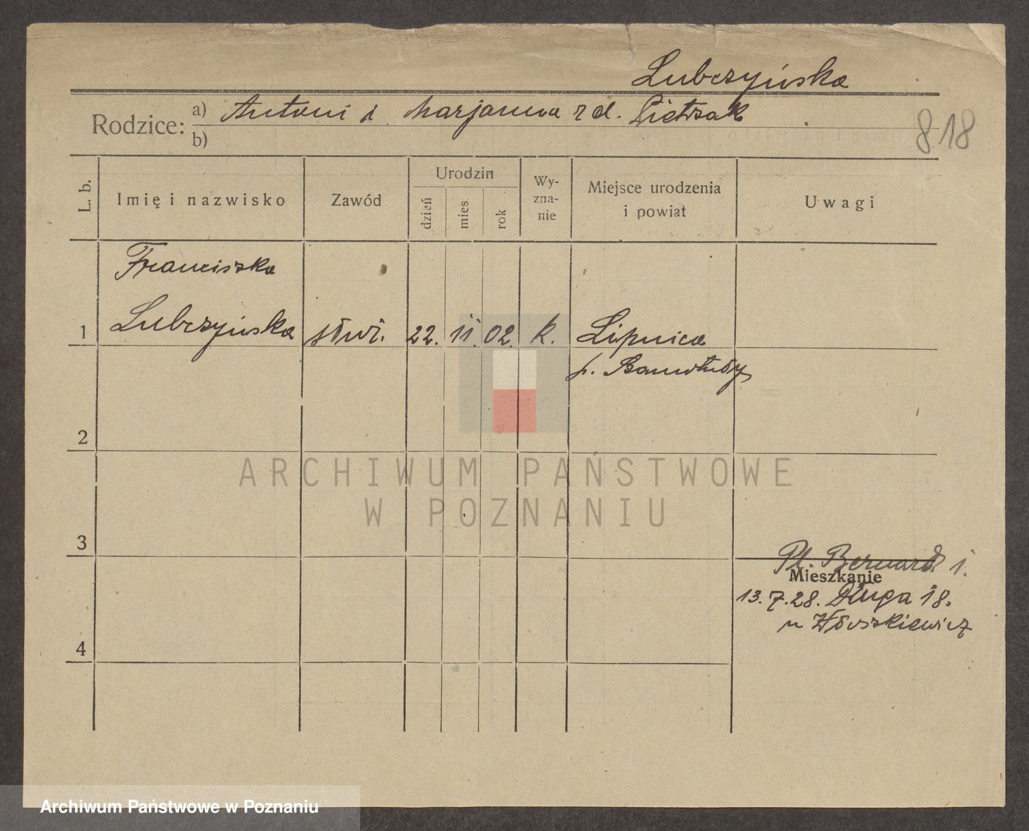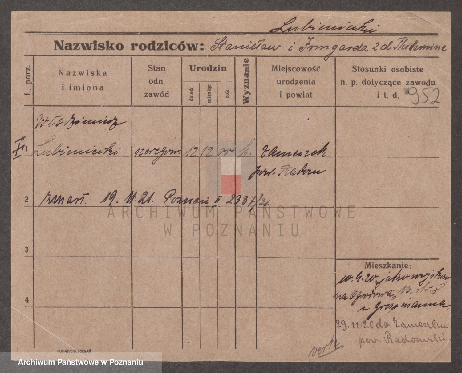 Lubierski z.d. Jakubowska, Antonie