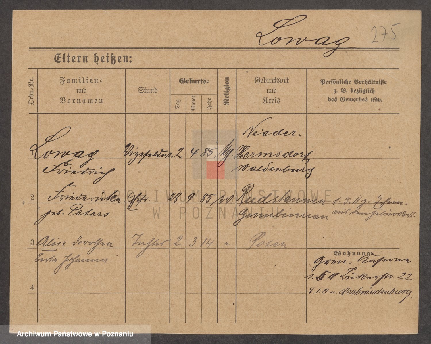 Lubig z.d. Zeidler, Hedwig Marie