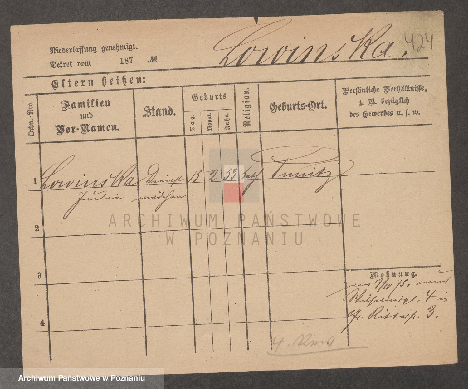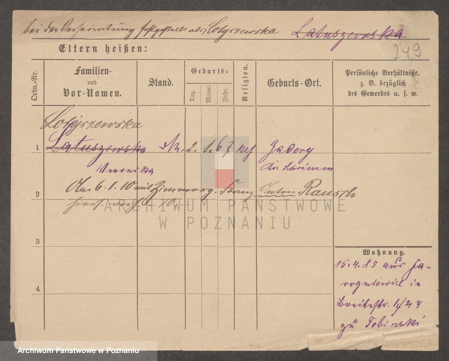 Lossow von z.d. Von Twardowska, Severine