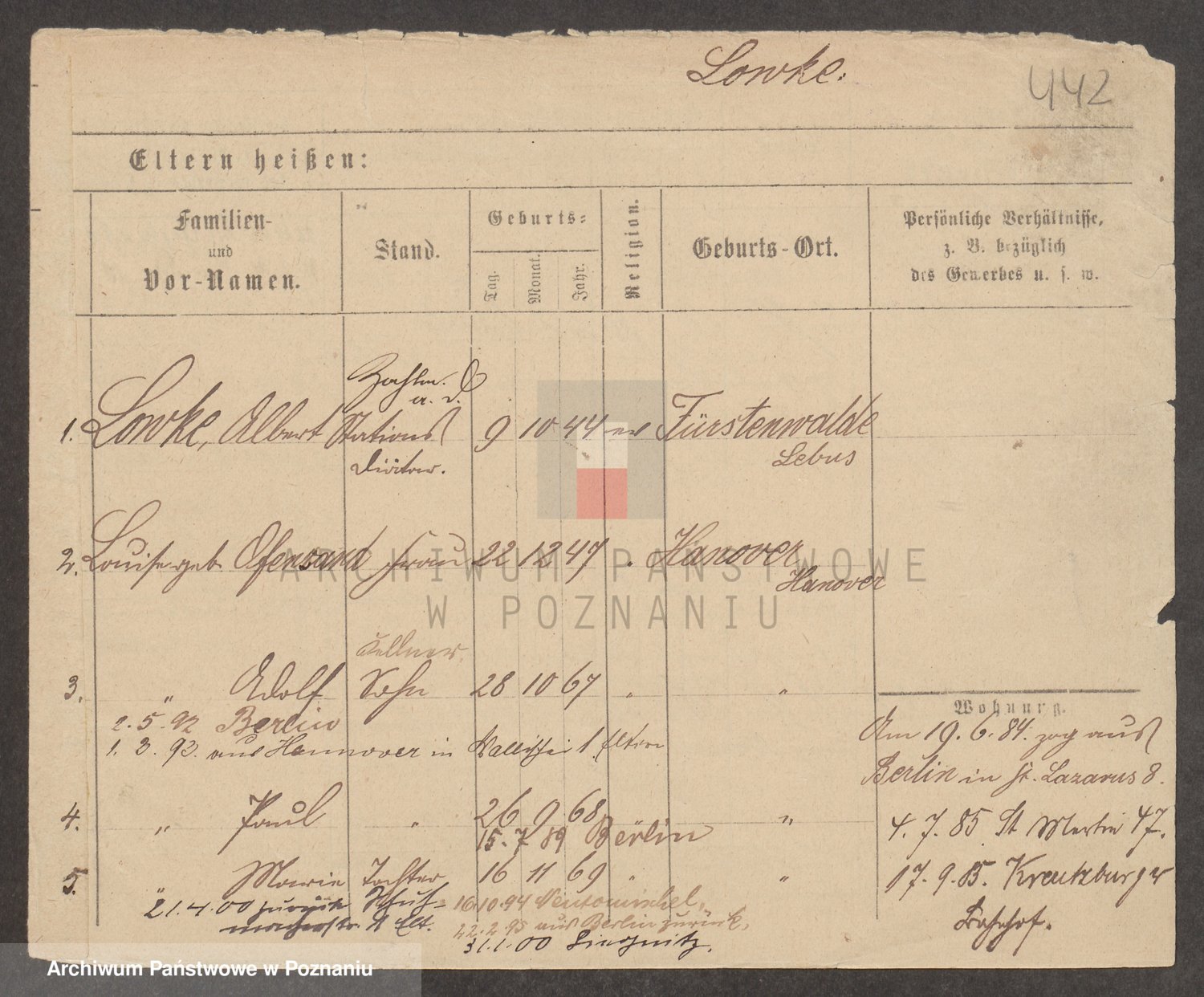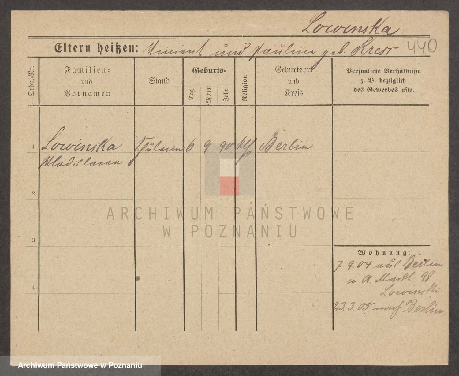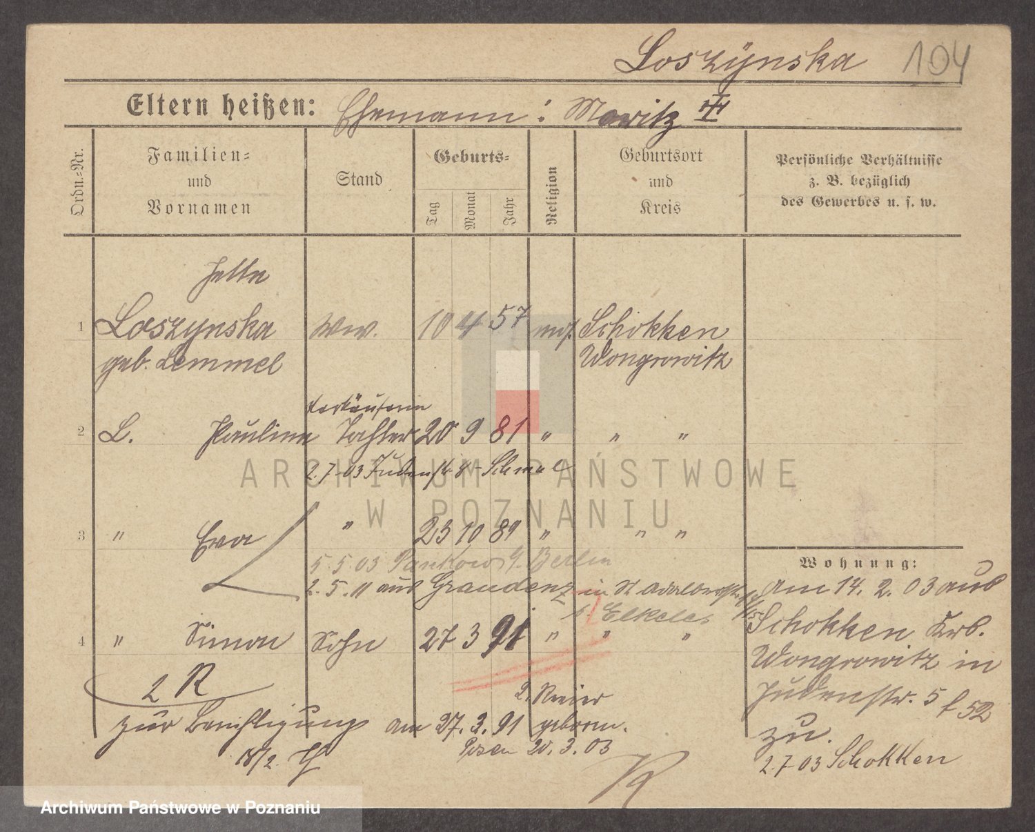 Lossow von z.d. Von Lyskowska, Irene