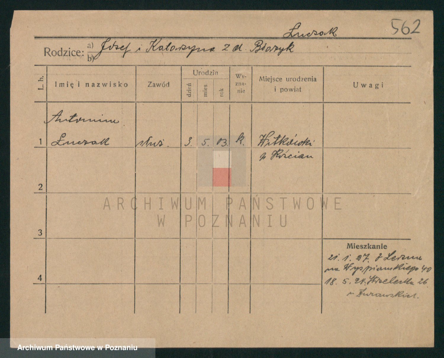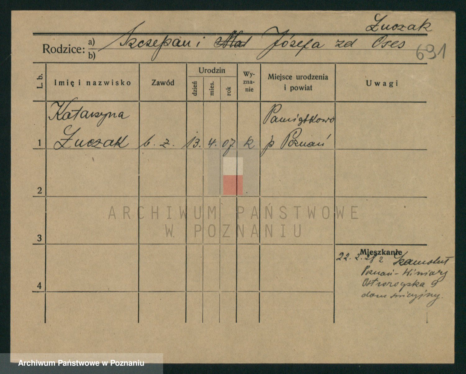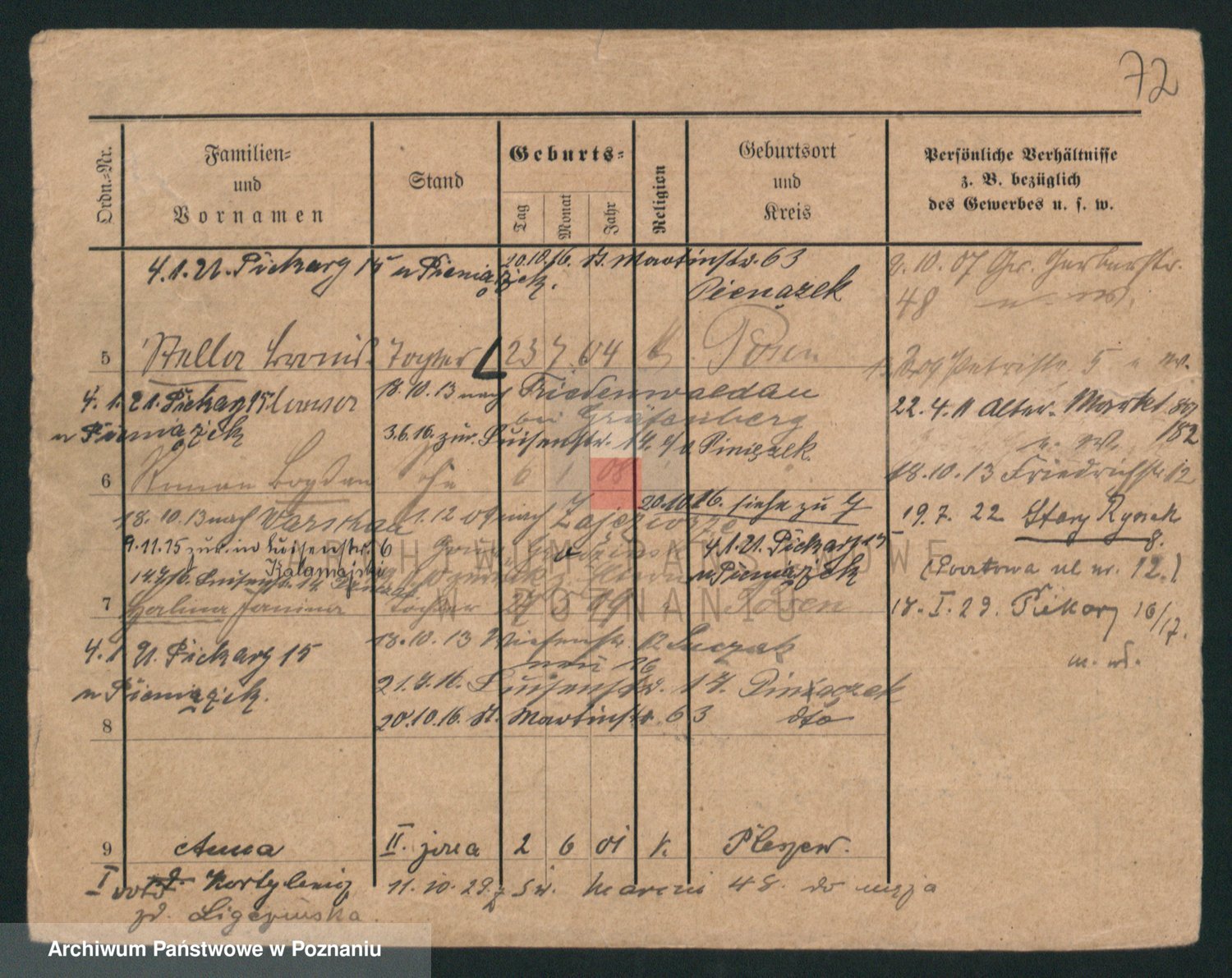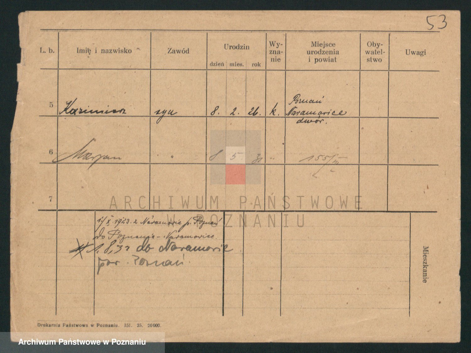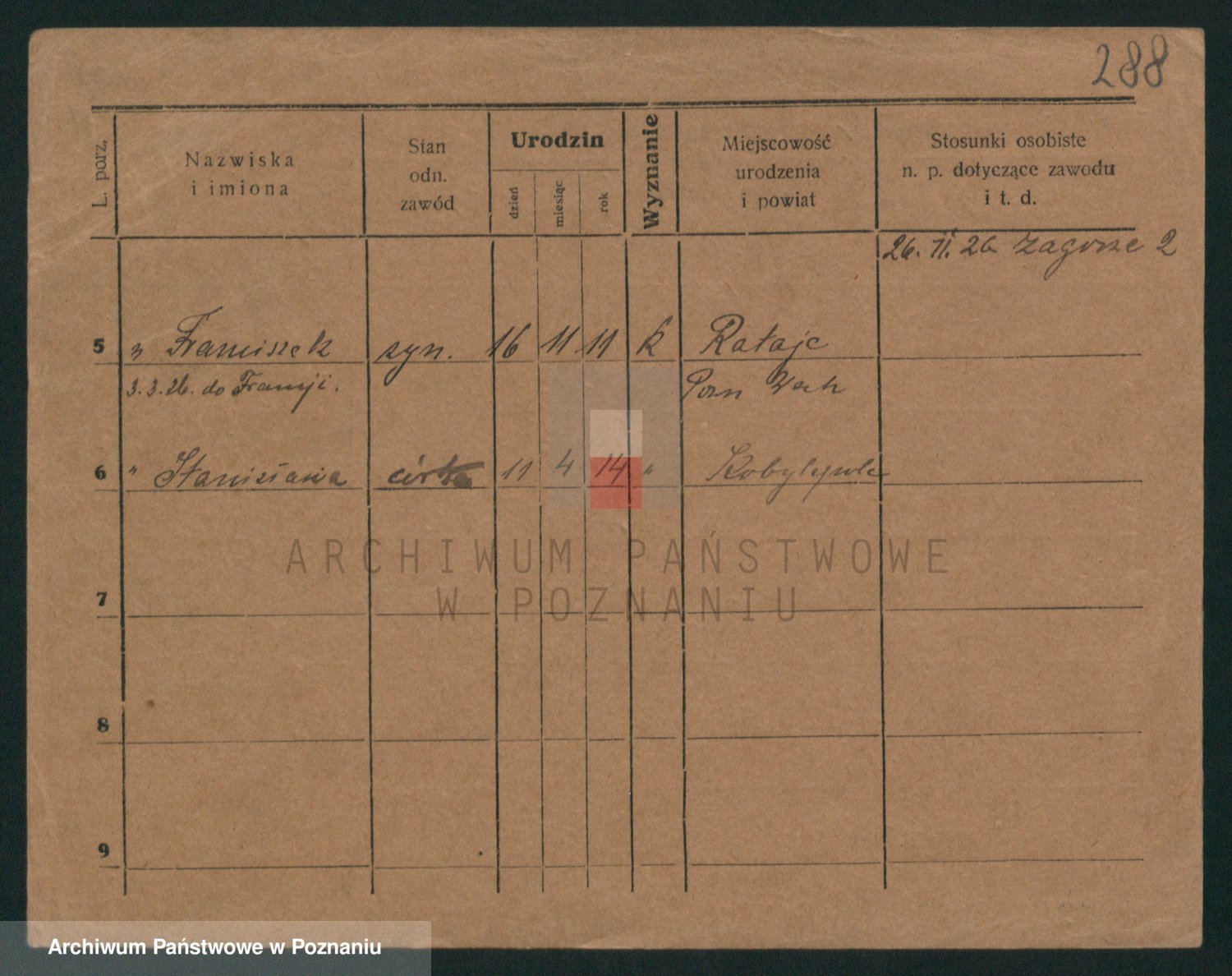 Podgląd karty osobowej dostępny jest po kliknięciu na nazwisko lub ikonkę karty. Można dokonywać powiększenia (ikony na górze) lub przechodzić między kolejnymi skanami (strzałki po bokach).