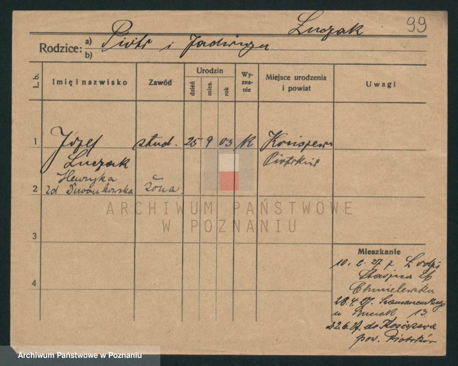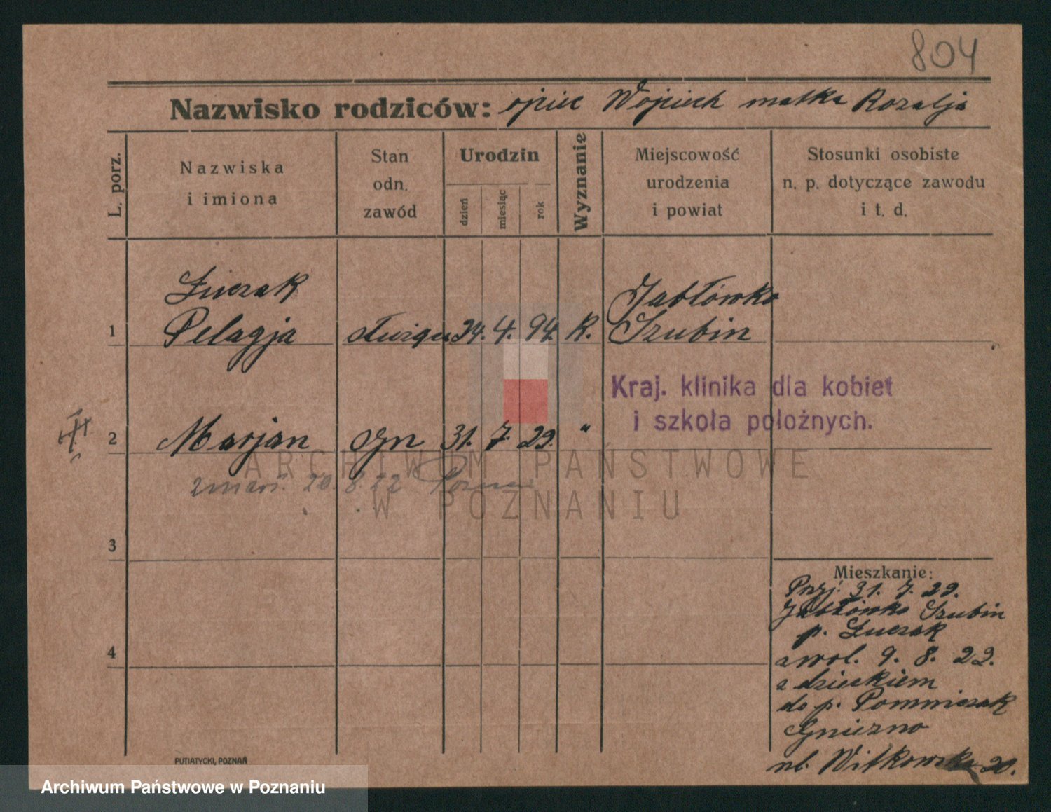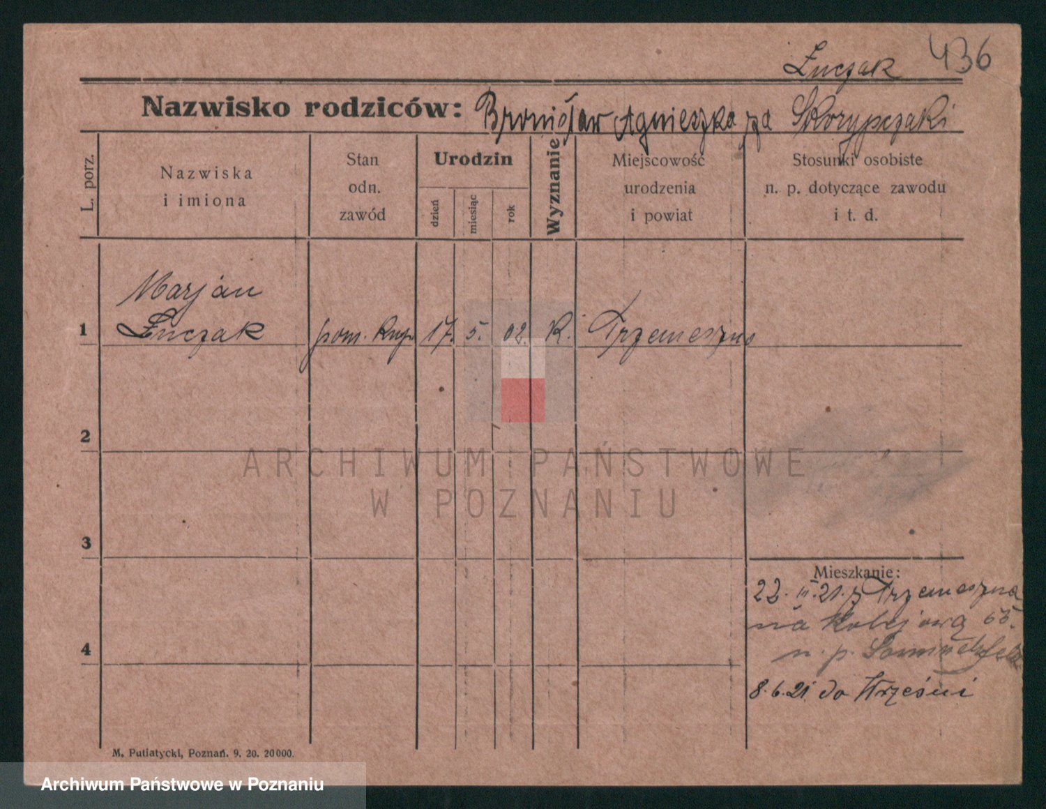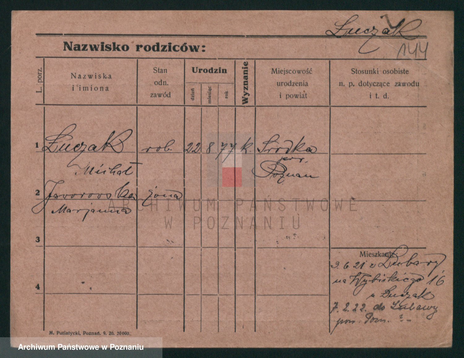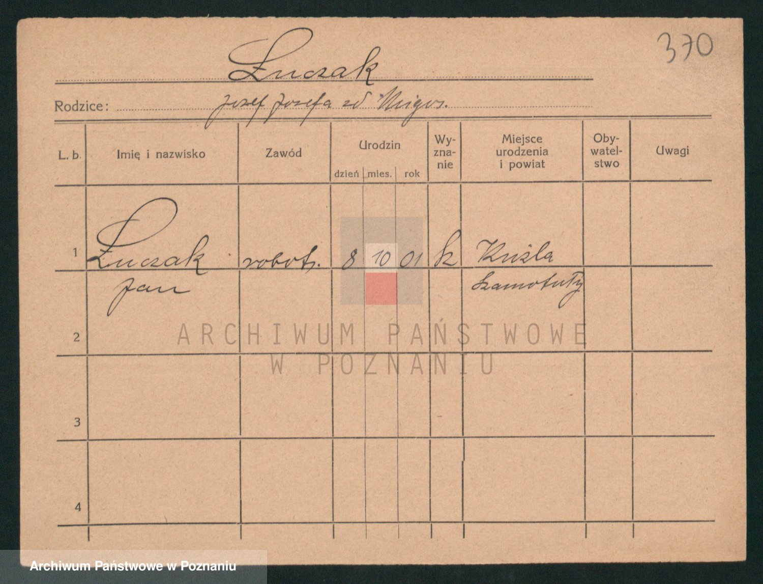 Podgląd karty osobowej dostępny jest po kliknięciu na nazwisko lub ikonkę karty. Można dokonywać powiększenia (ikony na górze) lub przechodzić między kolejnymi skanami (strzałki po bokach).