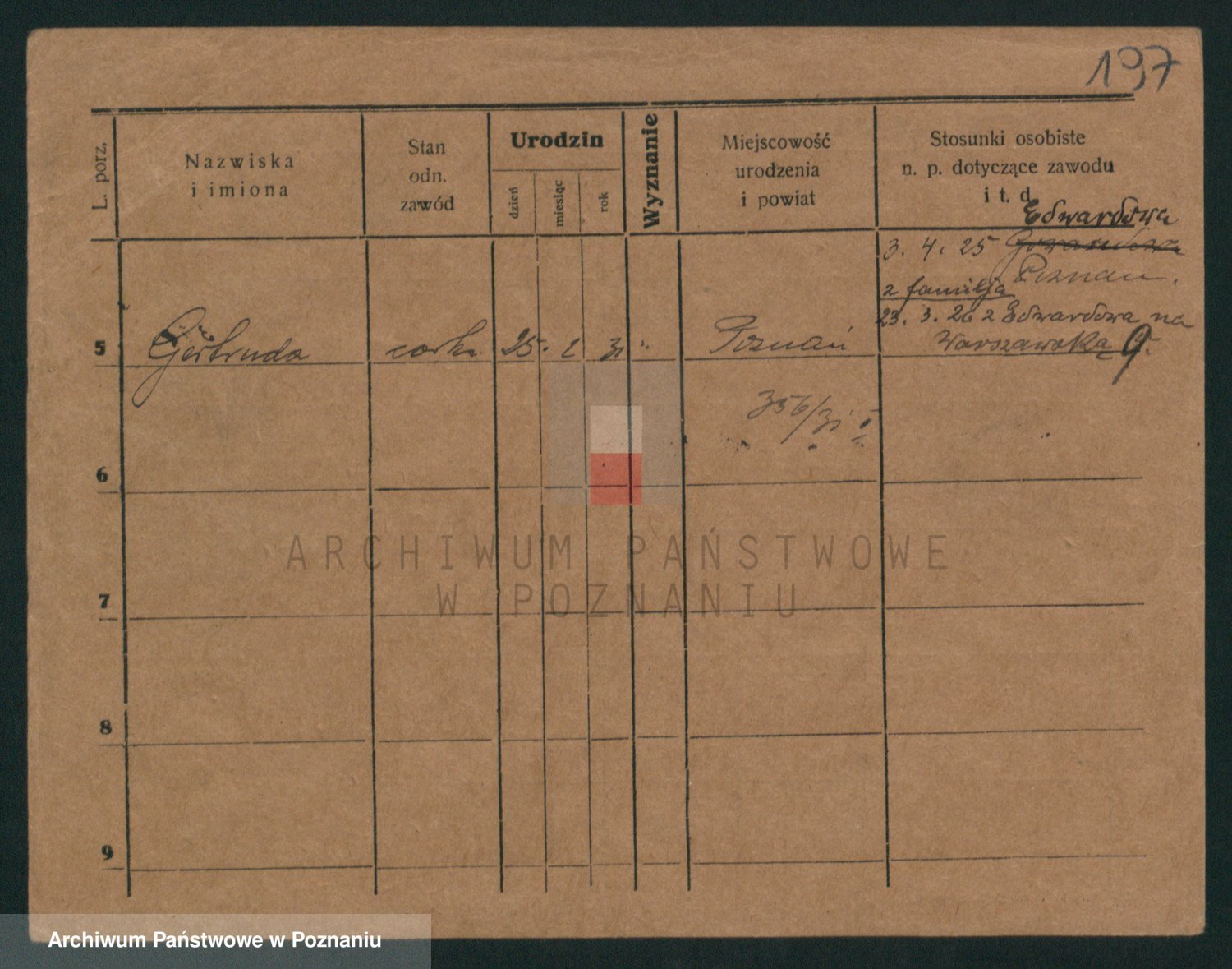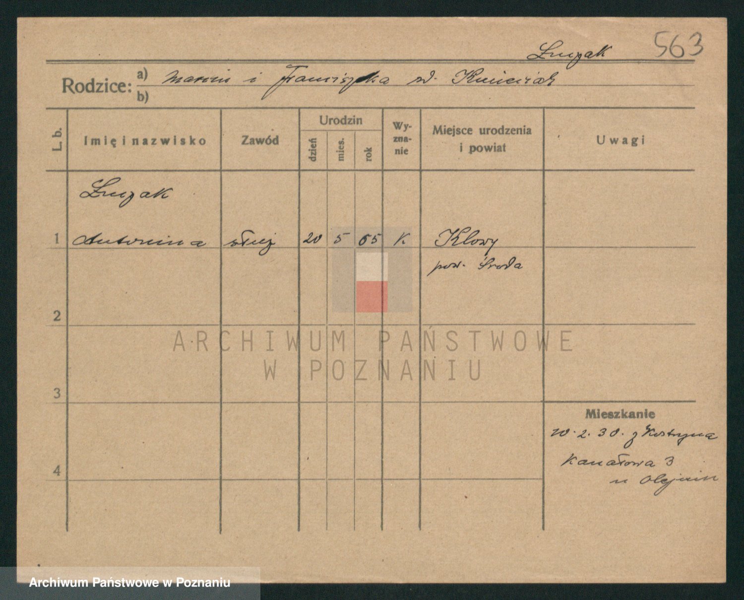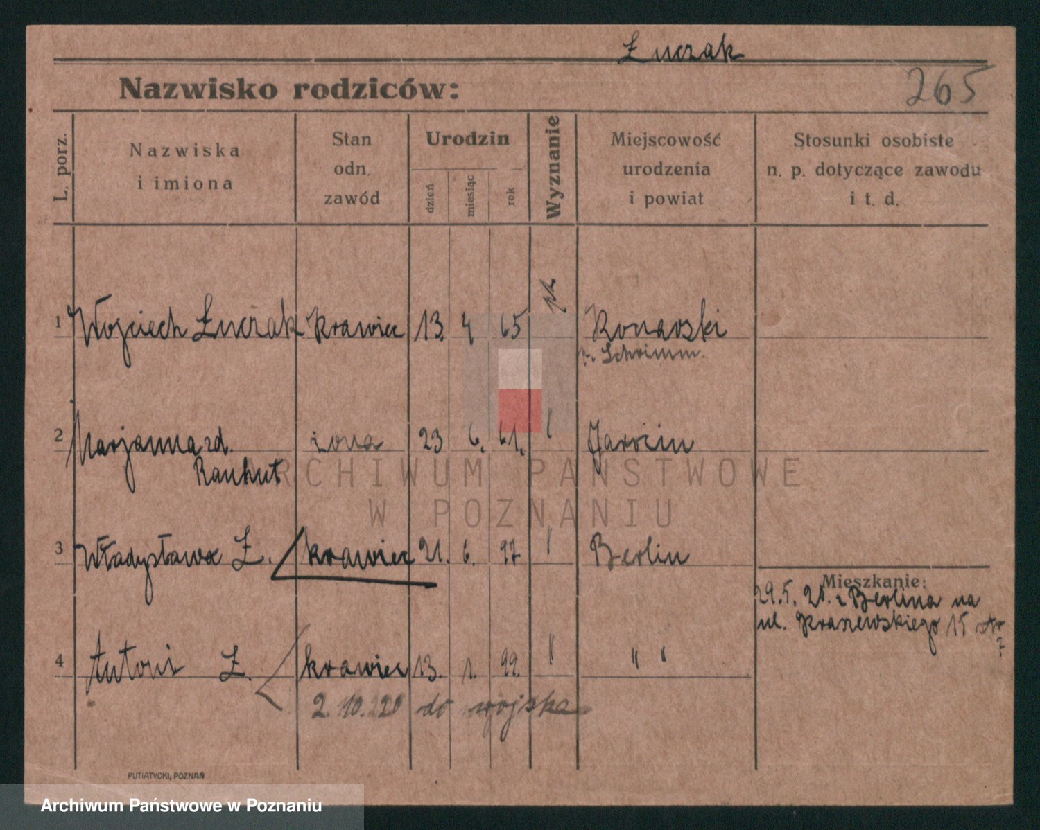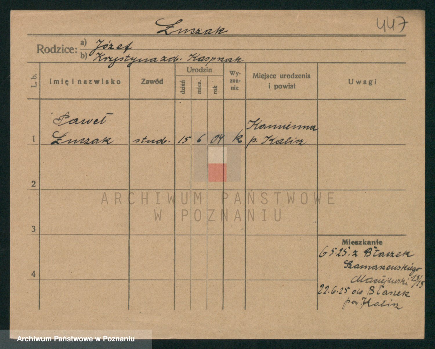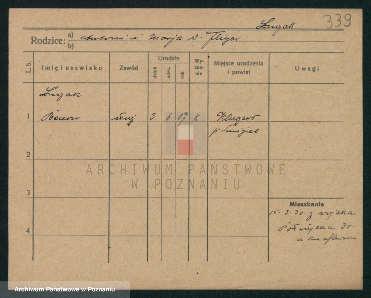 Podgląd karty osobowej dostępny jest po kliknięciu na nazwisko lub ikonkę karty. Można dokonywać powiększenia (ikony na górze) lub przechodzić między kolejnymi skanami (strzałki po bokach).