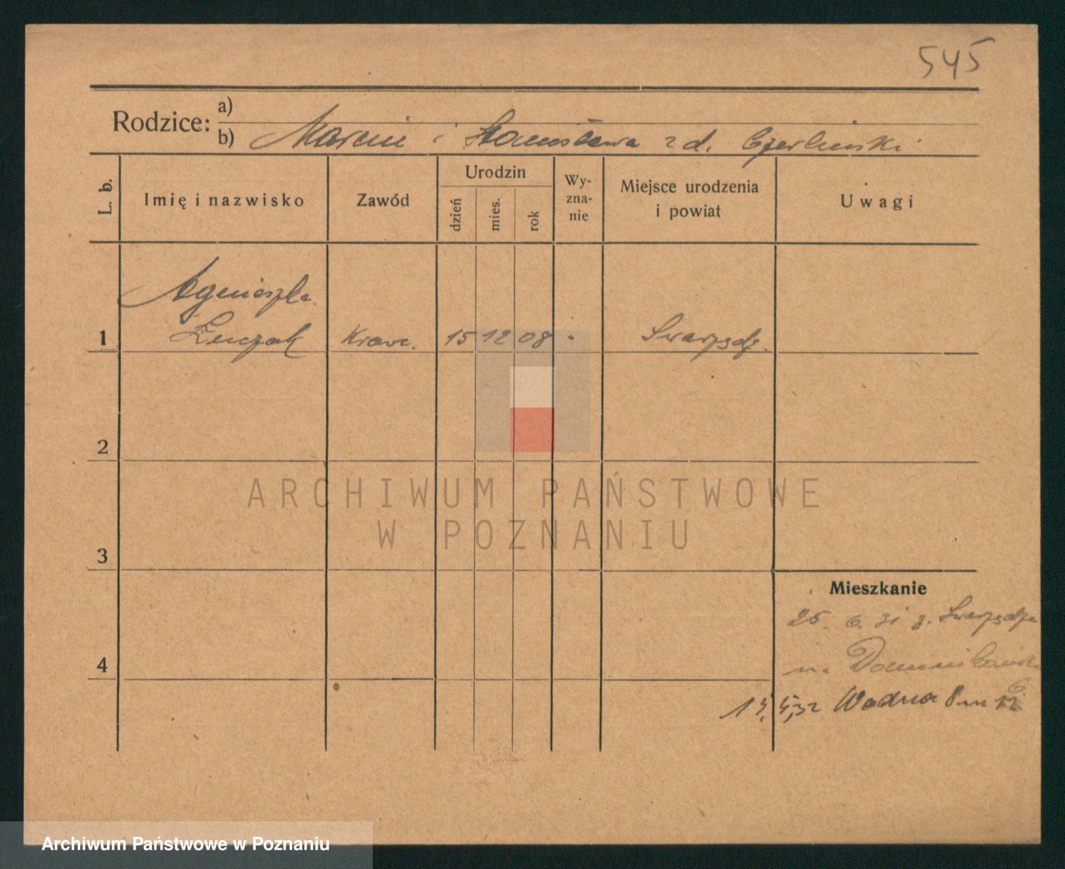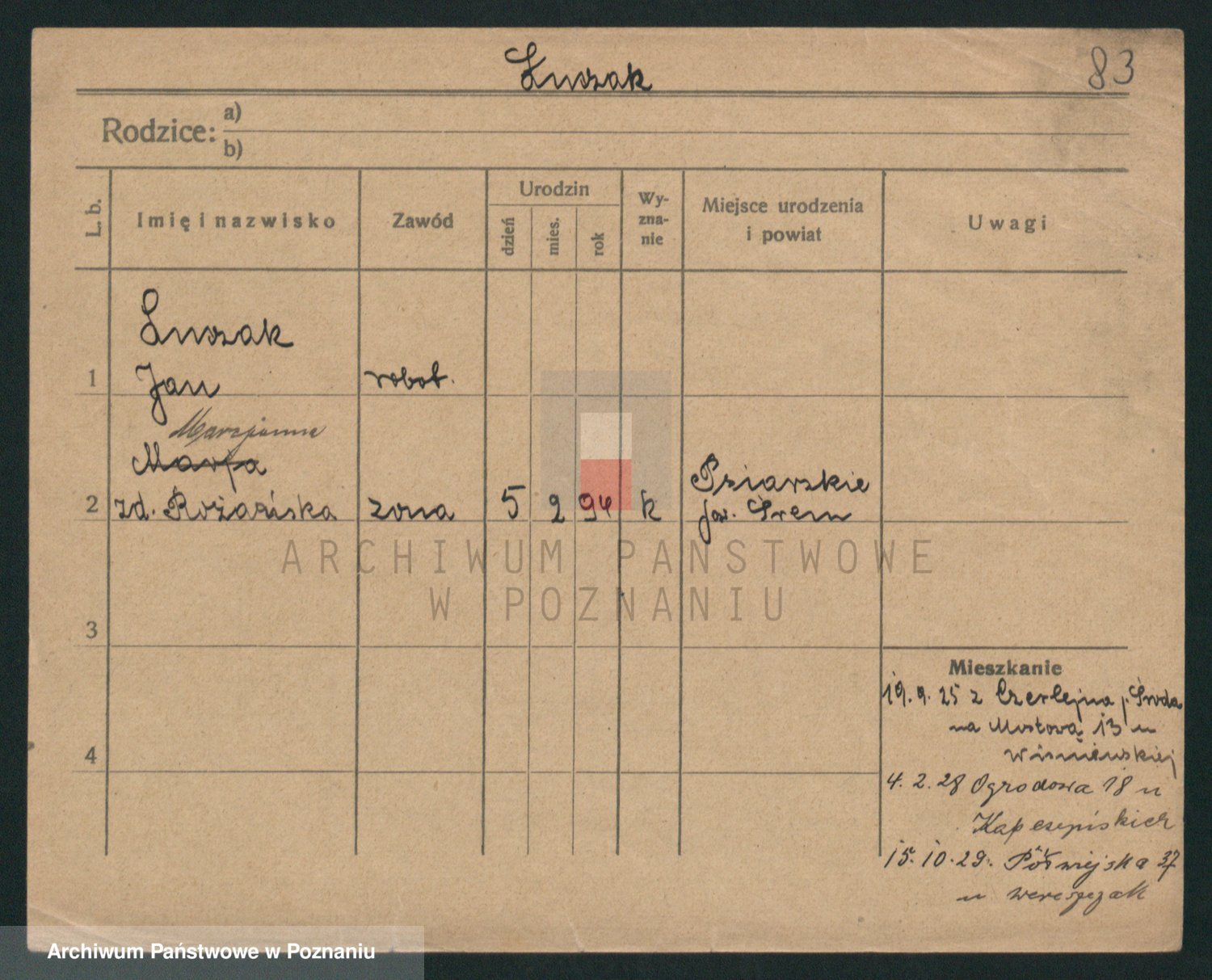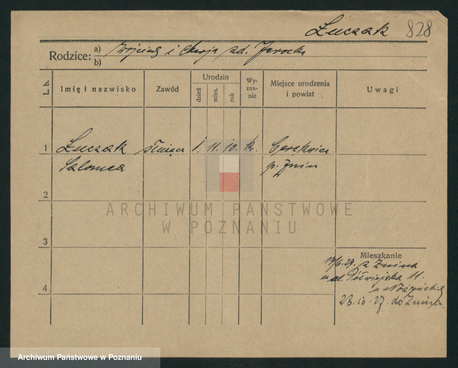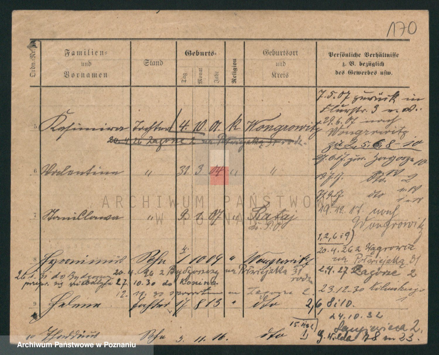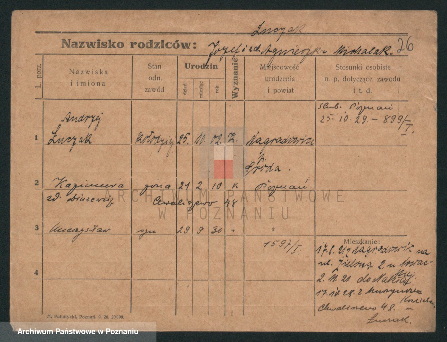 Podgląd karty osobowej dostępny jest po kliknięciu na nazwisko lub ikonkę karty. Można dokonywać powiększenia (ikony na górze) lub przechodzić między kolejnymi skanami (strzałki po bokach).