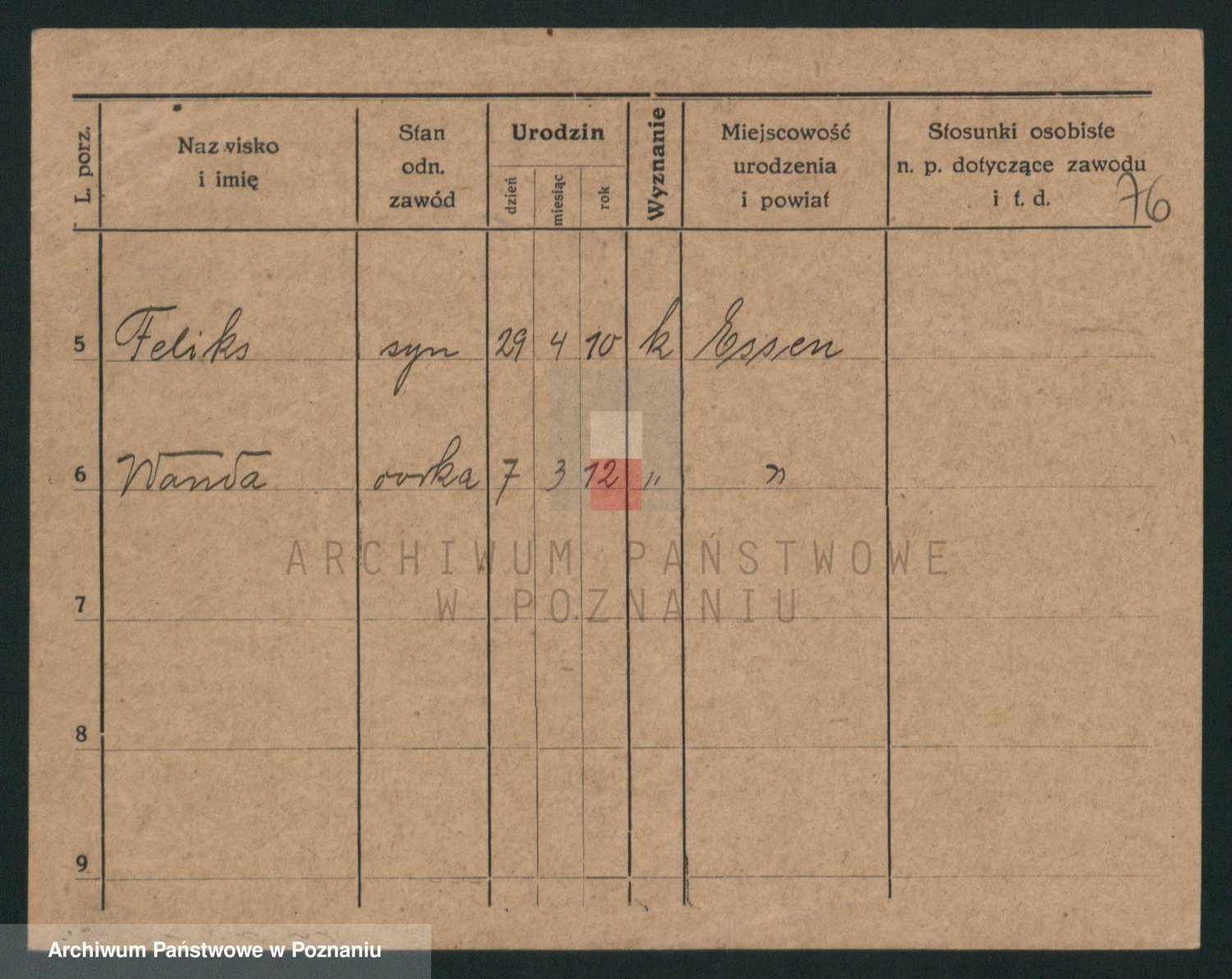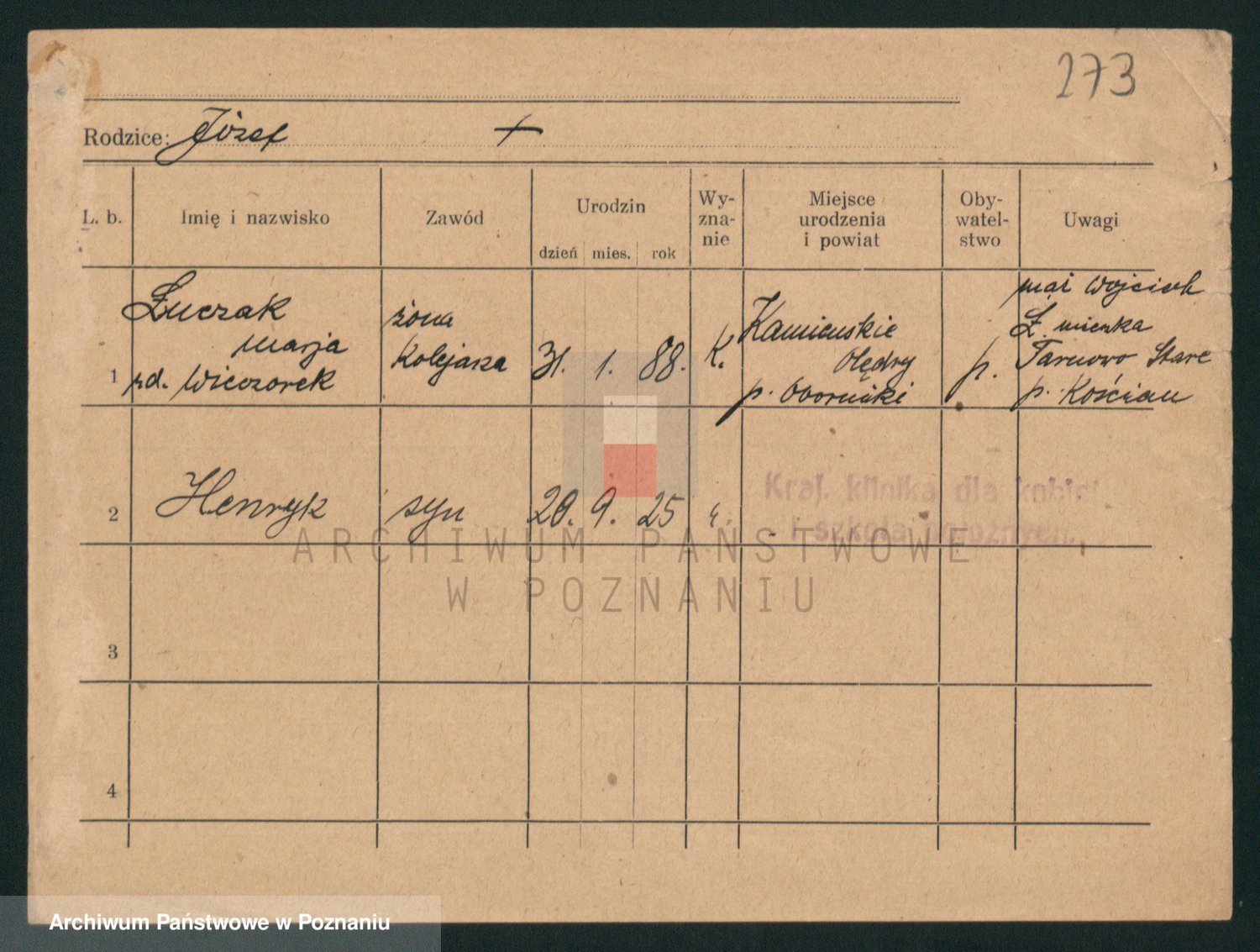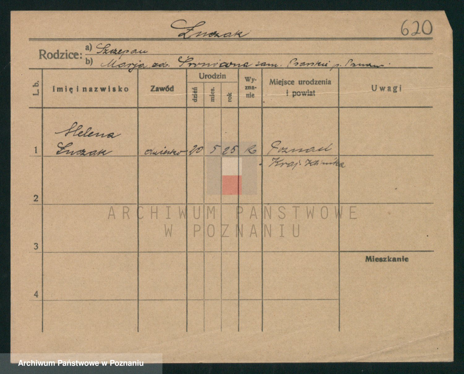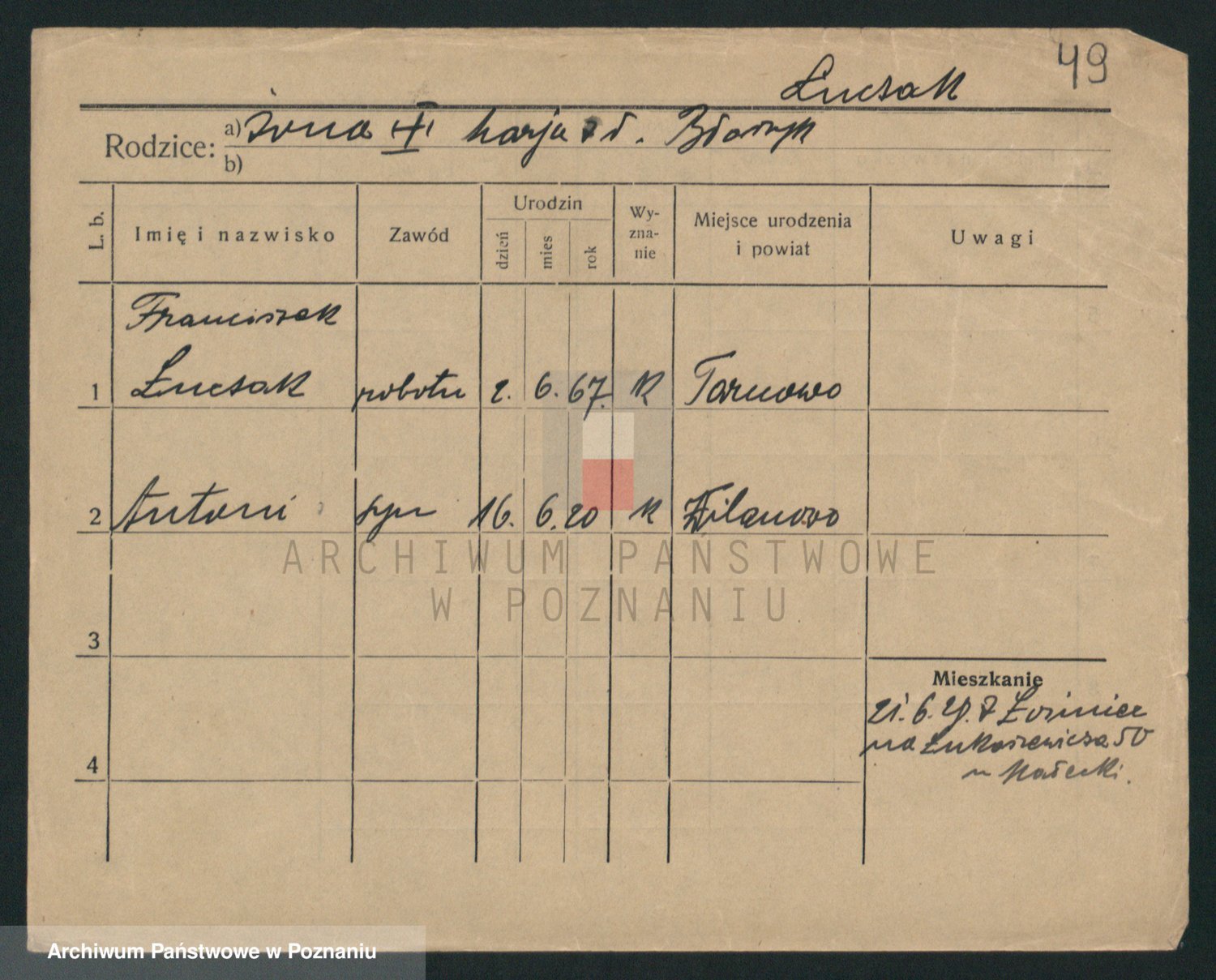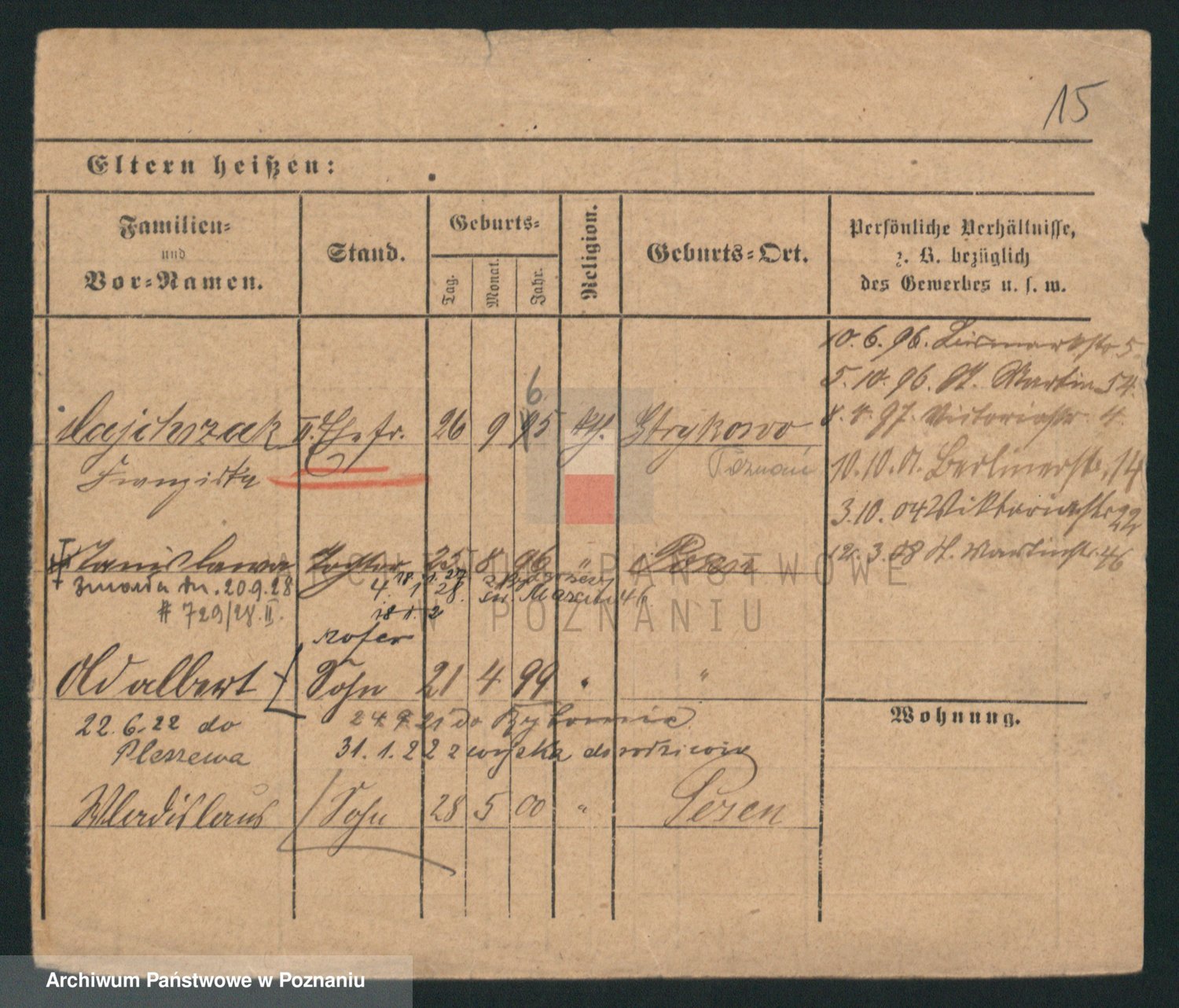 Podgląd karty osobowej dostępny jest po kliknięciu na nazwisko lub ikonkę karty. Można dokonywać powiększenia (ikony na górze) lub przechodzić między kolejnymi skanami (strzałki po bokach).