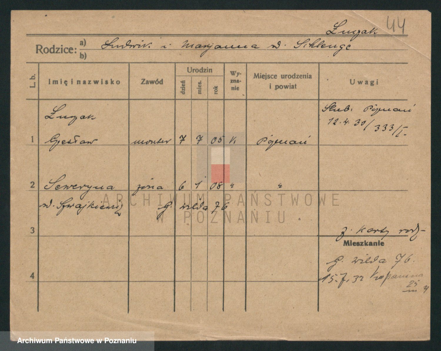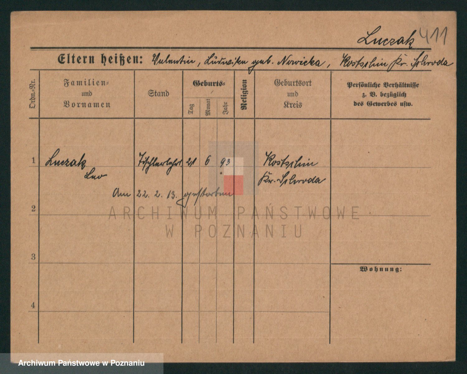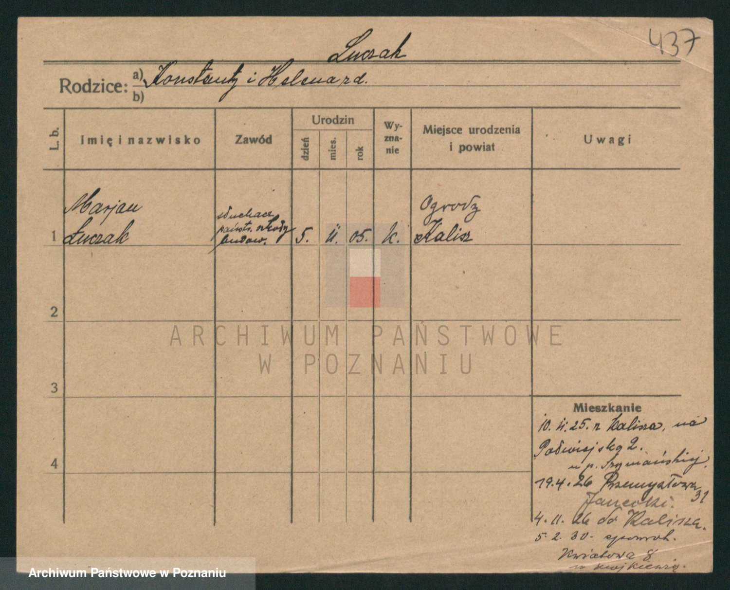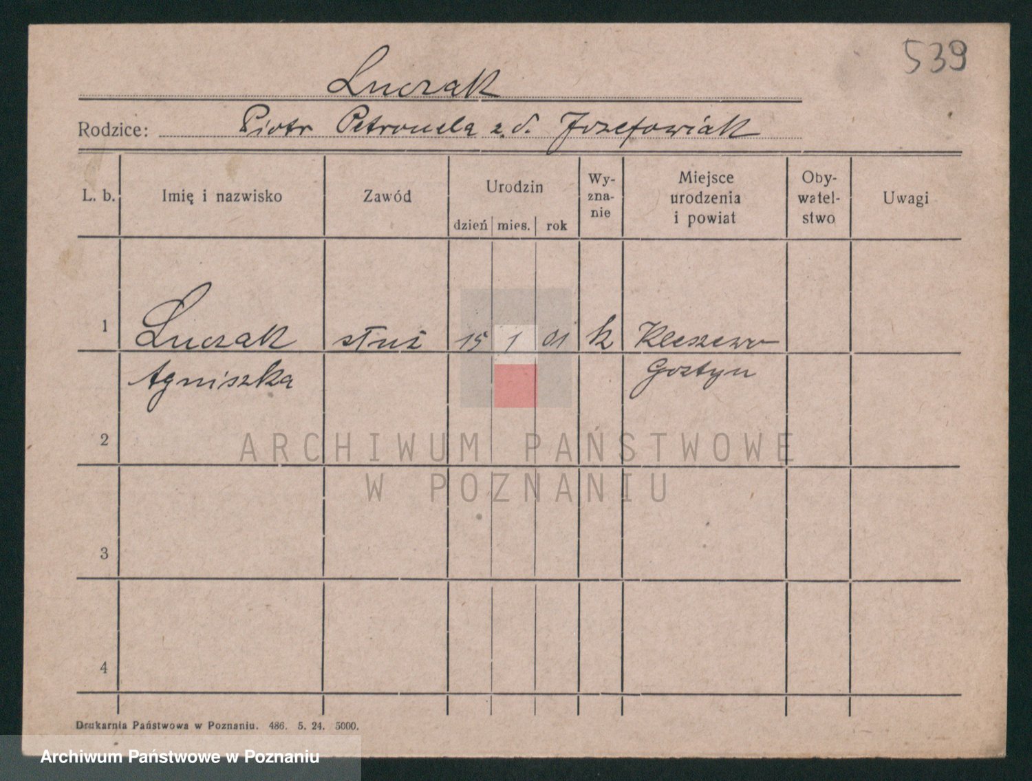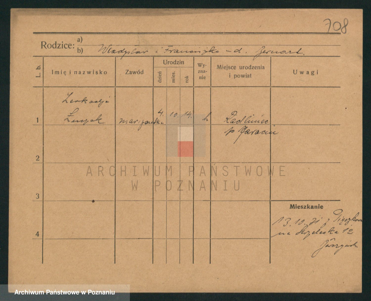 Podgląd karty osobowej dostępny jest po kliknięciu na nazwisko lub ikonkę karty. Można dokonywać powiększenia (ikony na górze) lub przechodzić między kolejnymi skanami (strzałki po bokach).