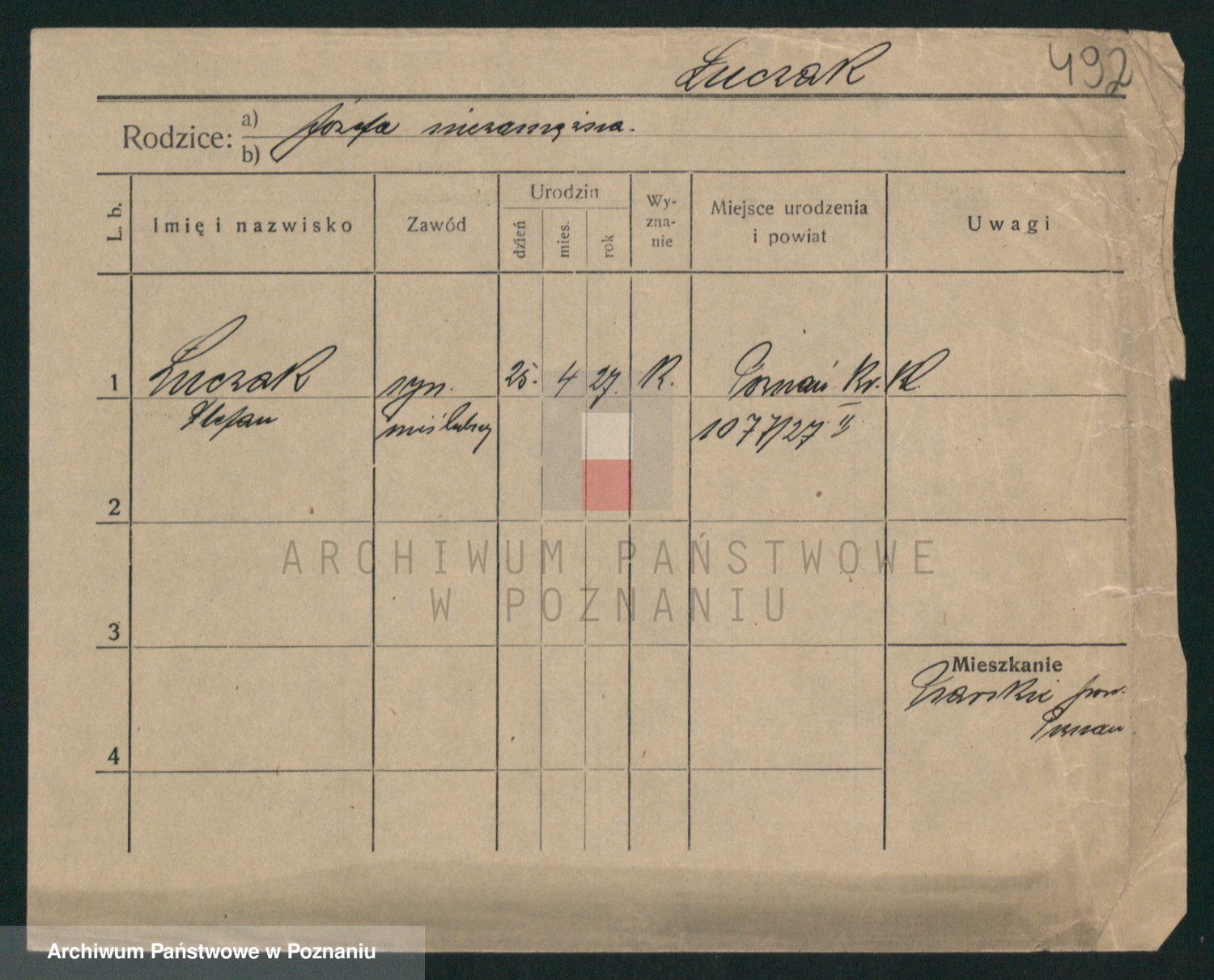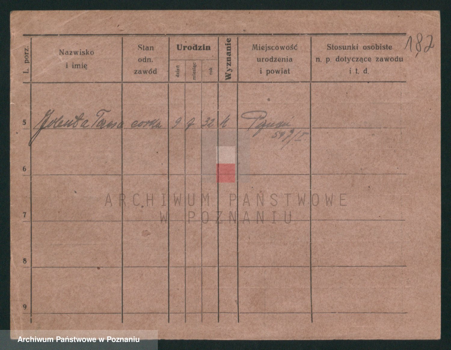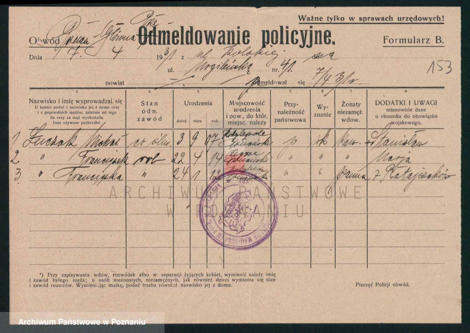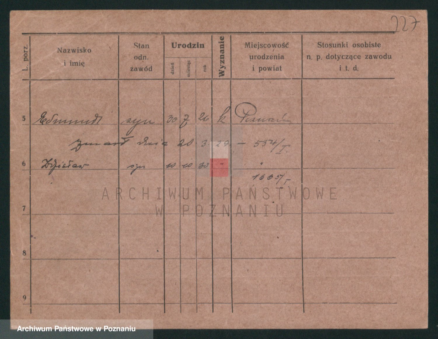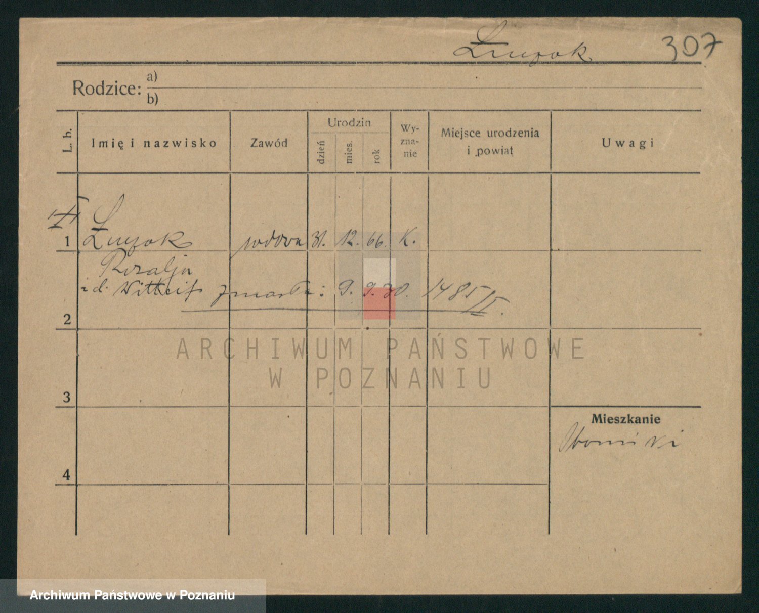 Podgląd karty osobowej dostępny jest po kliknięciu na nazwisko lub ikonkę karty. Można dokonywać powiększenia (ikony na górze) lub przechodzić między kolejnymi skanami (strzałki po bokach).