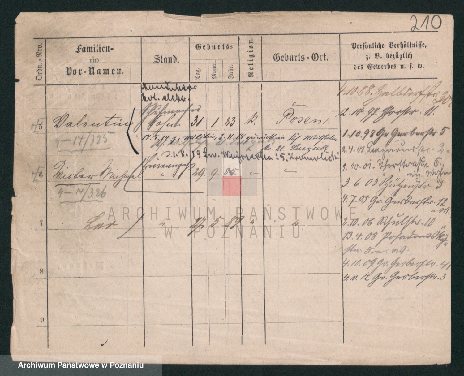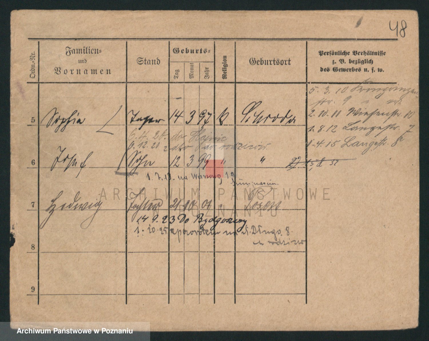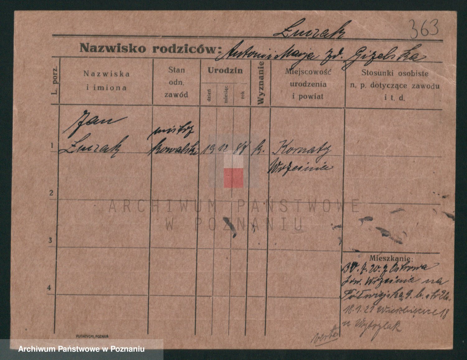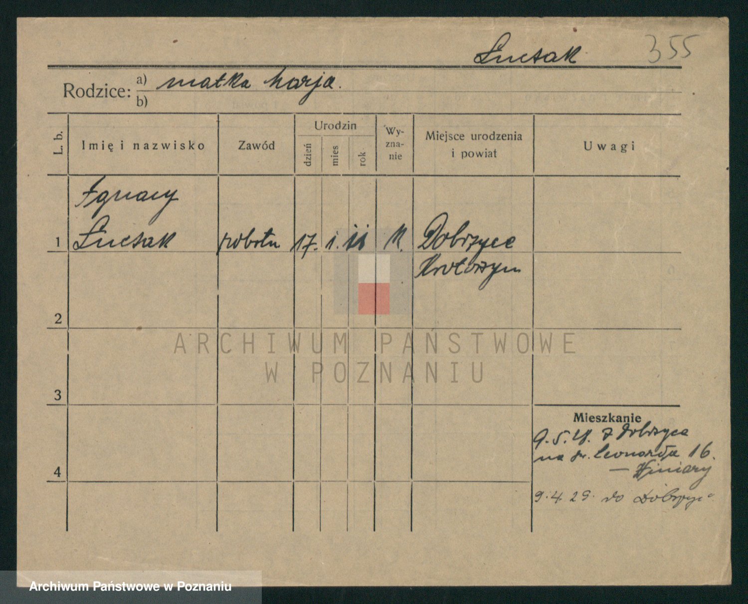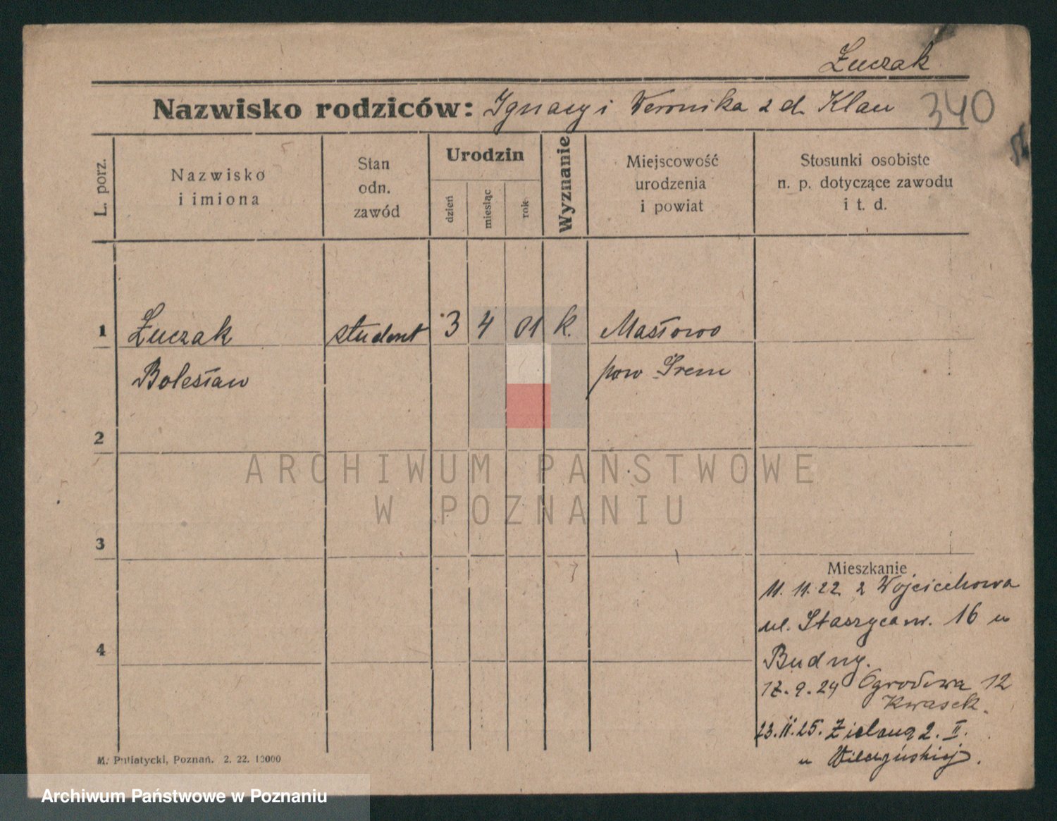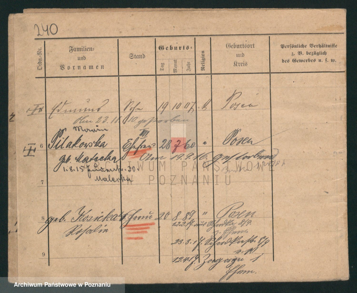Podgląd karty osobowej dostępny jest po kliknięciu na nazwisko lub ikonkę karty. Można dokonywać powiększenia (ikony na górze) lub przechodzić między kolejnymi skanami (strzałki po bokach).
