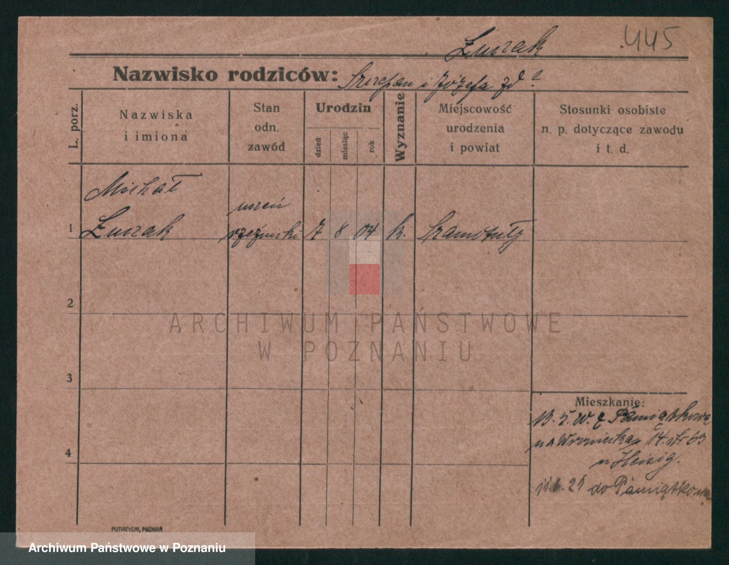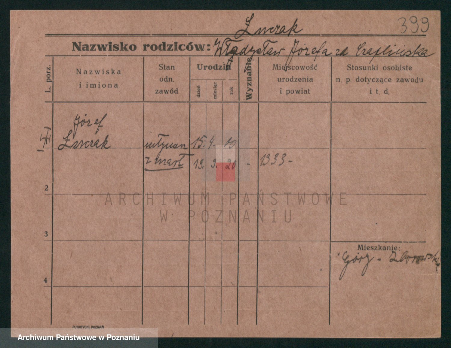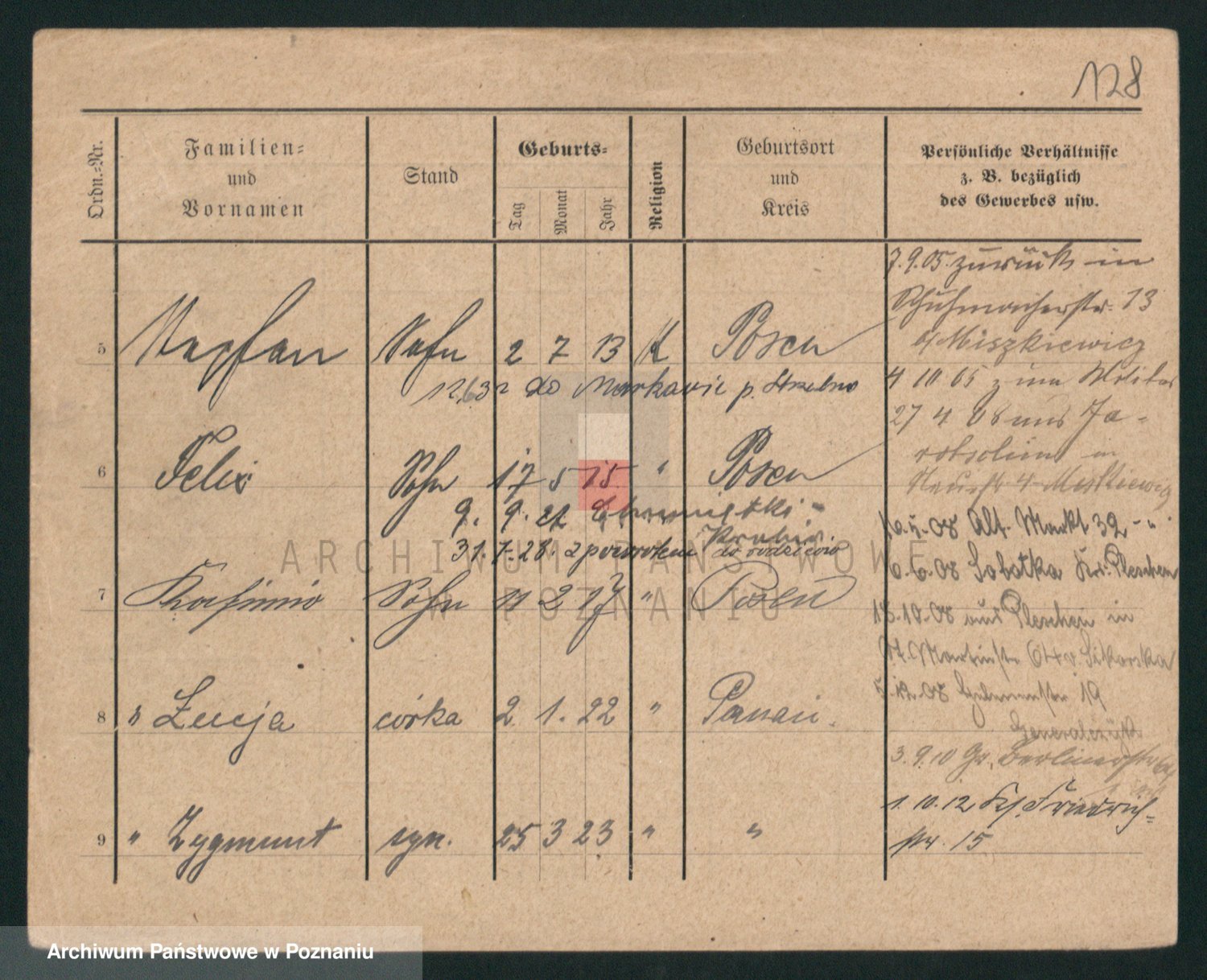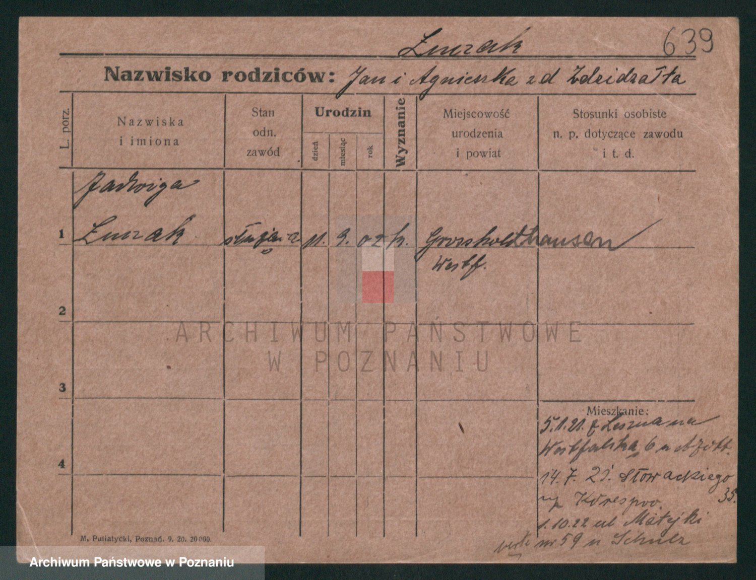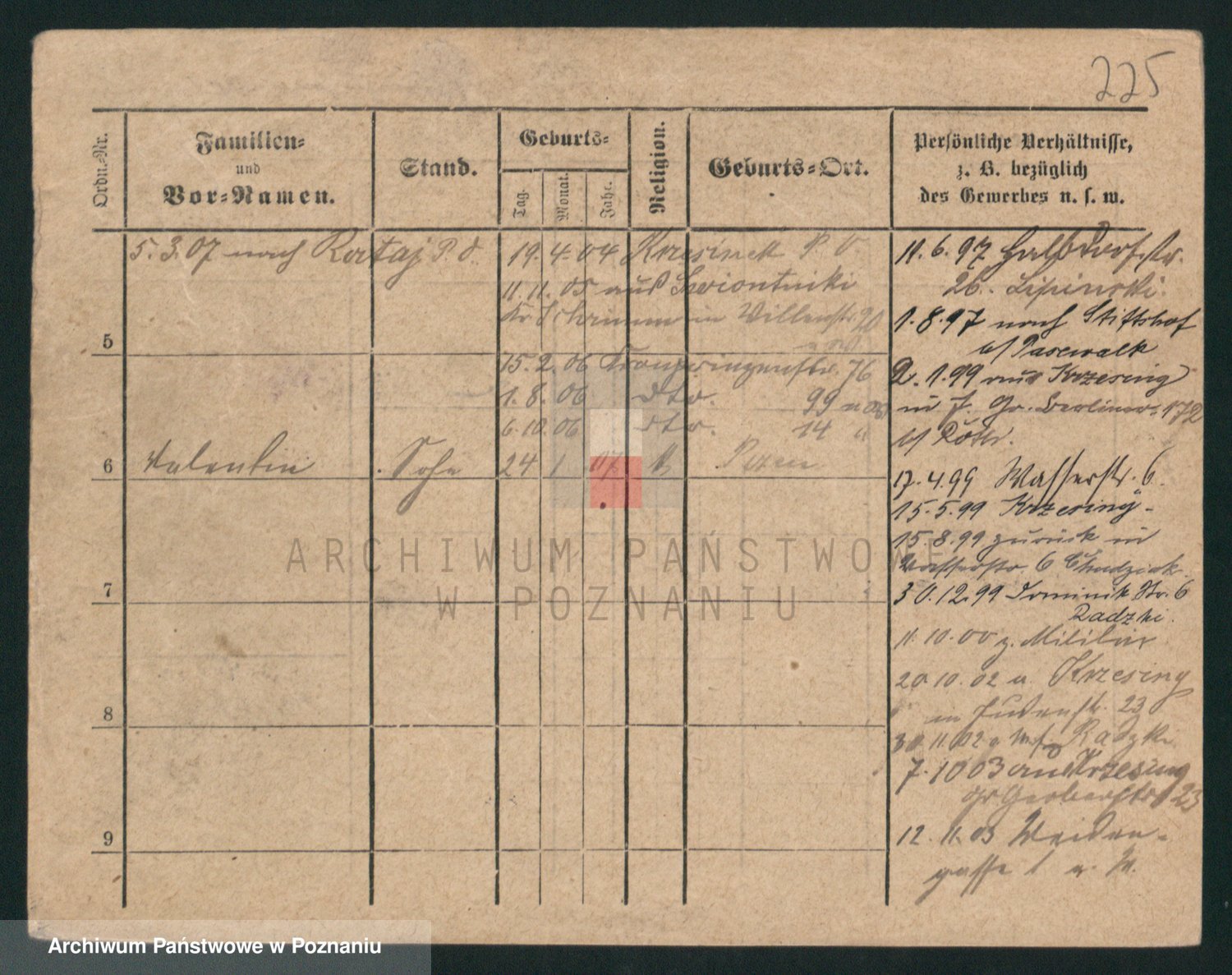Podgląd karty osobowej dostępny jest po kliknięciu na nazwisko lub ikonkę karty. Można dokonywać powiększenia (ikony na górze) lub przechodzić między kolejnymi skanami (strzałki po bokach).