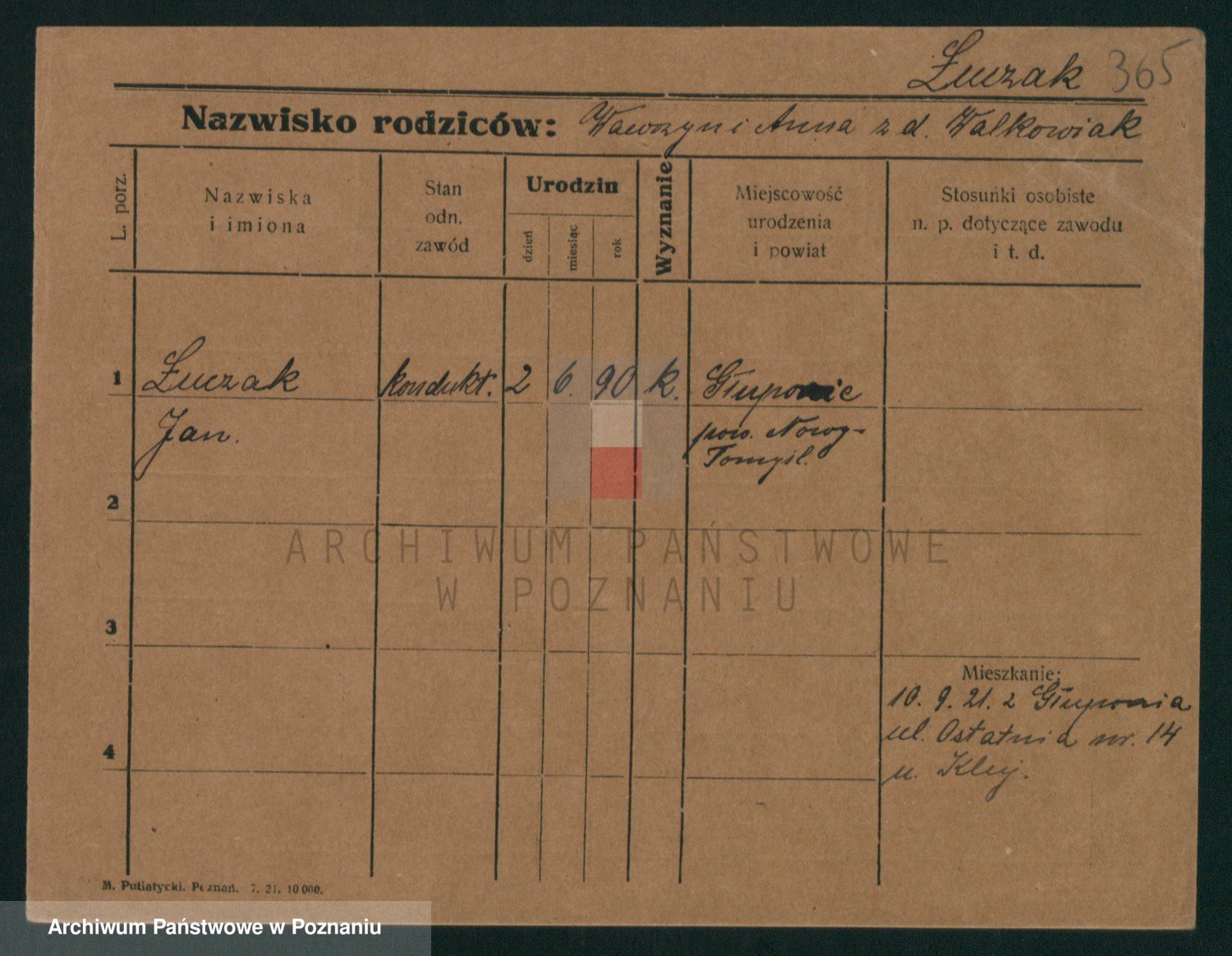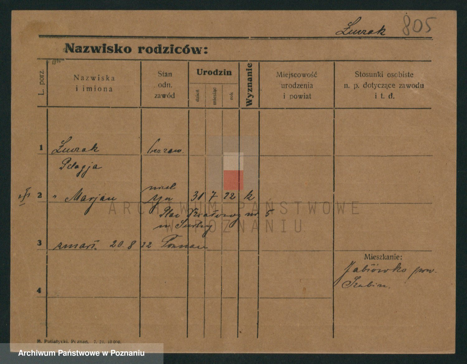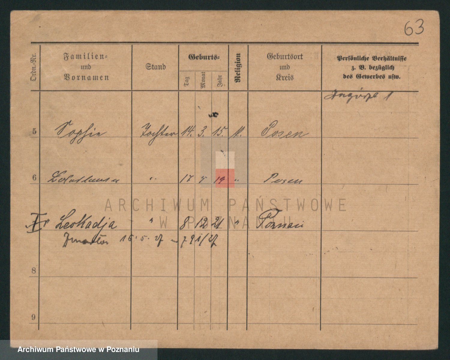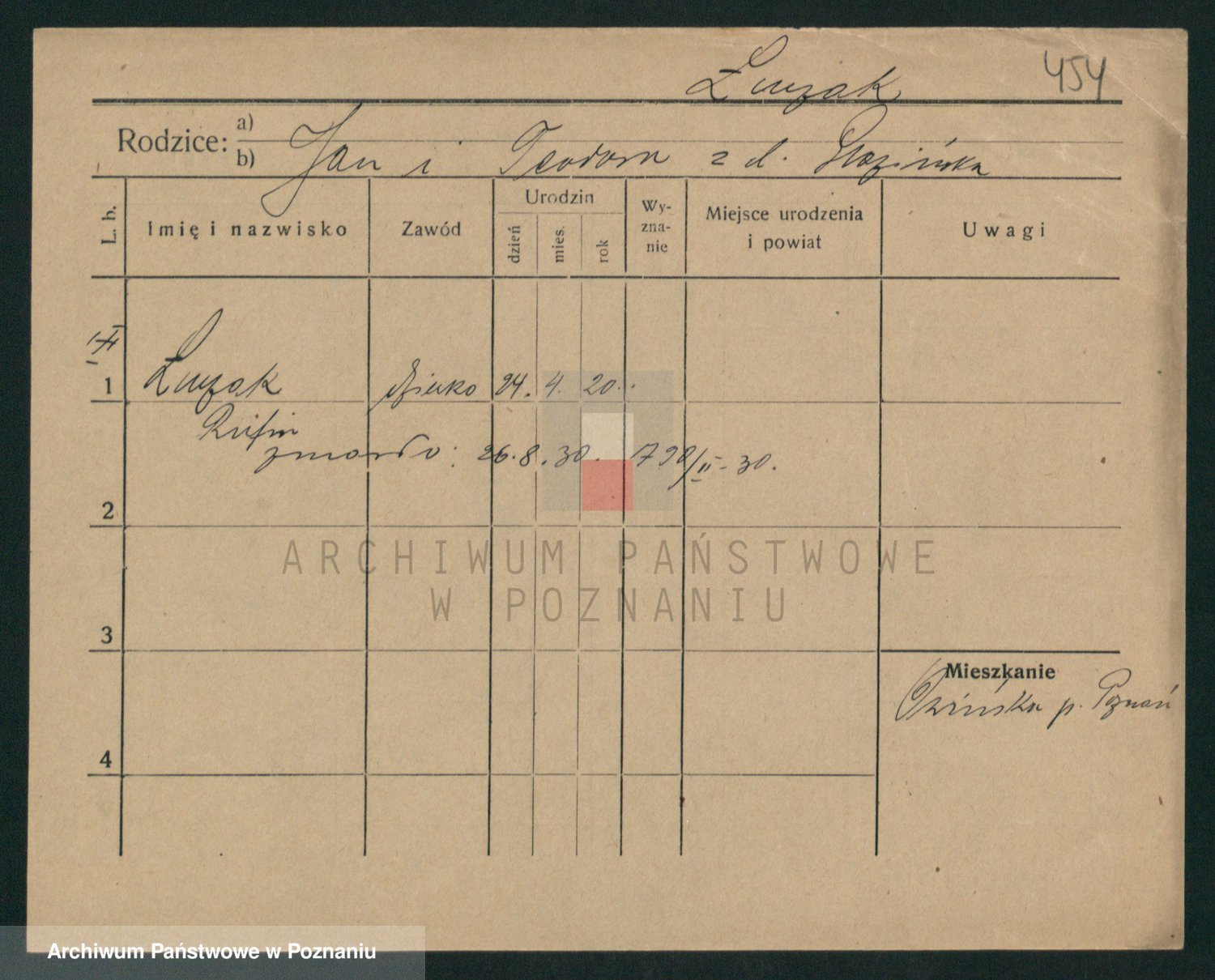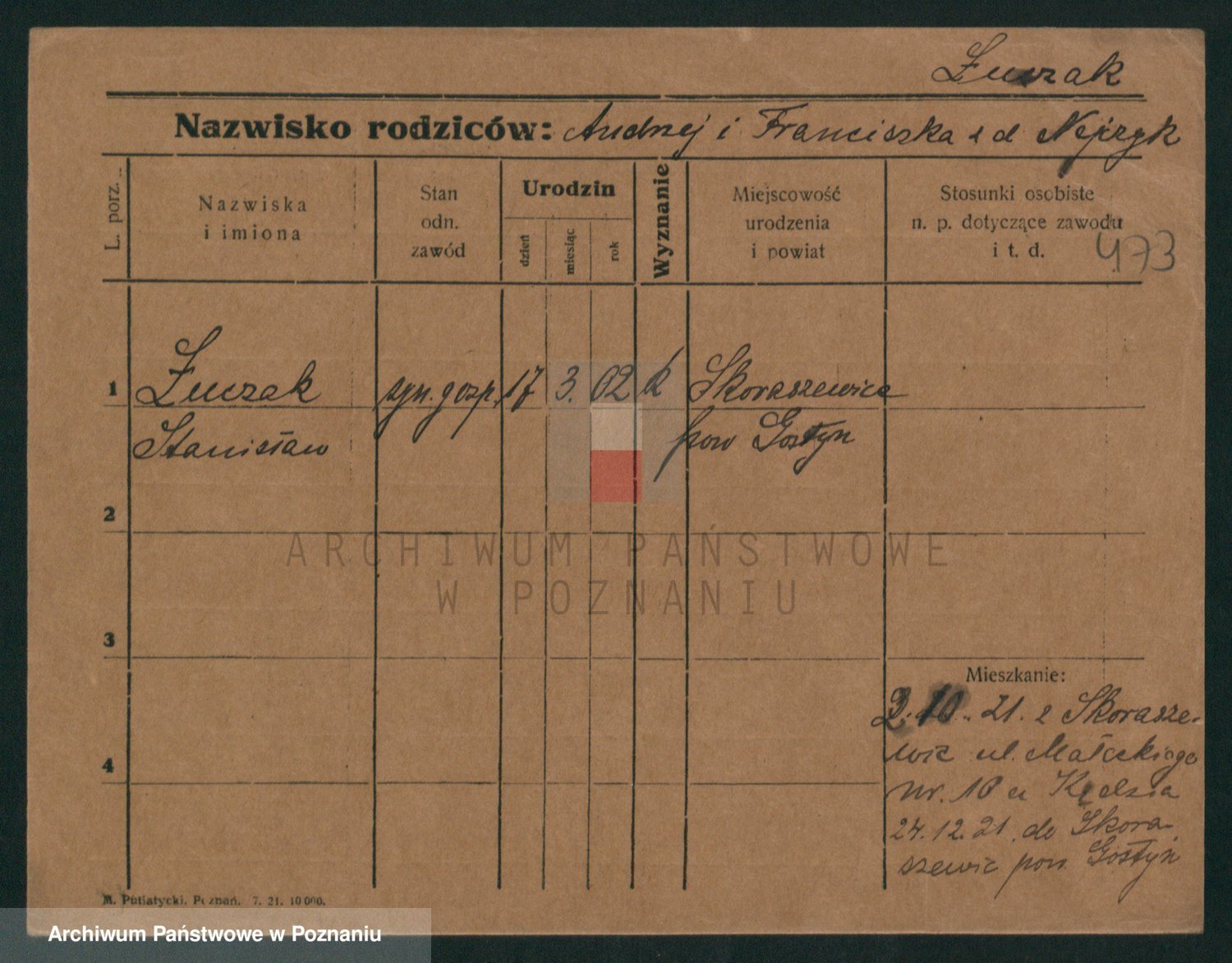 Podgląd karty osobowej dostępny jest po kliknięciu na nazwisko lub ikonkę karty. Można dokonywać powiększenia (ikony na górze) lub przechodzić między kolejnymi skanami (strzałki po bokach).