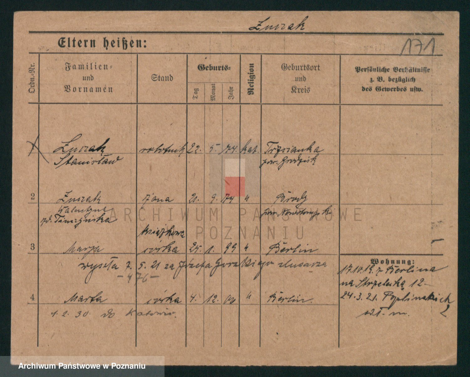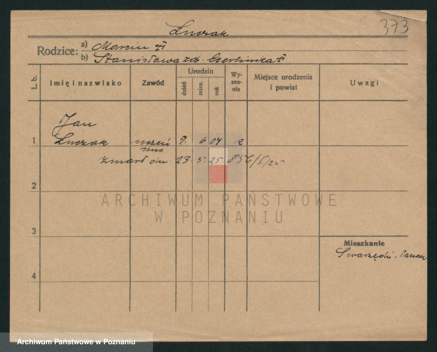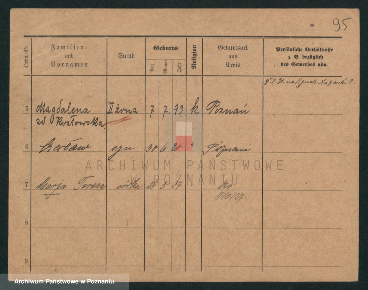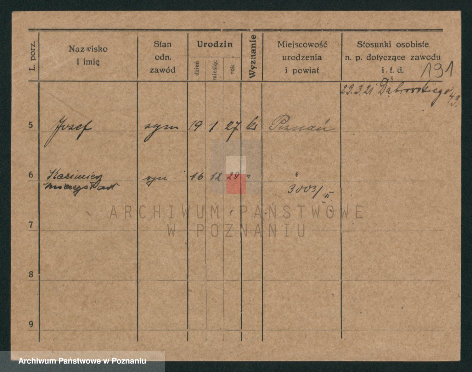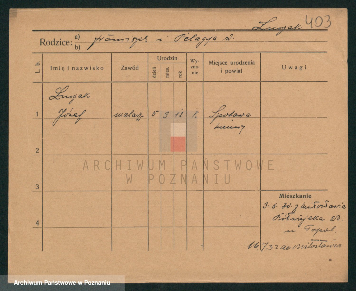 Podgląd karty osobowej dostępny jest po kliknięciu na nazwisko lub ikonkę karty. Można dokonywać powiększenia (ikony na górze) lub przechodzić między kolejnymi skanami (strzałki po bokach).