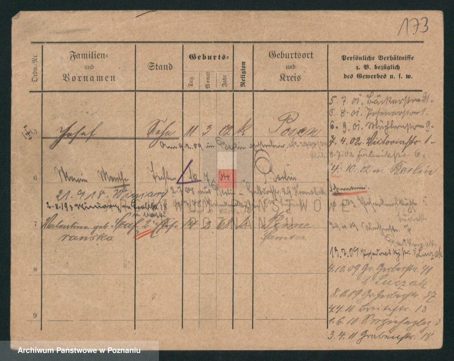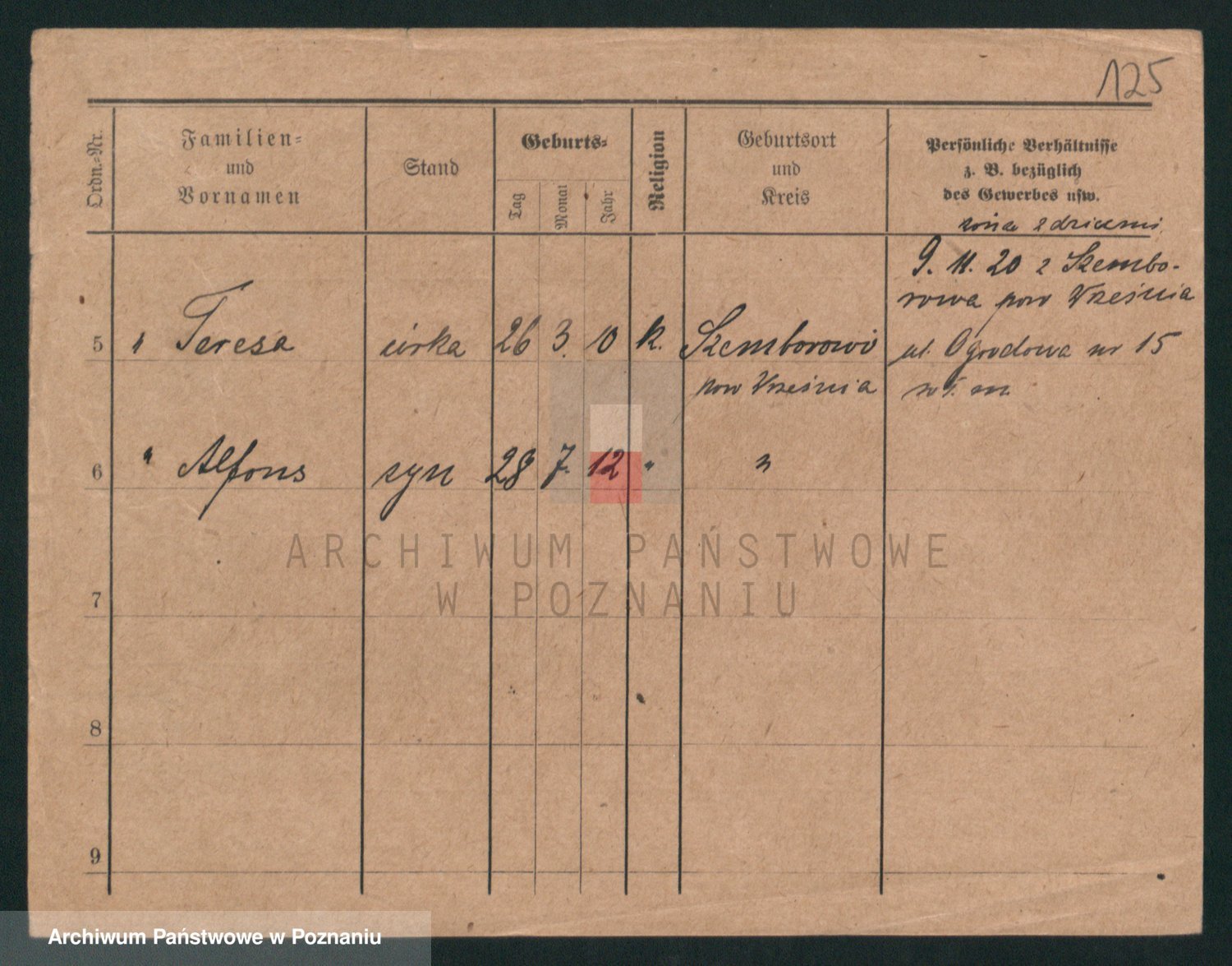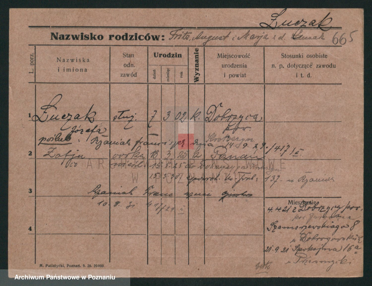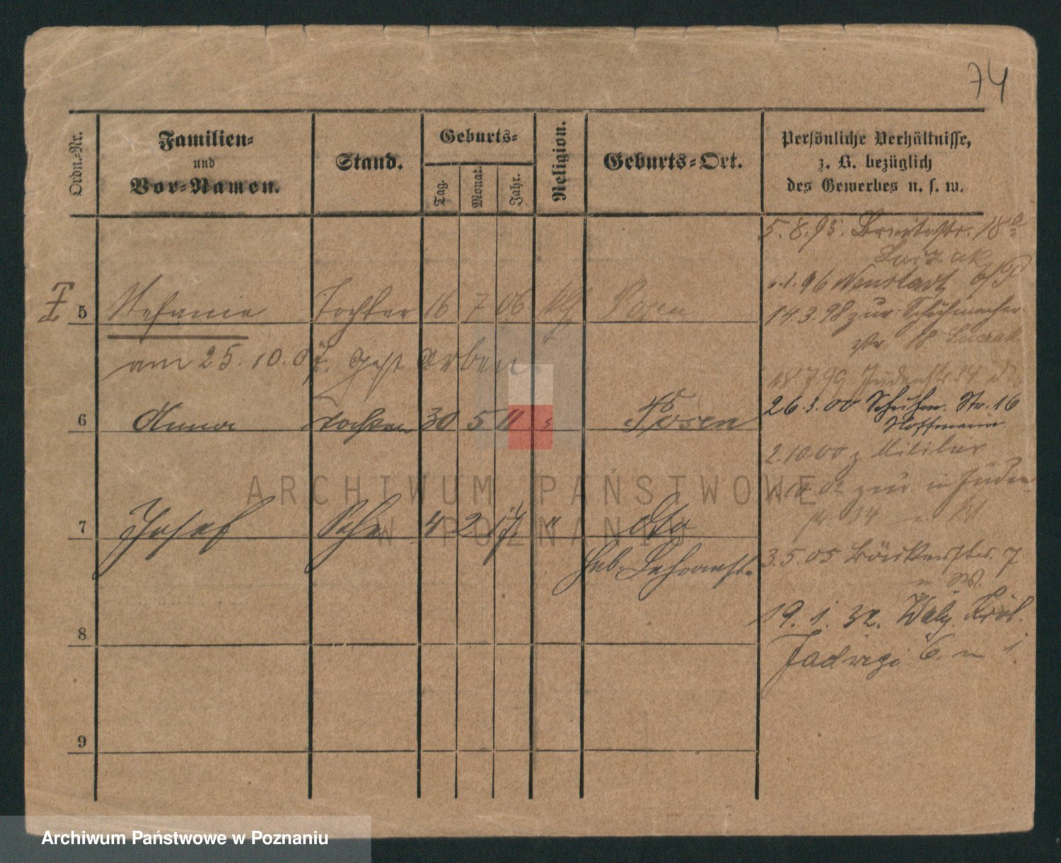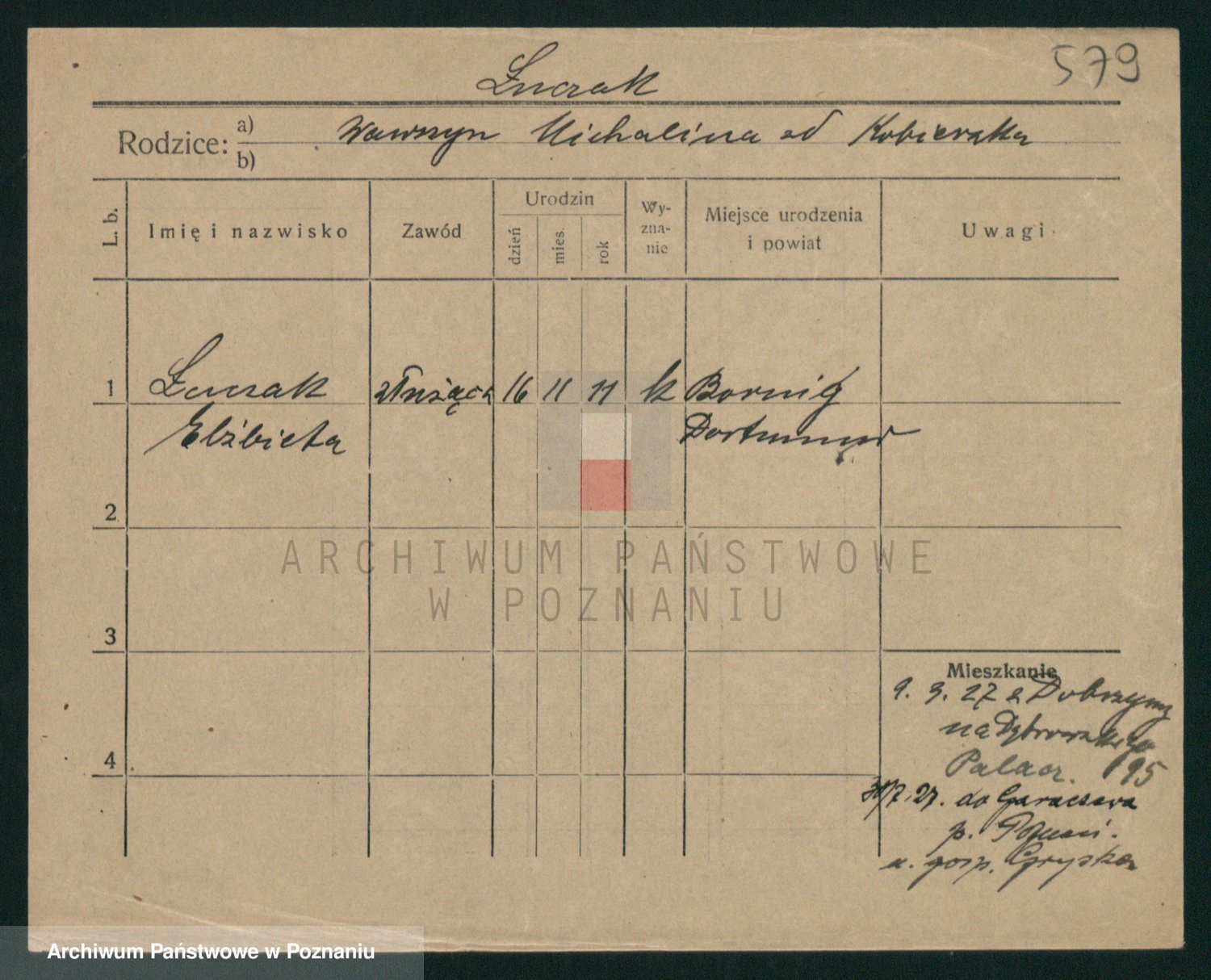 Podgląd karty osobowej dostępny jest po kliknięciu na nazwisko lub ikonkę karty. Można dokonywać powiększenia (ikony na górze) lub przechodzić między kolejnymi skanami (strzałki po bokach).