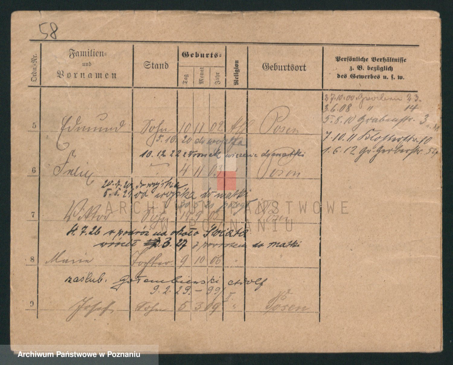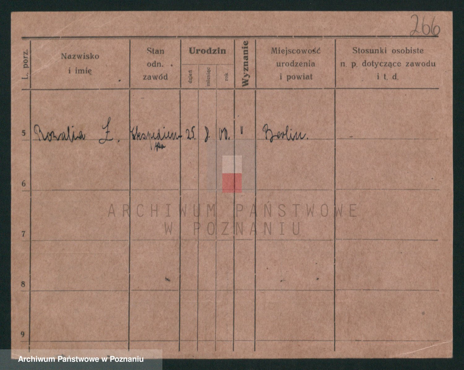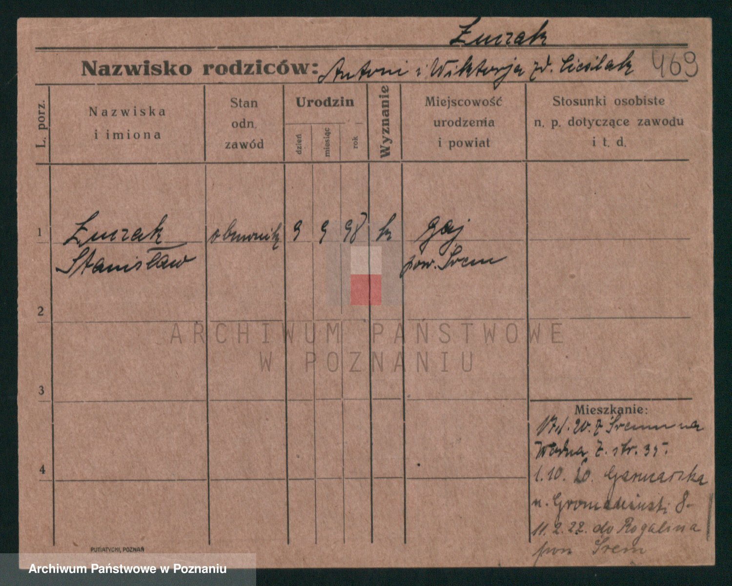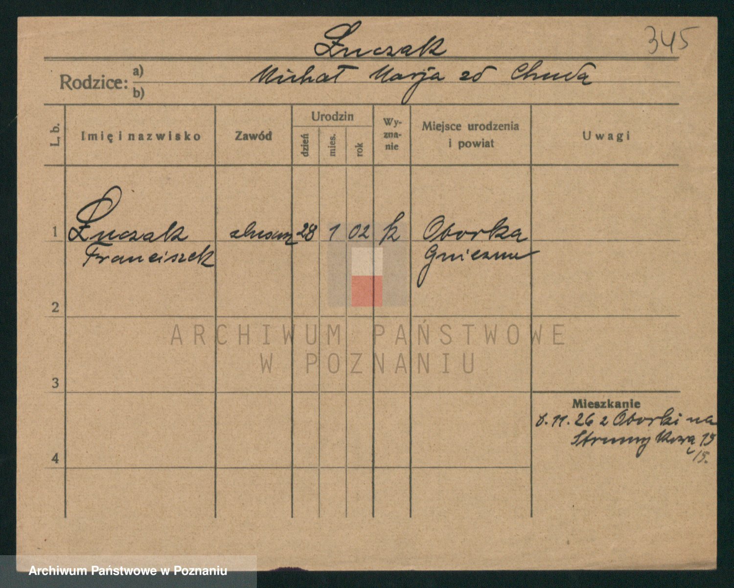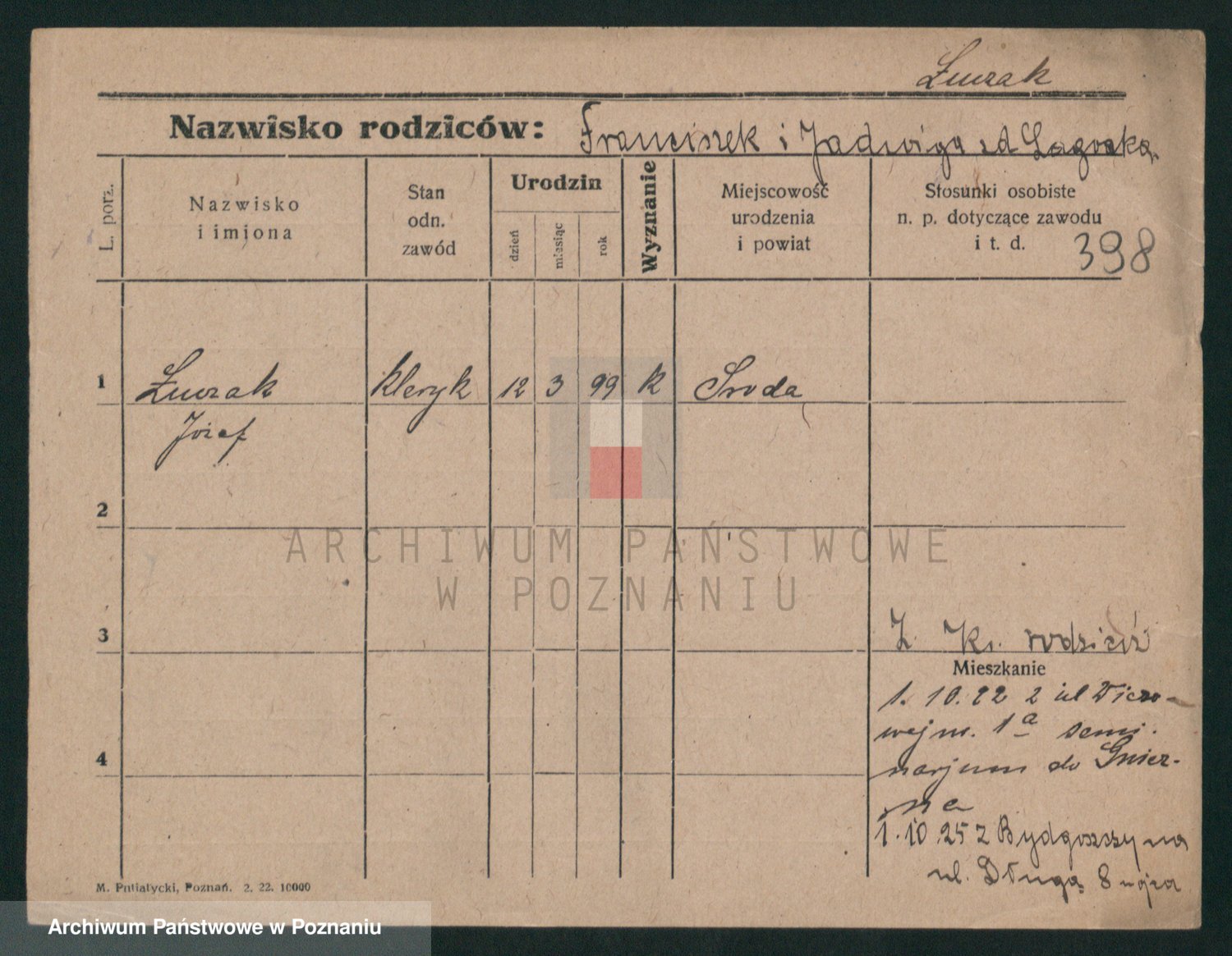 Podgląd karty osobowej dostępny jest po kliknięciu na nazwisko lub ikonkę karty. Można dokonywać powiększenia (ikony na górze) lub przechodzić między kolejnymi skanami (strzałki po bokach).
