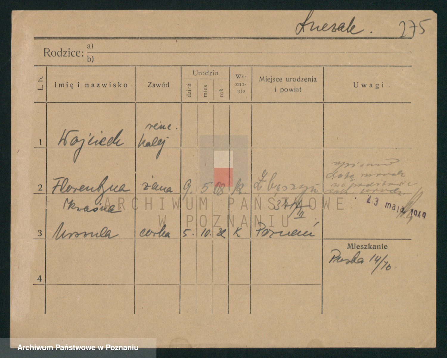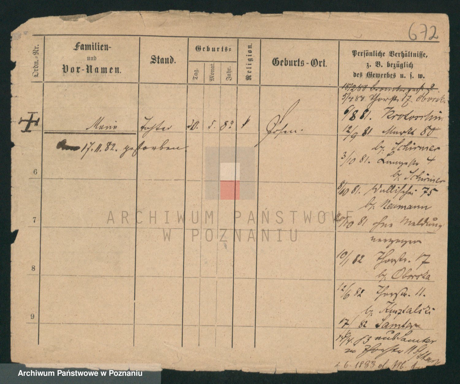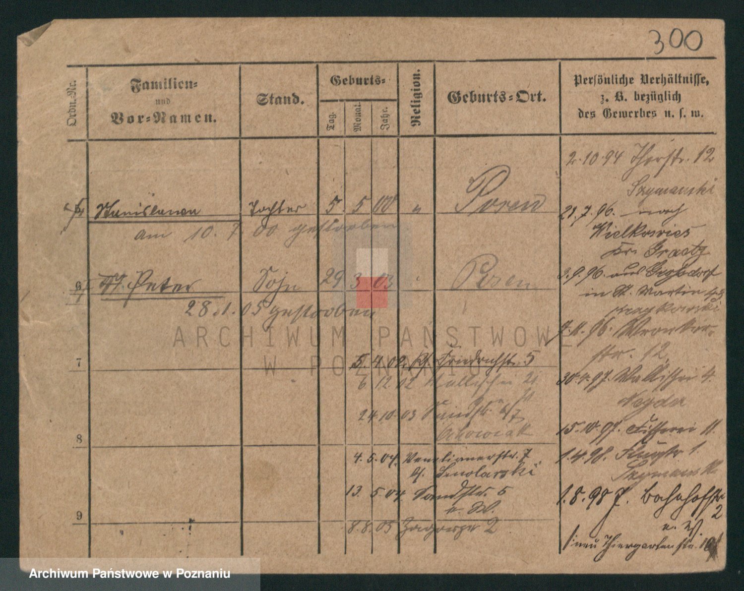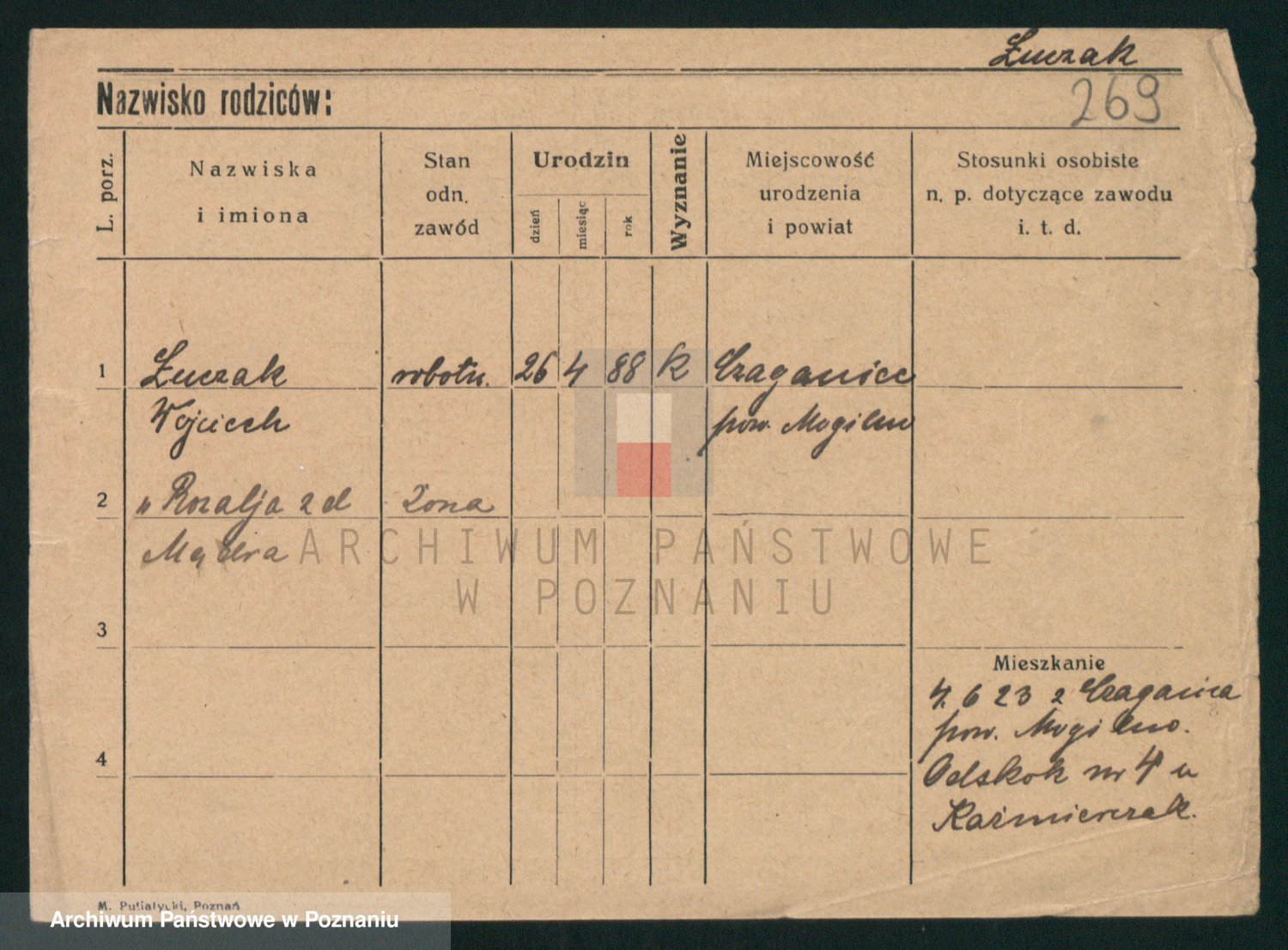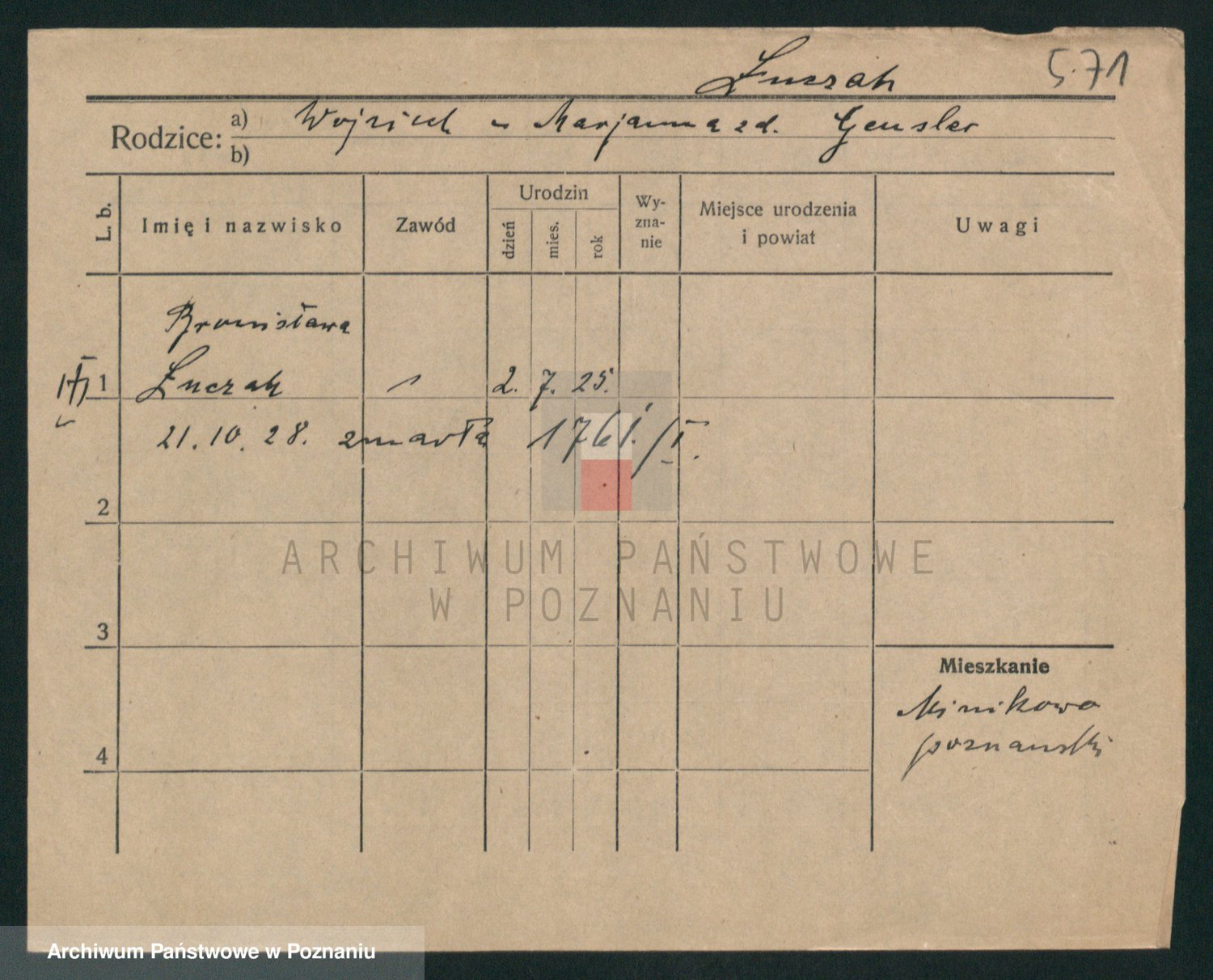 Podgląd karty osobowej dostępny jest po kliknięciu na nazwisko lub ikonkę karty. Można dokonywać powiększenia (ikony na górze) lub przechodzić między kolejnymi skanami (strzałki po bokach).