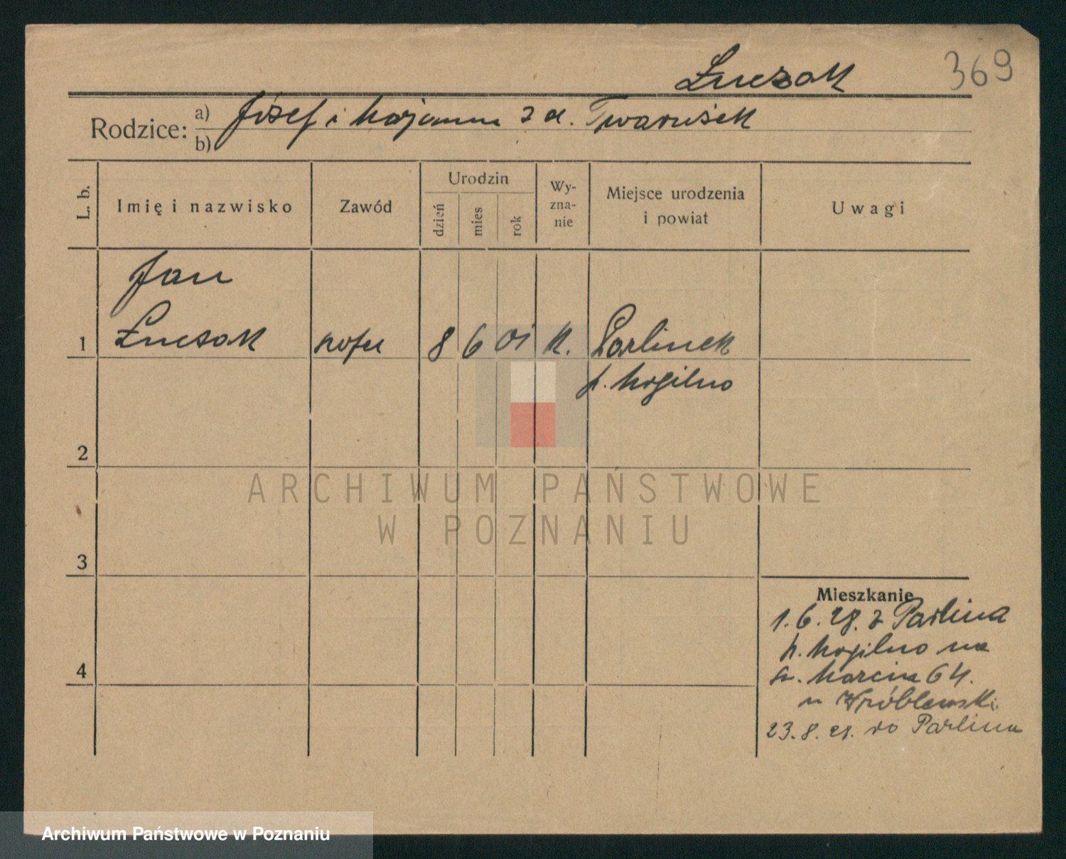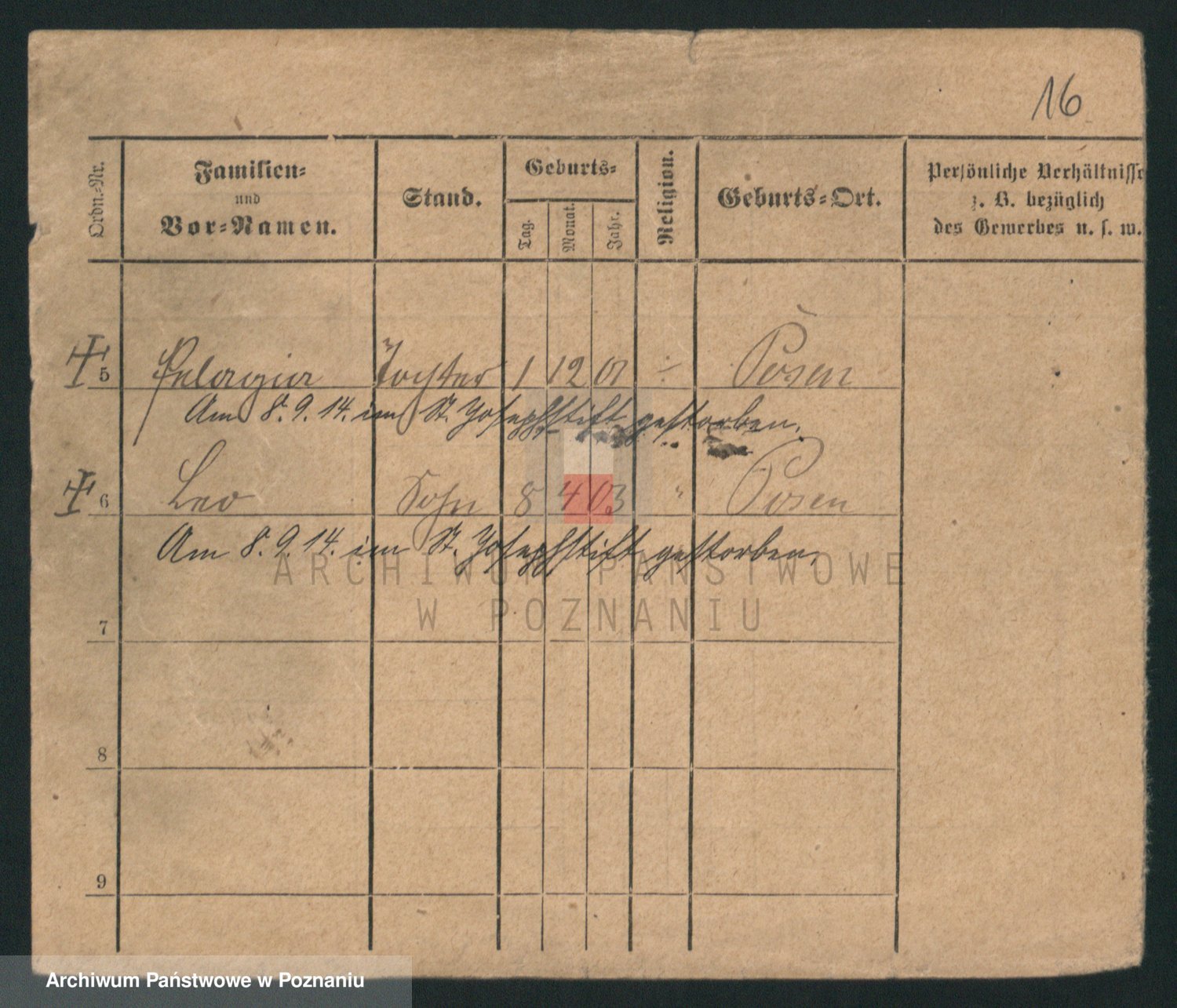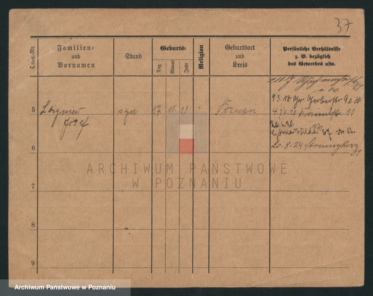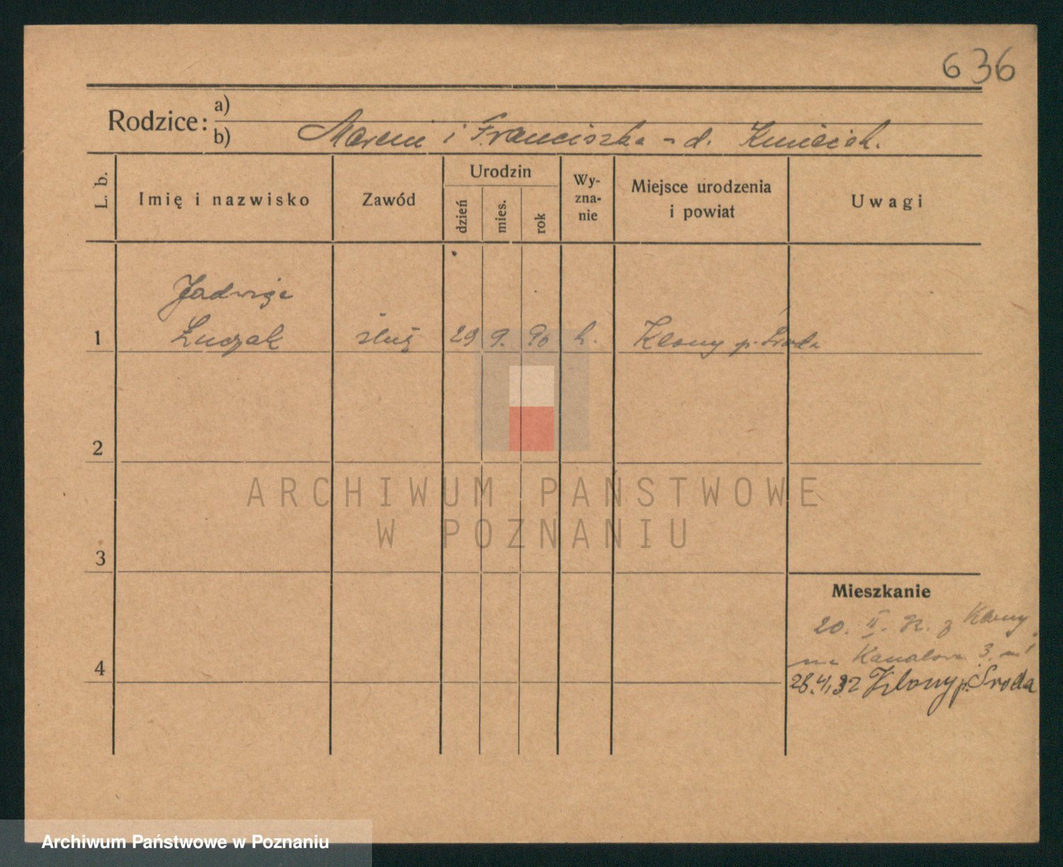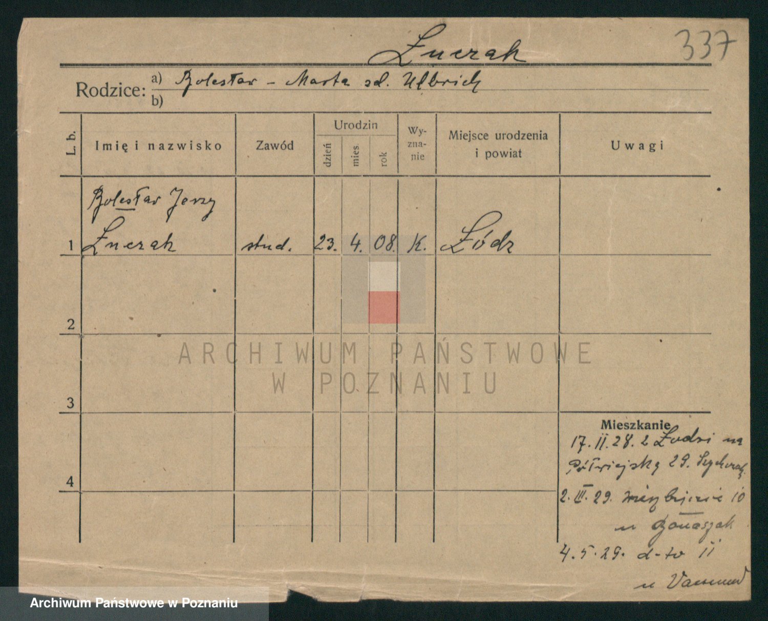 Podgląd karty osobowej dostępny jest po kliknięciu na nazwisko lub ikonkę karty. Można dokonywać powiększenia (ikony na górze) lub przechodzić między kolejnymi skanami (strzałki po bokach).