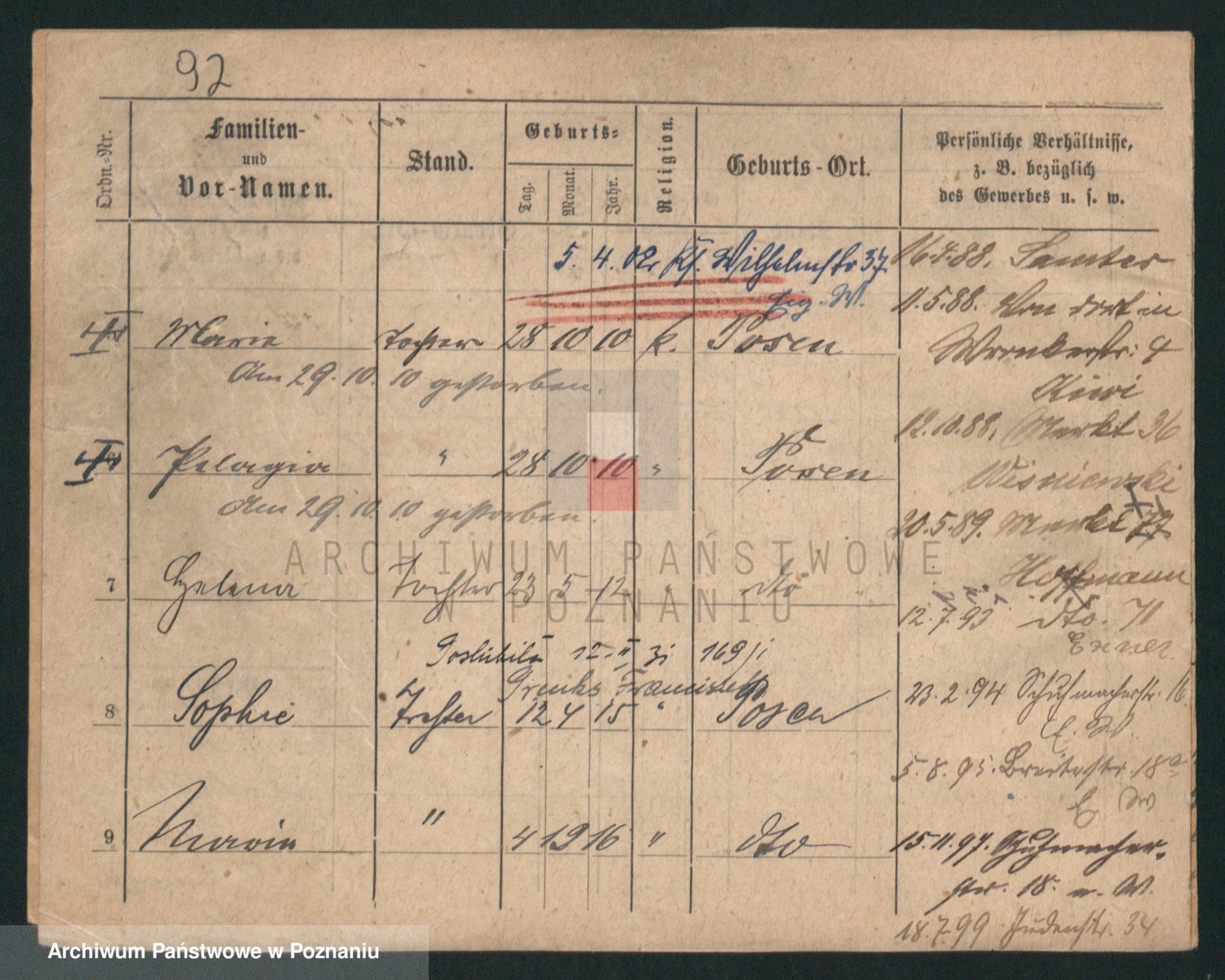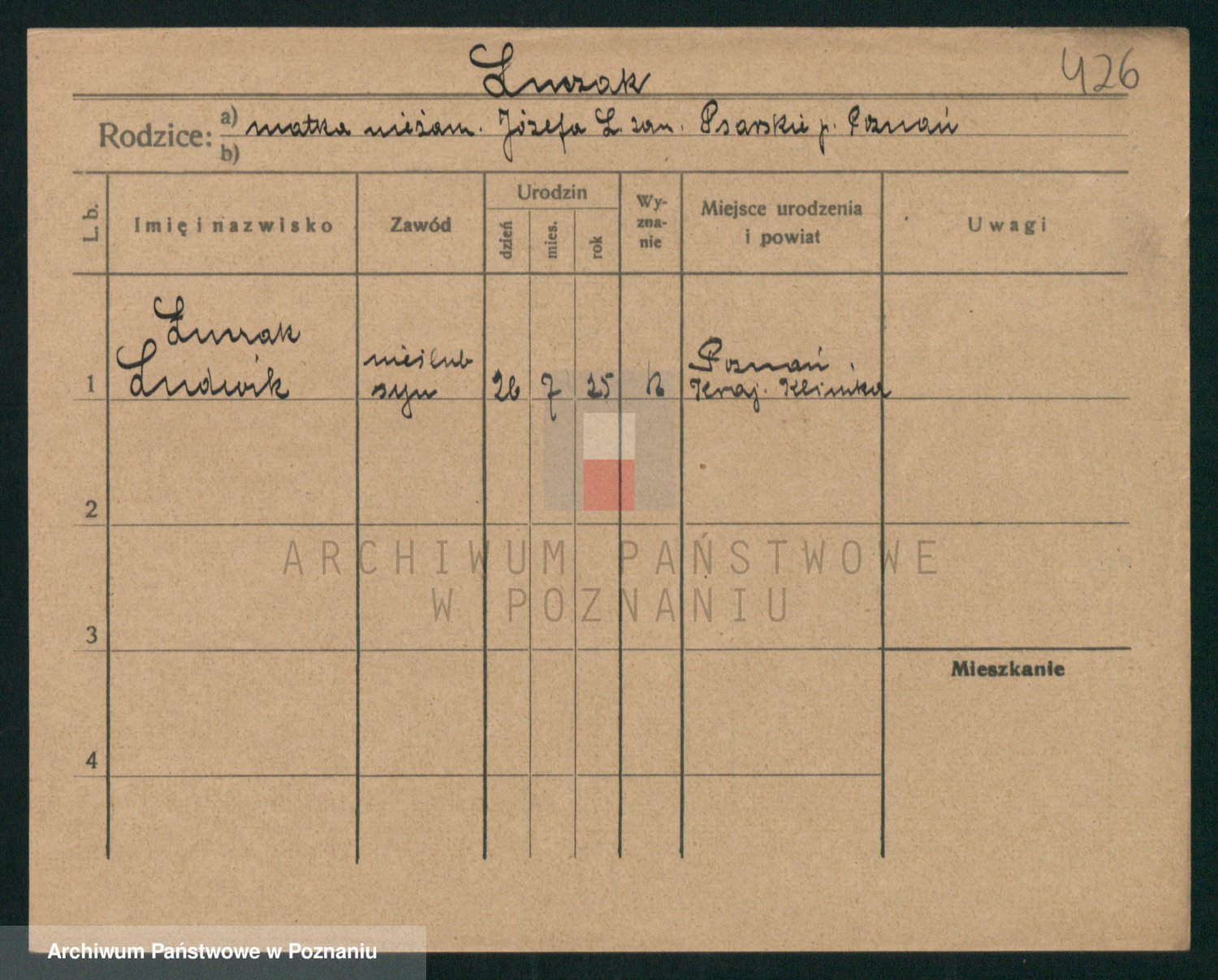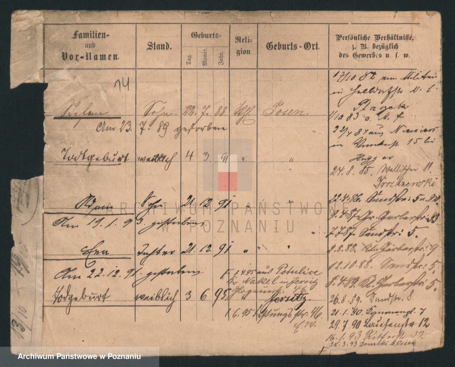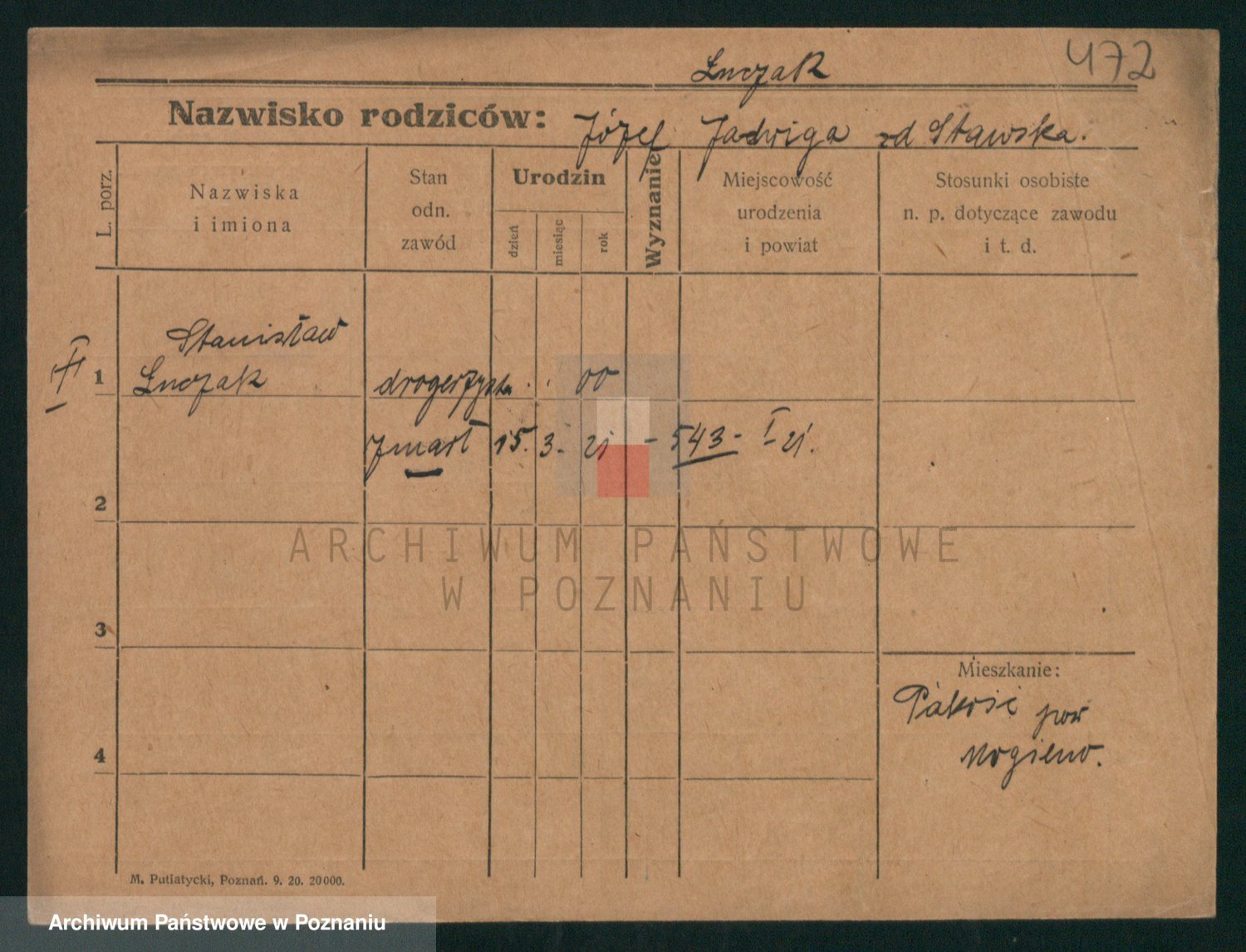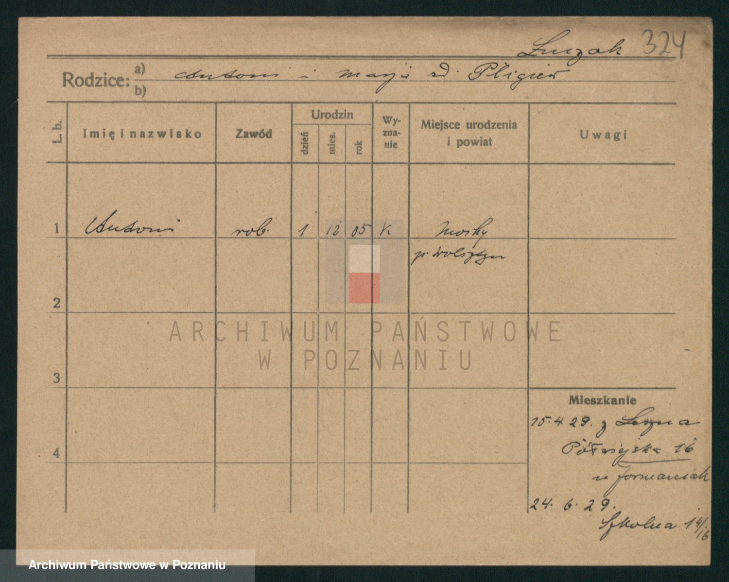 Podgląd karty osobowej dostępny jest po kliknięciu na nazwisko lub ikonkę karty. Można dokonywać powiększenia (ikony na górze) lub przechodzić między kolejnymi skanami (strzałki po bokach).