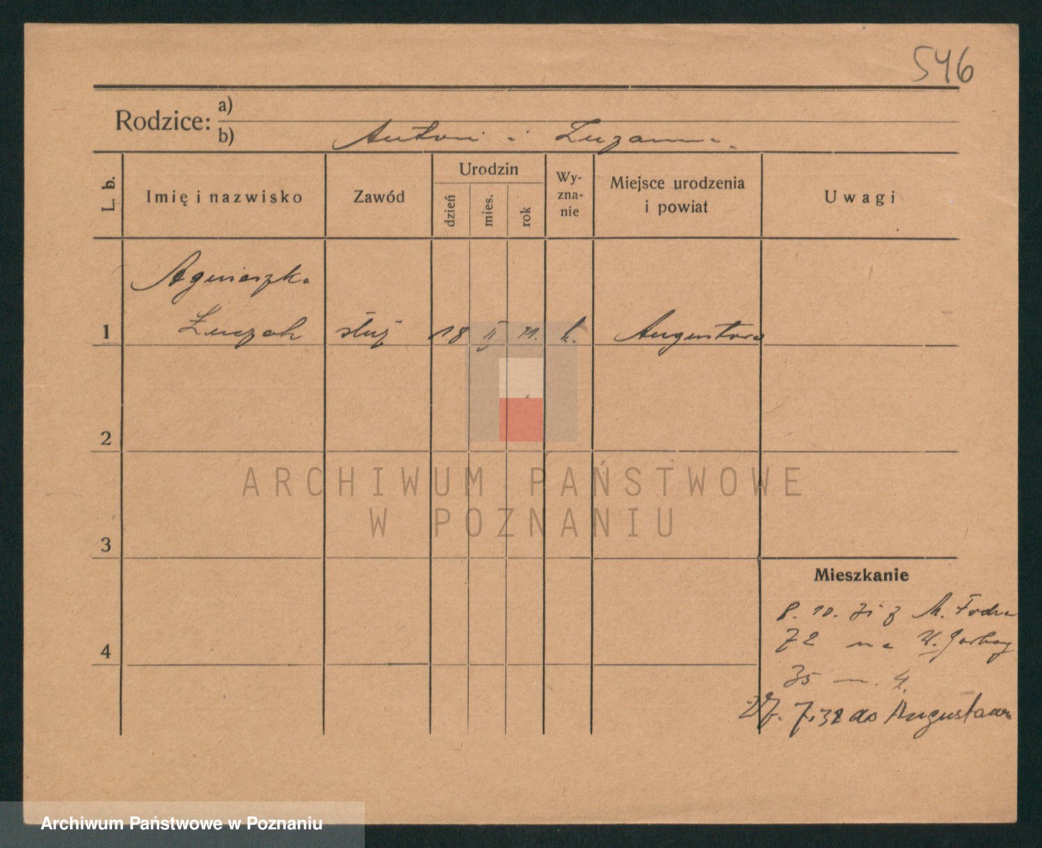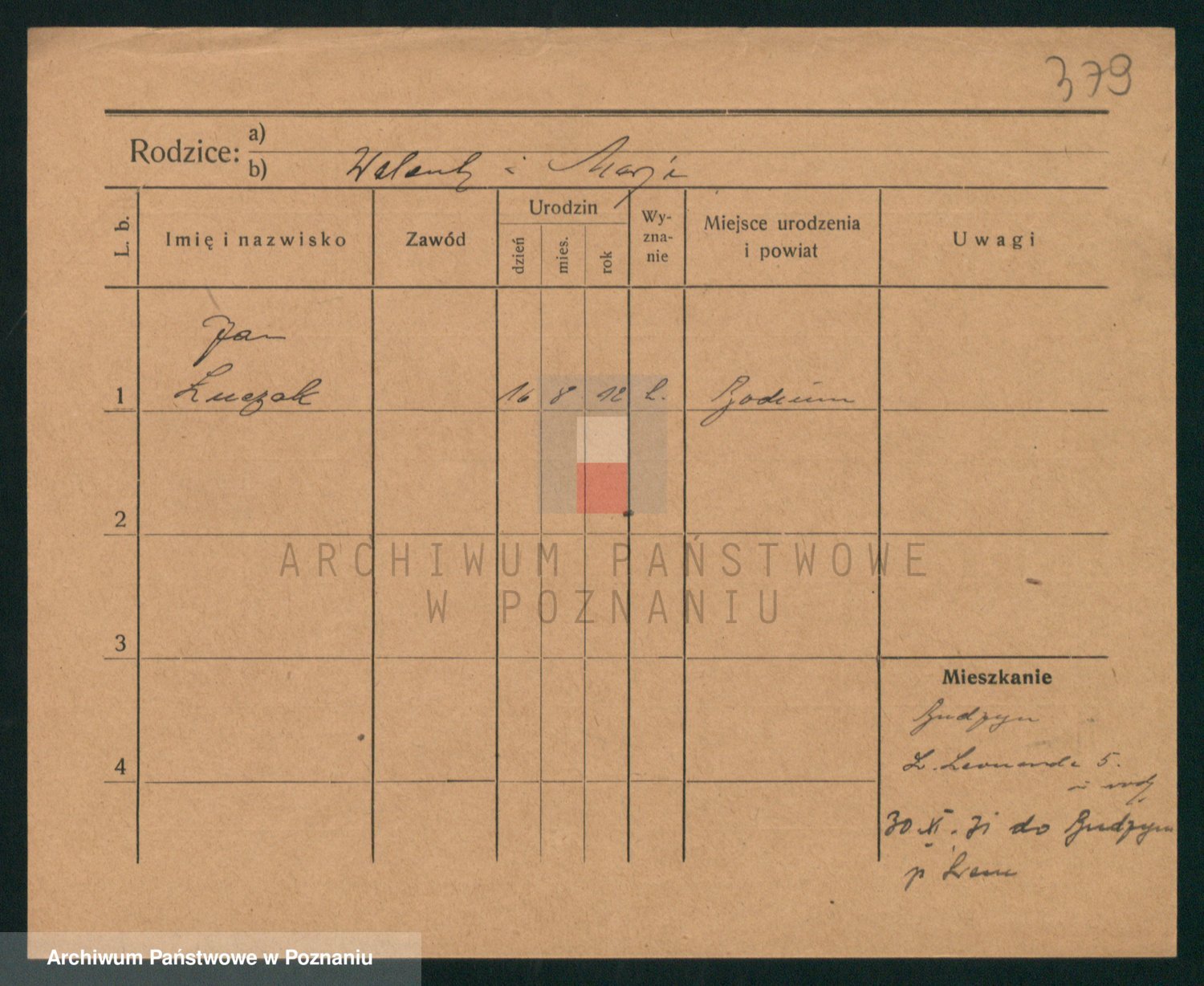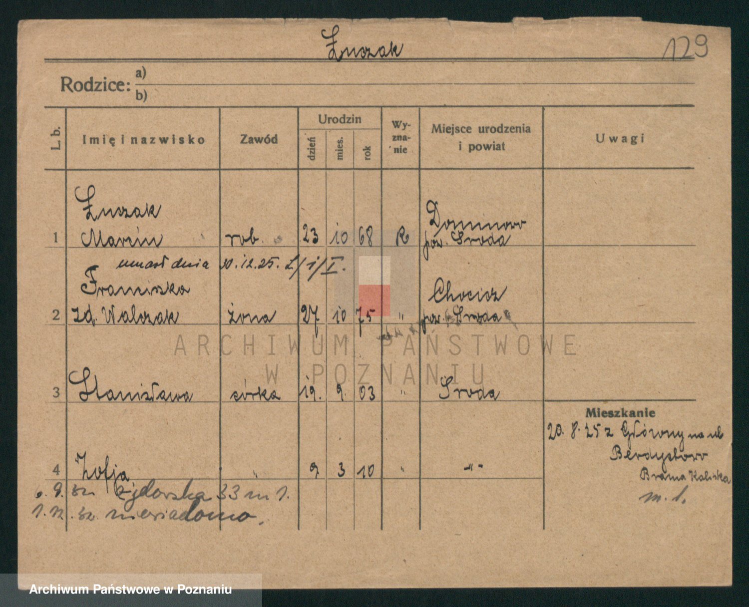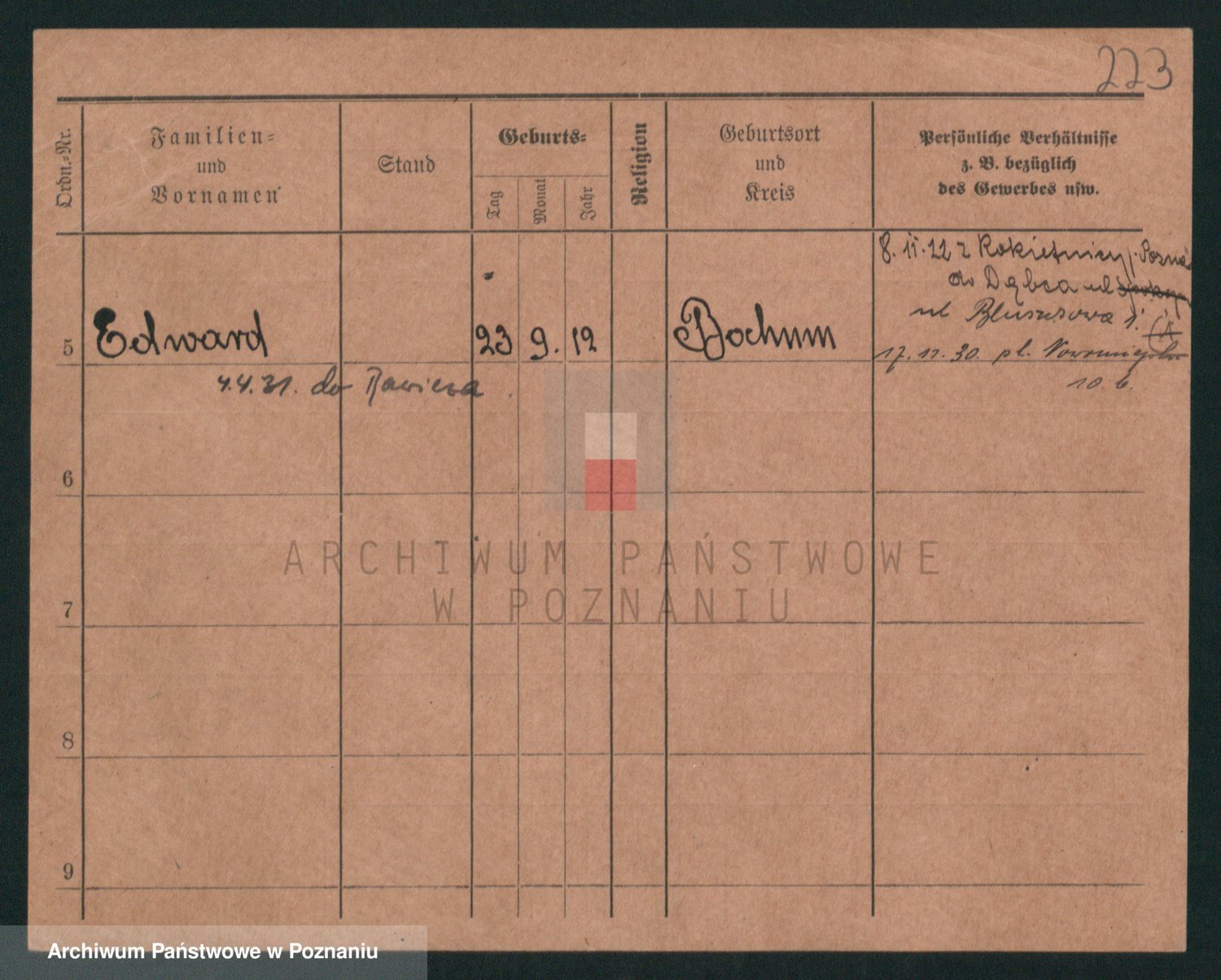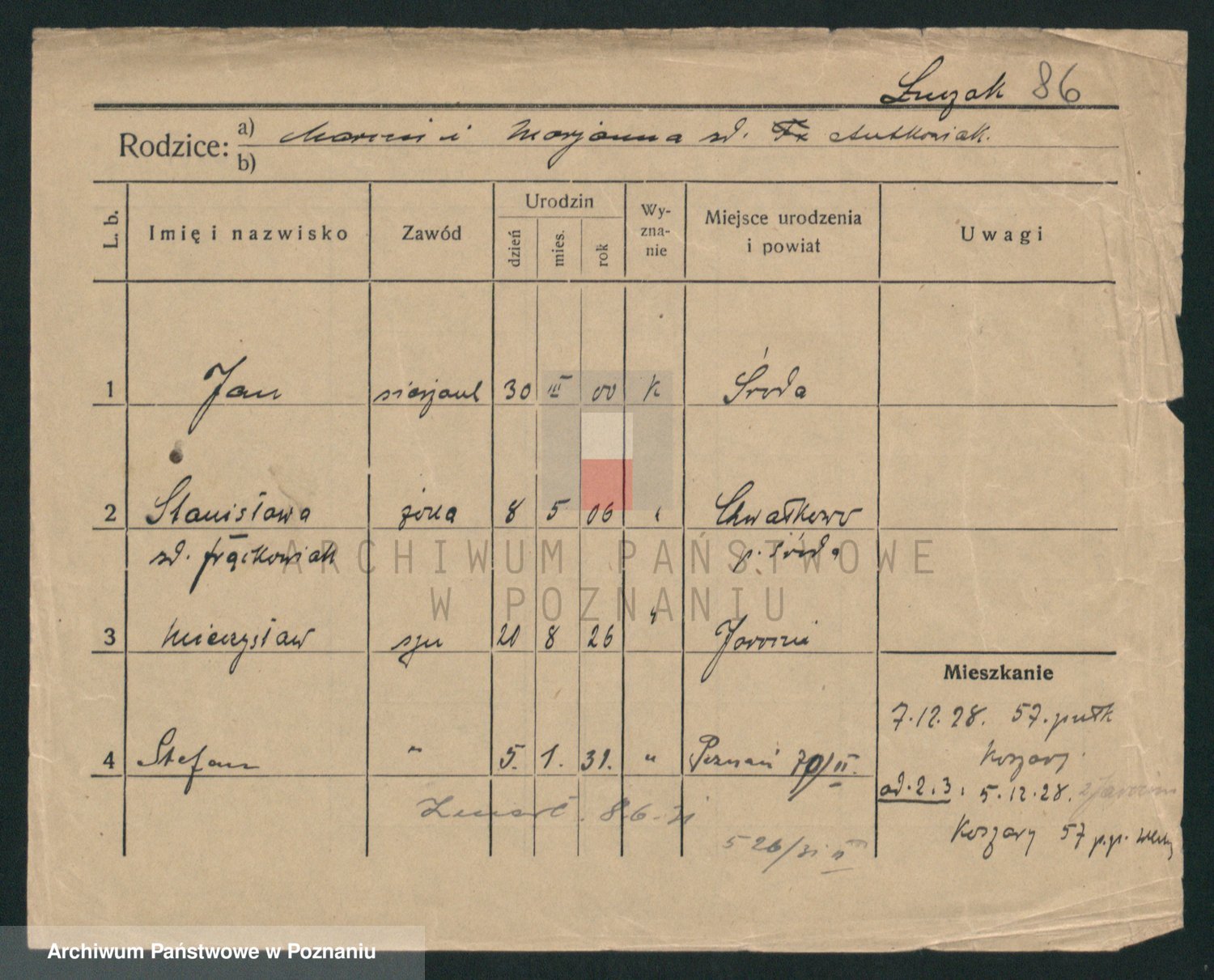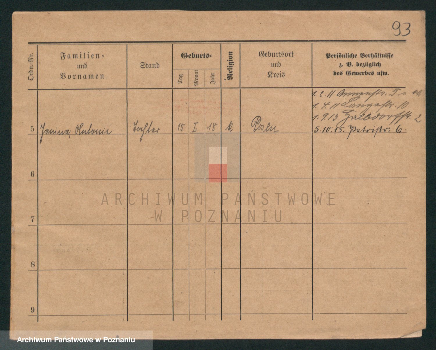 Podgląd karty osobowej dostępny jest po kliknięciu na nazwisko lub ikonkę karty. Można dokonywać powiększenia (ikony na górze) lub przechodzić między kolejnymi skanami (strzałki po bokach).