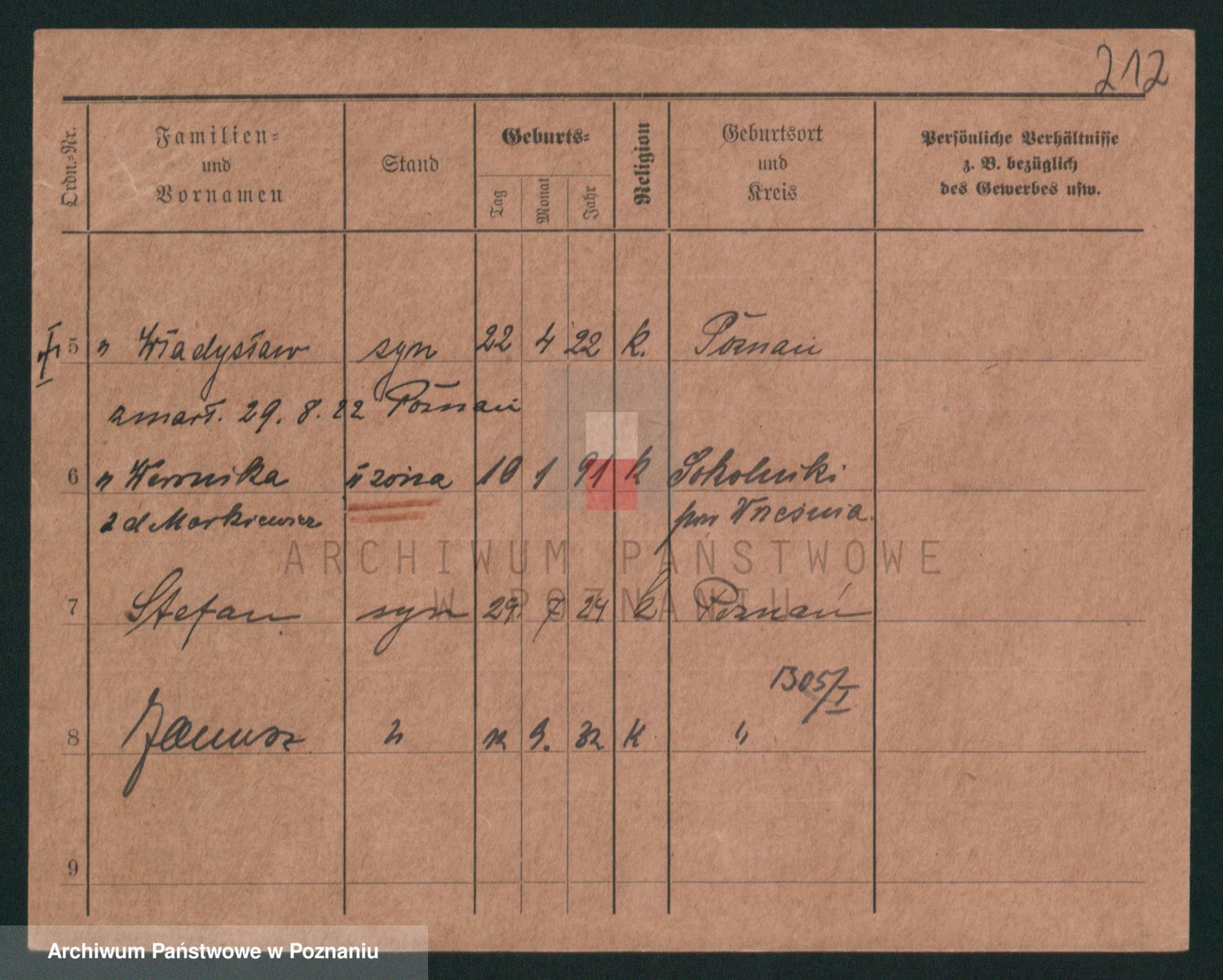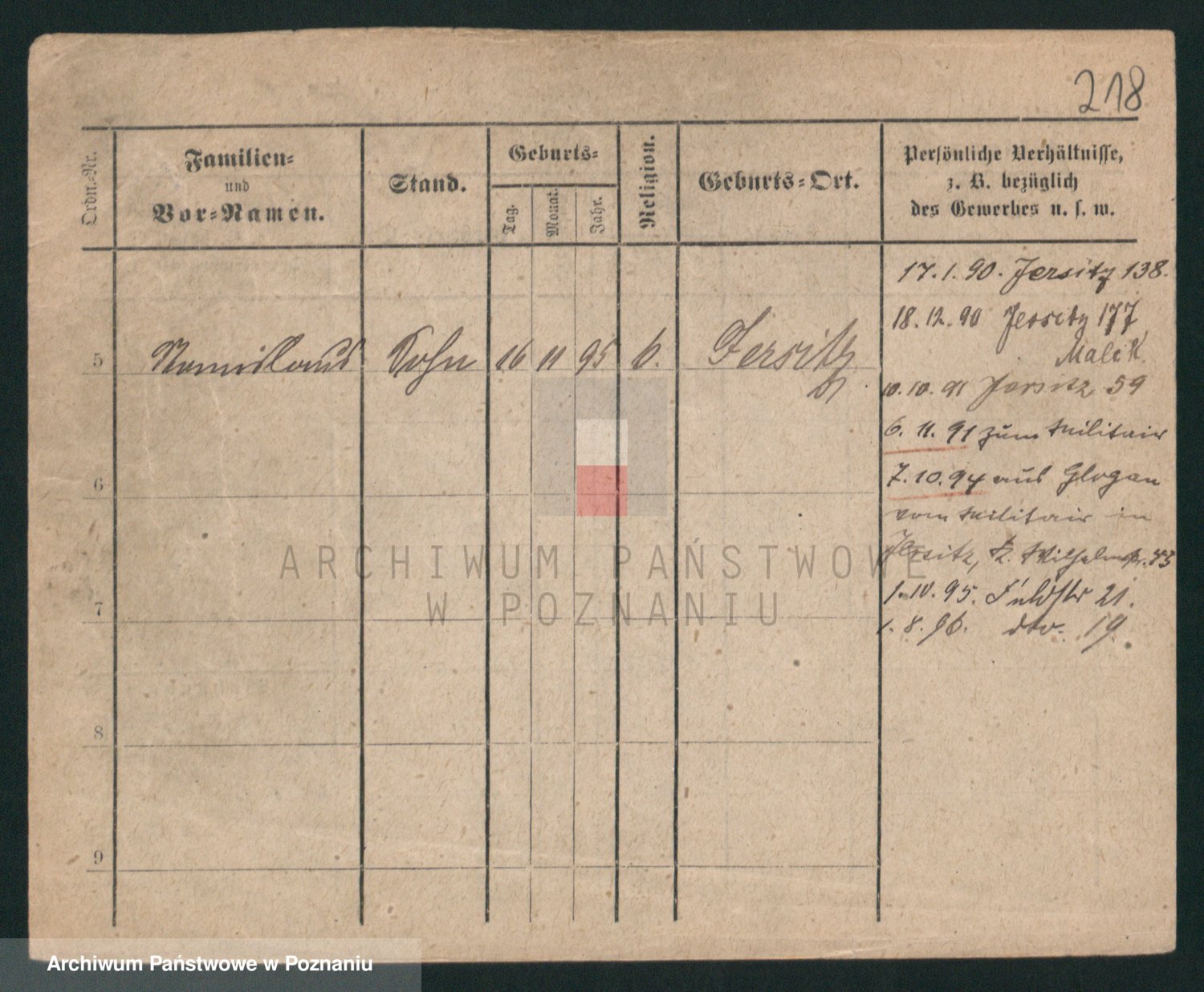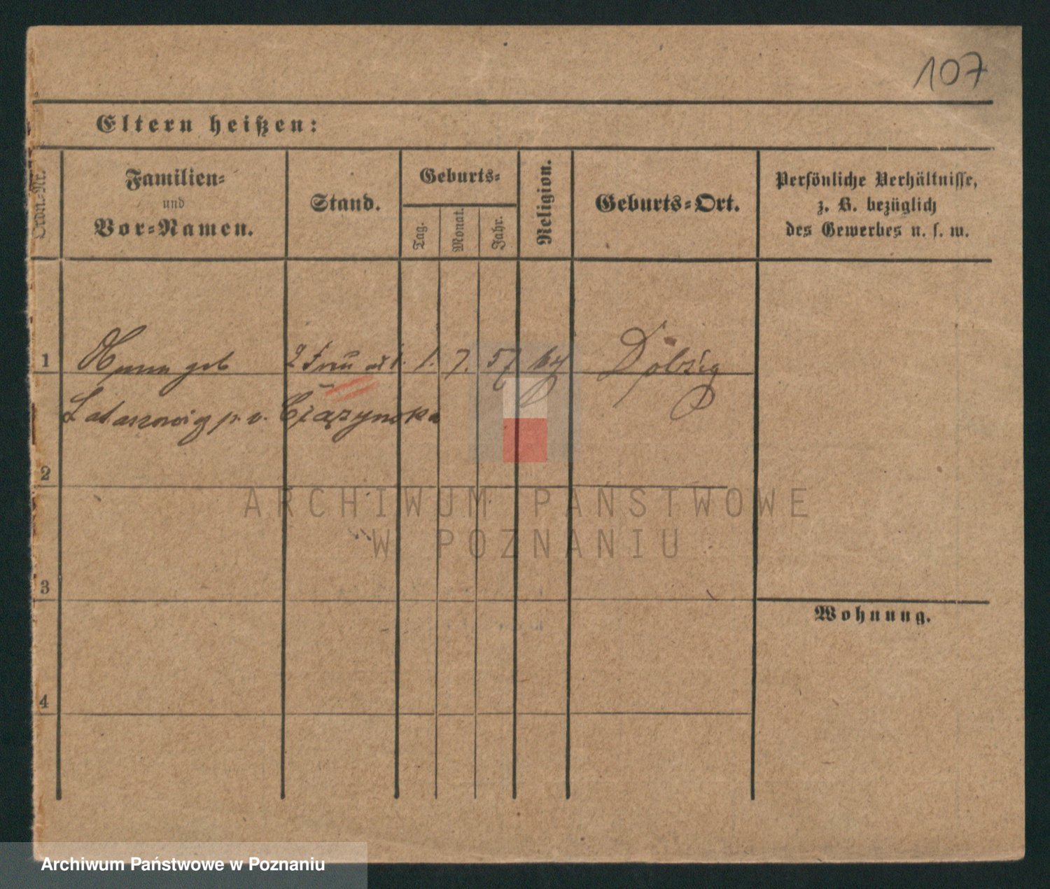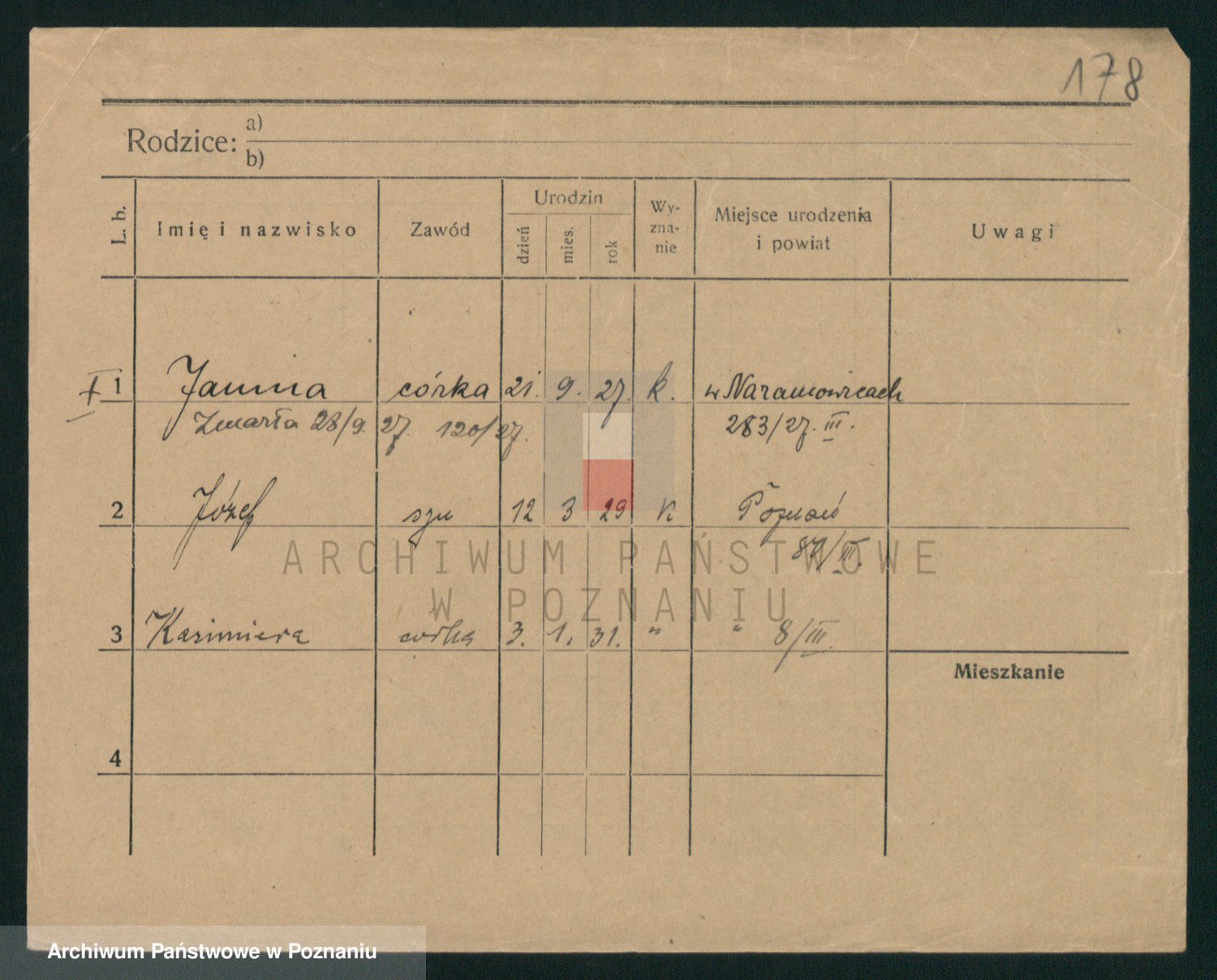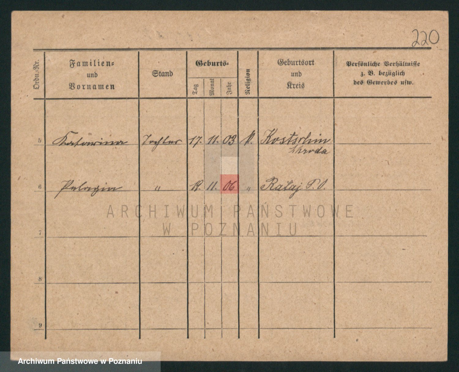 Podgląd karty osobowej dostępny jest po kliknięciu na nazwisko lub ikonkę karty. Można dokonywać powiększenia (ikony na górze) lub przechodzić między kolejnymi skanami (strzałki po bokach).