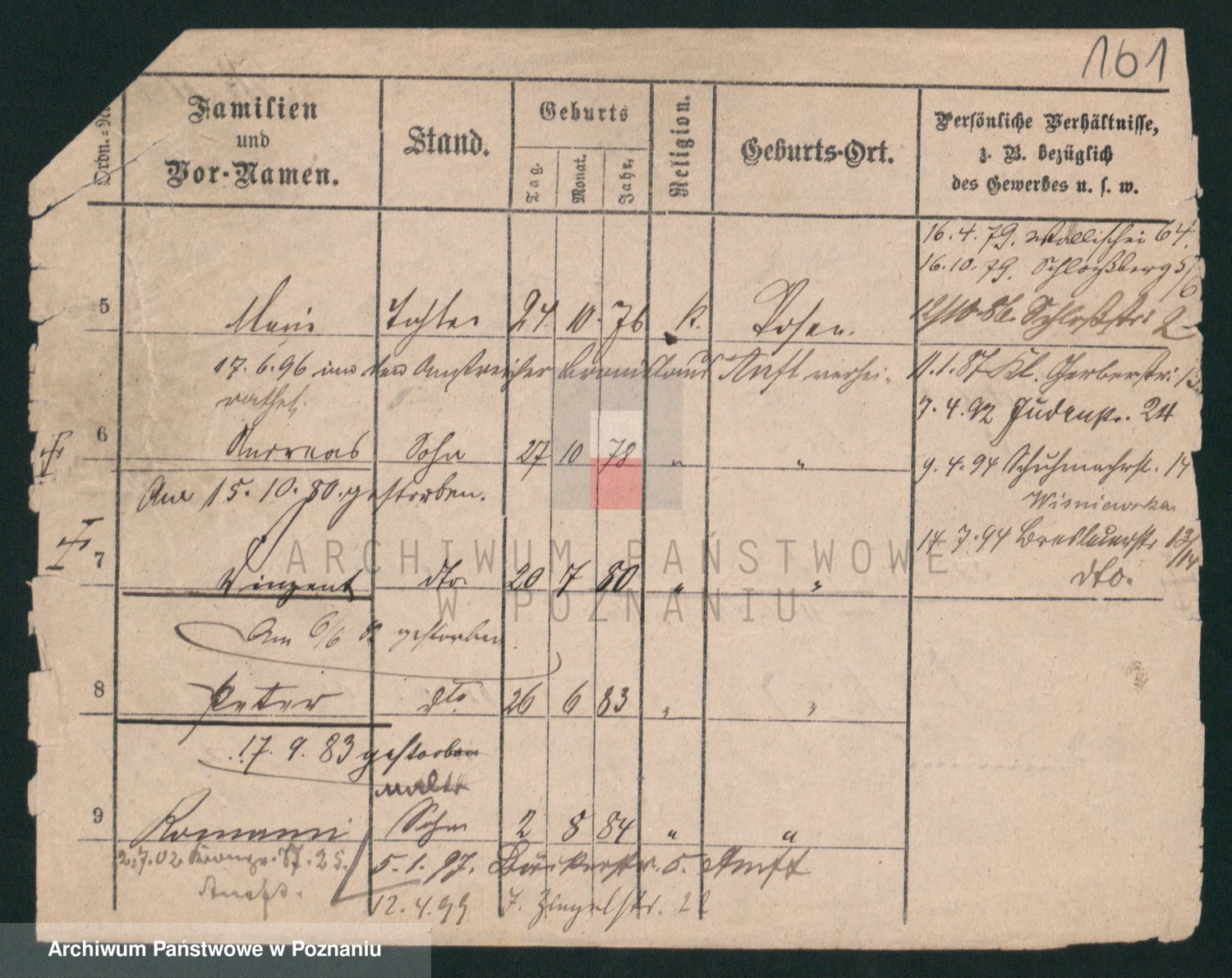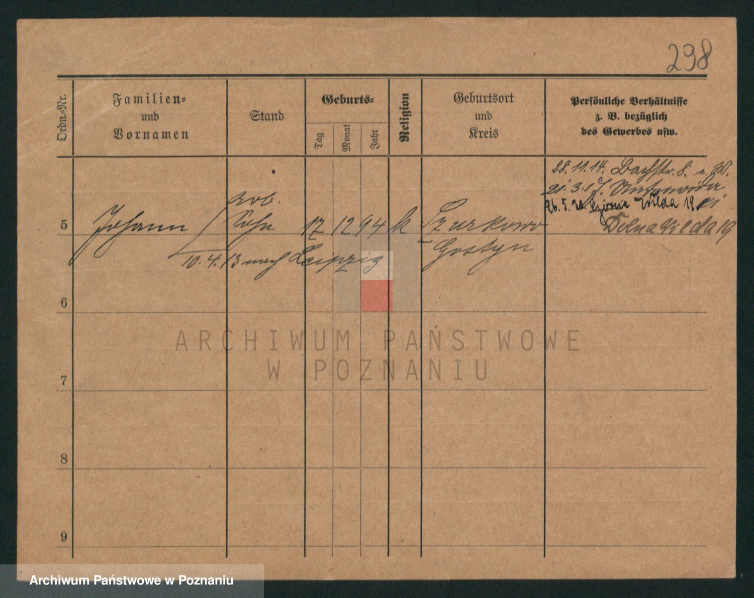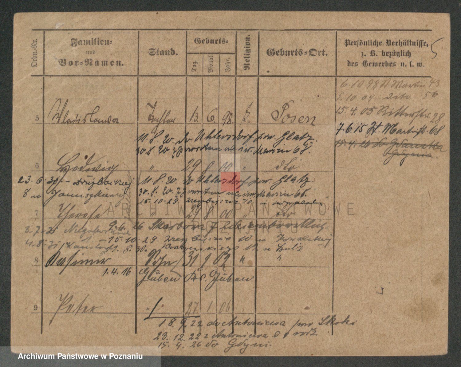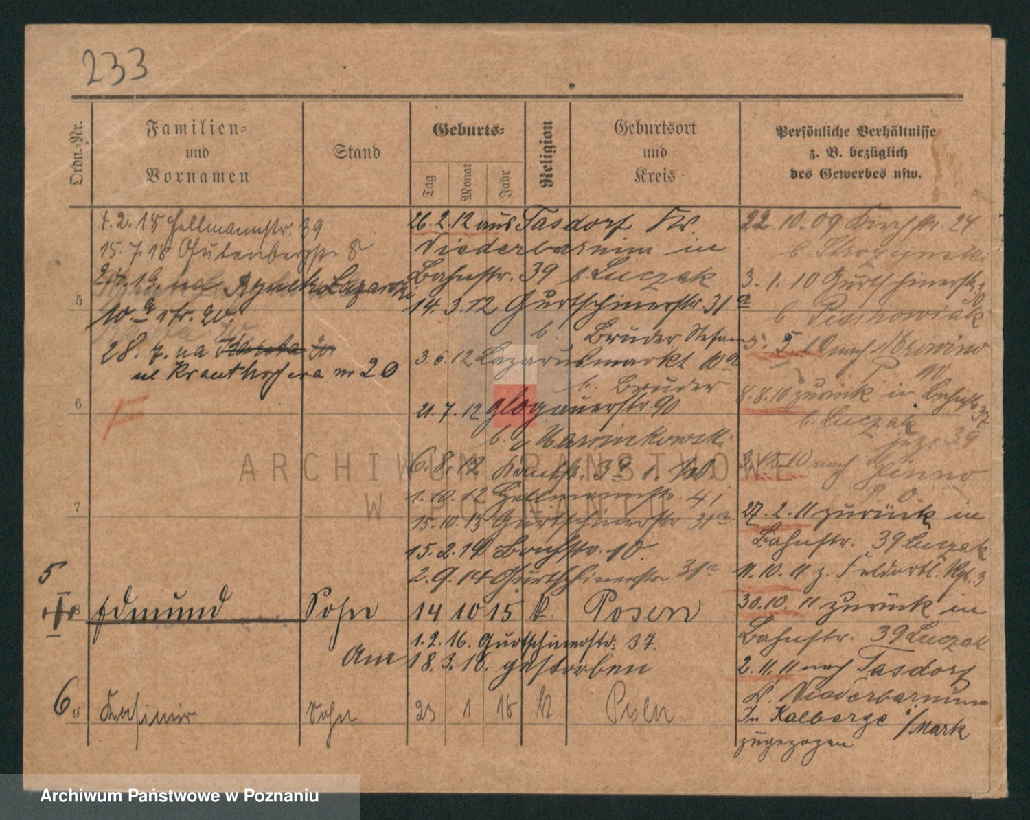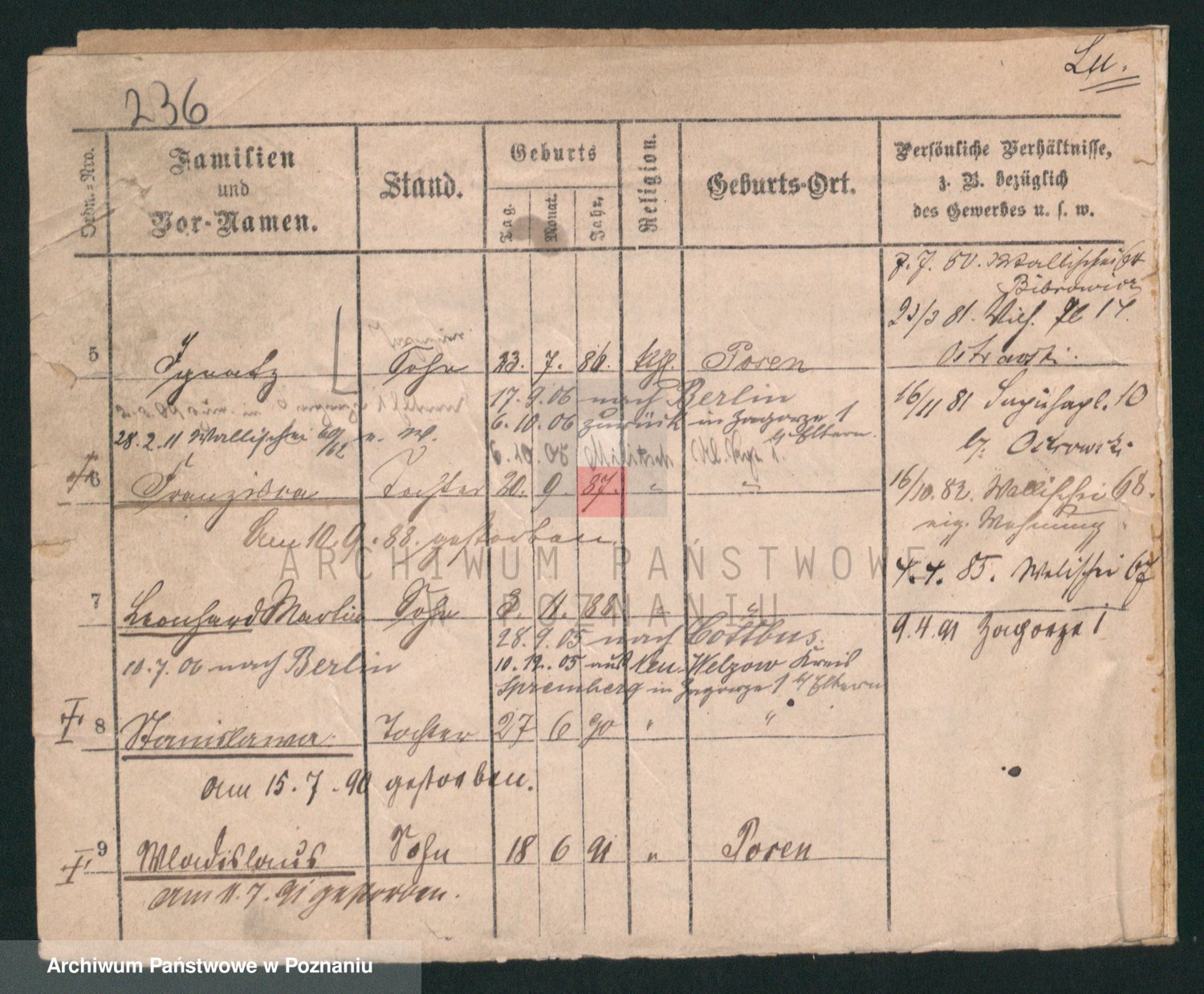 Podgląd karty osobowej dostępny jest po kliknięciu na nazwisko lub ikonkę karty. Można dokonywać powiększenia (ikony na górze) lub przechodzić między kolejnymi skanami (strzałki po bokach).