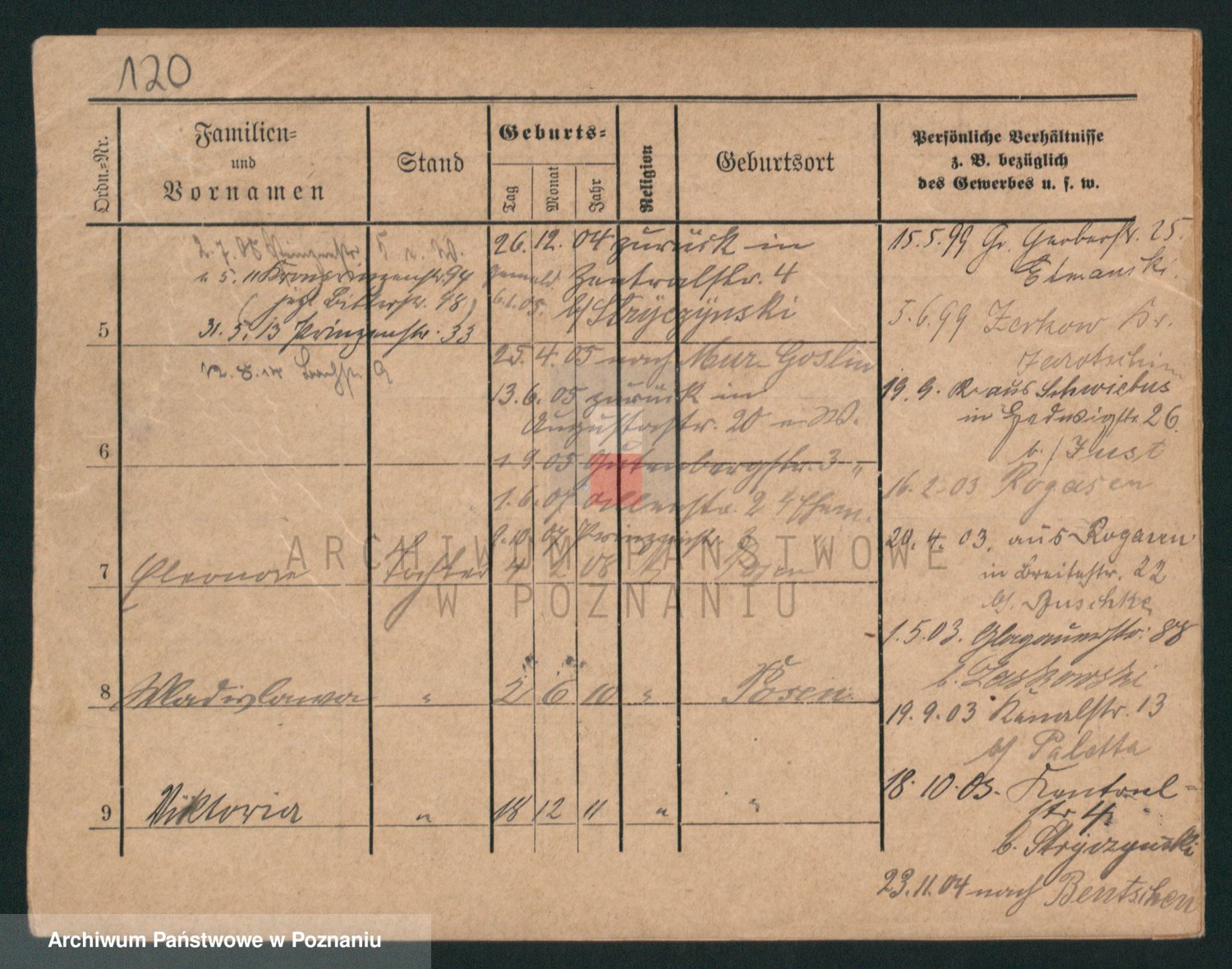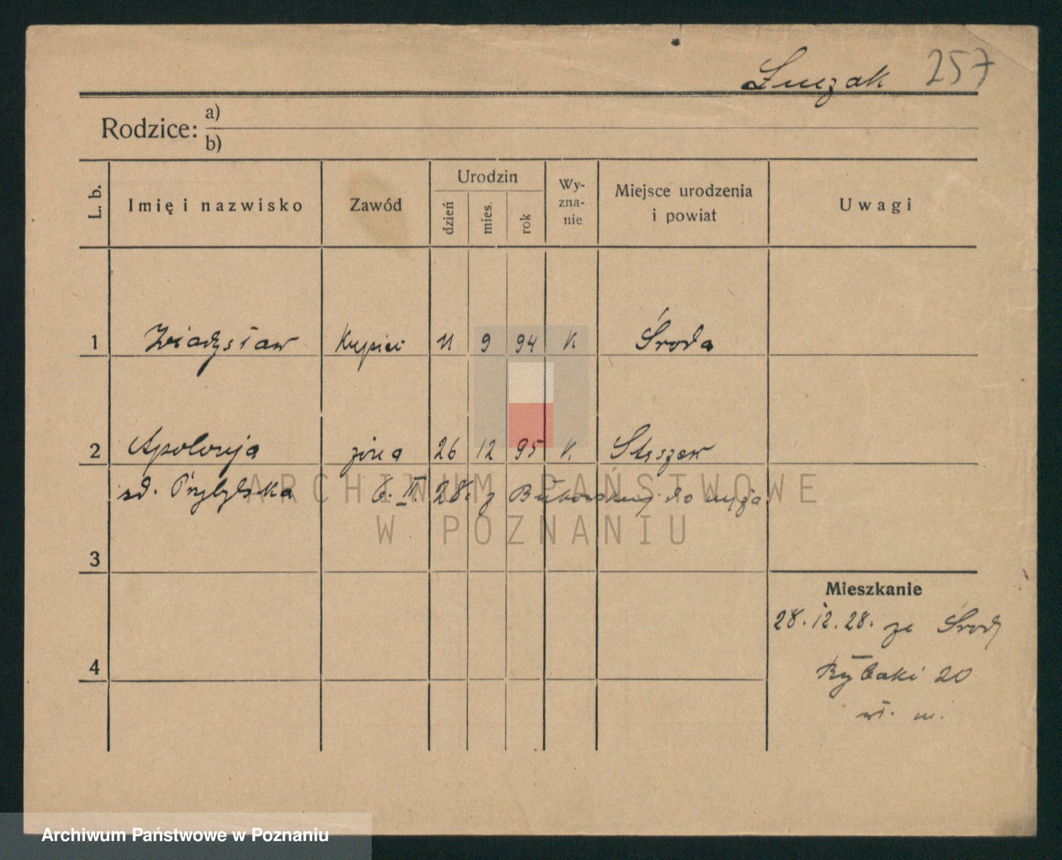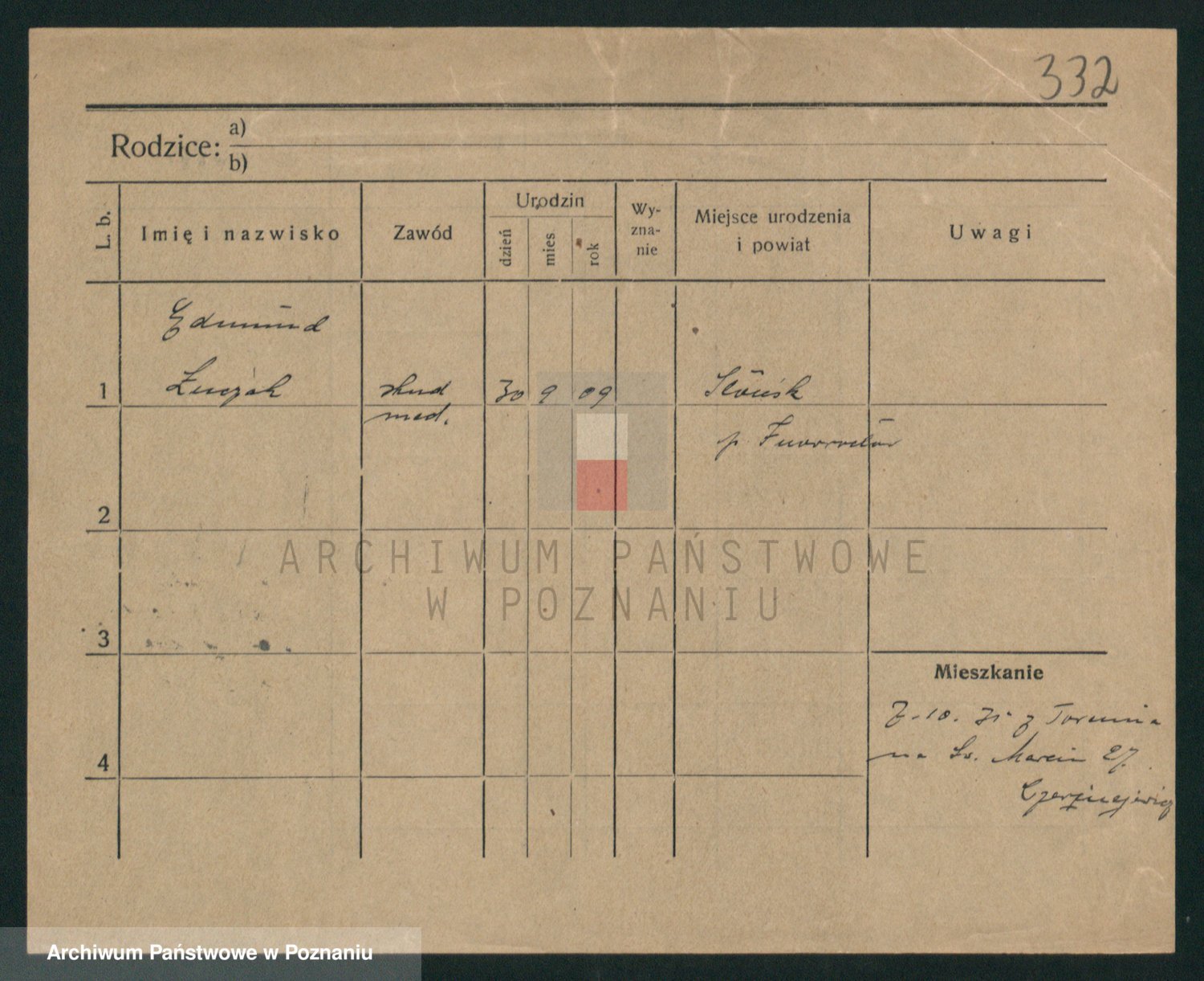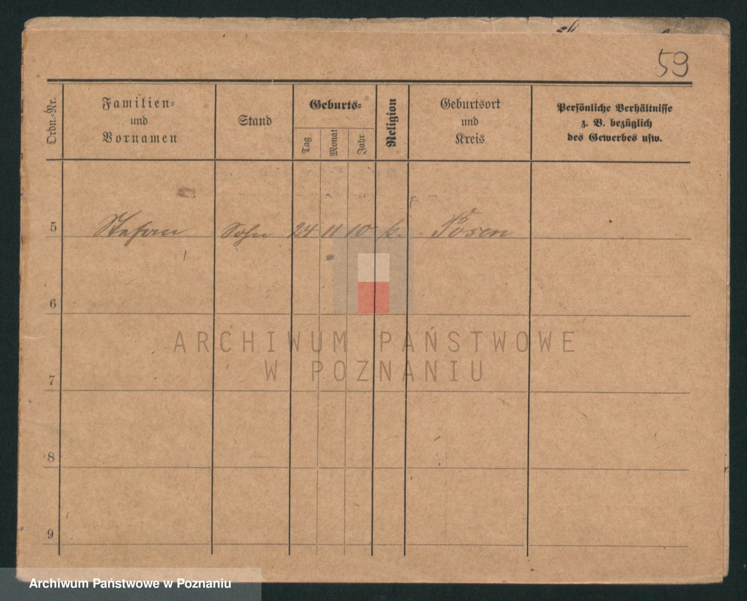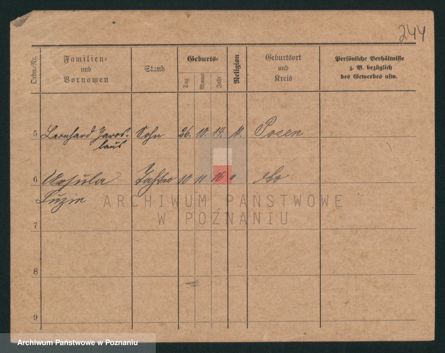 Podgląd karty osobowej dostępny jest po kliknięciu na nazwisko lub ikonkę karty. Można dokonywać powiększenia (ikony na górze) lub przechodzić między kolejnymi skanami (strzałki po bokach).