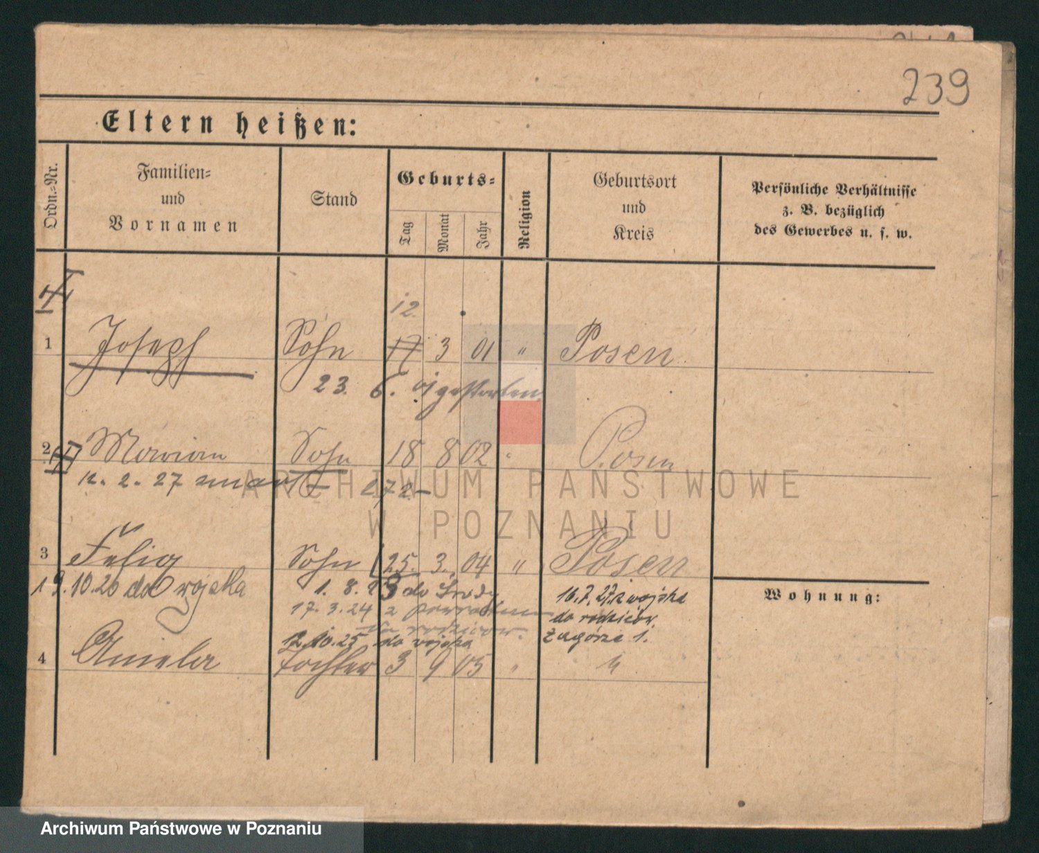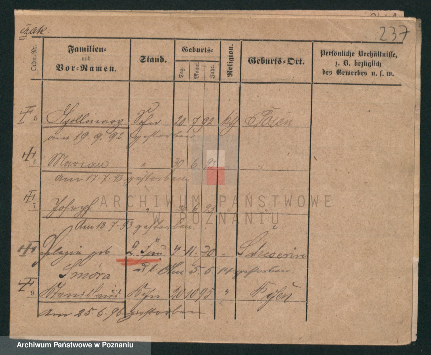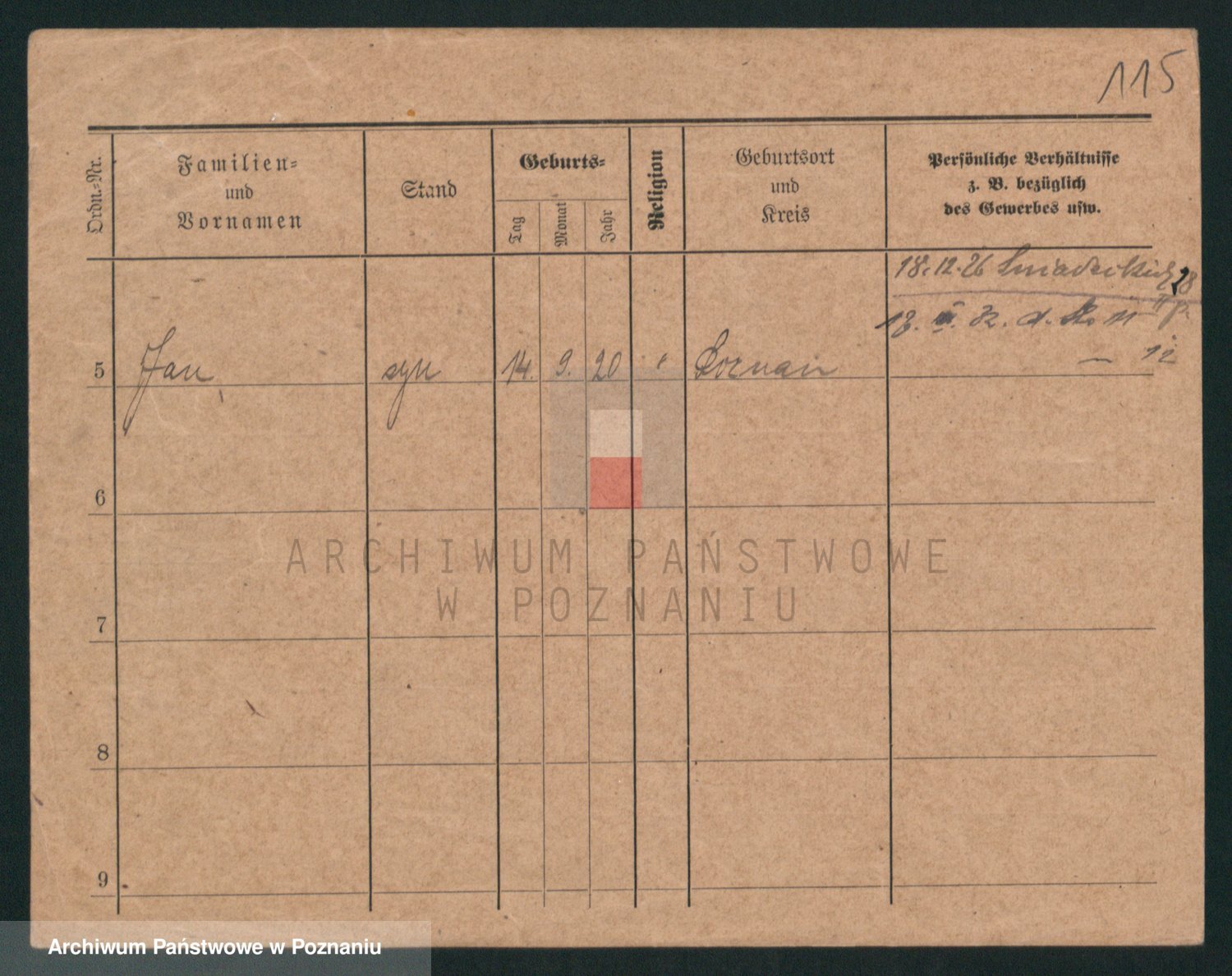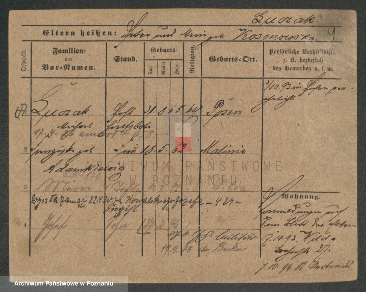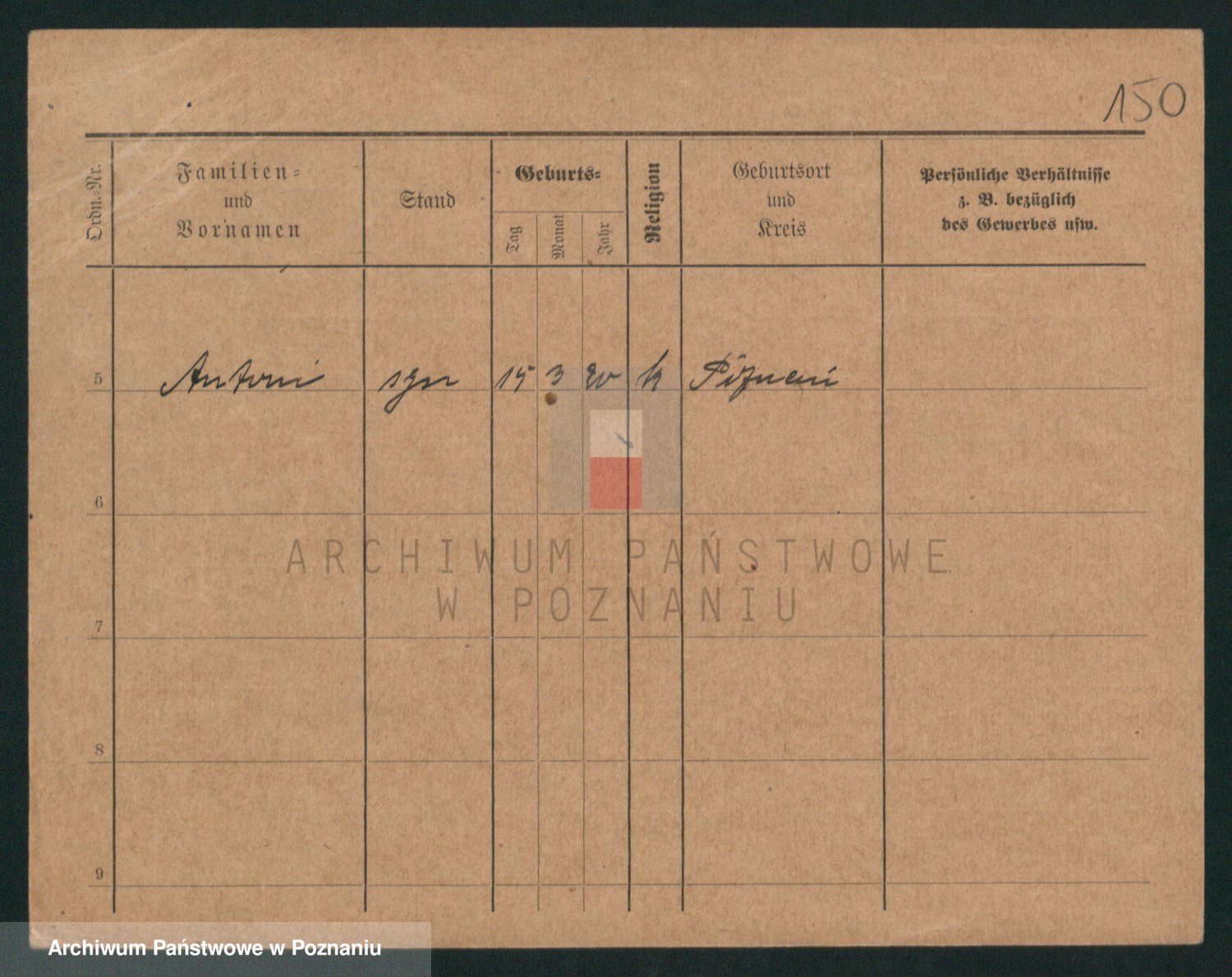 Podgląd karty osobowej dostępny jest po kliknięciu na nazwisko lub ikonkę karty. Można dokonywać powiększenia (ikony na górze) lub przechodzić między kolejnymi skanami (strzałki po bokach).