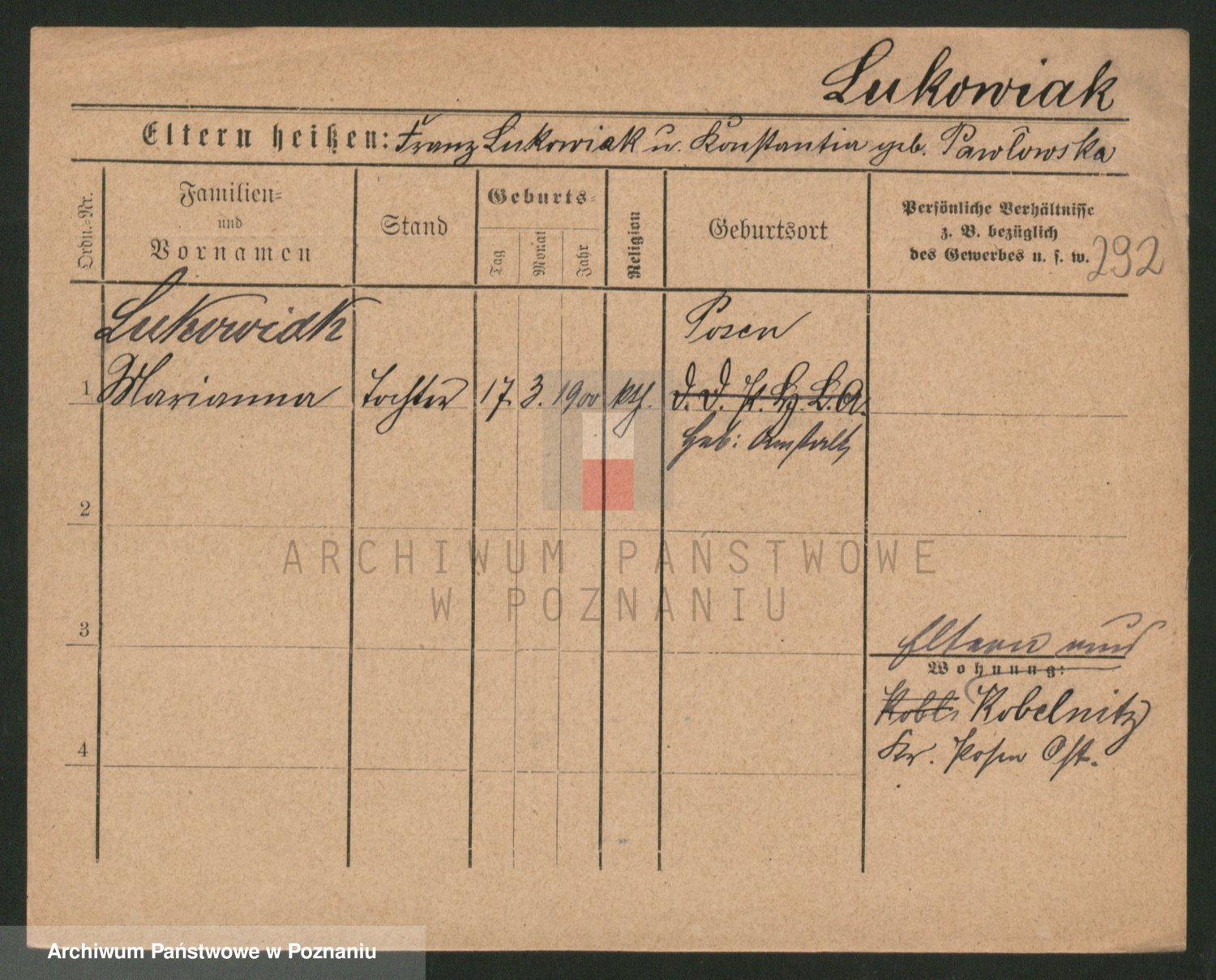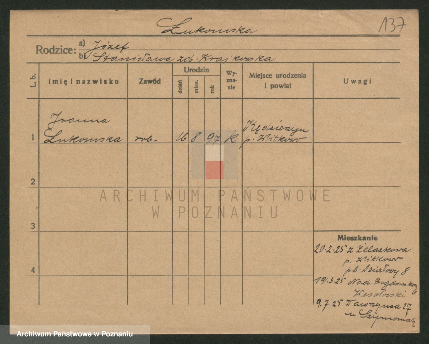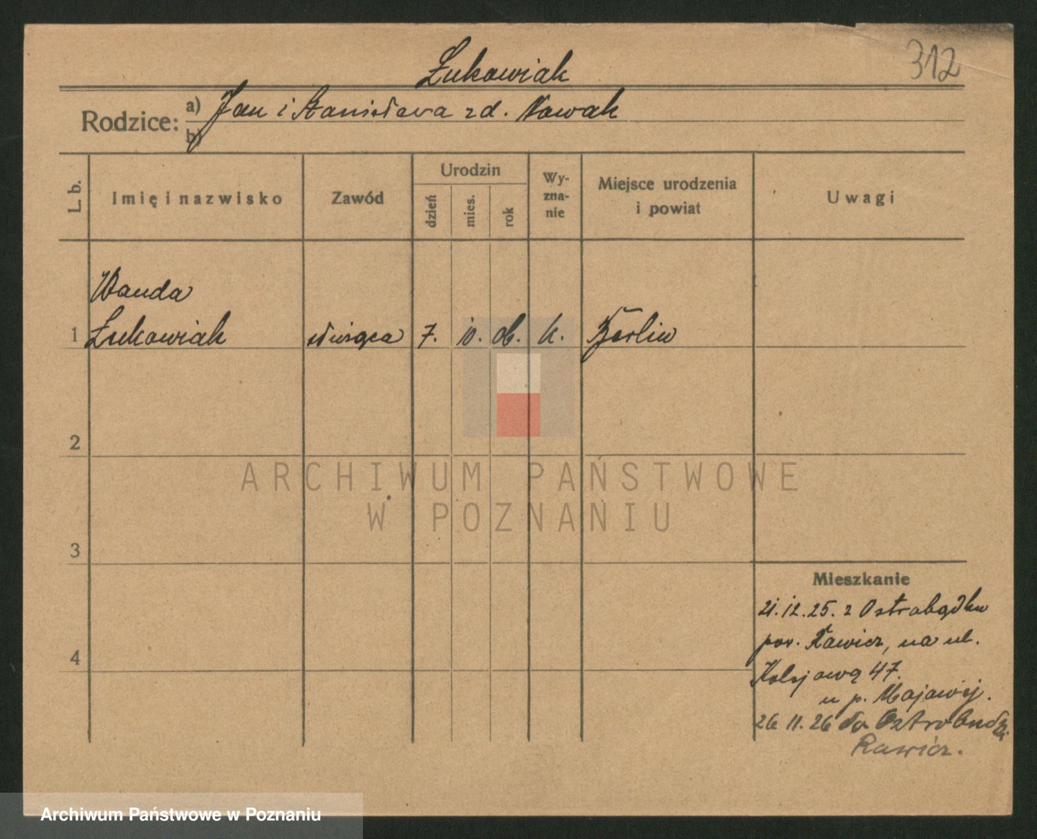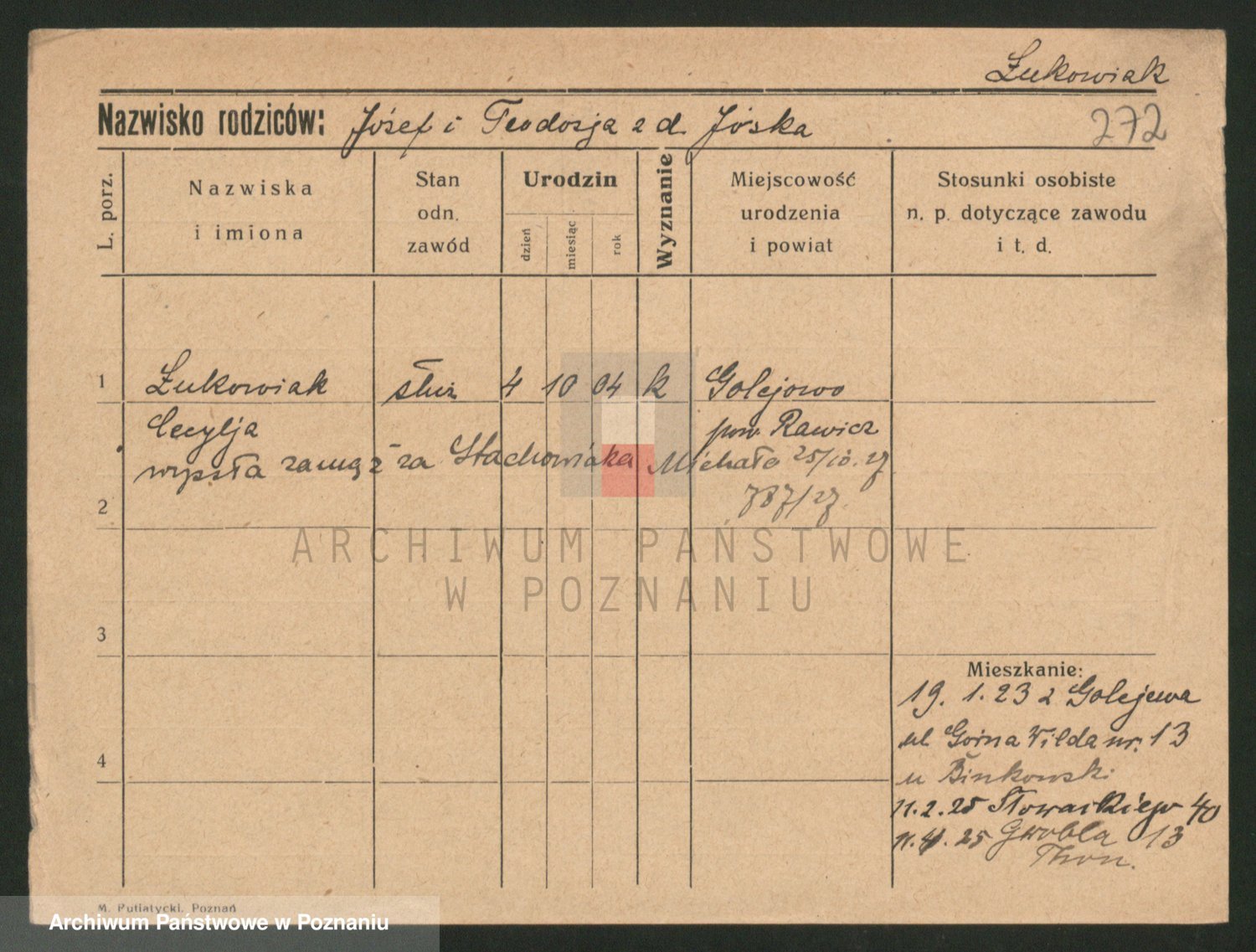 Lukomski z.d. Krawczyk I voto Derens, Marja