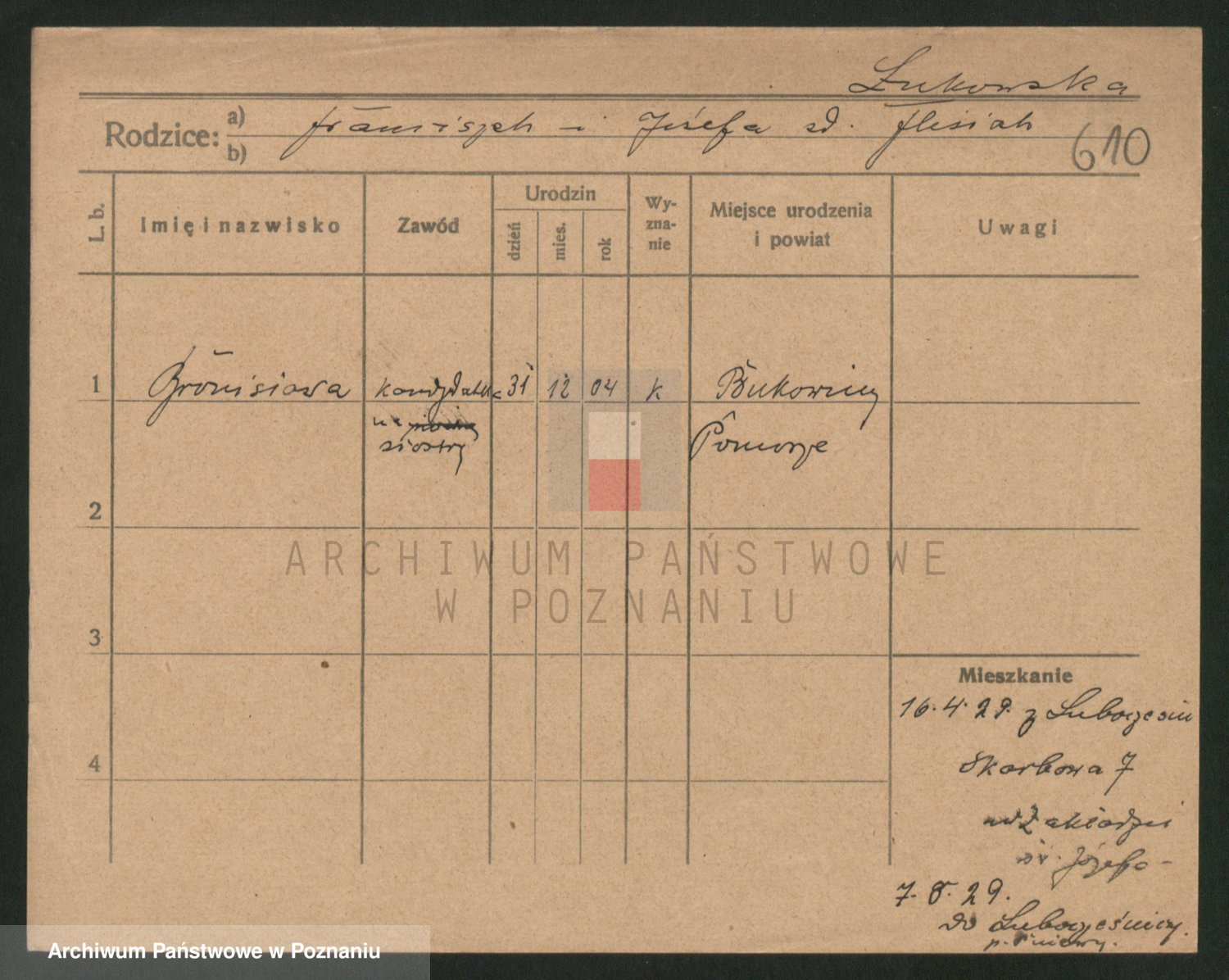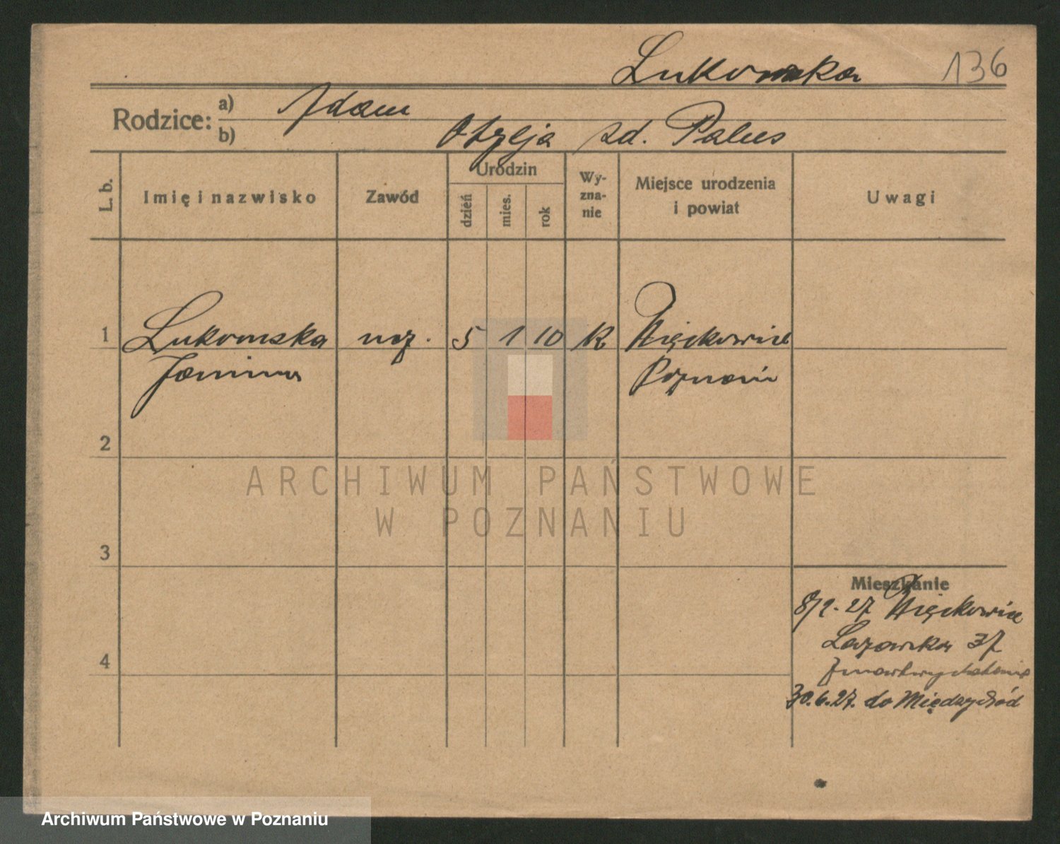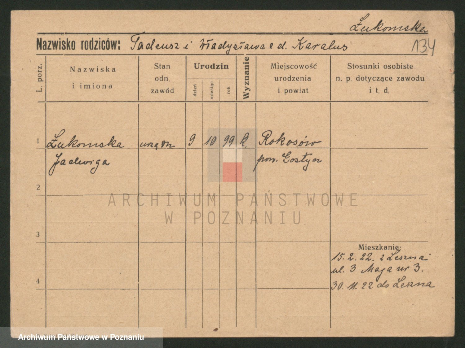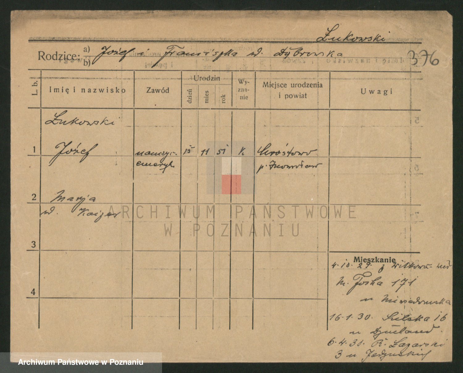 Lukomski z.d. Krawczyk I voto Derens, Marja