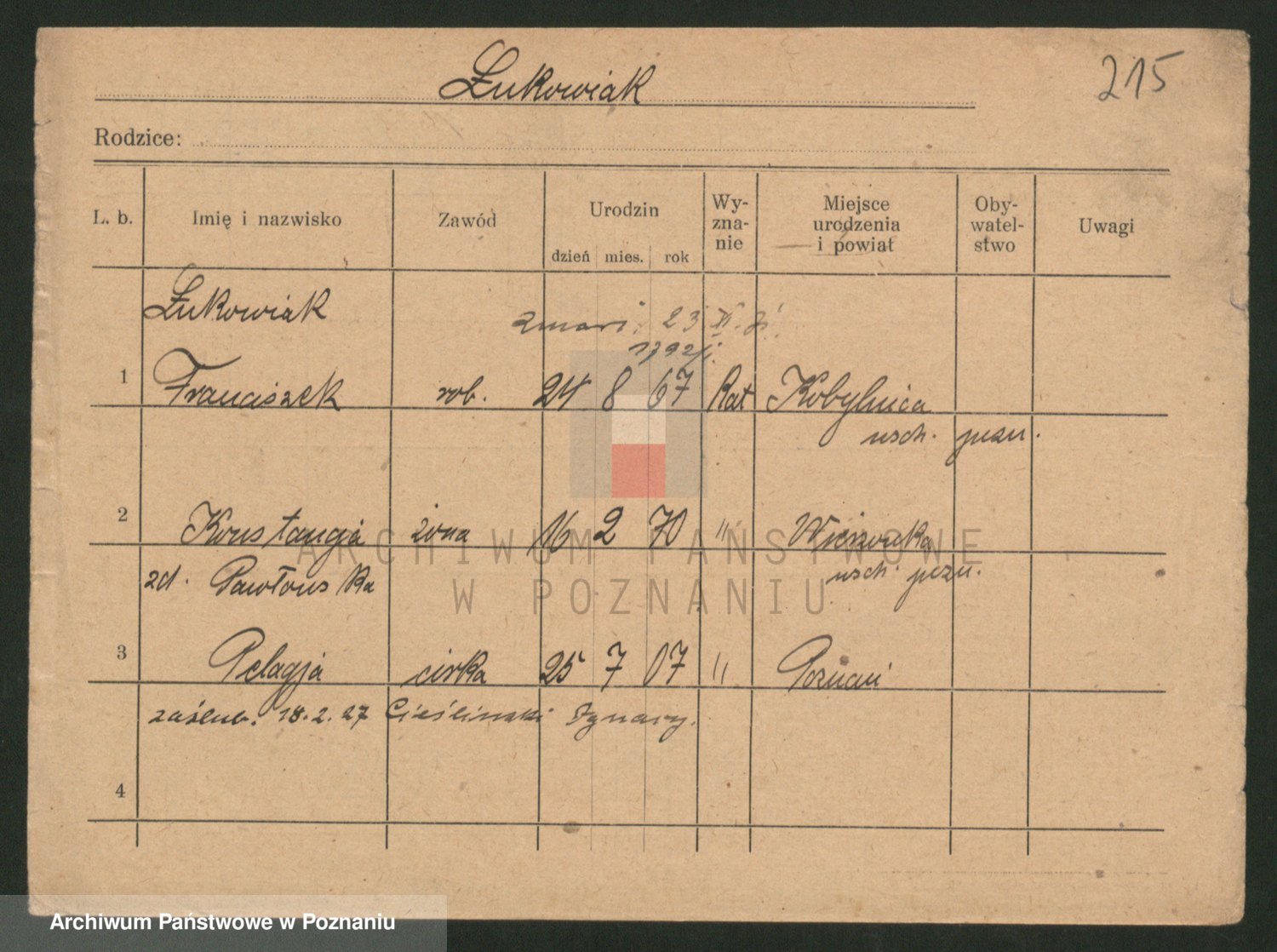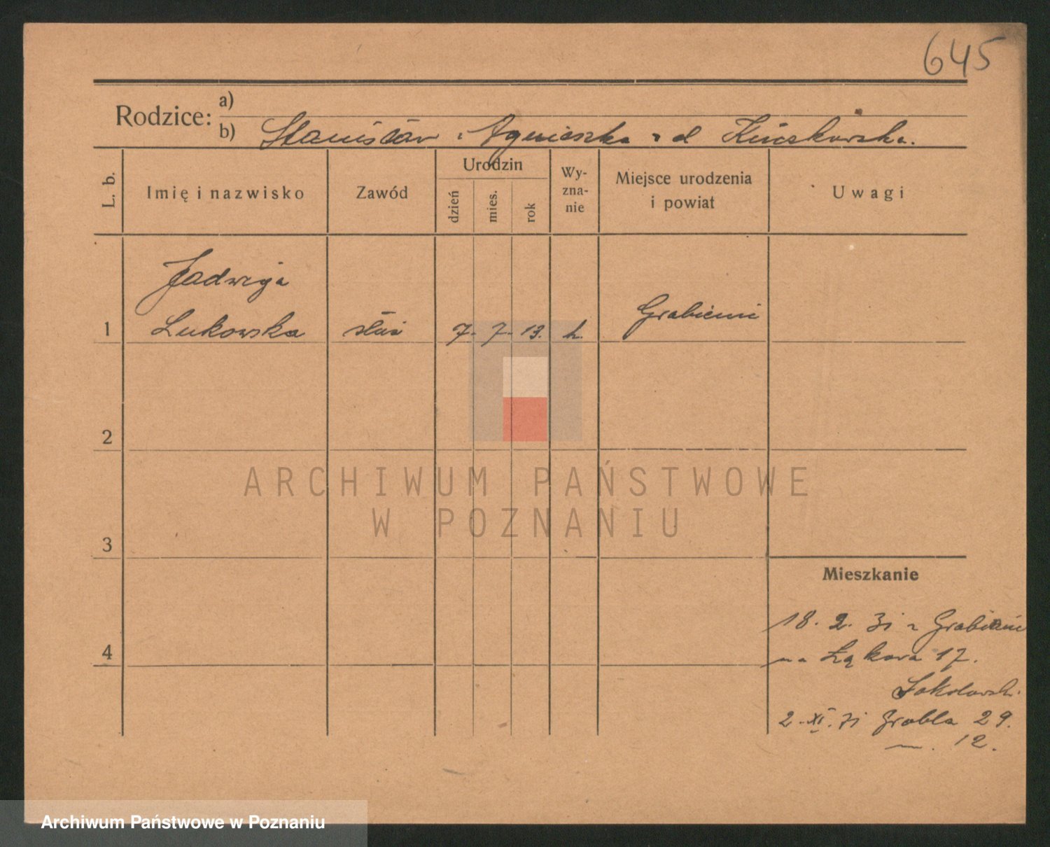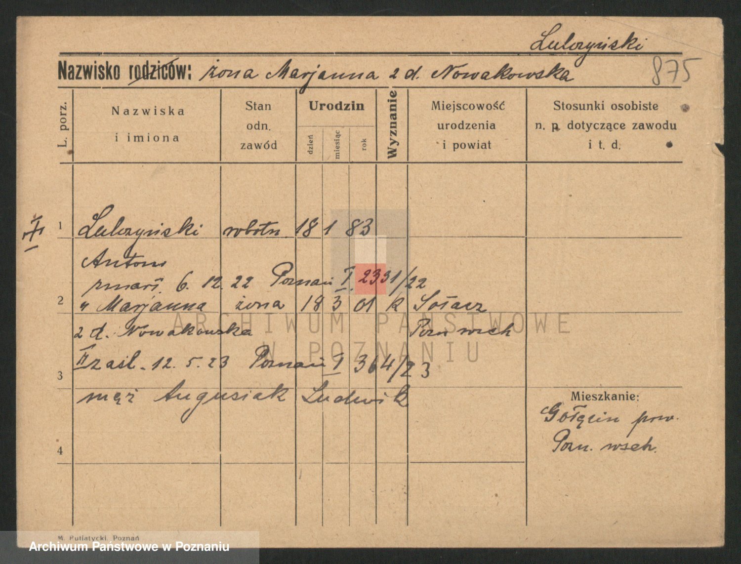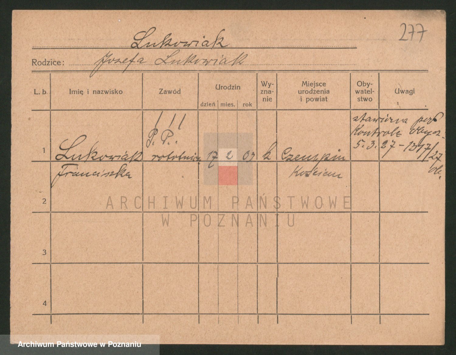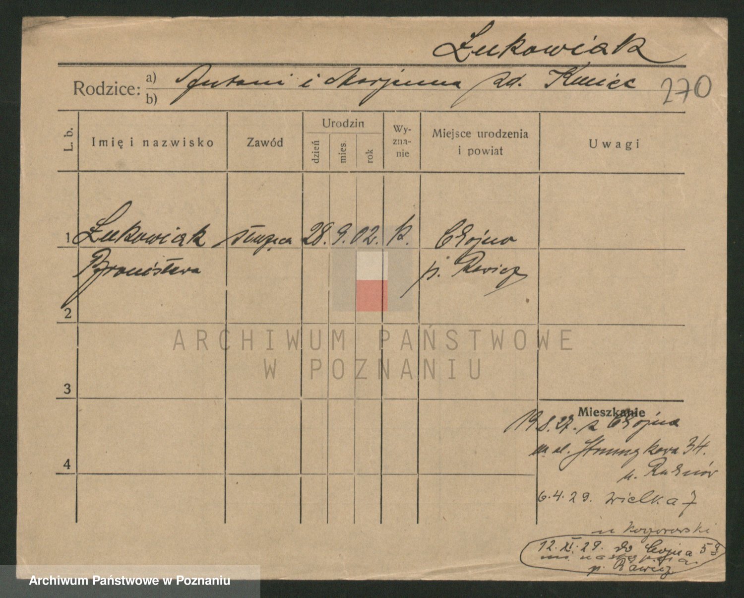 Lukomski z.d. Krawczyk I voto Derens, Marja