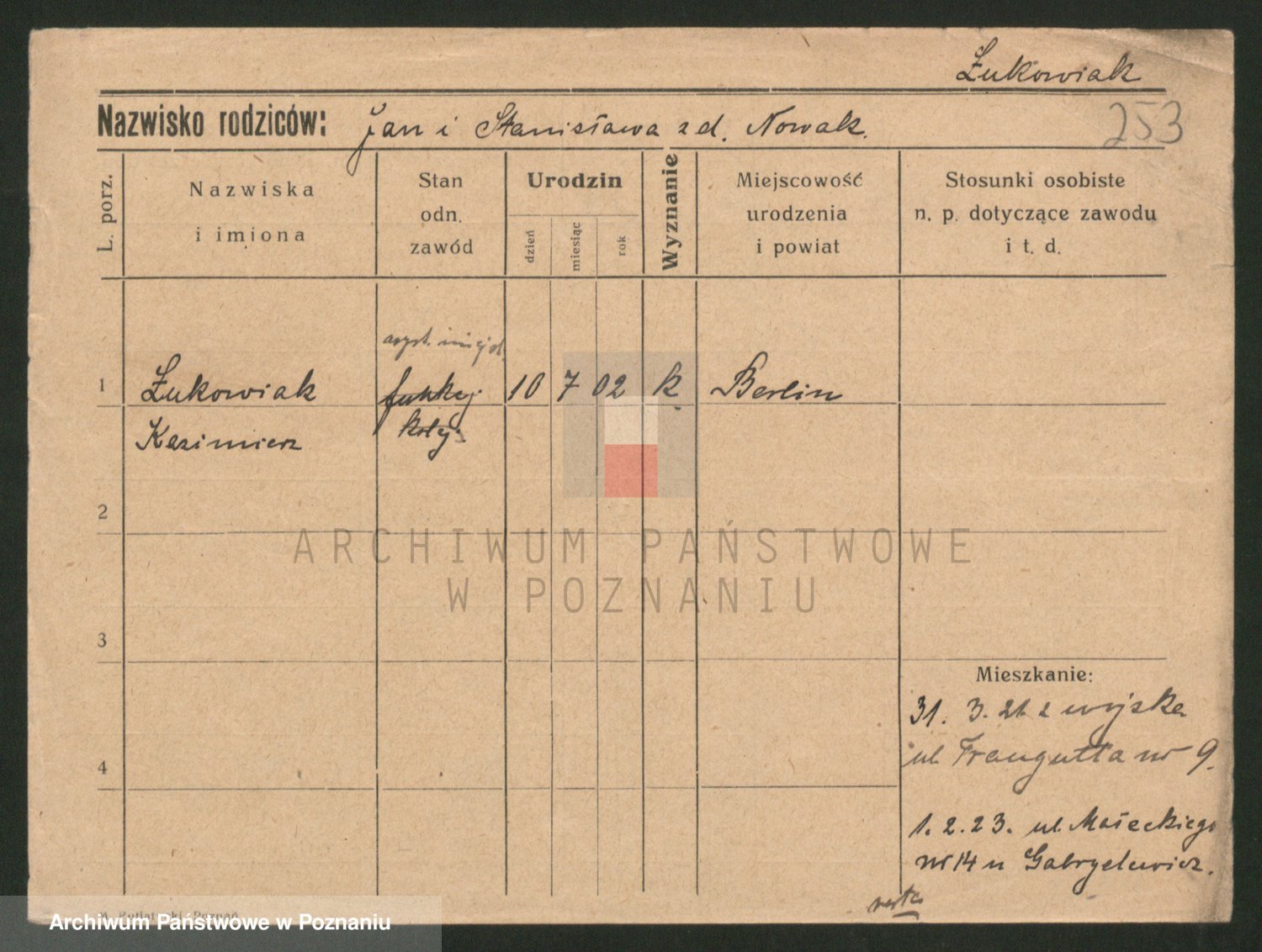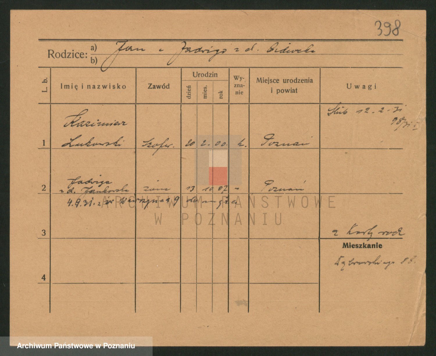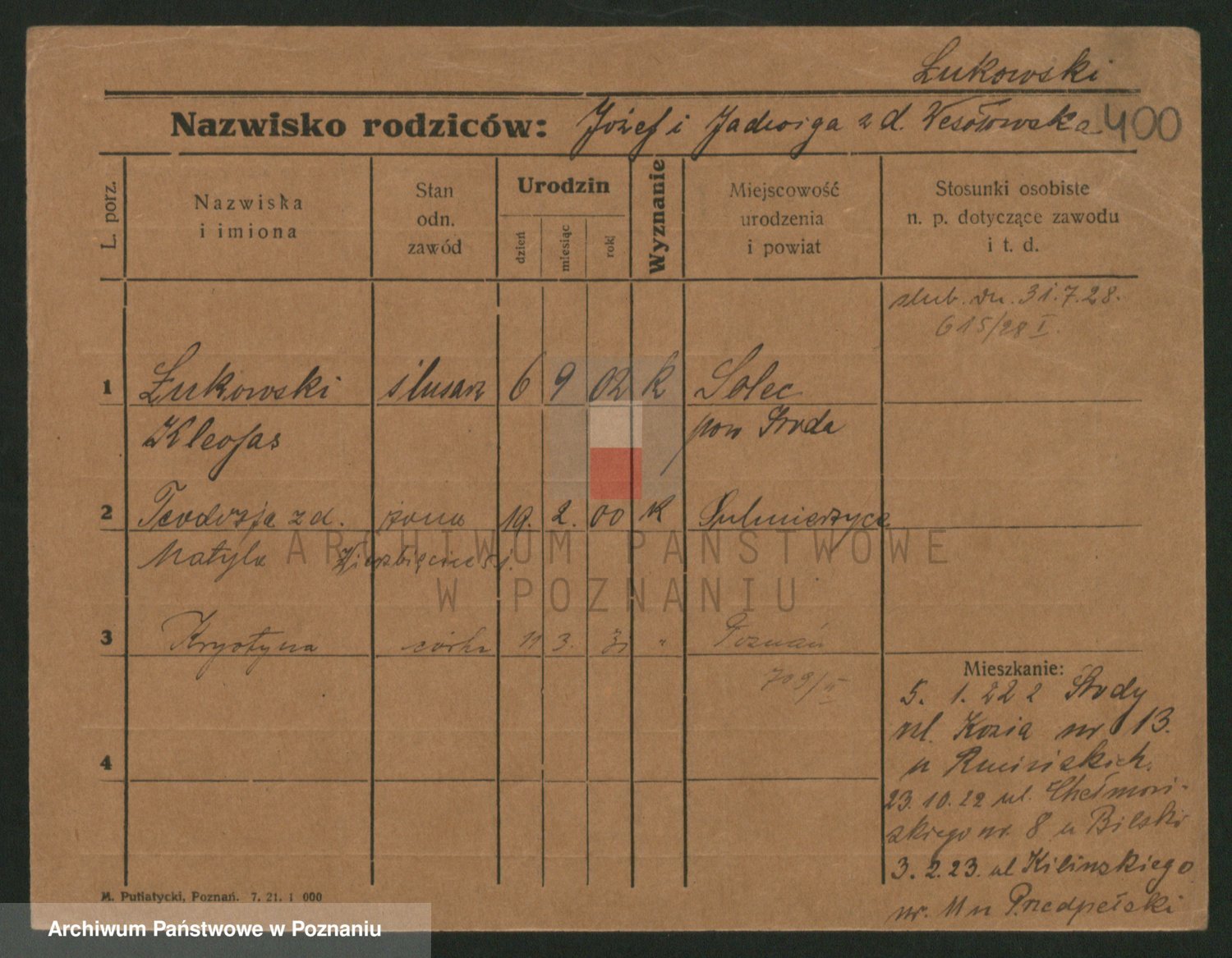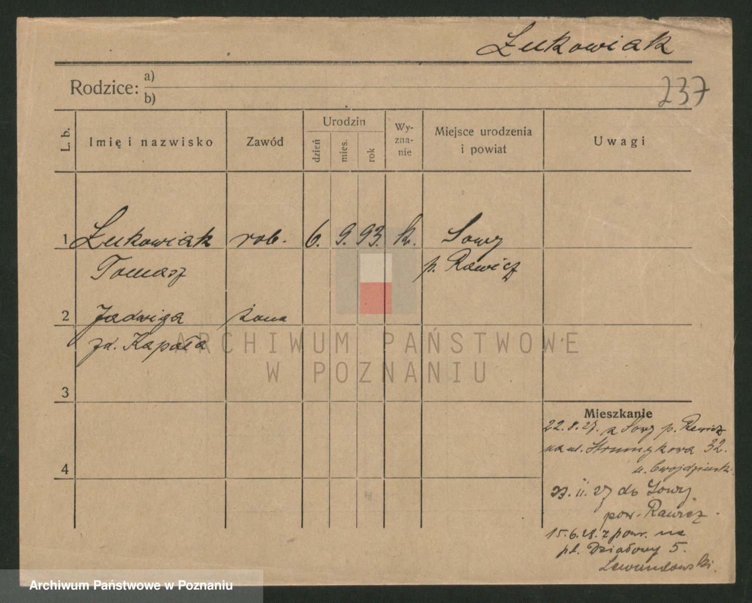 Lukomski z.d. Krawczyk I voto Derens, Marja