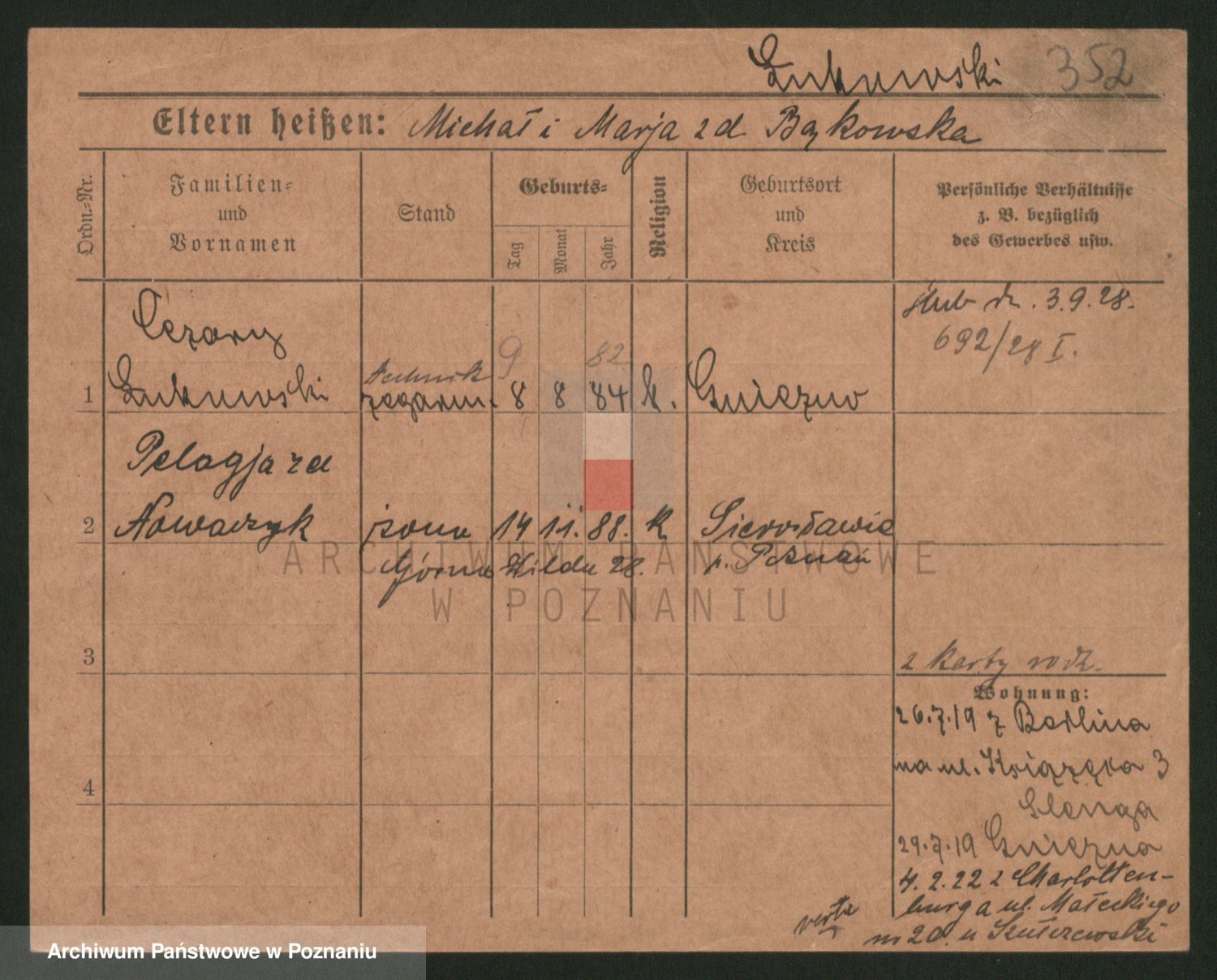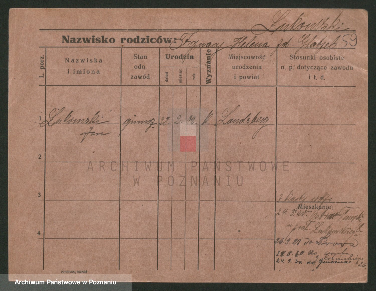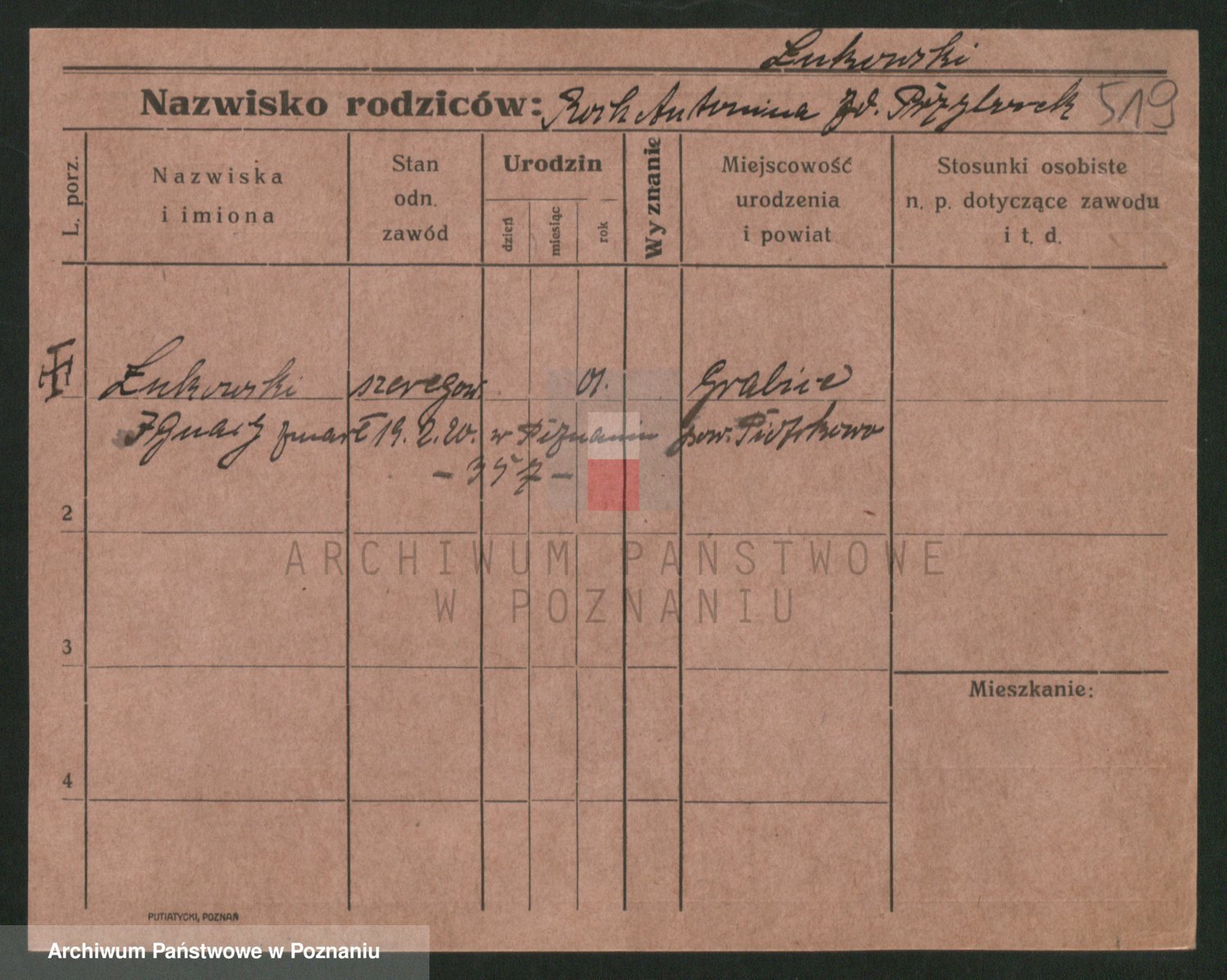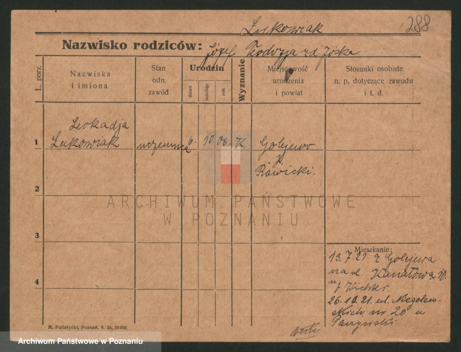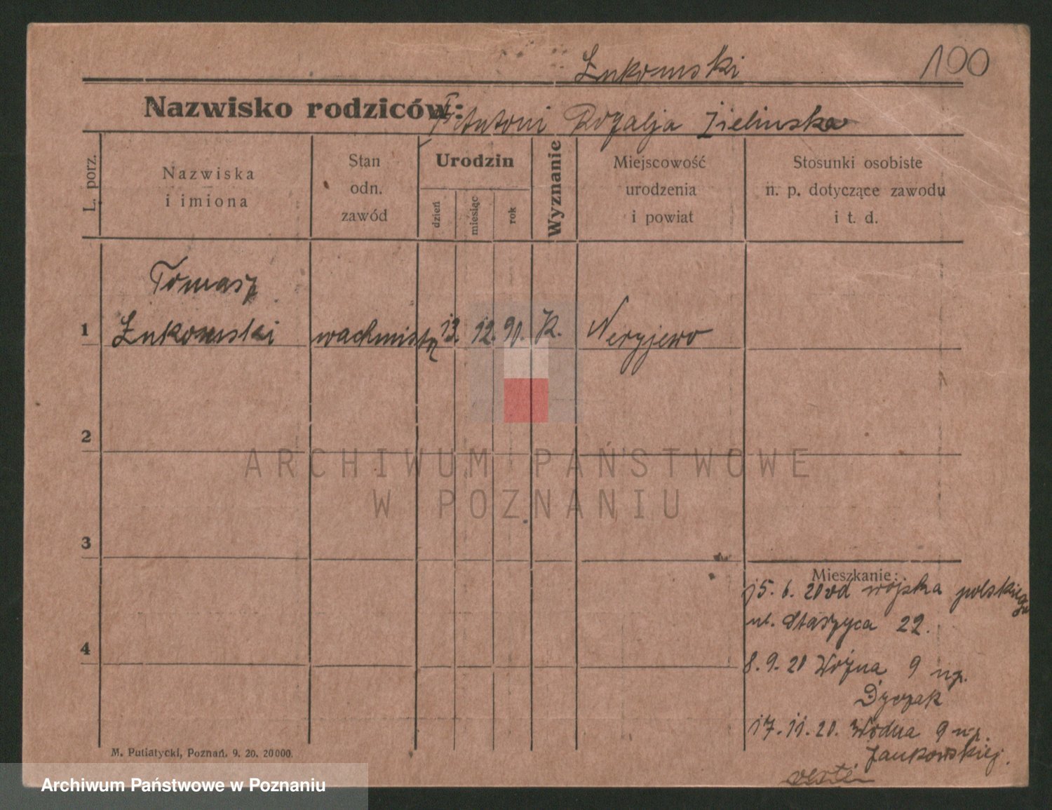 Podgląd karty osobowej dostępny jest po kliknięciu na nazwisko lub ikonkę karty. Można dokonywać powiększenia (ikony na górze) lub przechodzić między kolejnymi skanami (strzałki po bokach).