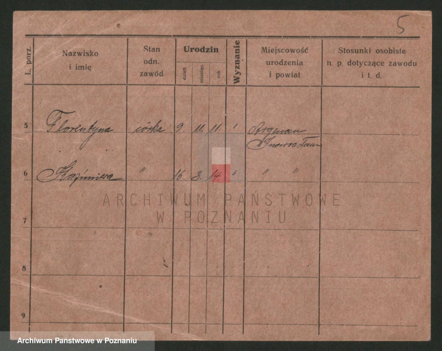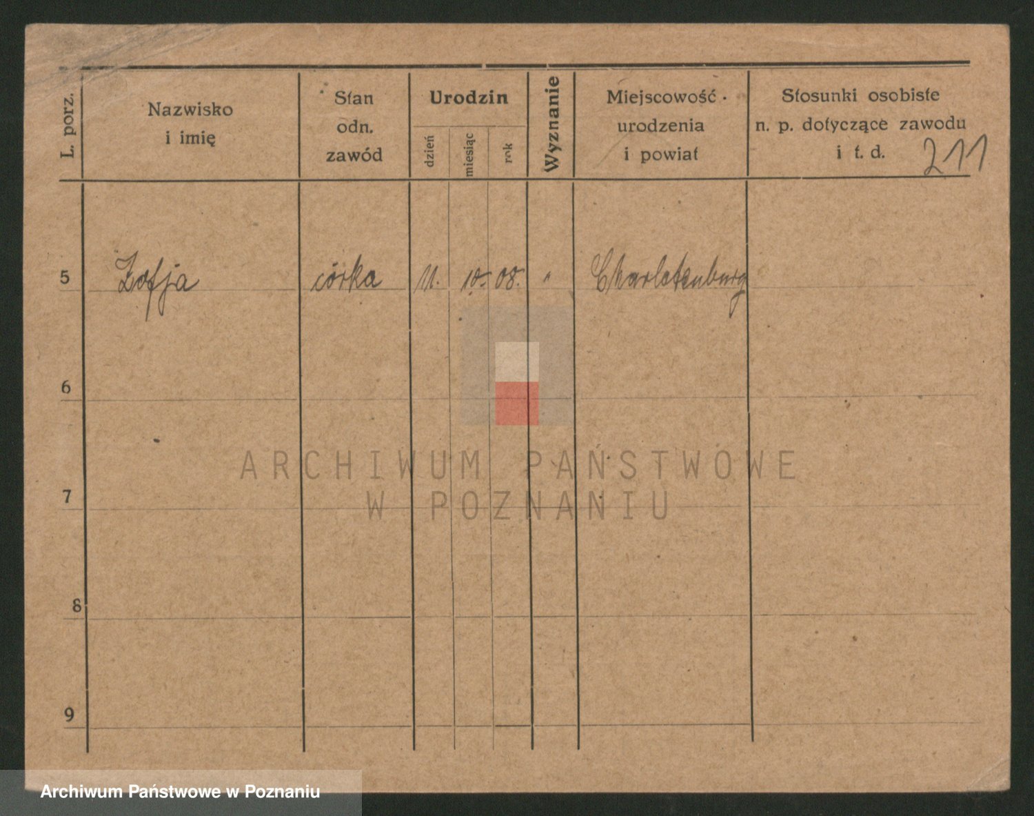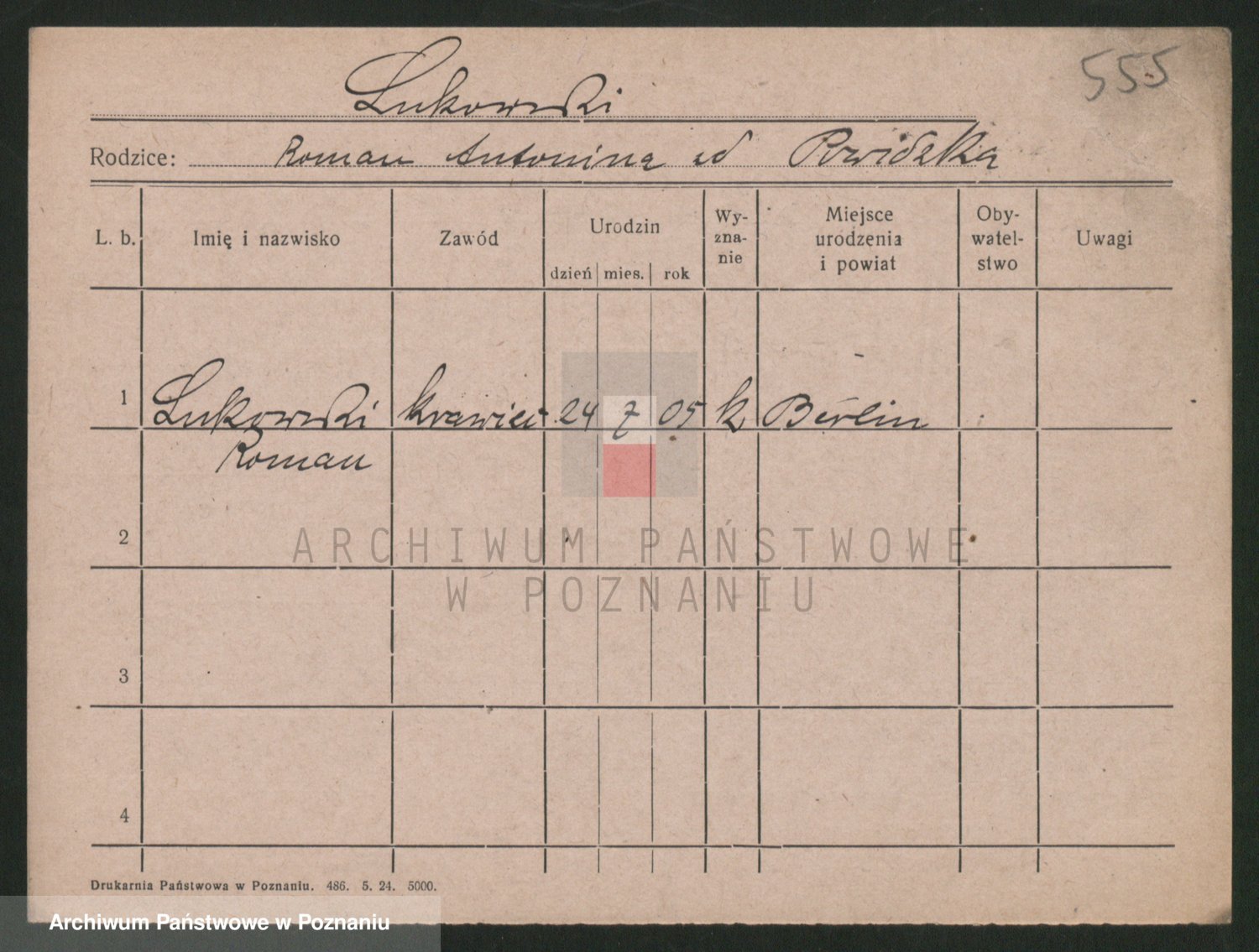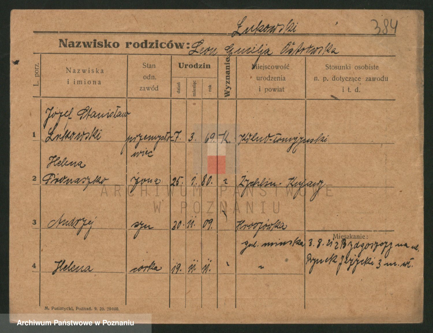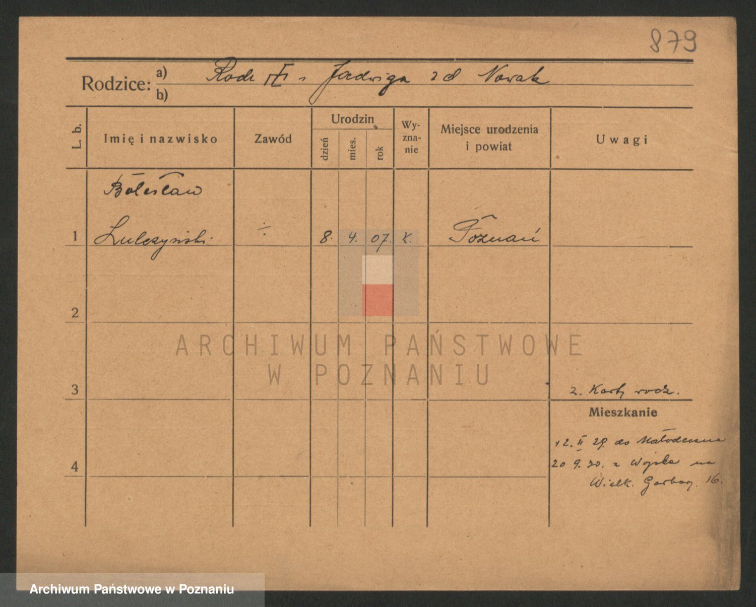 Podgląd karty osobowej dostępny jest po kliknięciu na nazwisko lub ikonkę karty. Można dokonywać powiększenia (ikony na górze) lub przechodzić między kolejnymi skanami (strzałki po bokach).