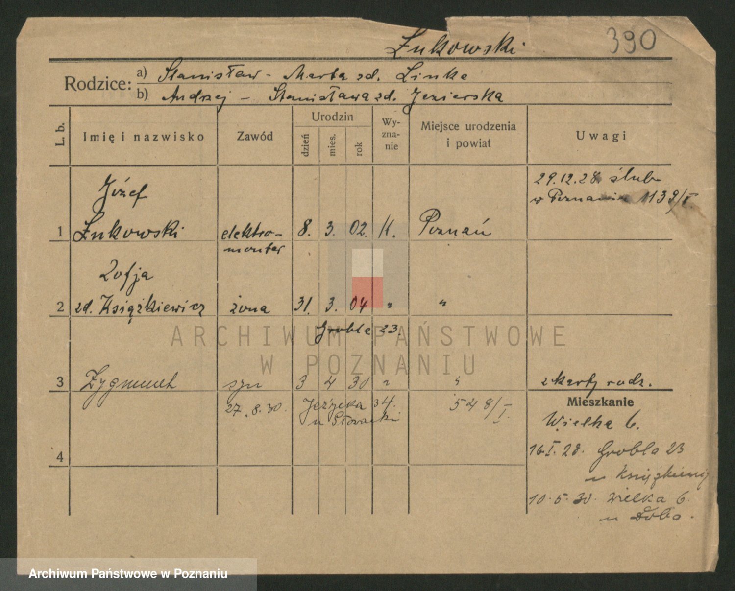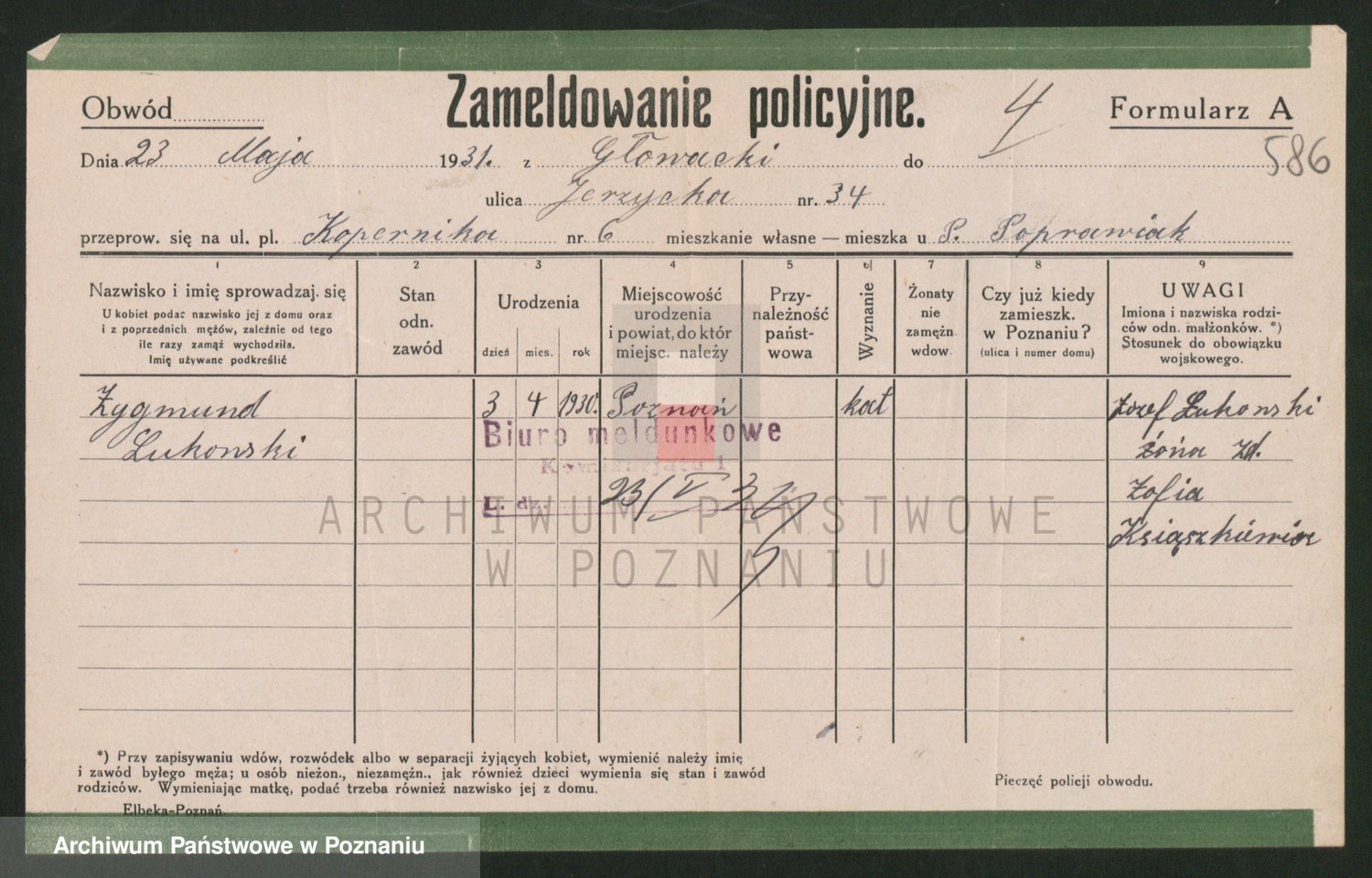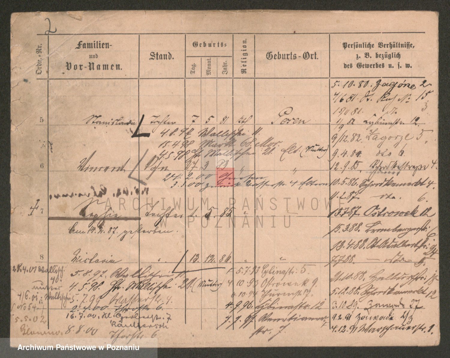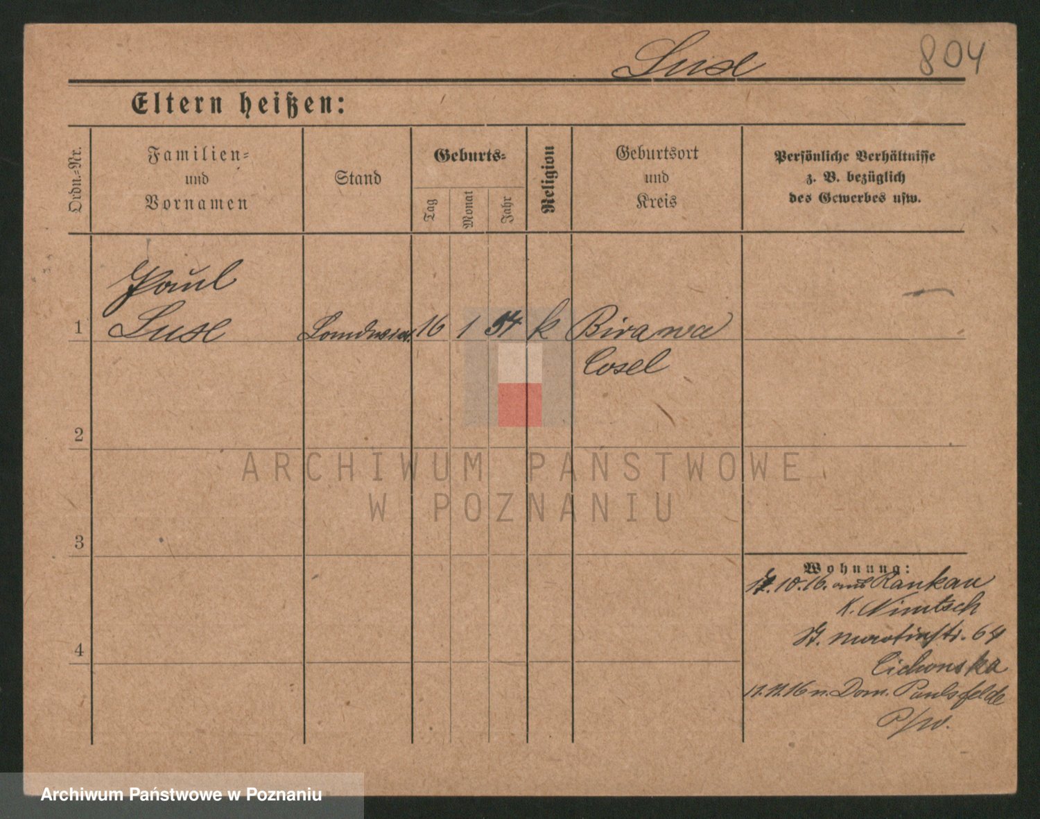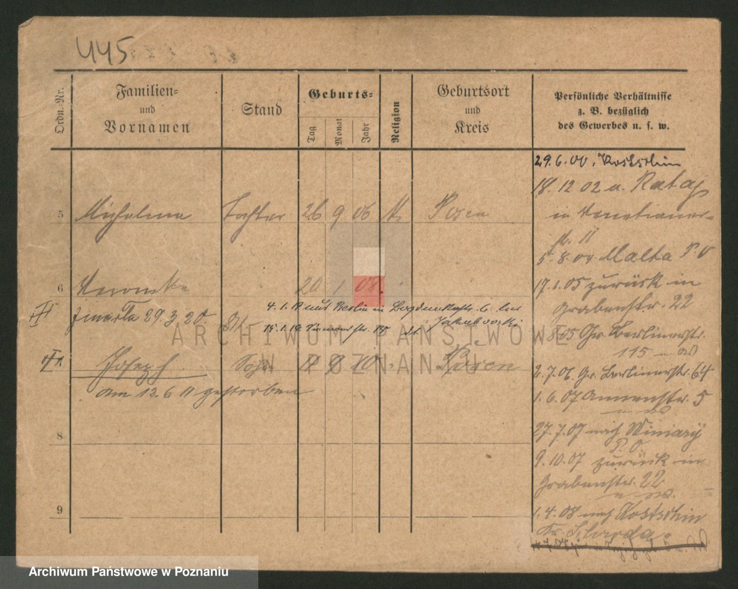 Podgląd karty osobowej dostępny jest po kliknięciu na nazwisko lub ikonkę karty. Można dokonywać powiększenia (ikony na górze) lub przechodzić między kolejnymi skanami (strzałki po bokach).
