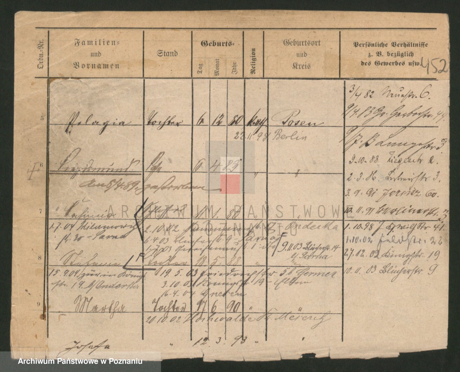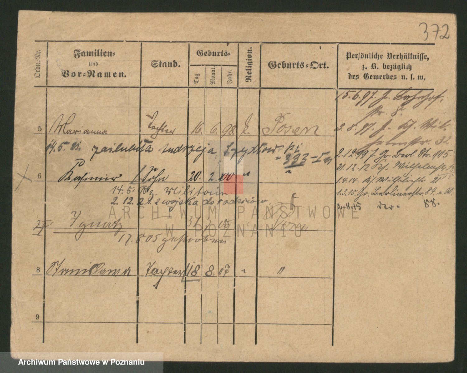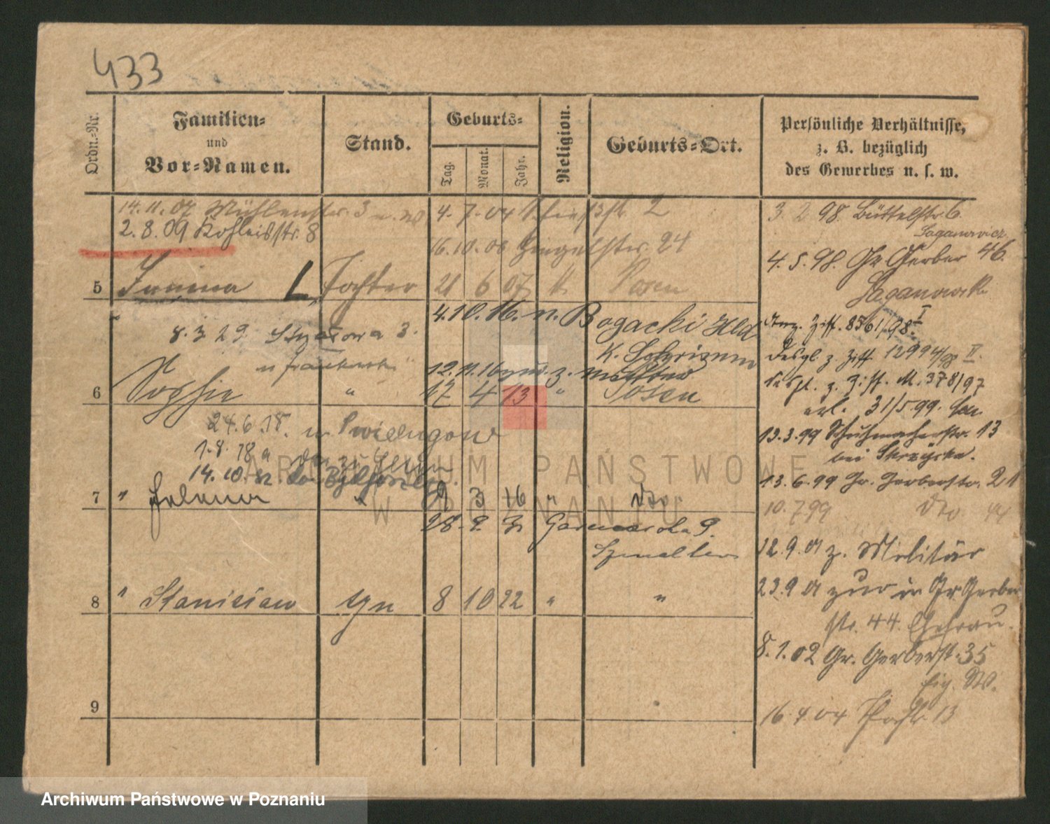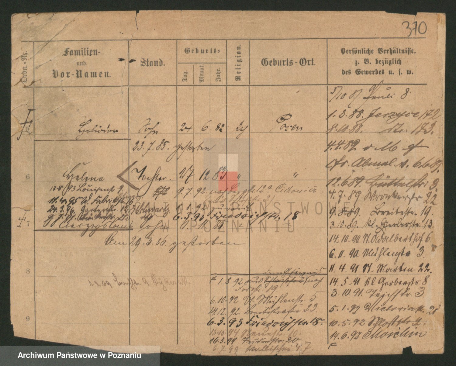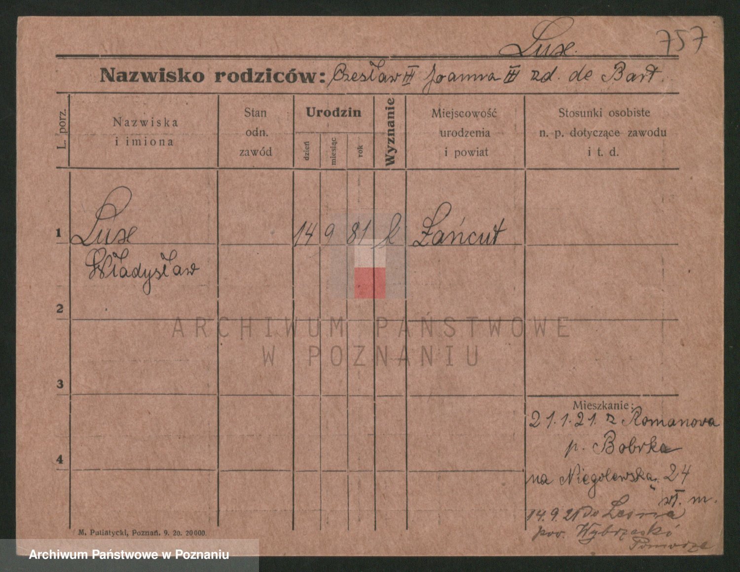 Podgląd karty osobowej dostępny jest po kliknięciu na nazwisko lub ikonkę karty. Można dokonywać powiększenia (ikony na górze) lub przechodzić między kolejnymi skanami (strzałki po bokach).