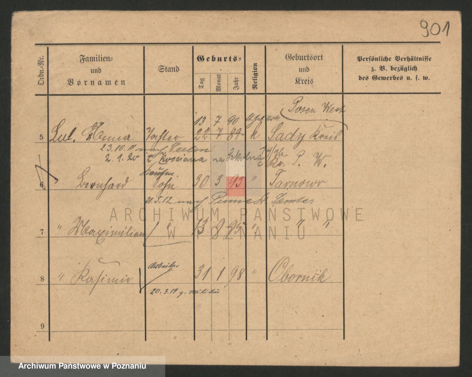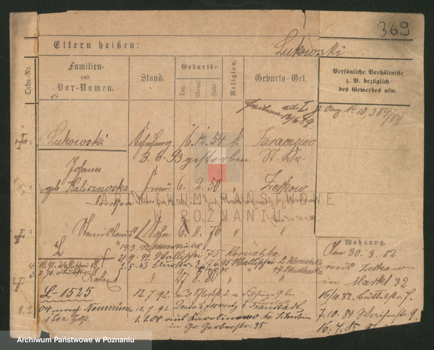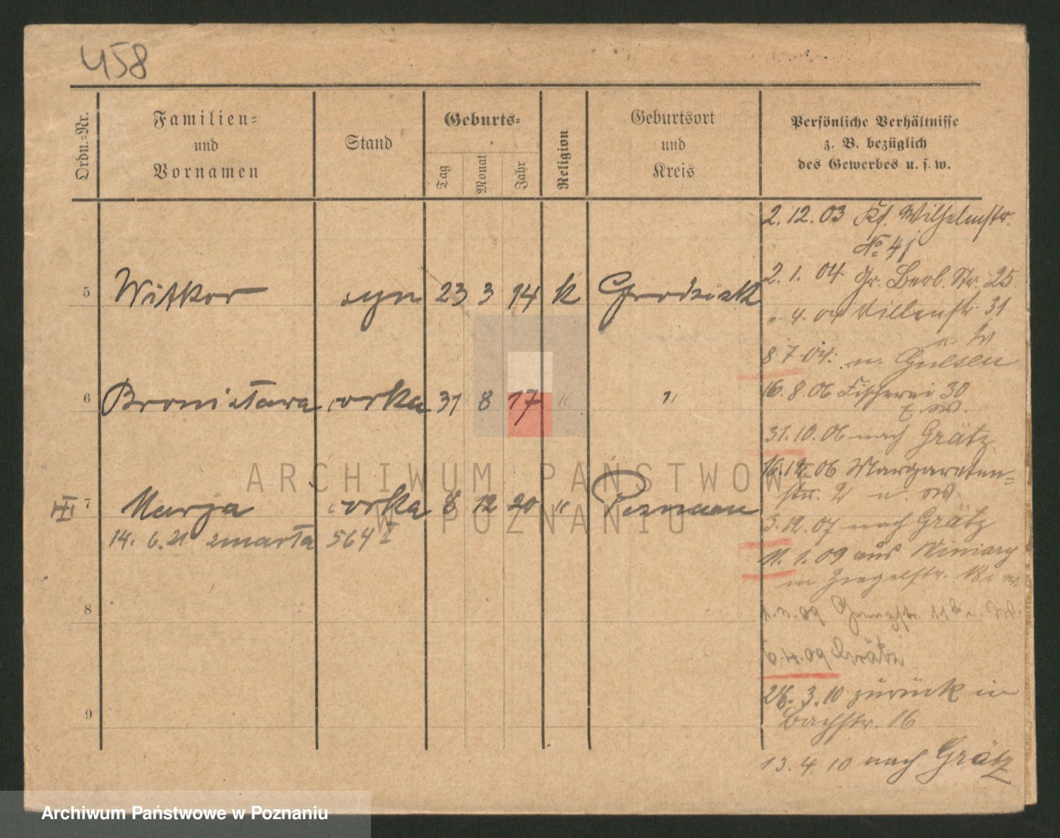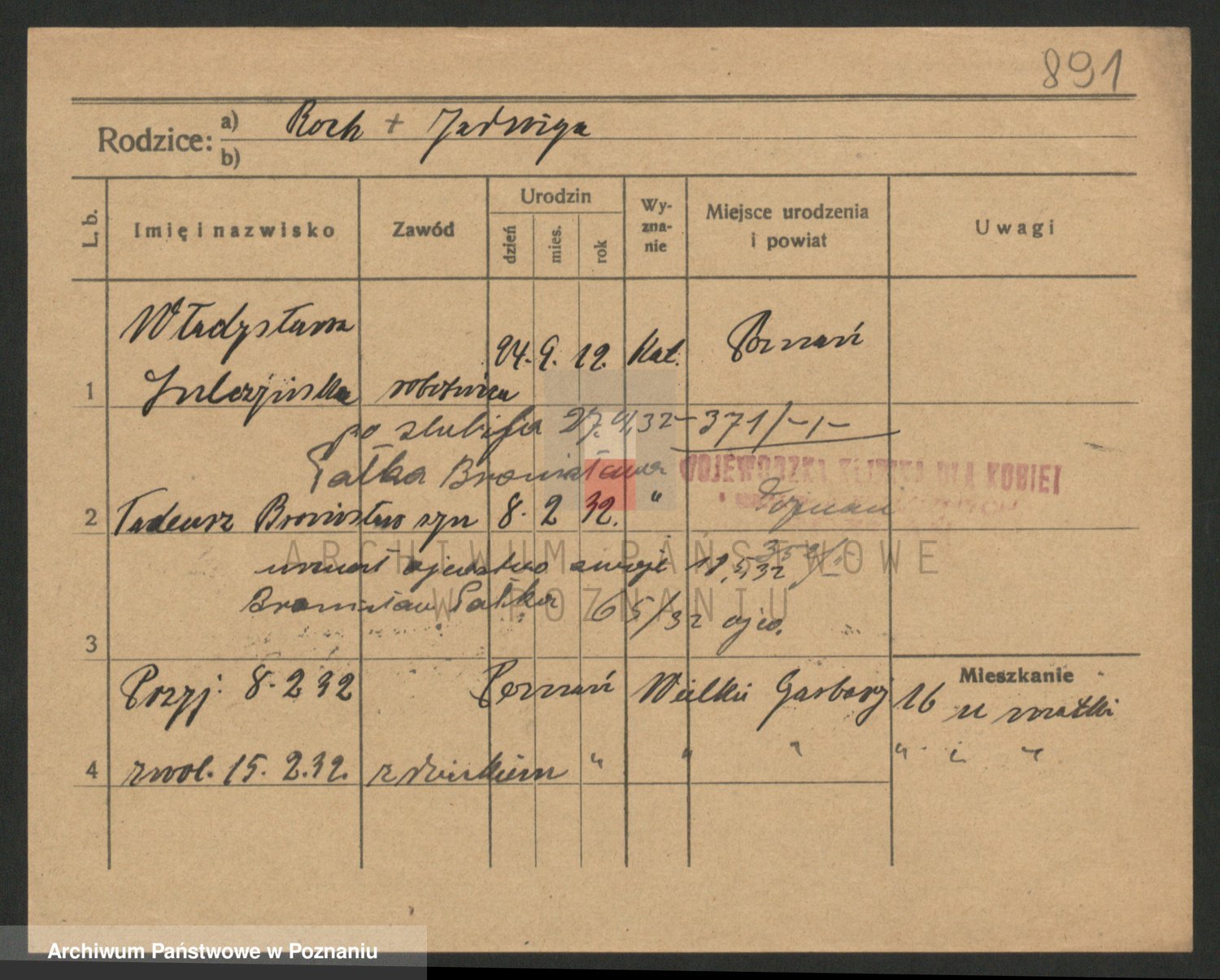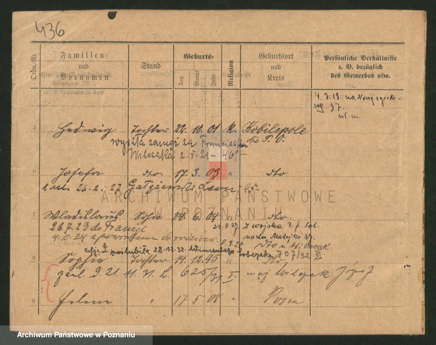 Podgląd karty osobowej dostępny jest po kliknięciu na nazwisko lub ikonkę karty. Można dokonywać powiększenia (ikony na górze) lub przechodzić między kolejnymi skanami (strzałki po bokach).