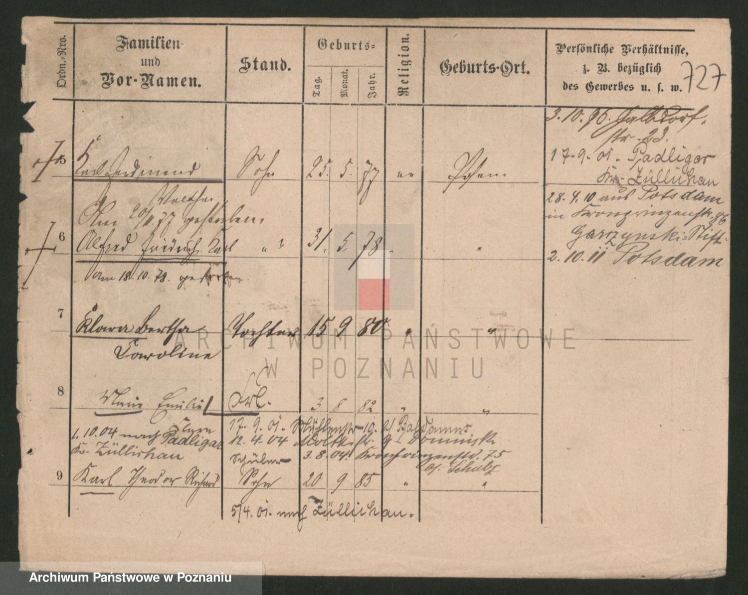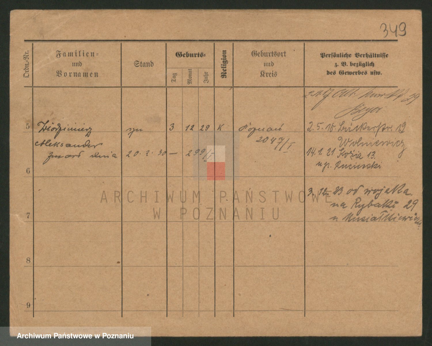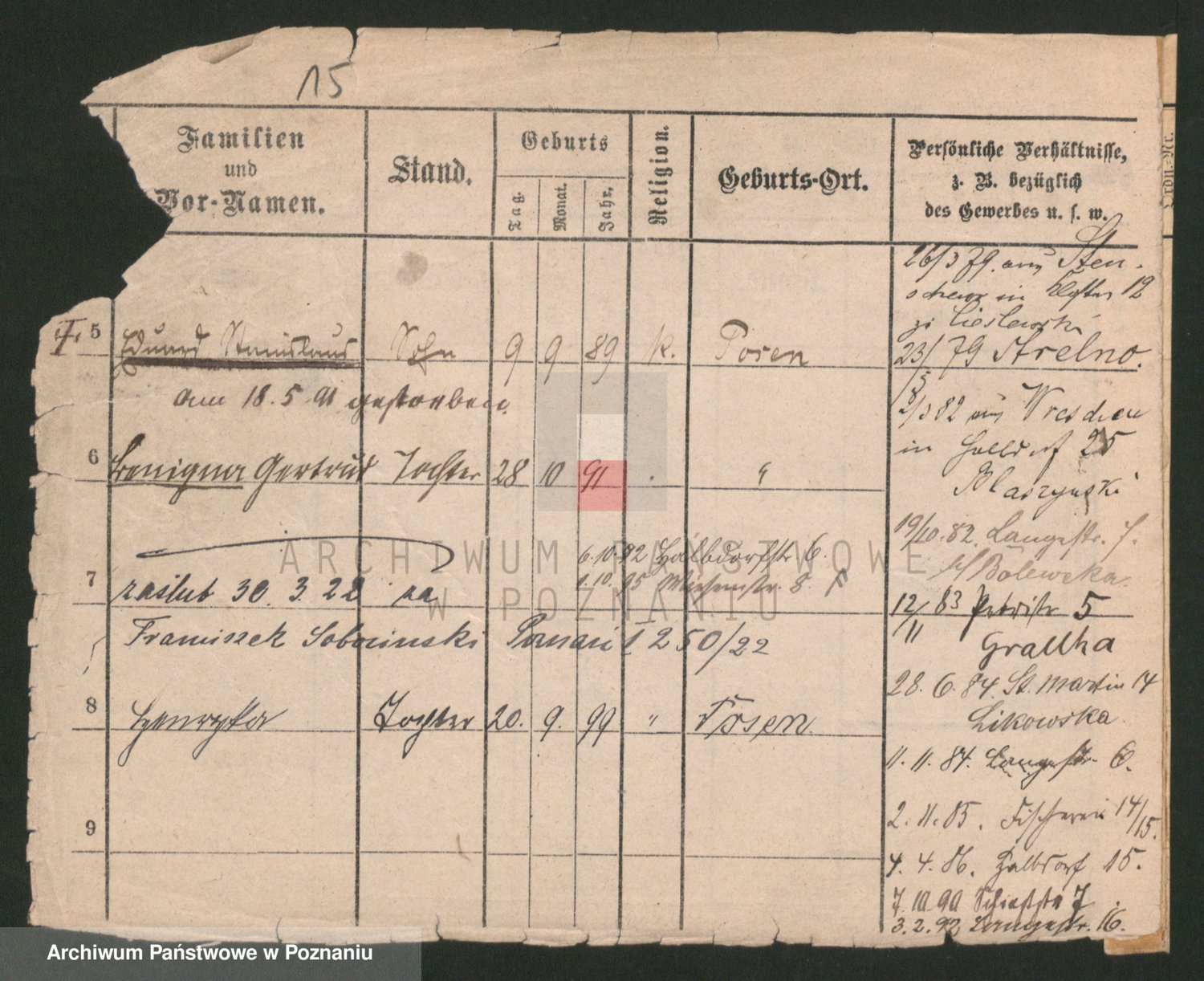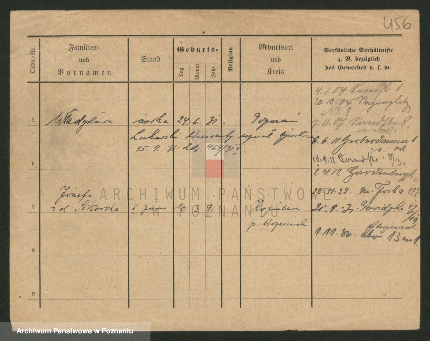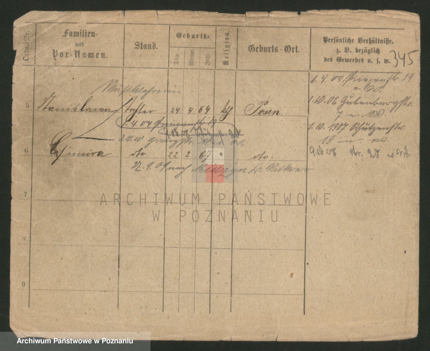 Podgląd karty osobowej dostępny jest po kliknięciu na nazwisko lub ikonkę karty. Można dokonywać powiększenia (ikony na górze) lub przechodzić między kolejnymi skanami (strzałki po bokach).