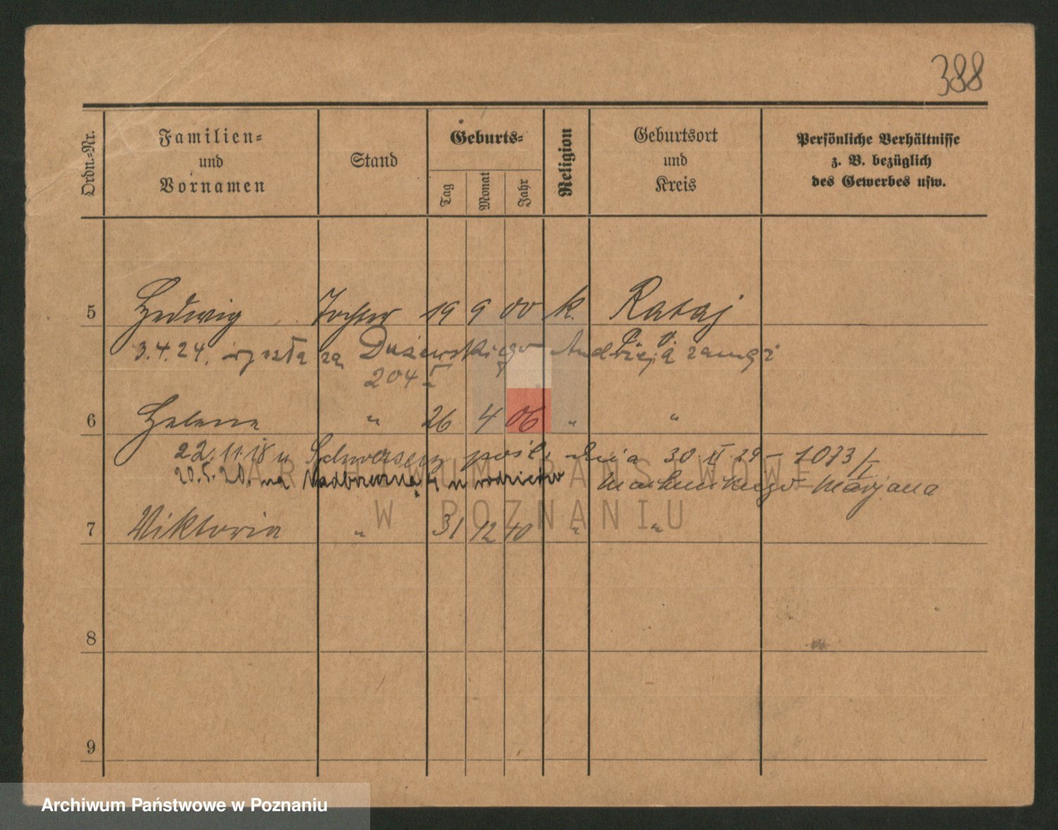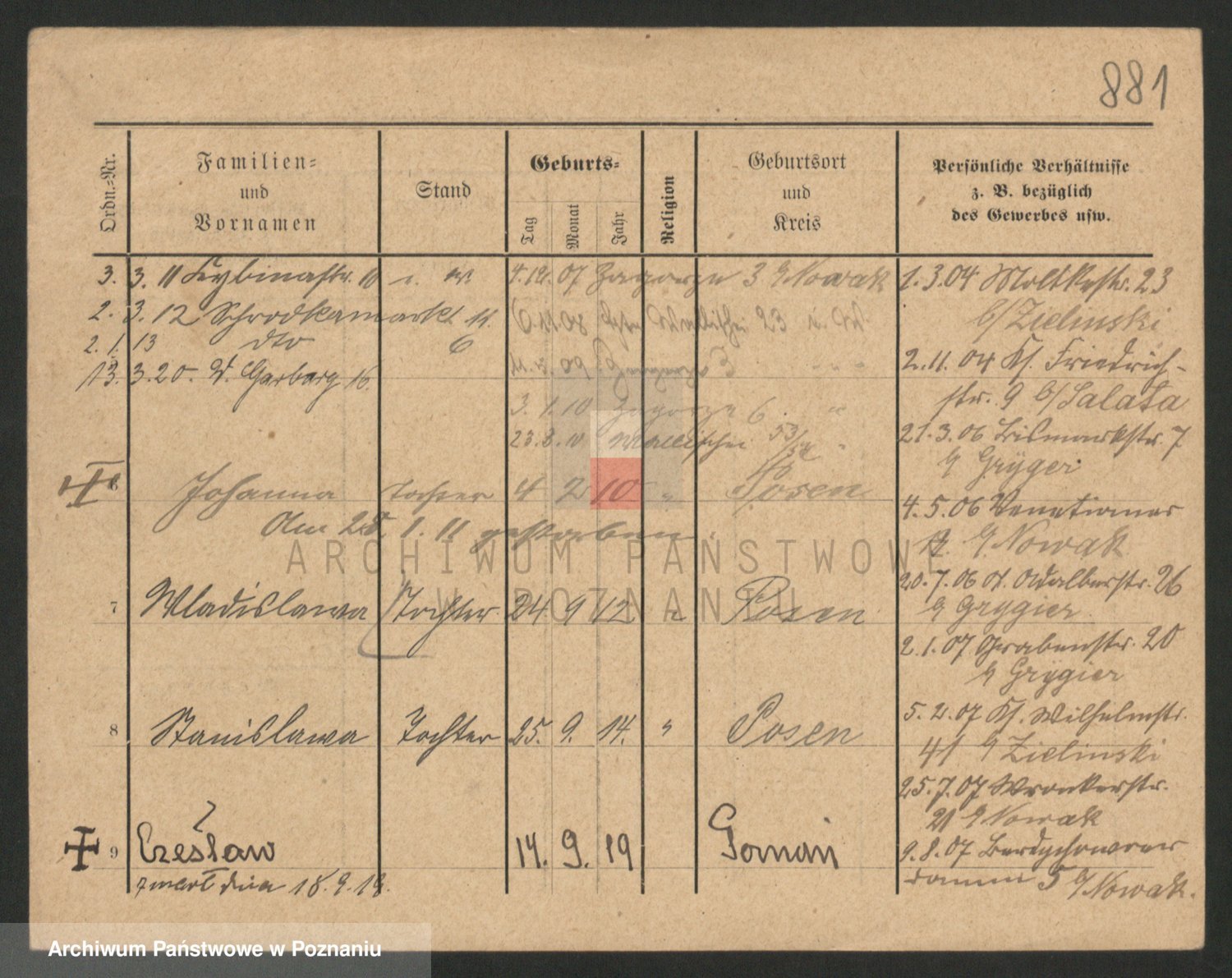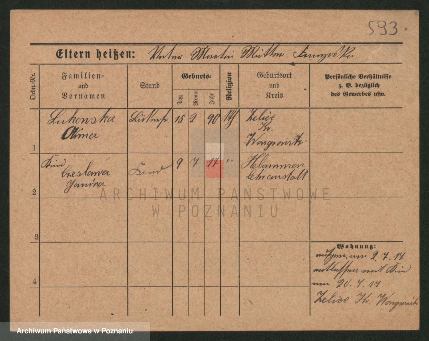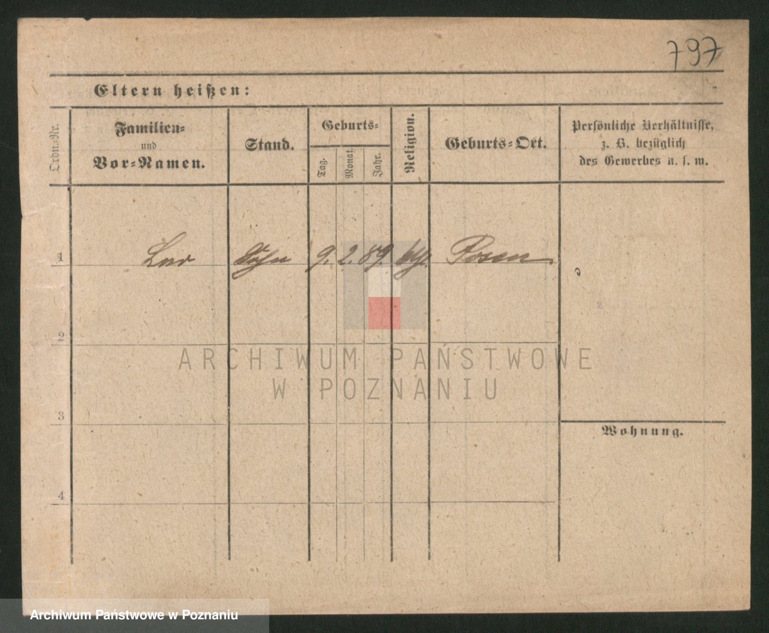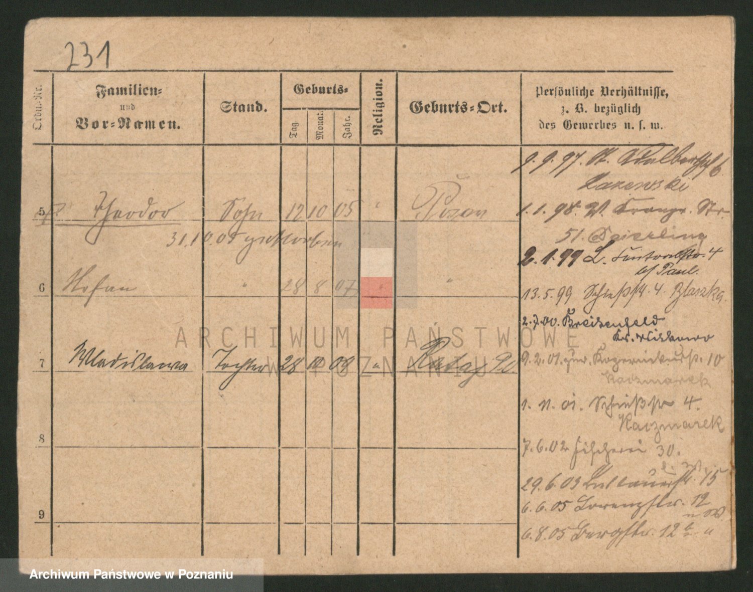 Podgląd karty osobowej dostępny jest po kliknięciu na nazwisko lub ikonkę karty. Można dokonywać powiększenia (ikony na górze) lub przechodzić między kolejnymi skanami (strzałki po bokach).