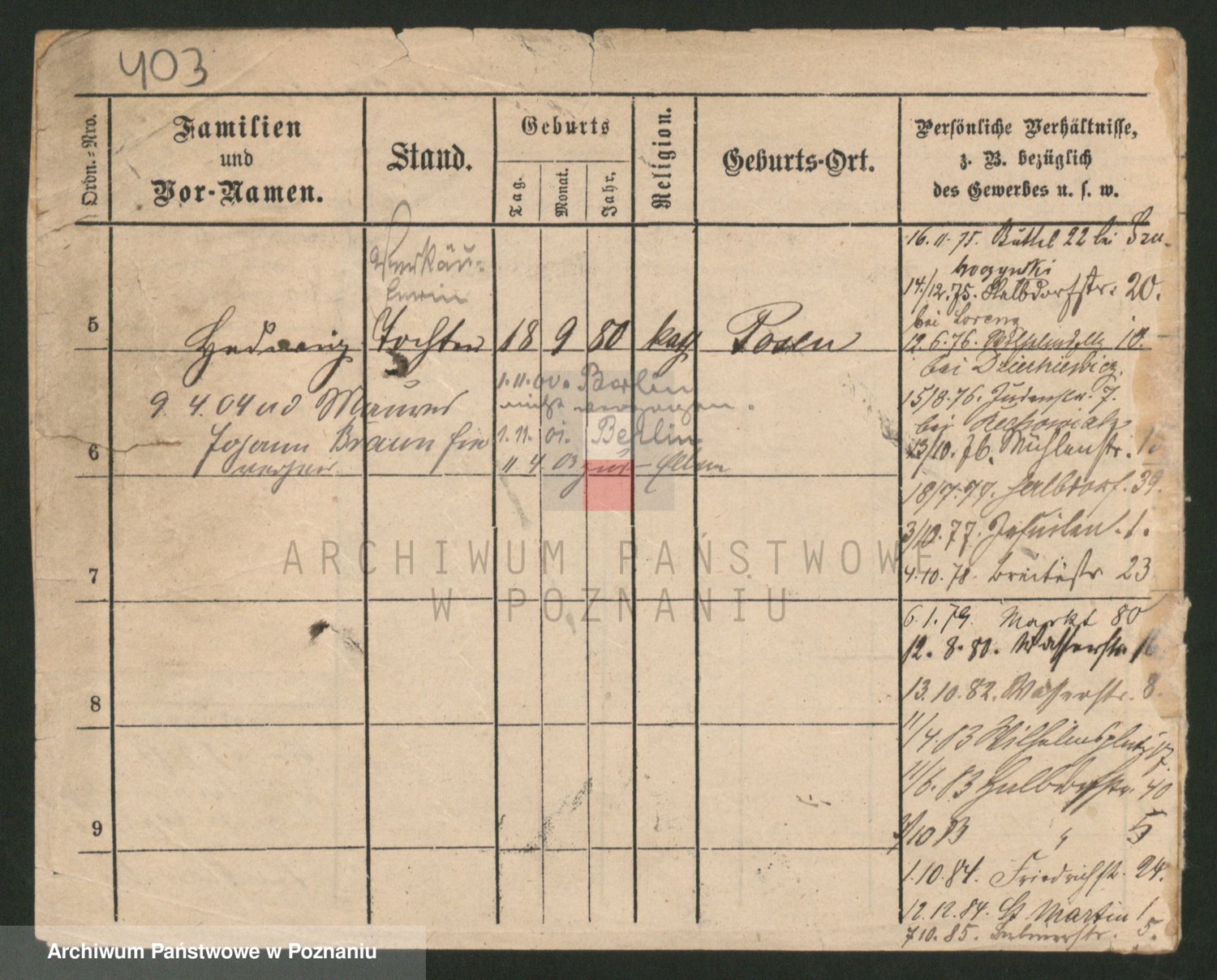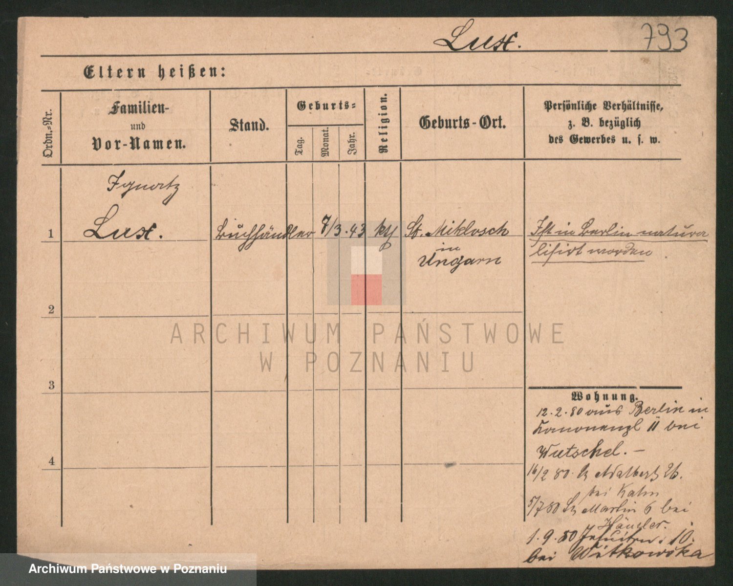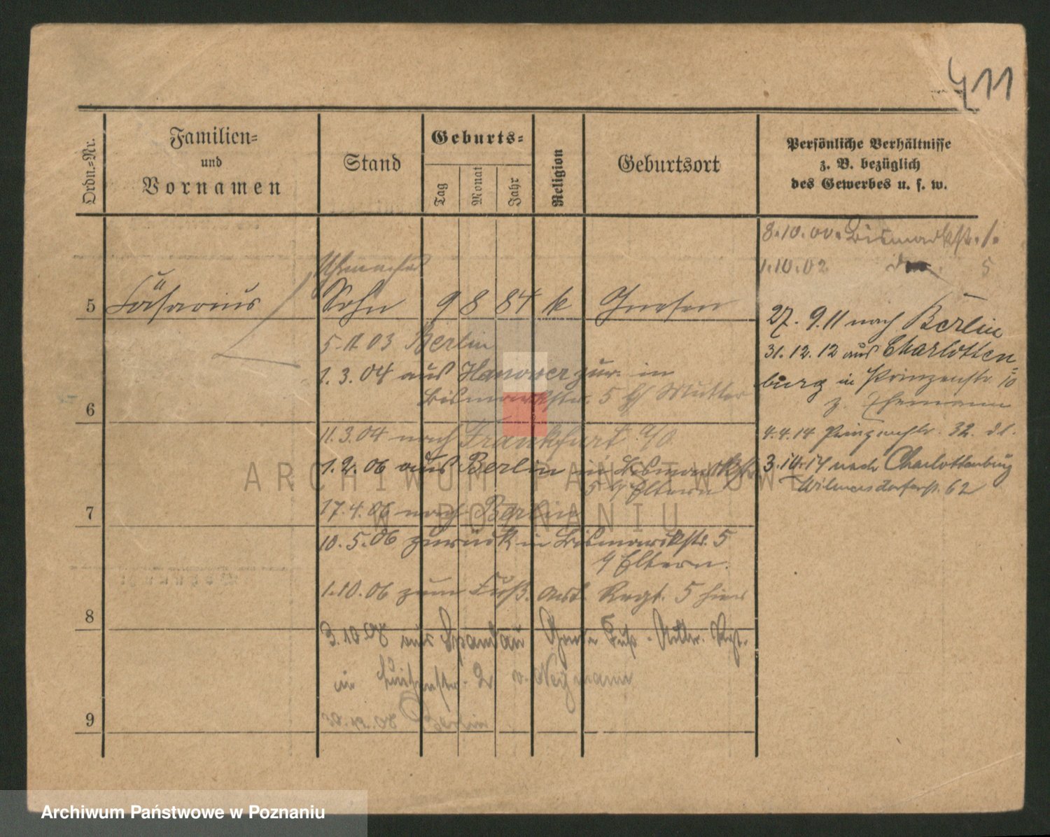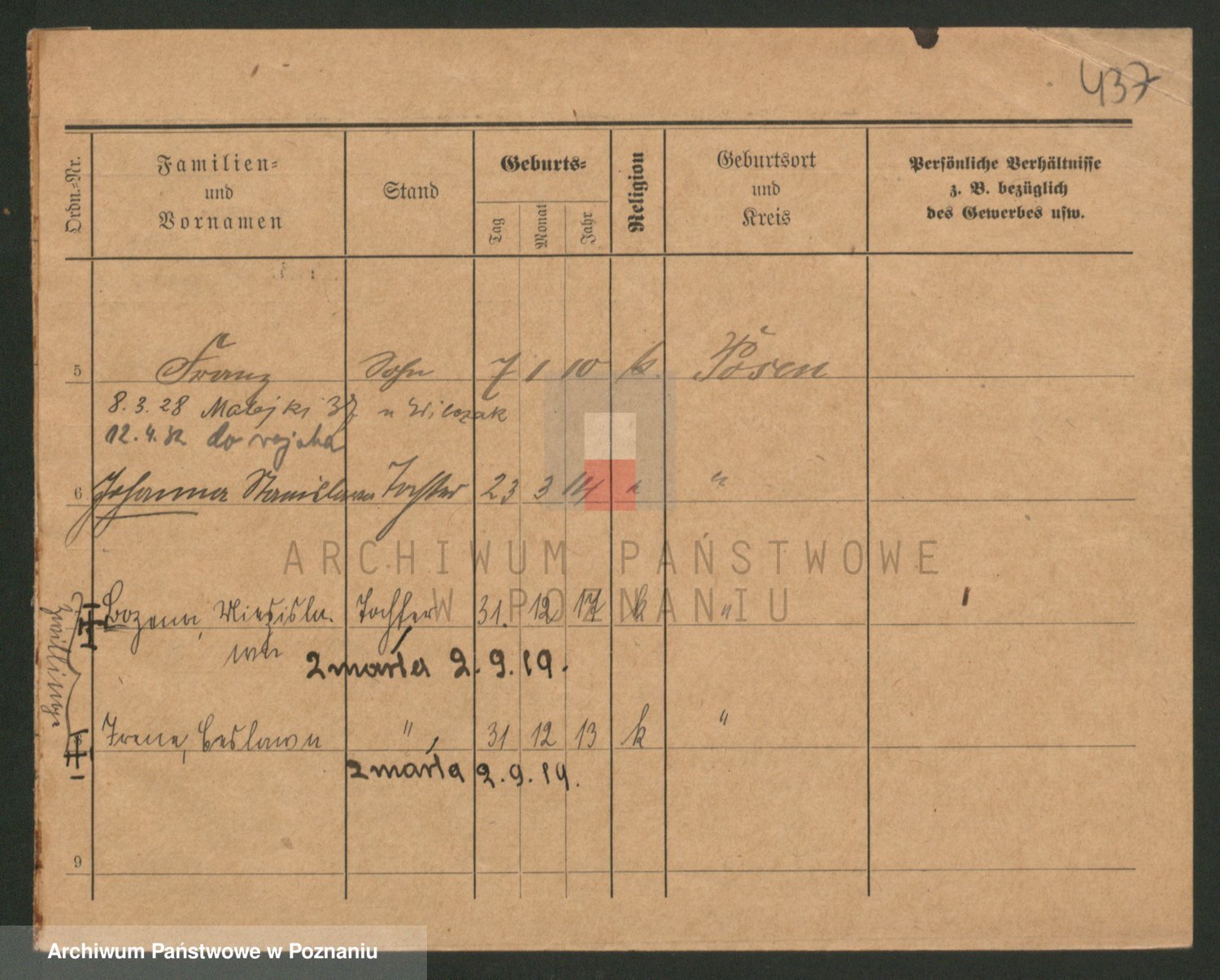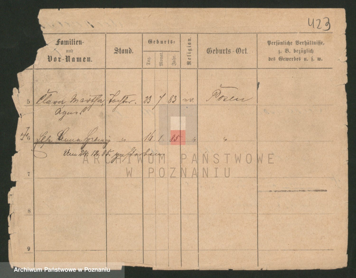Podgląd karty osobowej dostępny jest po kliknięciu na nazwisko lub ikonkę karty. Można dokonywać powiększenia (ikony na górze) lub przechodzić między kolejnymi skanami (strzałki po bokach).