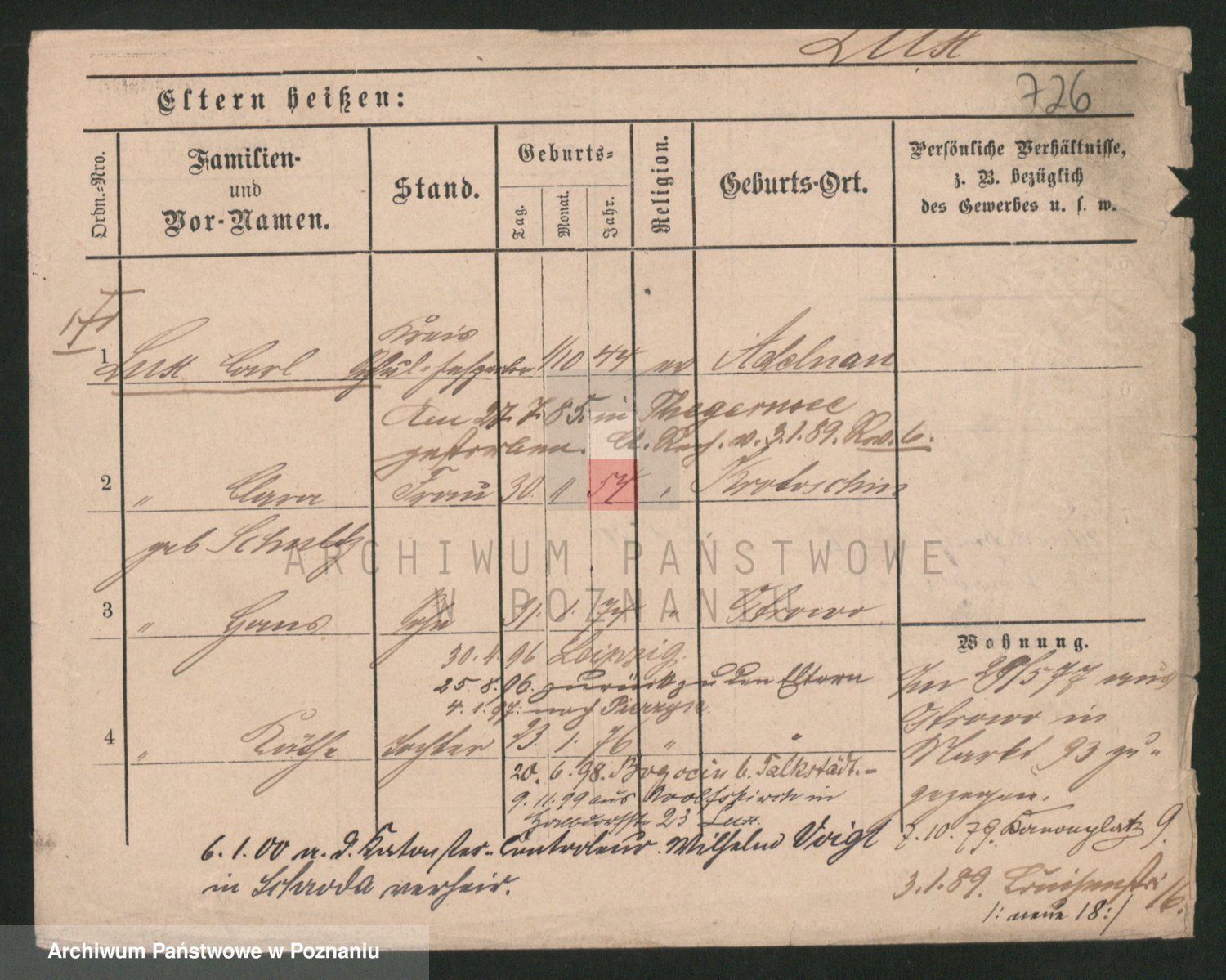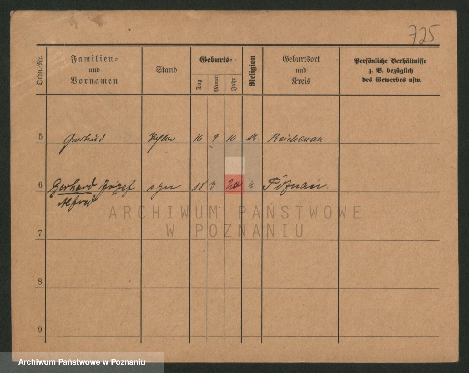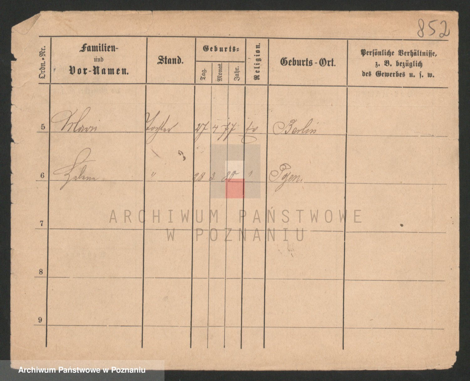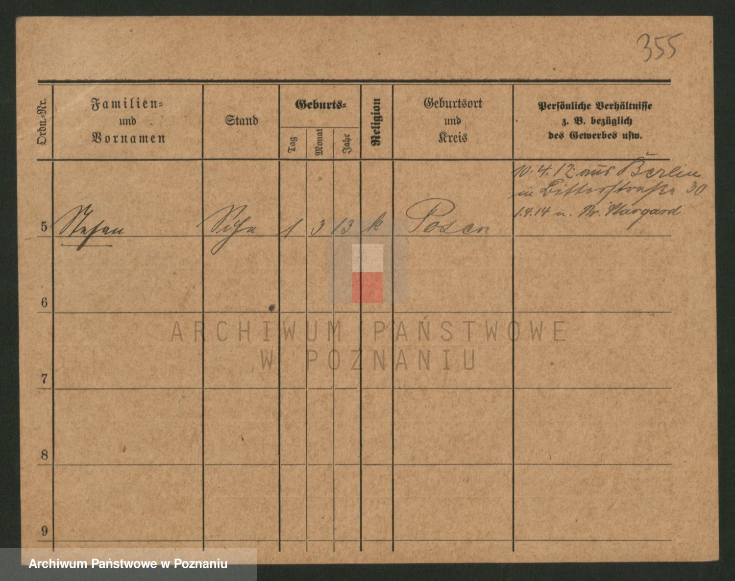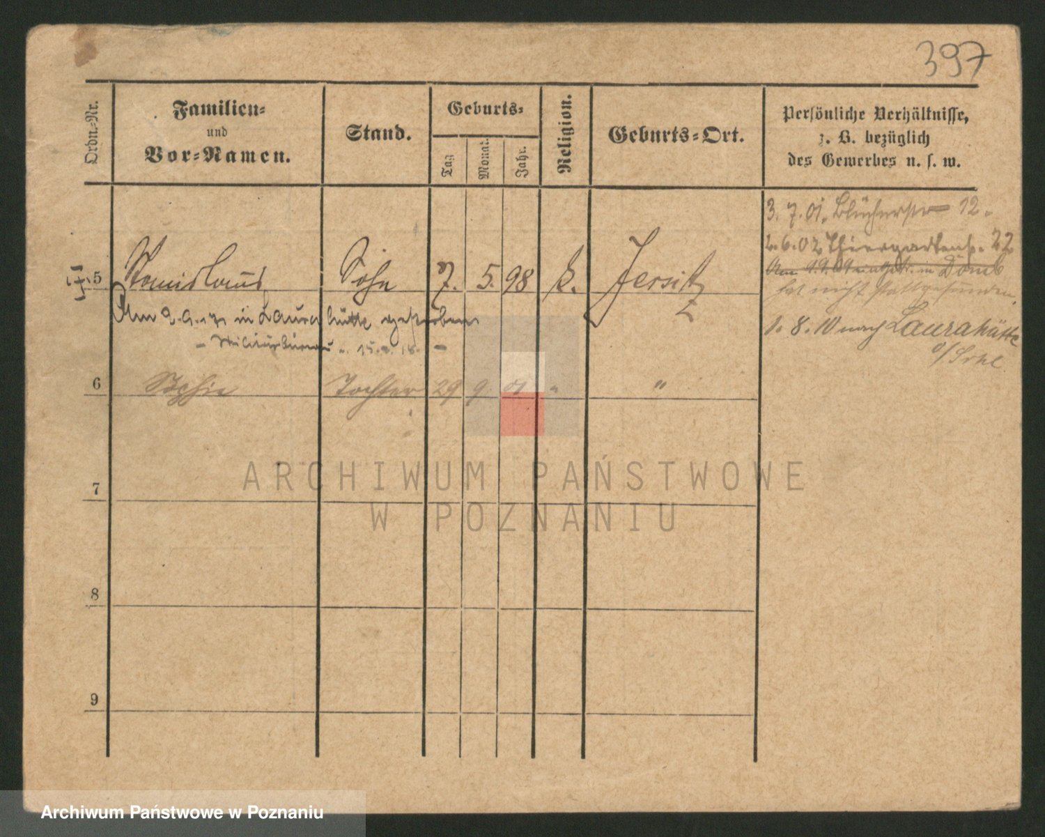 Podgląd karty osobowej dostępny jest po kliknięciu na nazwisko lub ikonkę karty. Można dokonywać powiększenia (ikony na górze) lub przechodzić między kolejnymi skanami (strzałki po bokach).