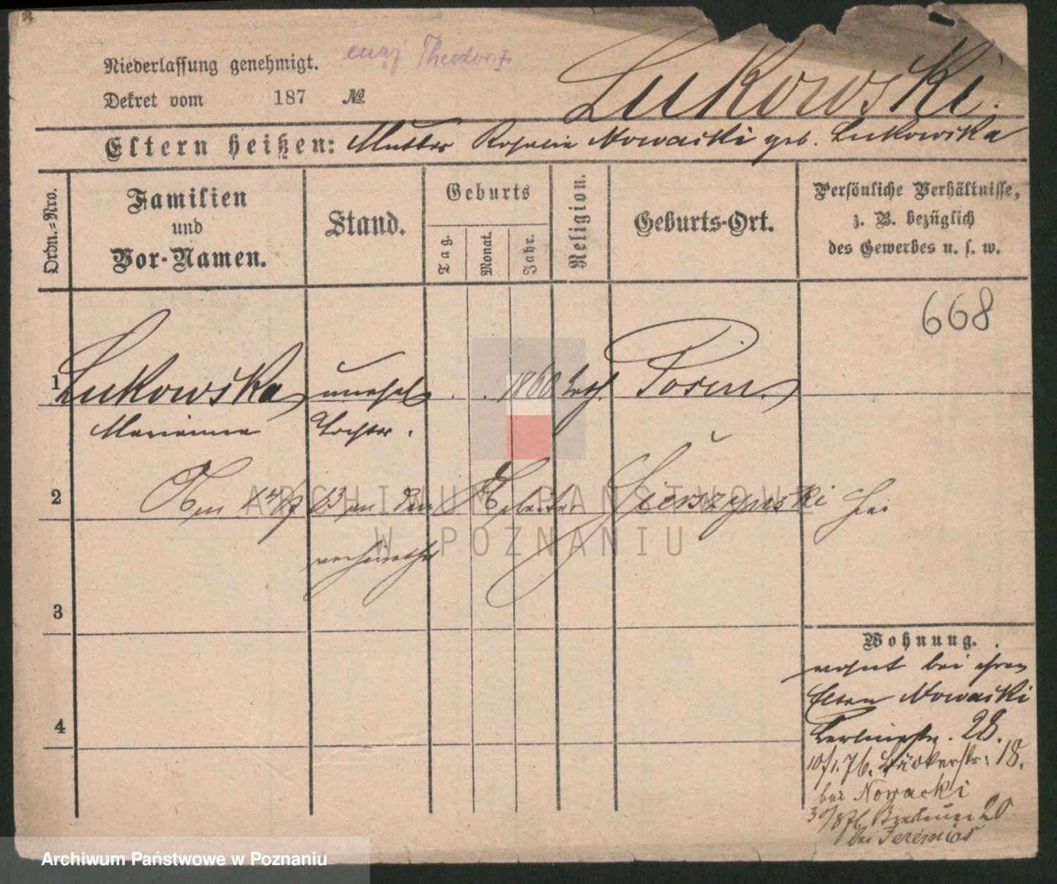 Lulka z.d. Liszynska, Marie
