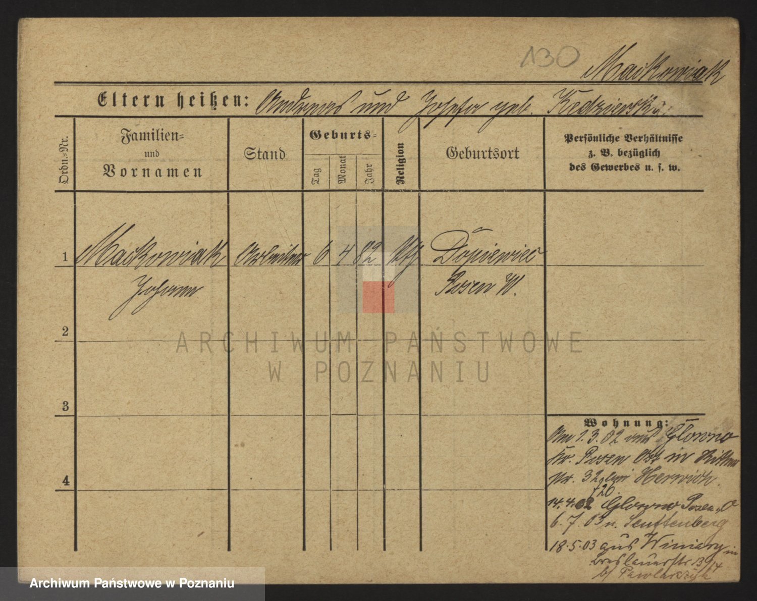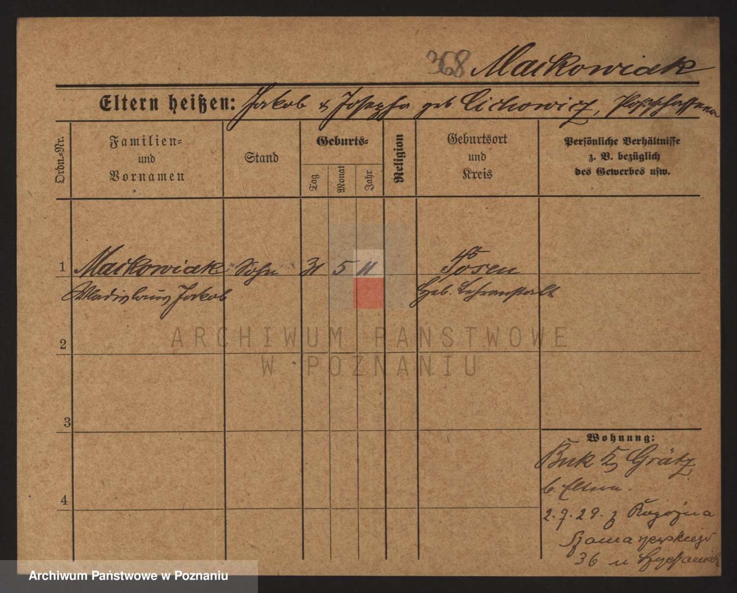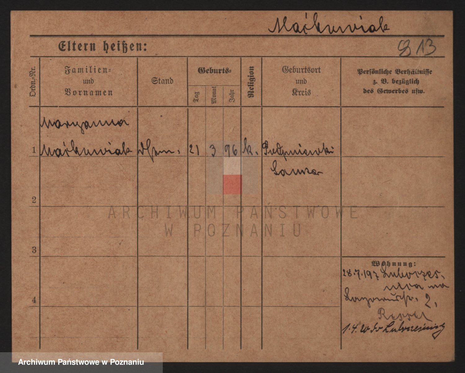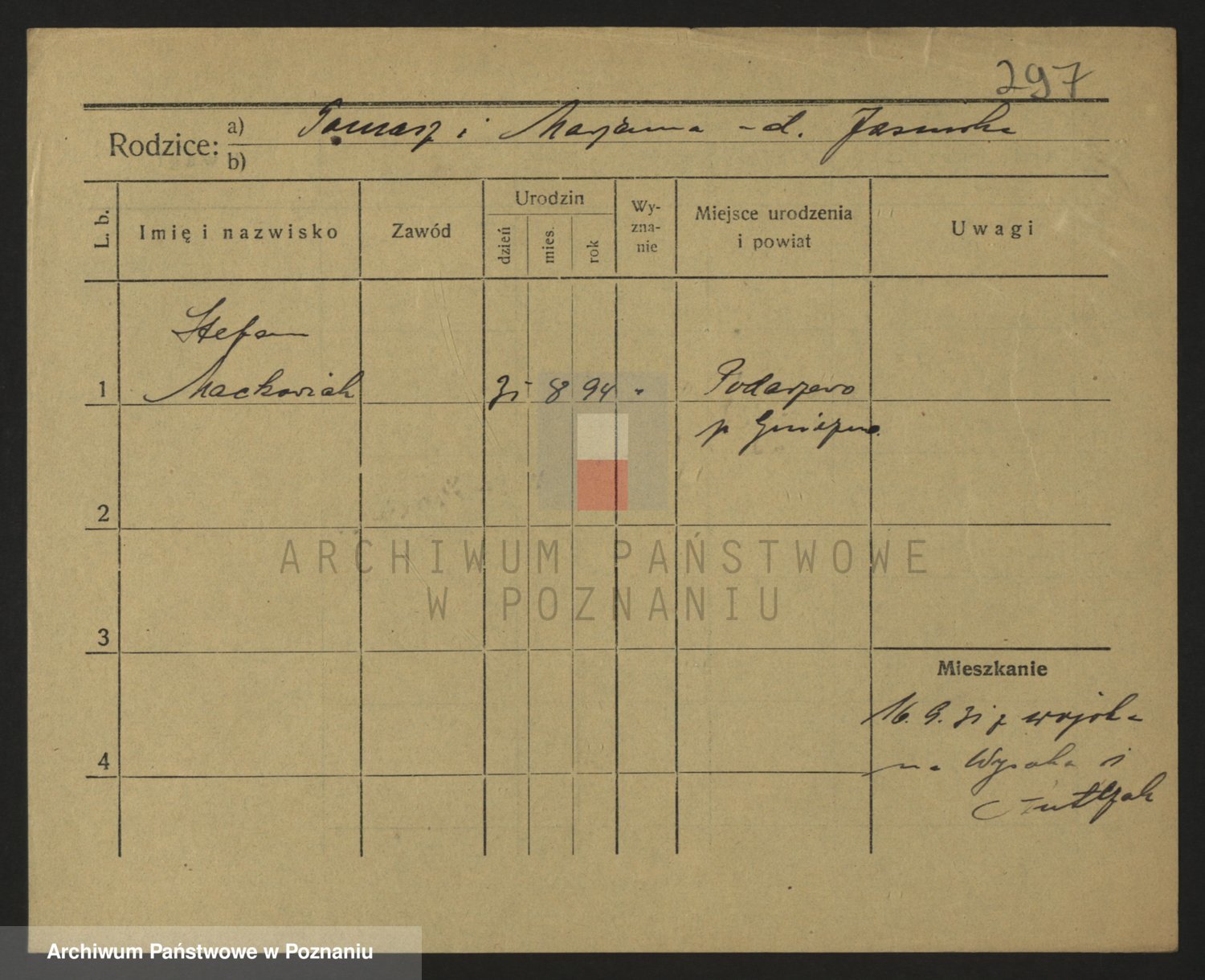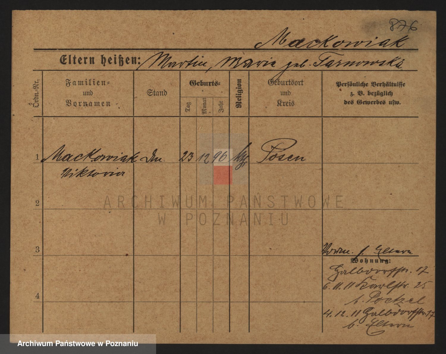 Podgląd karty osobowej dostępny jest po kliknięciu na nazwisko lub ikonkę karty. Można dokonywać powiększenia (ikony na górze) lub przechodzić między kolejnymi skanami (strzałki po bokach).