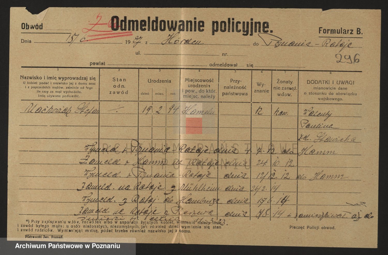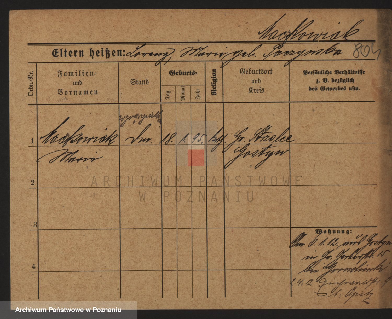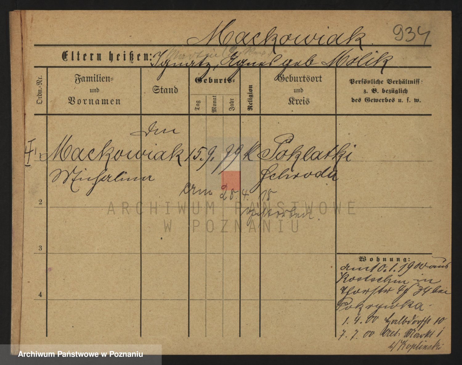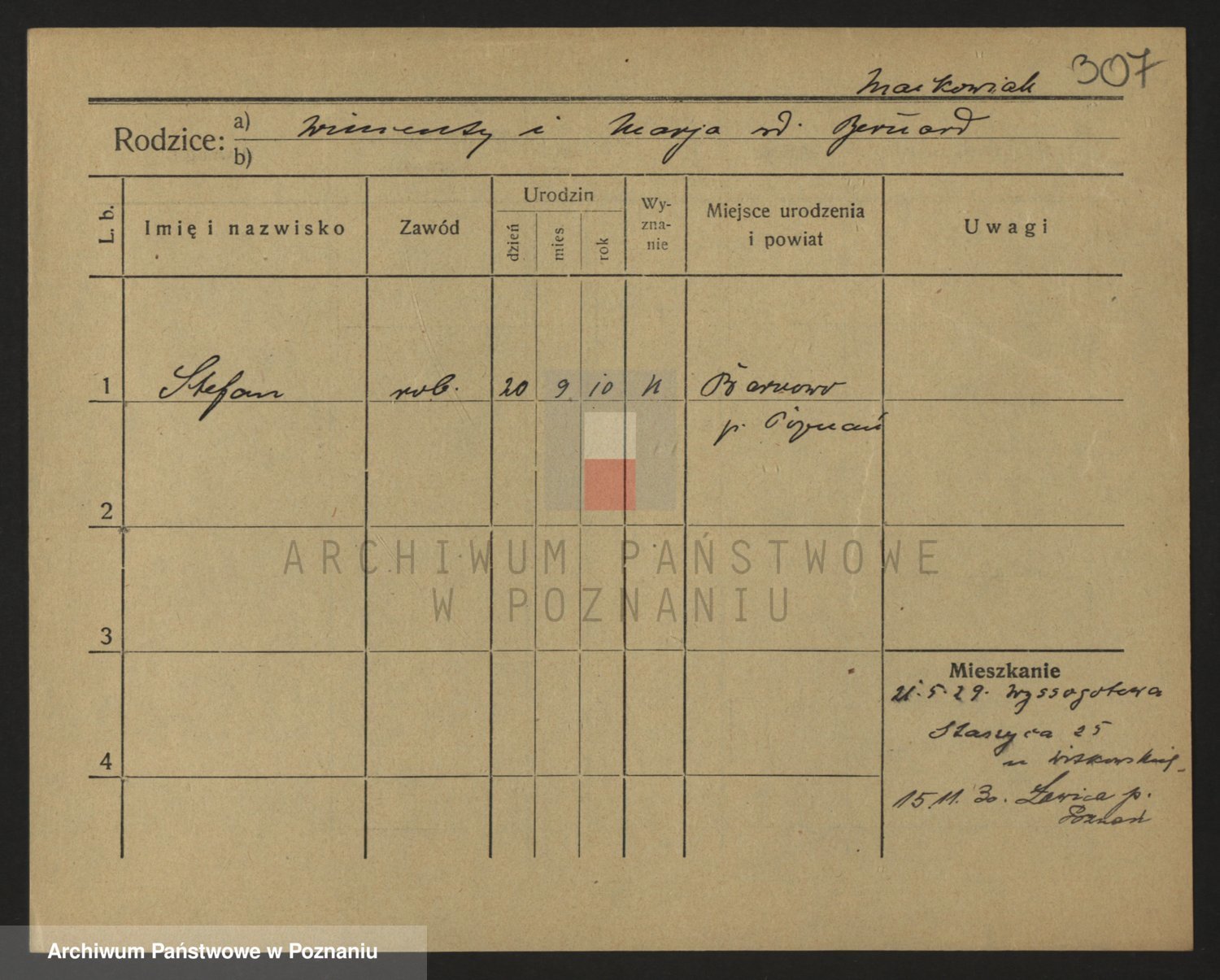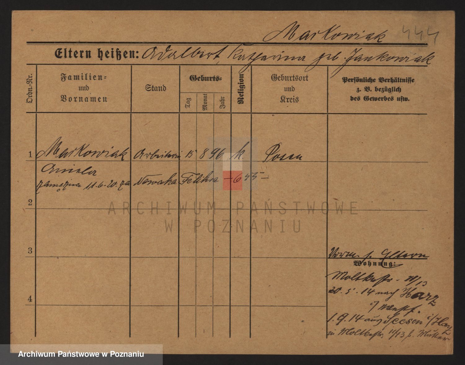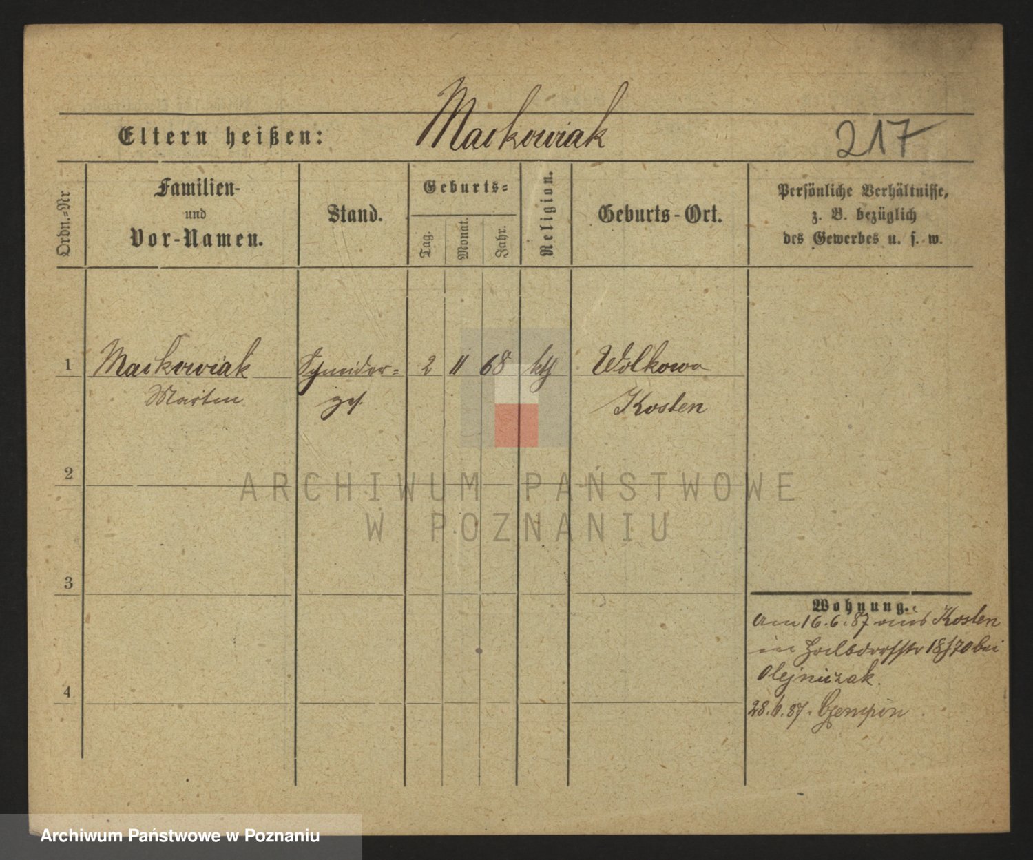 Podgląd karty osobowej dostępny jest po kliknięciu na nazwisko lub ikonkę karty. Można dokonywać powiększenia (ikony na górze) lub przechodzić między kolejnymi skanami (strzałki po bokach).