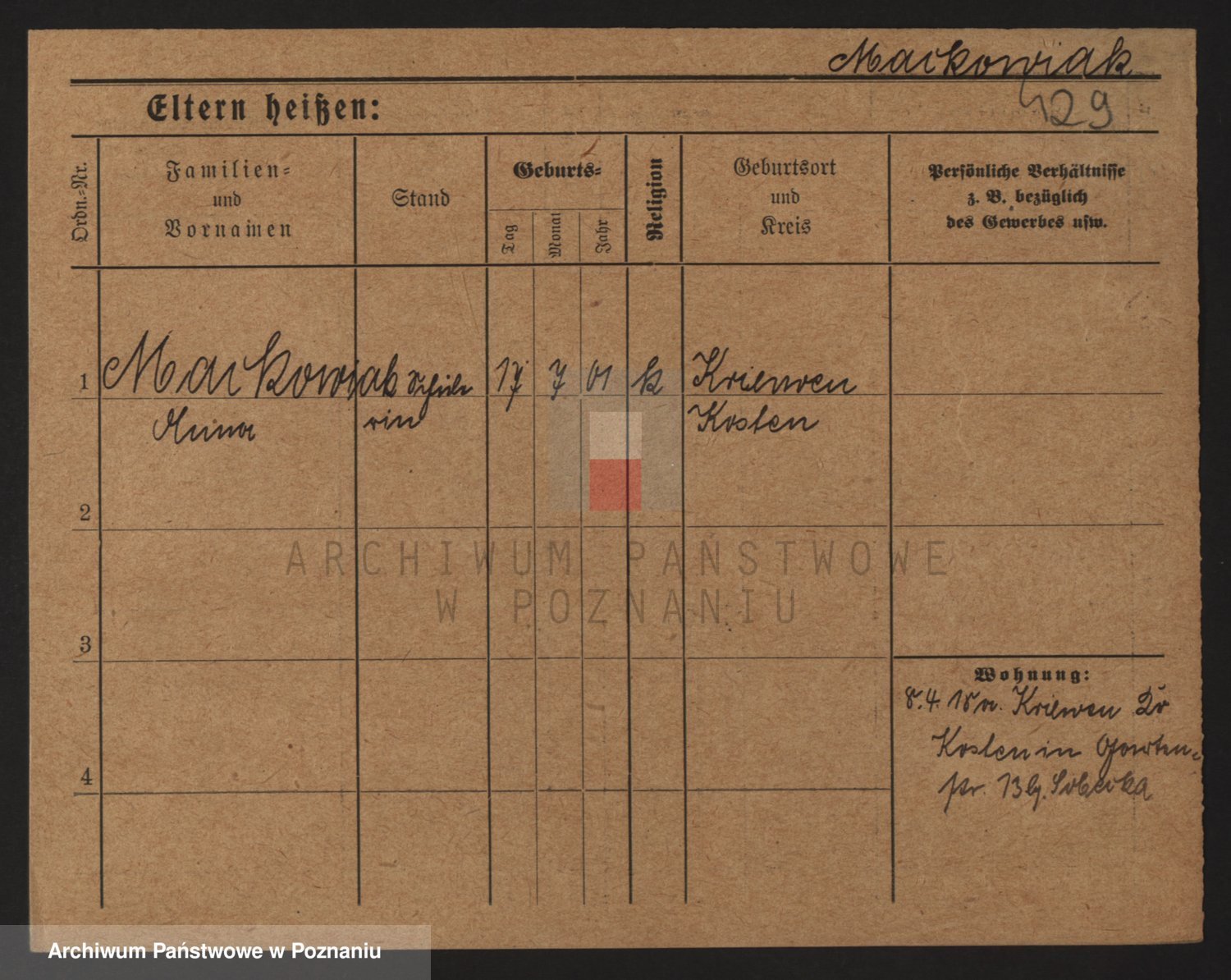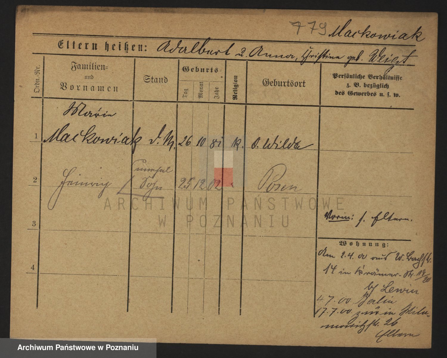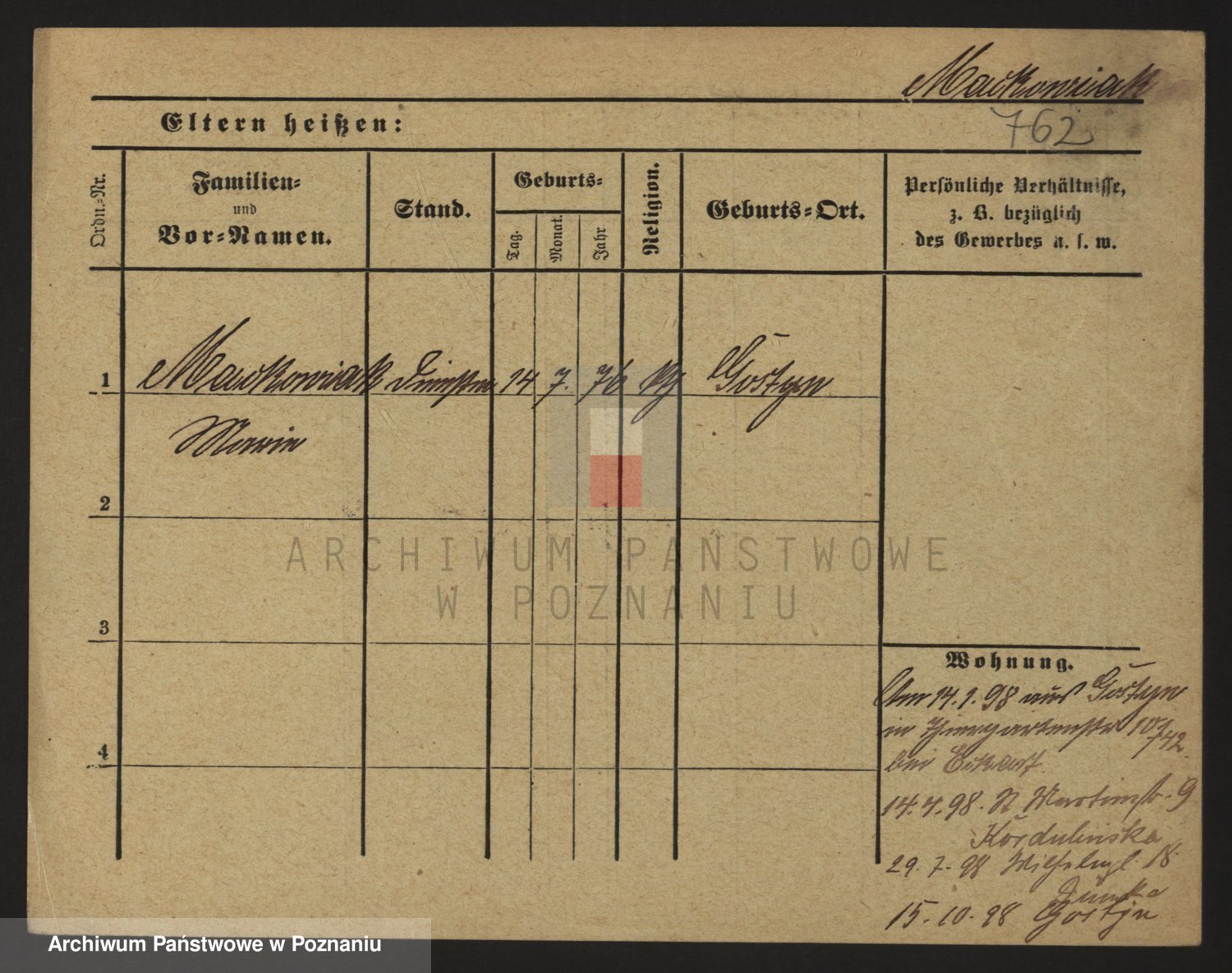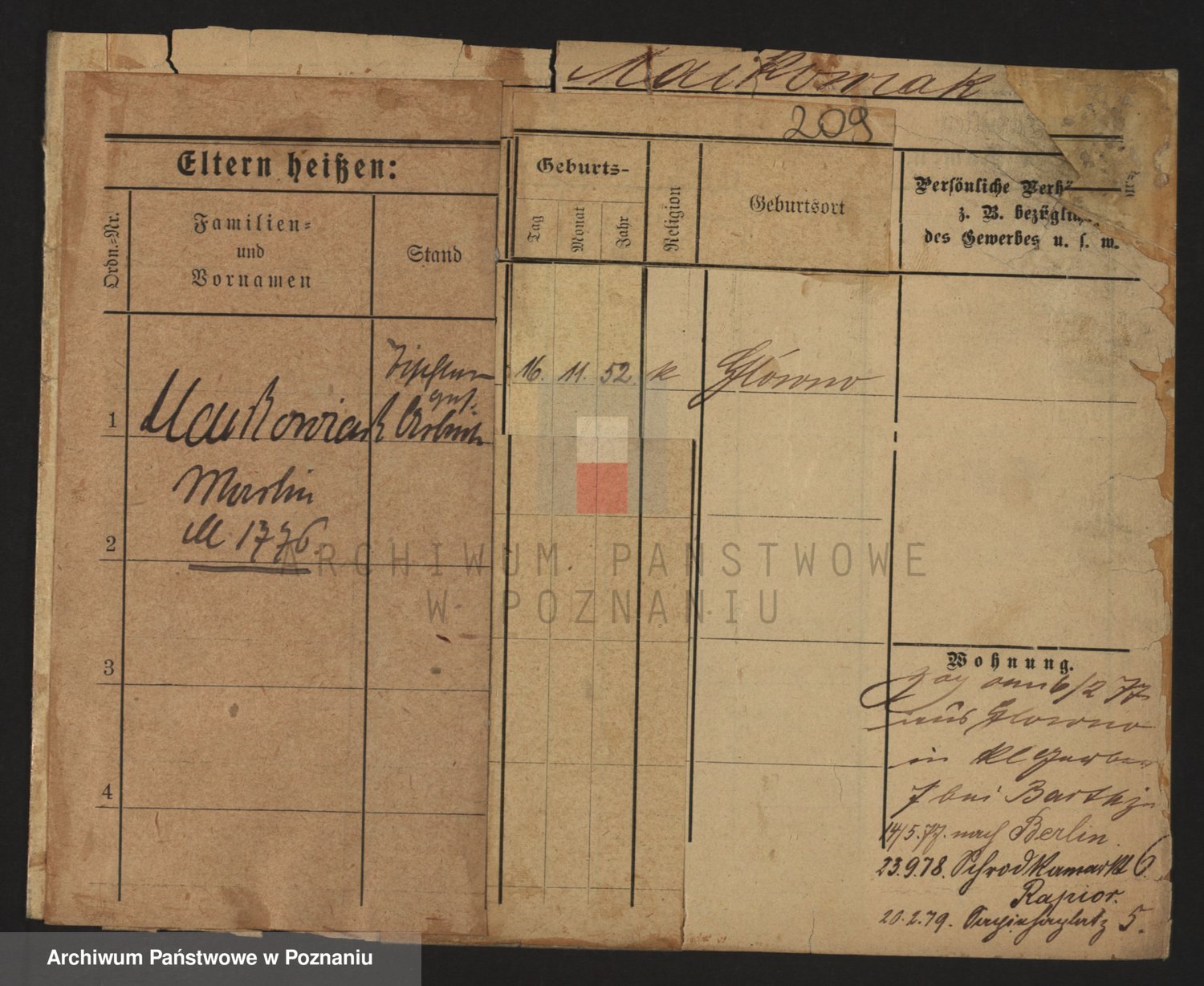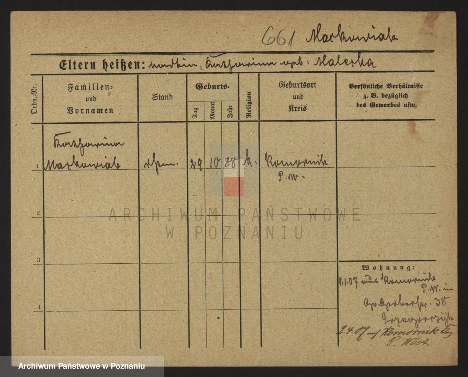 Podgląd karty osobowej dostępny jest po kliknięciu na nazwisko lub ikonkę karty. Można dokonywać powiększenia (ikony na górze) lub przechodzić między kolejnymi skanami (strzałki po bokach).