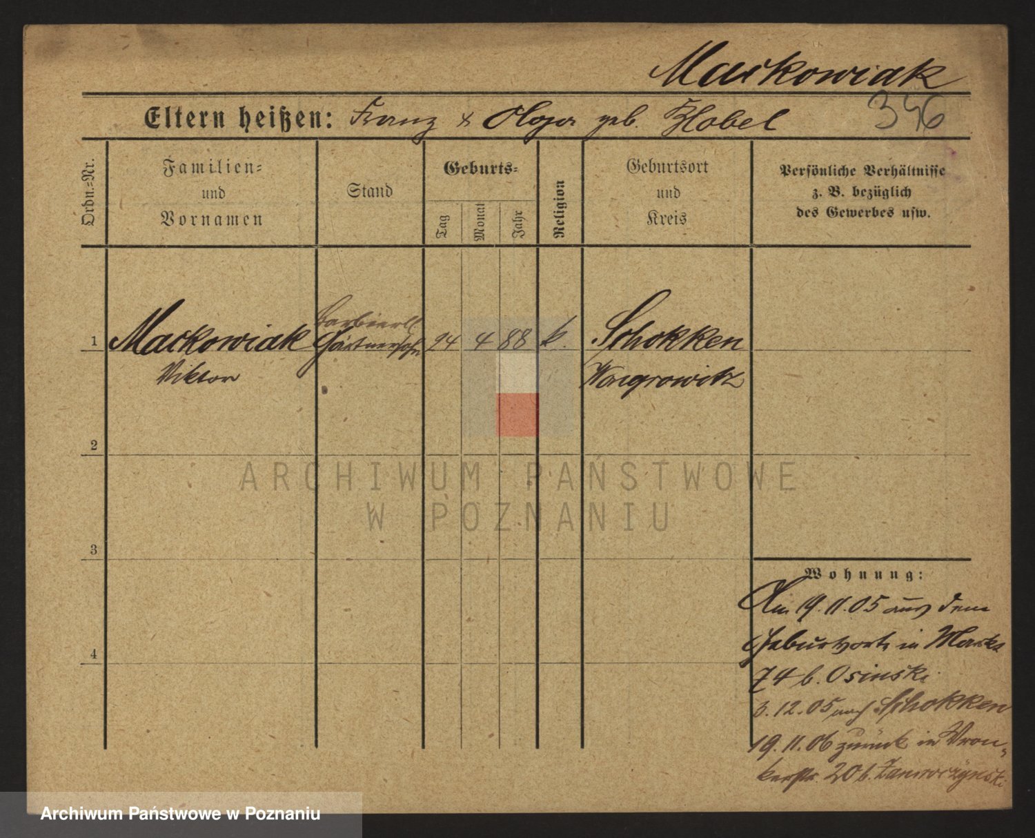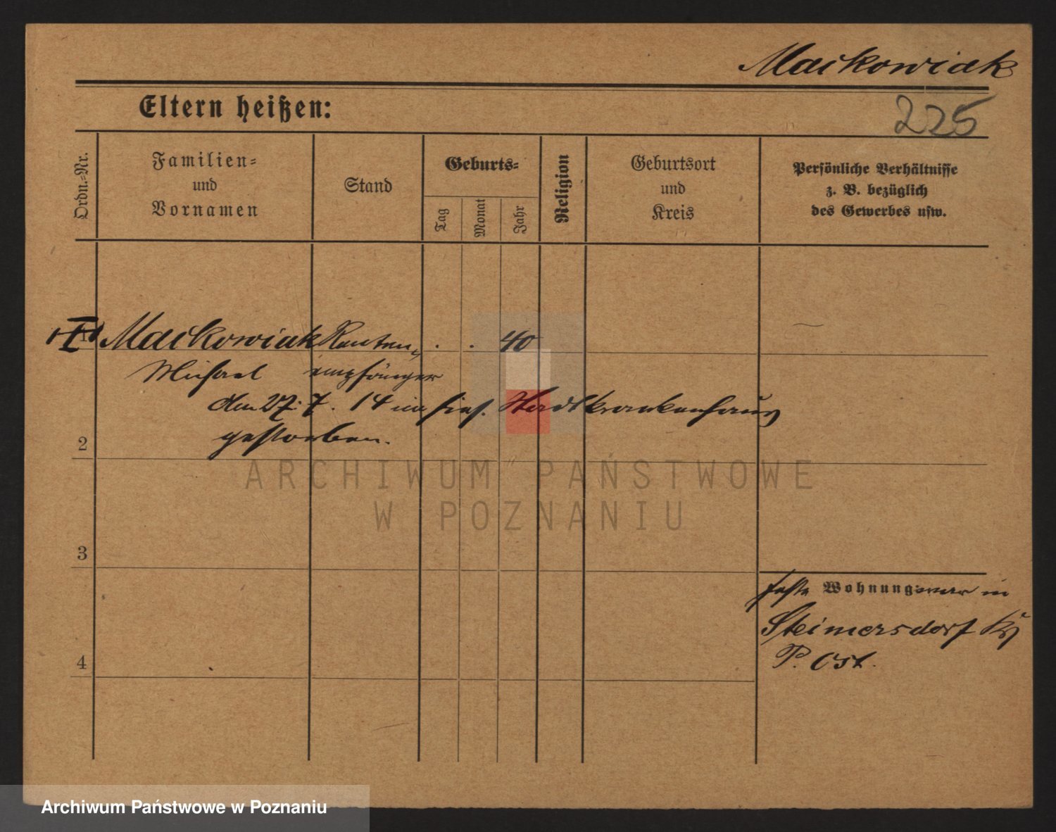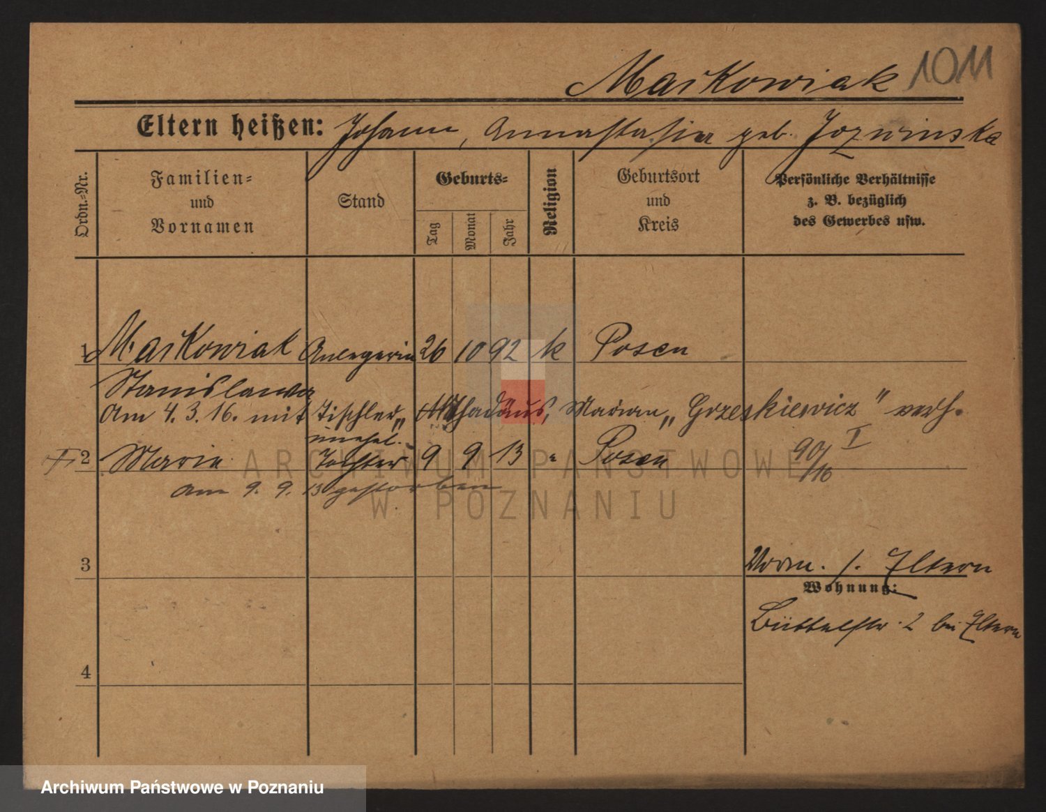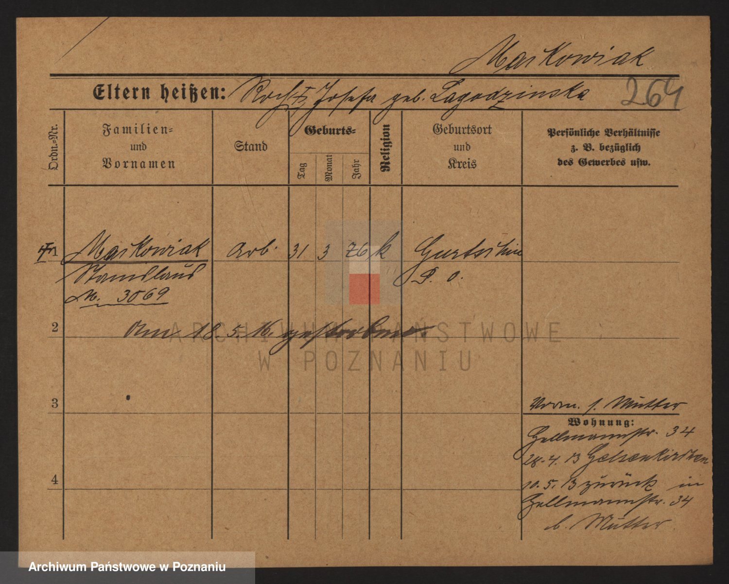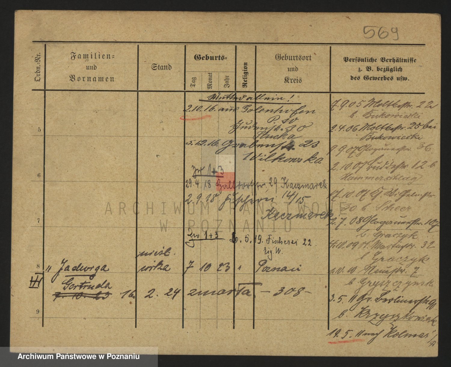 Podgląd karty osobowej dostępny jest po kliknięciu na nazwisko lub ikonkę karty. Można dokonywać powiększenia (ikony na górze) lub przechodzić między kolejnymi skanami (strzałki po bokach).
