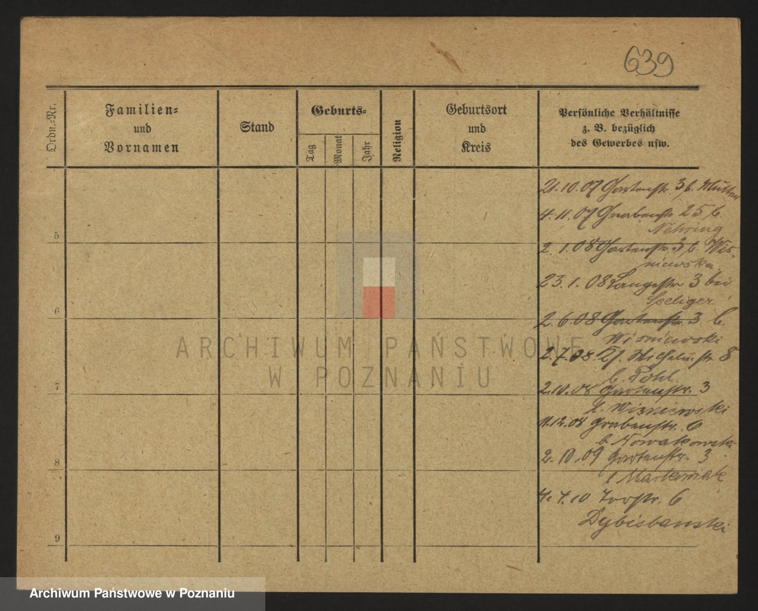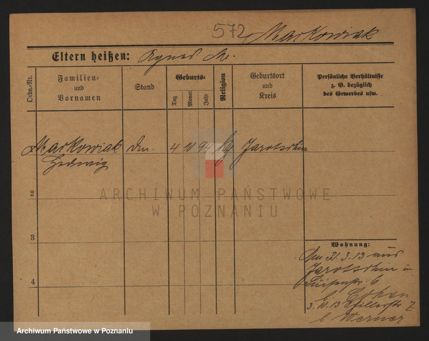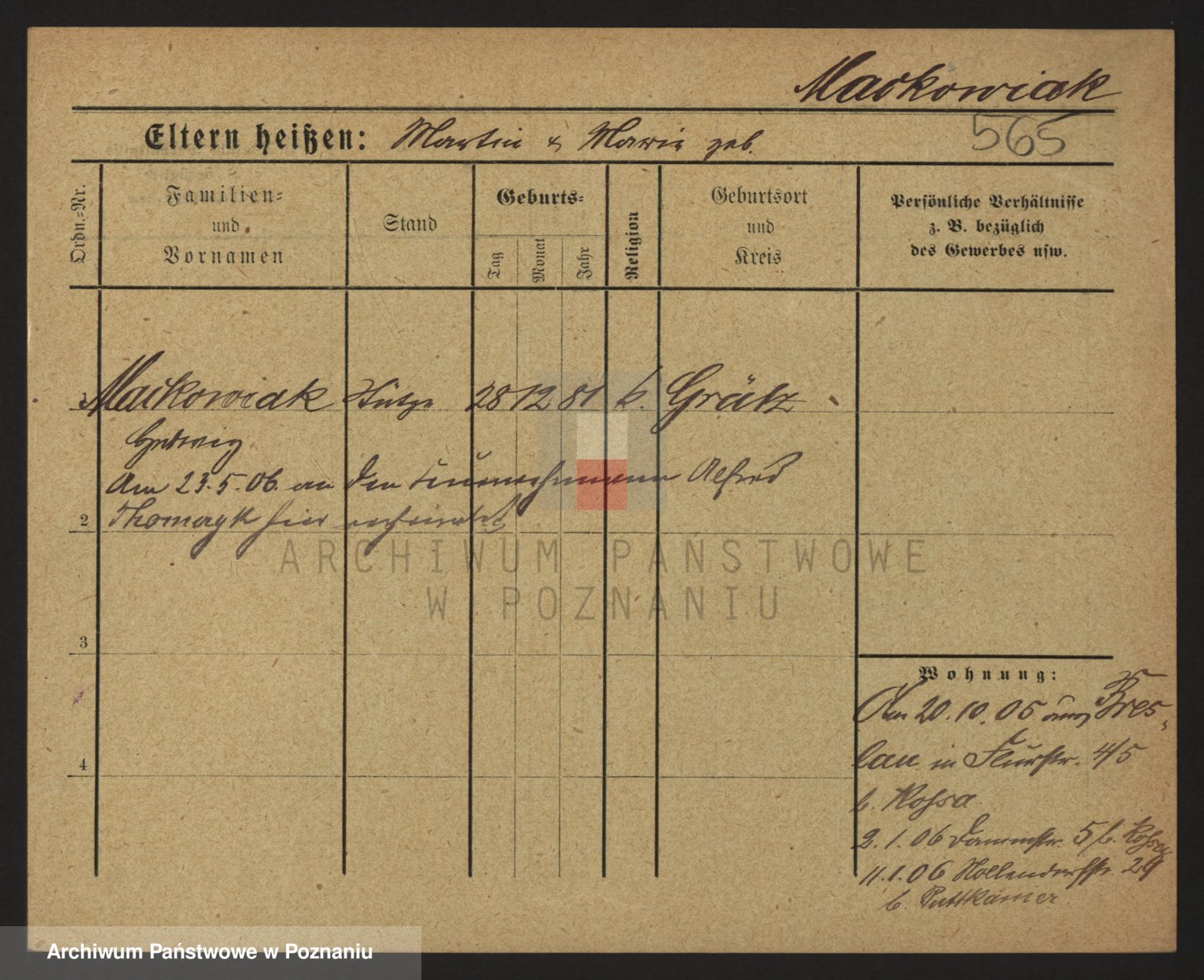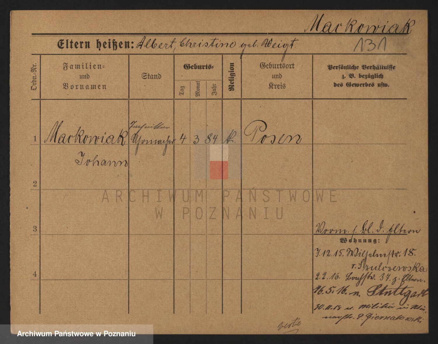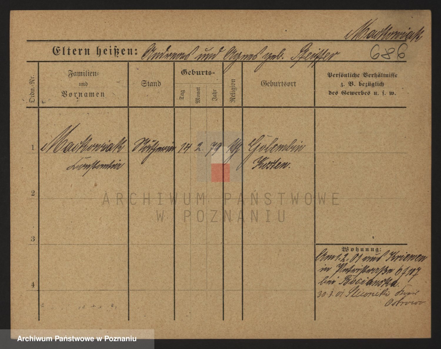 Podgląd karty osobowej dostępny jest po kliknięciu na nazwisko lub ikonkę karty. Można dokonywać powiększenia (ikony na górze) lub przechodzić między kolejnymi skanami (strzałki po bokach).
